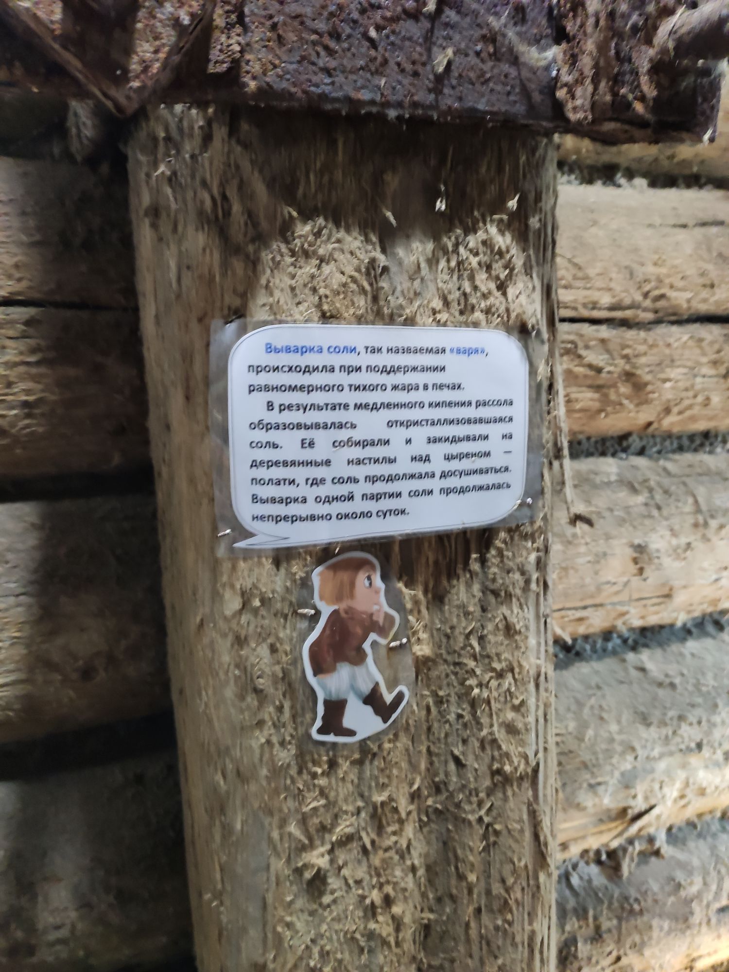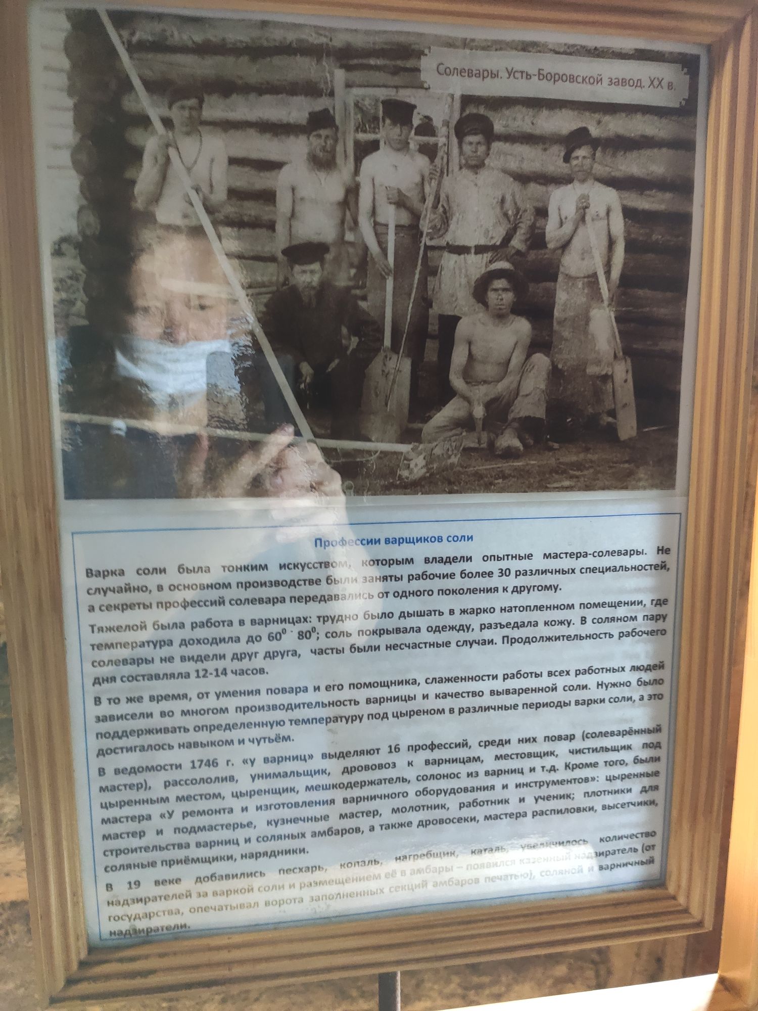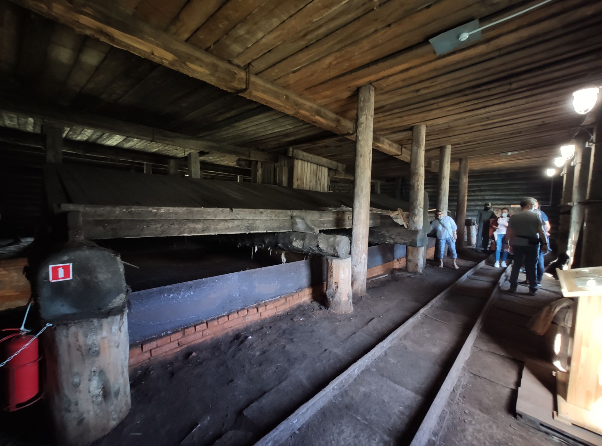 2 августа 2020 Первый пункт в Соликамске - музей соли. Яндекс повел нас через лес. Встретили "Party bus"!))) И красивый домик, в котором сейчас какая-то лавка Ну и собственно то, куда привел нас Яндекс, хотя мы ему писали адрес музея Муж прям попросил - сфоткай конечную точку маршрута, пожалуйста))) А дальше был великолепнейший музей соли! Тут сохранился комплекс зданий завода, начиная с 18 века. Изумительный экскурсовод нам про всё рассказала, всячески вовлекая нас в беседу. В общем, рекомендую всем при возможности побывать. Я прям всё-всё не пересказу, поэтому предлагаю почитать статью, например, тут. Так же я постаралась оставить по максимуму все фото со стендами, которые я фоткала - вдруг, кто захочет почитать. Итак. Династия Рязанцевых, которые были первопроходцами в соляном деле на Урале. Когда-то тут было Пермское море, поэтому в толще земли есть слои с солью. И обычной "поваренной" и калийной и магниевой. И солевой раствор тут очень насыщенный 12% против 3% на севере - Архангельской и Вологодской областях. Когда-то ещё манси выпаривали себе соль, черпая ее из выкопанных ямок ведром и вываривая в небольших количествах. Потом глубина добычи постепенно увеличивалась. Пришли русские и начали копать колодцы, а потом и вовсе на скважины перешли. Сначала около 25-30 метров, а потом до 100-180 дошли. Соль была дорогая, поэтому владельцы соляных промыслов были заинтересованы в том, чтобы технология добычи улучшалась - переход от конной тяги к паровым двигателям, от черных варниц к по-белому "баварским", от колодцев к рассолоподъемным трубам. Собственно, это рассолоподъемным башня. В ней находилась скважина и насос. Башня такая высокая, чтобы по системе "рассолопоовода" можно было спускать самотёком воду в другие строения. А это ларь - по сути это цистерна/бассейн/отстойник для солевого раствора. Тут раствор становился более насыщенным, из него улетучивался запах сероводорода и т.д. Ларь делали из плотного пригнанных друг к другу бревен, конопатили, а потом ещё и стягивали стяжкой по кругу, чтобы он не лопнул. В ларь рассол поступал по системе труб. Ставился на высокий нижний этаж, чтобы был доступ к полу - если что - законопатить и устранить протекания. Варница - место, где, собственно, рождалась соль. Тут происходило таинство. Хорошие повара (или варщики) были на вес золота и зарплата у них была очень высокой по сравнению с остальным персоналом. Важно было не пропустить момент, когда надо добавить/убавить жар, помешать, снять пенку примесей, добавить рассол, убрать соль на полати и когда соль совсем готова. Одна варя шла беспрерывно около суток. Варили соль так же без перерыва от одной большой воды до другой - примерно 10,5 месяцев в году. За это время на соседних заводах делали баржи, которые повезут соль в Нижний Новгород на ярмарку. - вот этот лист в заклёпках - это цырен - огромный противень, на котором происходила варка соли. 200 листов соединялись заклёпками. Но надо же было как-то проконопатить щели! Для этого нанимали ярышек. Ярышка - это ребенок, который бегал по чуть разогретому цырену, жевал ржаную муку и конопатил разжеванной массой щели. Ну, естественно, на один цырен мальчишка был не один. Это была профессия, за которую мало, но платили. - вот этот огромный железный противень - это цырен! - после созревания соли ее сушили на полатях. При этом, внизу уже начинали новую 