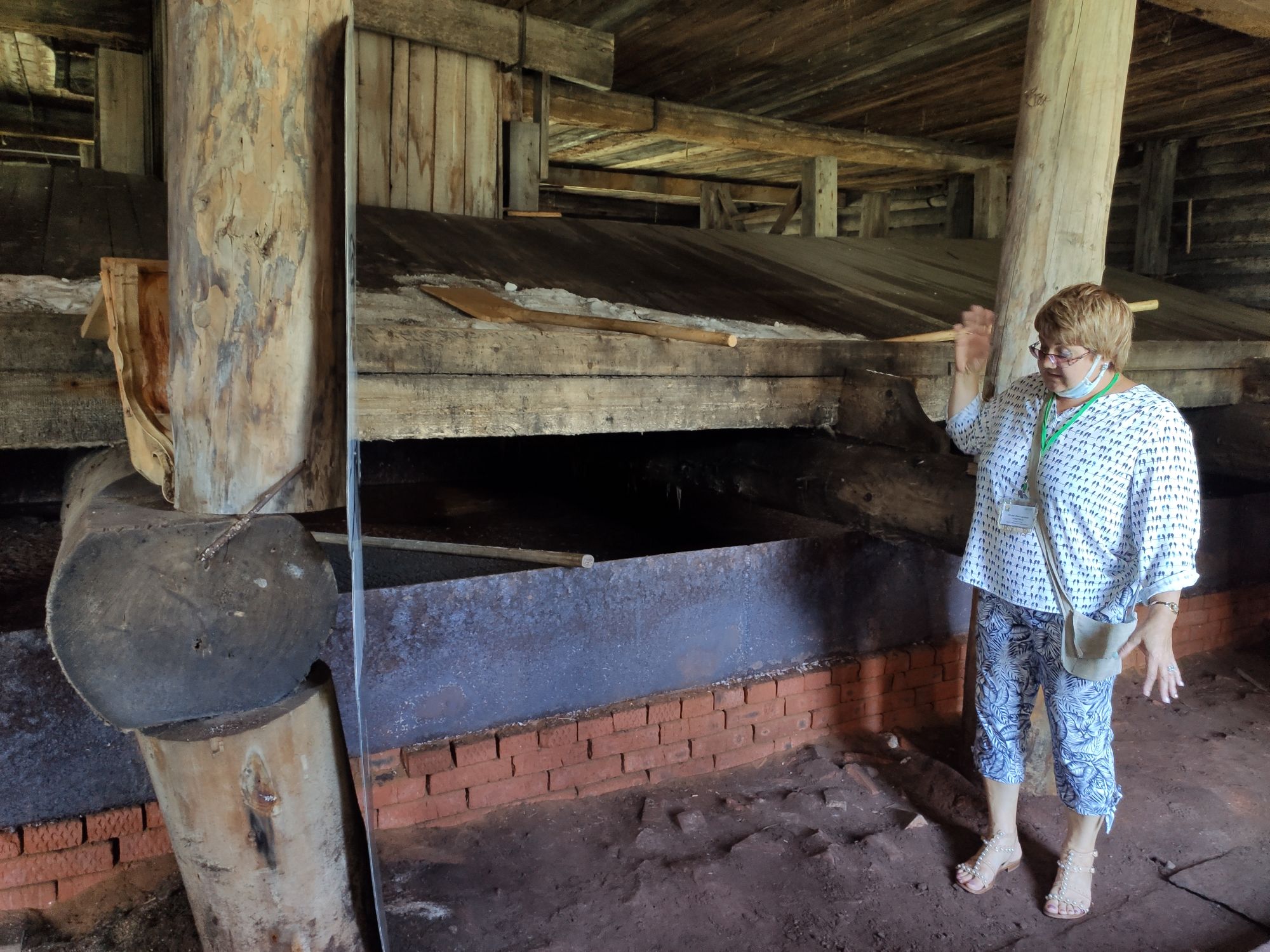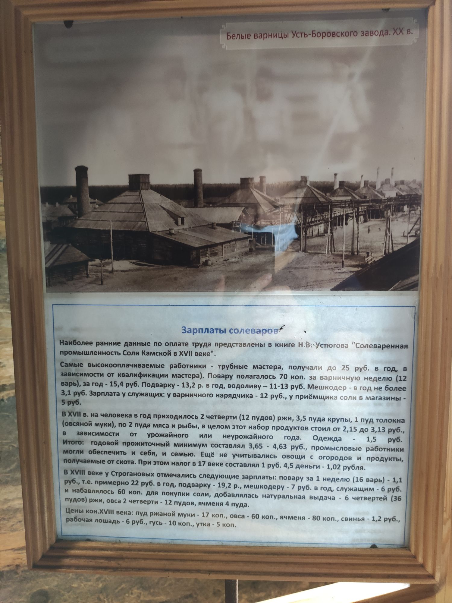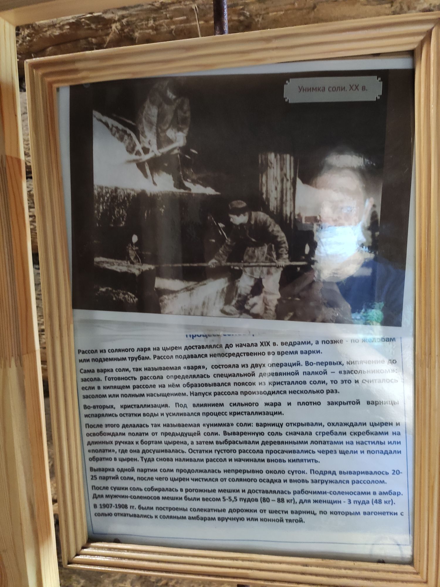2 августа 2020 Первый пункт в Соликамске - музей соли. Яндекс повел нас через лес. Встретили "Party bus"!))) И красивый домик, в котором сейчас какая-то лавка Ну и собственно то, куда привел нас Яндекс, хотя мы ему писали адрес музея Муж прям попросил - сфоткай конечную точку маршрута, пожалуйста))) А дальше был великолепнейший музей соли! Тут сохранился комплекс зданий завода, начиная с 18 века. Изумительный экскурсовод нам про всё рассказала, всячески вовлекая нас в беседу. В общем, рекомендую всем при возможности побывать. Я прям всё-всё не пересказу, поэтому предлагаю почитать статью, например, тут. Так же я постаралась оставить по максимуму все фото со стендами, которые я фоткала - вдруг, кто захочет почитать. Итак. Династия Рязанцевых, которые были первопроходцами в соляном деле на Урале. Когда-то тут было Пермское море, поэтому в толще земли есть слои с солью. И обычной "поваренной" и калийной и магниевой. И солевой раствор тут очень насыщенный 12% против 3% на севере - Архангельской и Вологодской областях. Когда-то ещё манси выпаривали себе соль, черпая ее из выкопанных ямок ведром и вываривая в небольших количествах. Потом глубина добычи постепенно увеличивалась. Пришли русские и начали копать колодцы, а потом и вовсе на скважины перешли. Сначала около 25-30 метров, а потом до 100-180 дошли. Соль была дорогая, поэтому владельцы соляных промыслов были заинтересованы в том, чтобы технология добычи улучшалась - переход от конной тяги к паровым двигателям, от черных варниц к по-белому "баварским", от колодцев к рассолоподъемным трубам. Собственно, это рассолоподъемным башня. В ней находилась скважина и насос. Башня такая высокая, чтобы по системе "рассолопоовода" можно было спускать самотёком воду в другие строения. А это ларь - по сути это цистерна/бассейн/отстойник для солевого раствора. Тут раствор становился более насыщенным, из него улетучивался запах сероводорода и т.д. Ларь делали из плотного пригнанных друг к другу бревен, конопатили, а потом ещё и стягивали стяжкой по кругу, чтобы он не лопнул. В ларь рассол поступал по системе труб. Ставился на высокий нижний этаж, чтобы был доступ к полу - если что - законопатить и устранить протекания. Варница - место, где, собственно, рождалась соль. Тут происходило таинство. Хорошие повара (или варщики) были на вес золота и зарплата у них была очень высокой по сравнению с остальным персоналом. Важно было не пропустить момент, когда надо добавить/убавить жар, помешать, снять пенку примесей, добавить рассол, убрать соль на полати и когда соль совсем готова. Одна варя шла беспрерывно около суток. Варили соль так же без перерыва от одной большой воды до другой - примерно 10,5 месяцев в году. За это время на соседних заводах делали баржи, которые повезут соль в Нижний Новгород на ярмарку. - вот этот лист в заклёпках - это цырен - огромный противень, на котором происходила варка соли. 200 листов соединялись заклёпками. Но надо же было как-то проконопатить щели! Для этого нанимали ярышек. Ярышка - это ребенок, который бегал по чуть разогретому цырену, жевал ржаную муку и конопатил разжеванной массой щели. Ну, естественно, на один цырен мальчишка был не один. Это была профессия, за которую мало, но платили. - вот этот огромный железный противень - это цырен! - после созревания соли ее сушили на полатях. При этом, внизу уже начинали новую 