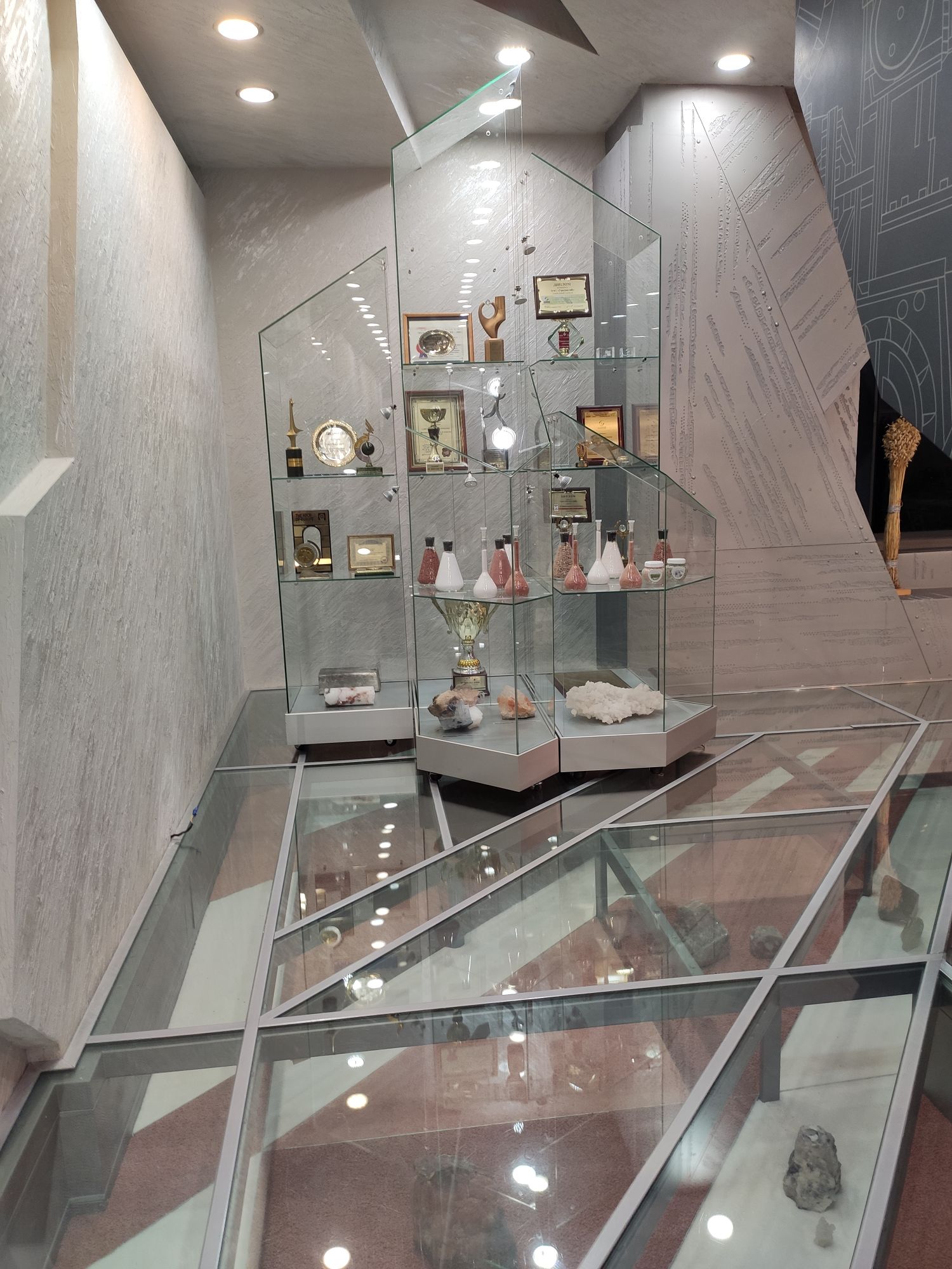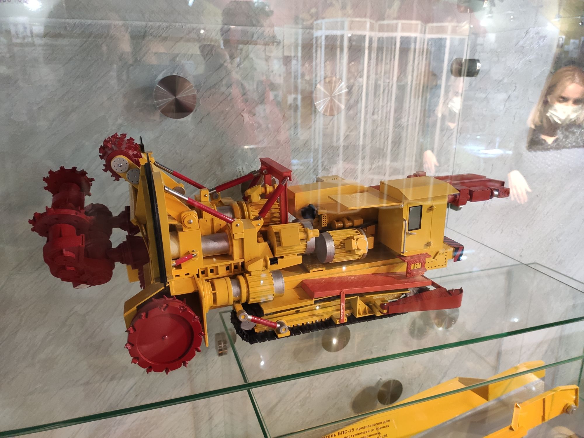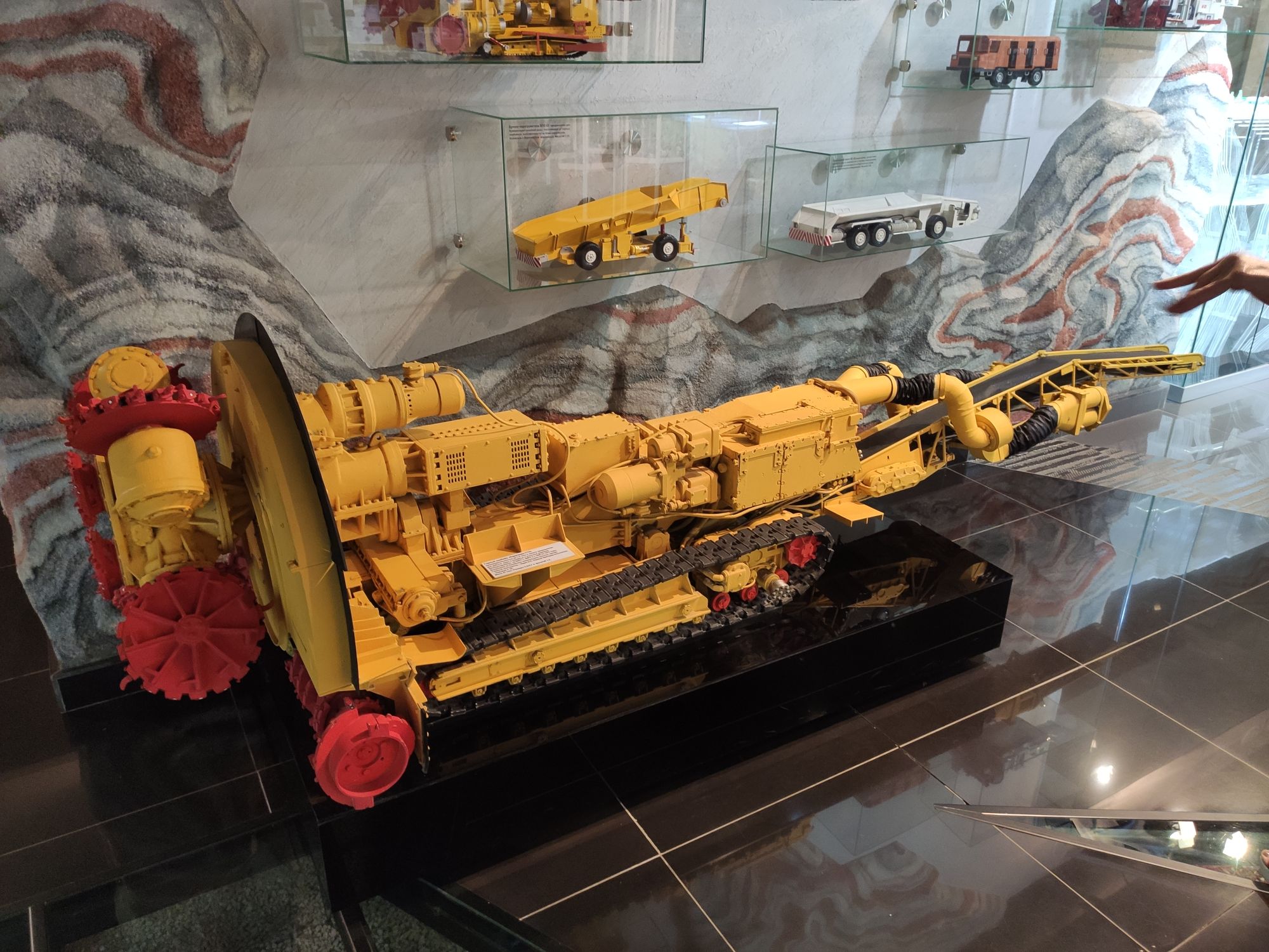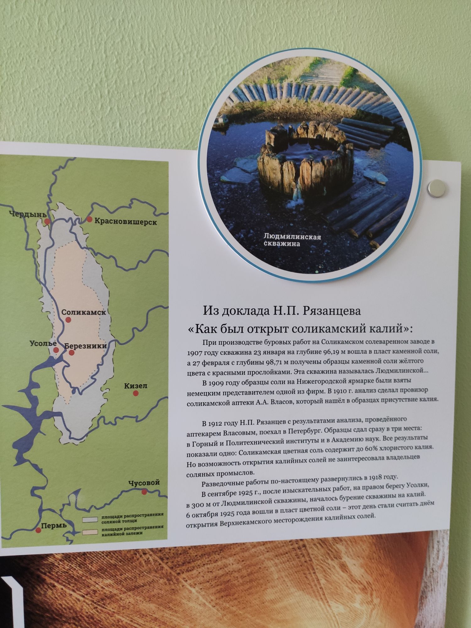 4 августа 2020 Сегодня был ленивый день. В 12 у нас была заказана экскурсия в ведомственный музей Уралкалия. Музей очень классный. Все очень наглядно. Видно, что у предприятия есть деньги, раз оно может так оснастить музей. Экскурсия, правда, началась как-то скучновато. Я даже успела подумать, что это даже и не экскурсия, а нам просто покажут что в музее и всё))) Но довольно быстро экскурсия поменяла настроение))) Девушка увидела наш интерес и стала рассказывать больше и с задором. По стеклянным полам можно ходить, разглядывая минералы. На стендах представлены разные виды соли и пород, из которых эту разную соль добывают. Вообще, в окрестностях Соликамска и Березников находится огромный пласт солей калия и магния. Ну и поваренной соли, хотя ее из подземного рассола добывать не выгодно сейчас, ибо есть соленые озера Калмыкии, например, где соль можно прям черпать горстями практически. Порода, в которой находится калий называется сильвинит. Он очень твердый и тяжёлый. И ещё очень красивый. Эта скульптура сделана как раз из сильвинита. Порода с магнием называется карналлит. Но про него нам мало рассказывали. В первом зале помимо образцов пород маленькая выставка палеонтологических находок. И ещё стоит ящер, который, по идее, должен рычать, но нас он решил не пугать и сломался. Мастера ему, если что, уже вызвали))) Тут не могло не быть макета прародителя калийных рудников - солеварни. Именно с поваренной соли все и началось. Макет шахты. Первая калийная шахта была построена и пущена в Соликамске. В Березниках запустили позже. Маленький зал, посвященный советскому времени Около этих сувениров я замерла И тут нам показали ёлочку, которую вырастили для новогоднего конкурса в шахте. Правда, красавица?) В отдельной комнате стоит большой макет порта Уралкалия в Санкт-Петербурге. Там очень хитрая схема разгрузки-погрузки. Удобрения привозят в вагонах. У вагонов в спец. ангарах открывается дно и руда попадает в спецхранилище. Дальше она будет перемещаться только по специальным транспортерам, чтобы не набраться влаги из воздуха и т.д. Плюс - тут все экологично. После погрузки на танкеры руду везут в основном в Китай, Индию, Бразилию и ещё примерно 65-70 стран. А затем был зал с механизмами. Сначала модели машин. Это самая первая машина, созданная для угольных шахт, которую пытались приспособить под работу с сильвинитом. Но порода значительно твёрже угля, поэтому машина не справлялась. И встал вопрос о создании машины специально по эту породу. Сейчас используют две. Первая - наша, Корейского завода. Говорят, что она надёжнее. Вторая - импортная. Производительность у нее выше, но она заточена под более мягкие породы (если не ошибаюсь, в Канаде), а в нашей часто выходит из строя. И два "прицепа". В один из них складируется руда. Как только он наполняется, то высыпают всё в самоходный вагон, который и увозит руду к выходу из шахты. А тут показаны 2 проходки (2 "этажа" в шахте). Это маркшейдеры - люди, без которых, как я поняла, не продвинутся ни на метр. Они изучают породу и говорят как должны пройти тоннели. А этот макет машины рабочий - у него крутится механизм и все громыхает! Эта машина захватывает кусок породы размером с однокомнатную квартиру и перемалывает ее. Винты снизу как у мясорубки подхватывают руду и отправляют ее в прицеп. Сверху есть мощный пылеуловитель. И всем эт