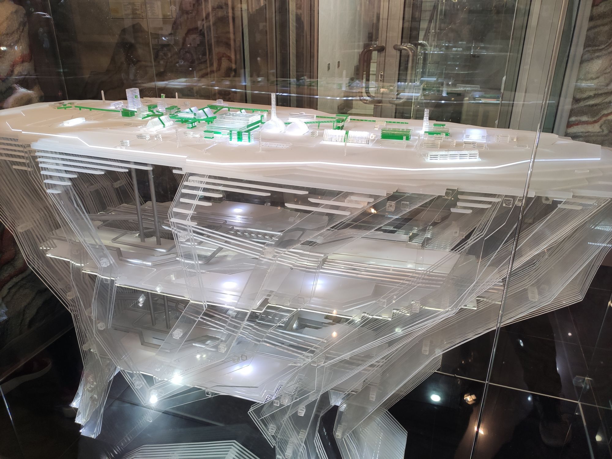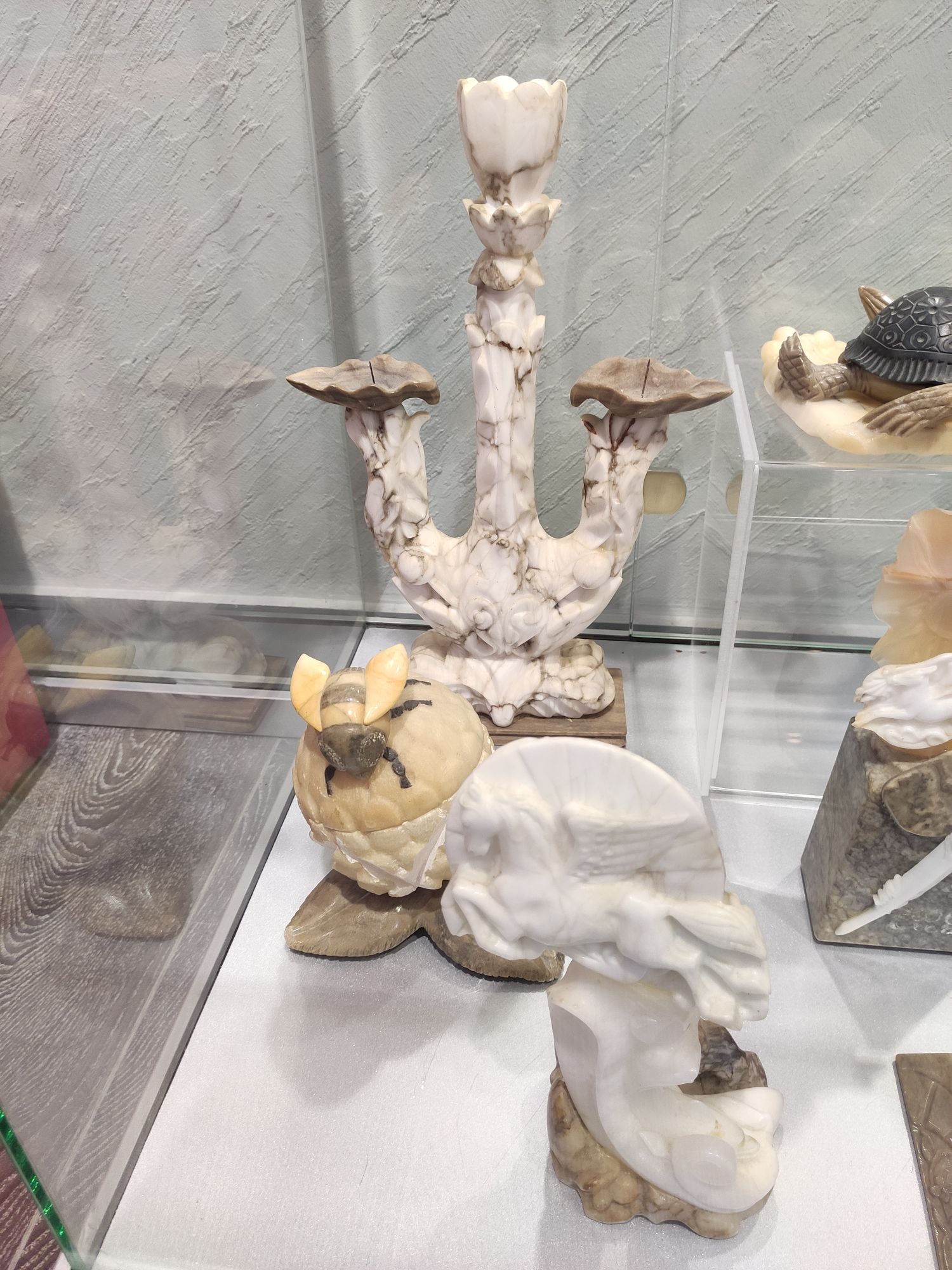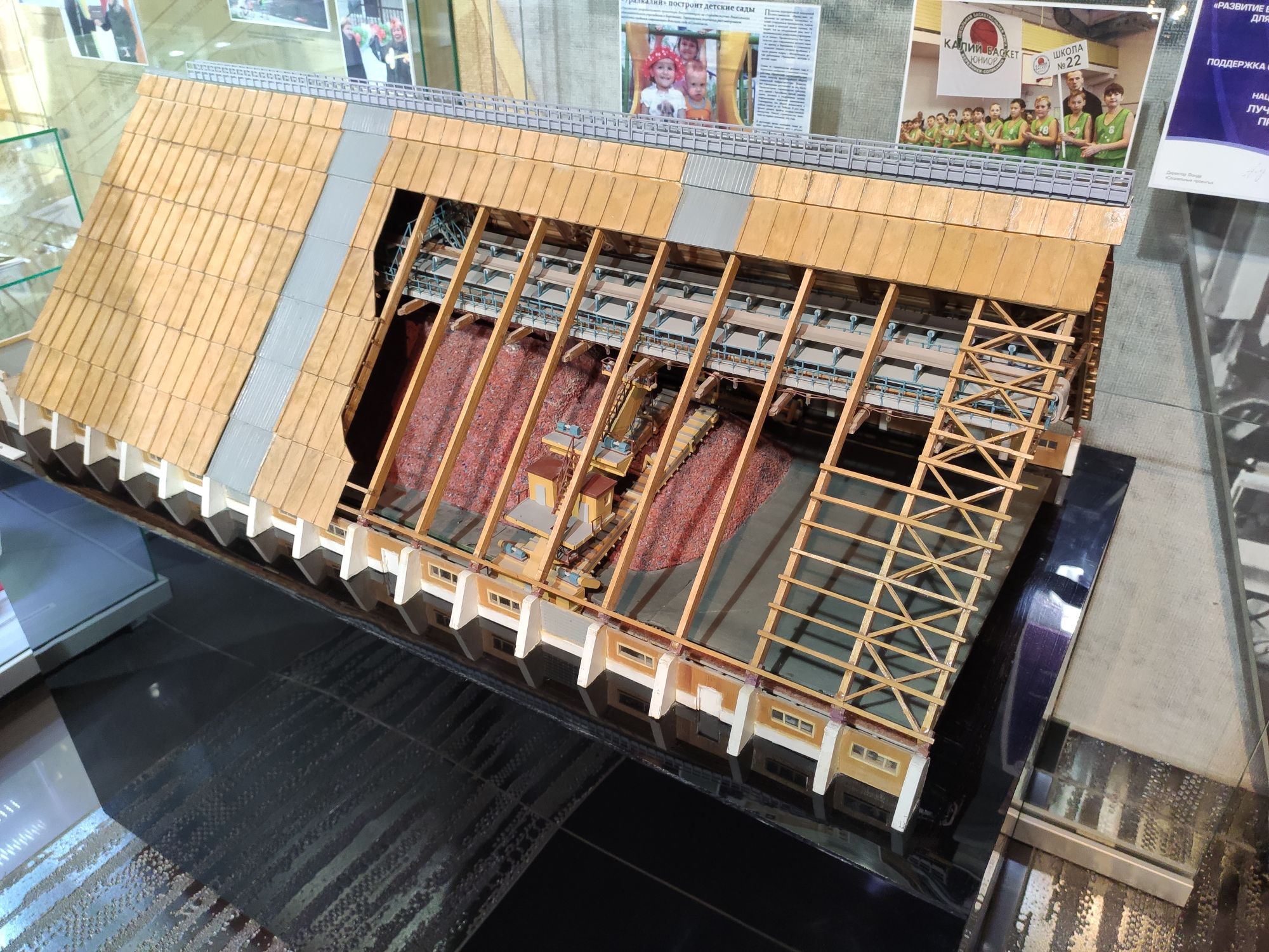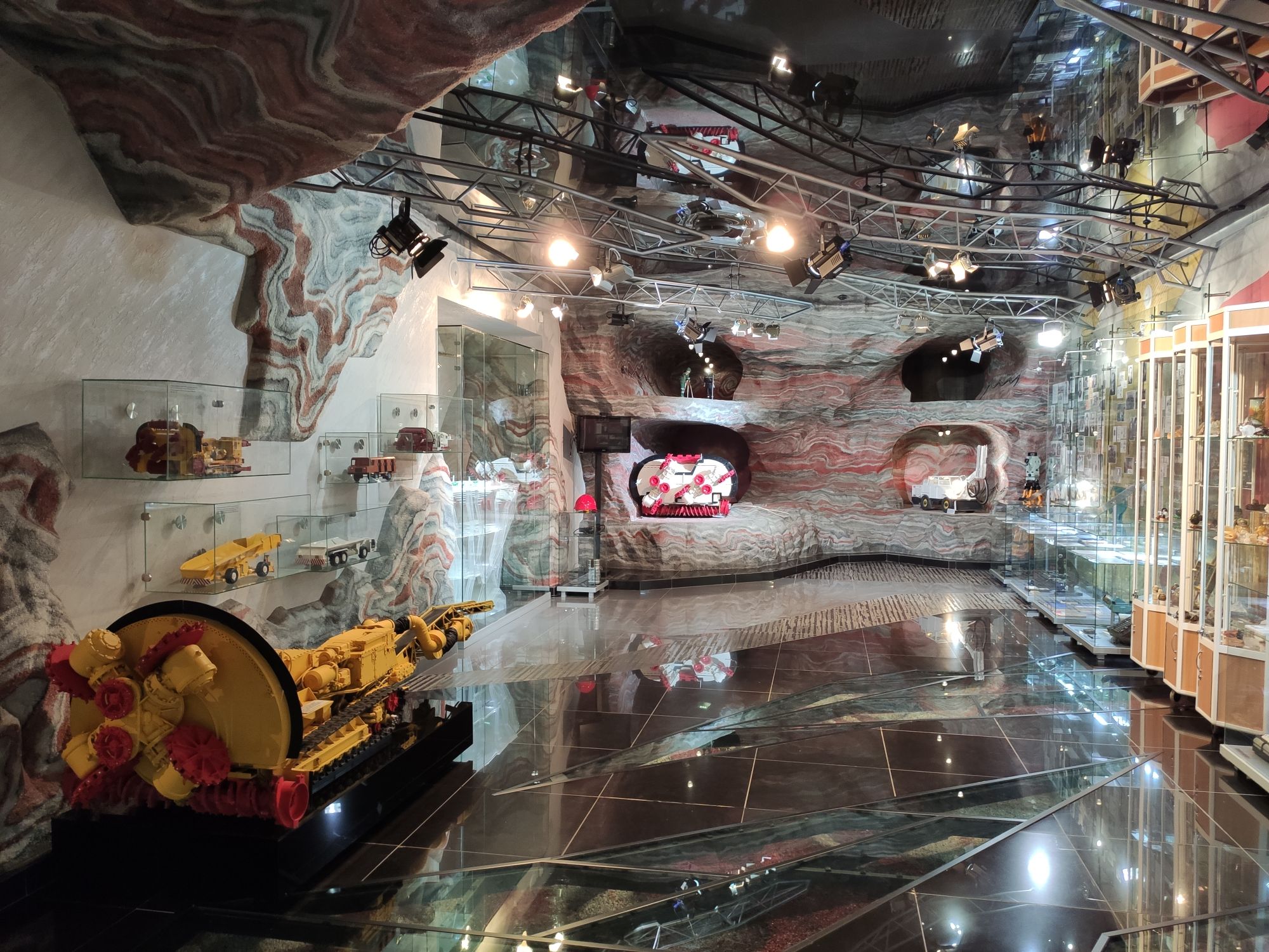 4 августа 2020 Сегодня был ленивый день. В 12 у нас была заказана экскурсия в ведомственный музей Уралкалия. Музей очень классный. Все очень наглядно. Видно, что у предприятия есть деньги, раз оно может так оснастить музей. Экскурсия, правда, началась как-то скучновато. Я даже успела подумать, что это даже и не экскурсия, а нам просто покажут что в музее и всё))) Но довольно быстро экскурсия поменяла настроение))) Девушка увидела наш интерес и стала рассказывать больше и с задором. По стеклянным полам можно ходить, разглядывая минералы. На стендах представлены разные виды соли и пород, из которых эту разную соль добывают. Вообще, в окрестностях Соликамска и Березников находится огромный пласт солей калия и магния. Ну и поваренной соли, хотя ее из подземного рассола добывать не выгодно сейчас, ибо есть соленые озера Калмыкии, например, где соль можно прям черпать горстями практически. Порода, в которой находится калий называется сильвинит. Он очень твердый и тяжёлый. И ещё очень красивый. Эта скульптура сделана как раз из сильвинита. Порода с магнием называется карналлит. Но про него нам мало рассказывали. В первом зале помимо образцов пород маленькая выставка палеонтологических находок. И ещё стоит ящер, который, по идее, должен рычать, но нас он решил не пугать и сломался. Мастера ему, если что, уже вызвали))) Тут не могло не быть макета прародителя калийных рудников - солеварни. Именно с поваренной соли все и началось. Макет шахты. Первая калийная шахта была построена и пущена в Соликамске. В Березниках запустили позже. Маленький зал, посвященный советскому времени Около этих сувениров я замерла И тут нам показали ёлочку, которую вырастили для новогоднего конкурса в шахте. Правда, красавица?) В отдельной комнате стоит большой макет порта Уралкалия в Санкт-Петербурге. Там очень хитрая схема разгрузки-погрузки. Удобрения привозят в вагонах. У вагонов в спец. ангарах открывается дно и руда попадает в спецхранилище. Дальше она будет перемещаться только по специальным транспортерам, чтобы не набраться влаги из воздуха и т.д. Плюс - тут все экологично. После погрузки на танкеры руду везут в основном в Китай, Индию, Бразилию и ещё примерно 65-70 стран. А затем был зал с механизмами. Сначала модели машин. Это самая первая машина, созданная для угольных шахт, которую пытались приспособить под работу с сильвинитом. Но порода значительно твёрже угля, поэтому машина не справлялась. И встал вопрос о создании машины специально по эту породу. Сейчас используют две. Первая - наша, Корейского завода. Говорят, что она надёжнее. Вторая - импортная. Производительность у нее выше, но она заточена под более мягкие породы (если не ошибаюсь, в Канаде), а в нашей часто выходит из строя. И два "прицепа". В один из них складируется руда. Как только он наполняется, то высыпают всё в самоходный вагон, который и увозит руду к выходу из шахты. А тут показаны 2 проходки (2 "этажа" в шахте). Это маркшейдеры - люди, без которых, как я поняла, не продвинутся ни на метр. Они изучают породу и говорят как должны пройти тоннели. А этот макет машины рабочий - у него крутится механизм и все громыхает! Эта машина захватывает кусок породы размером с однокомнатную квартиру и перемалывает ее. Винты снизу как у мясорубки подхватывают руду и отправляют ее в прицеп. Сверху есть мощный пылеуловитель. И всем эт