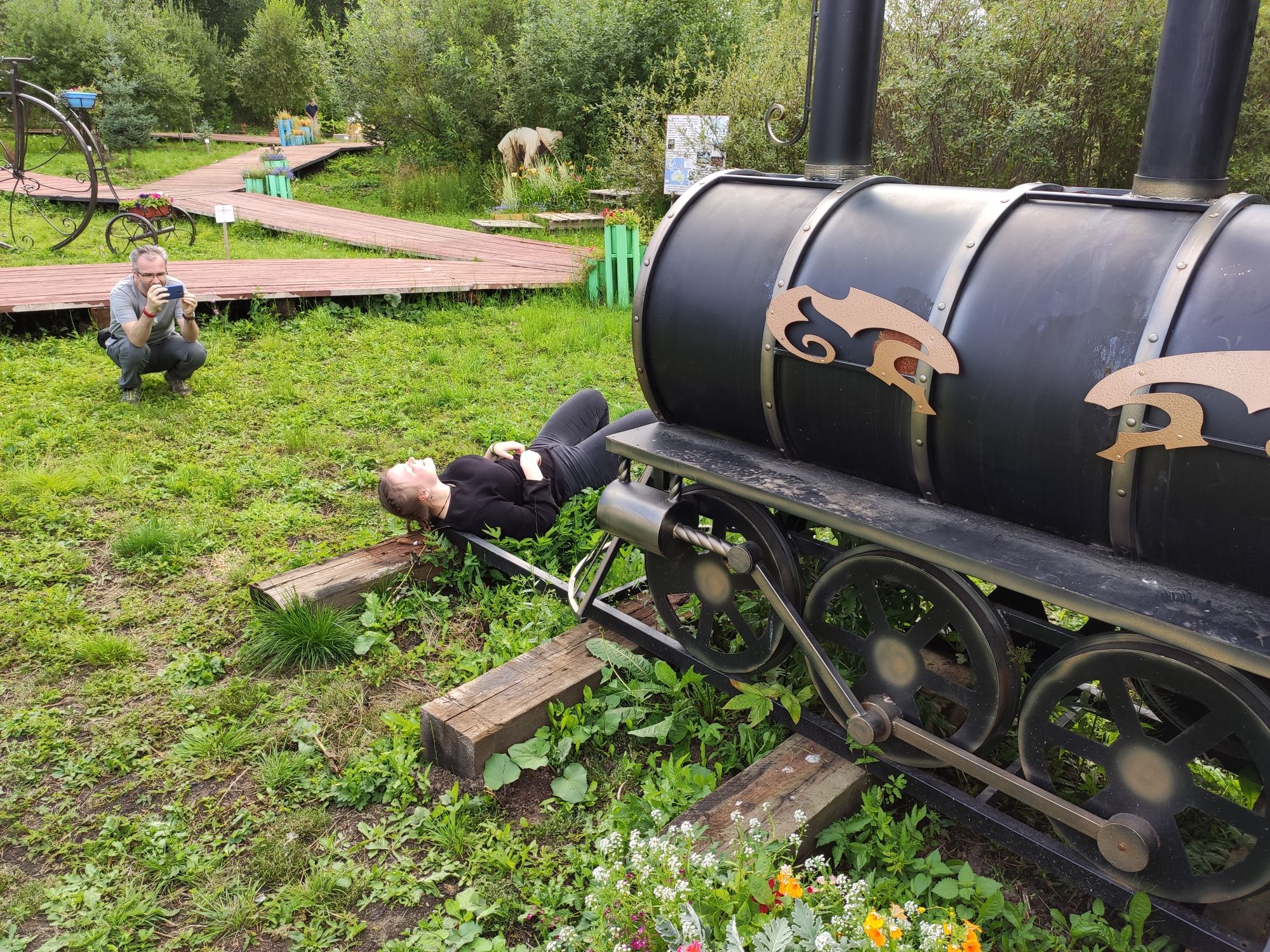 3 августа 2020 Дальше по списку шел Ботанический сад. Мы туда поехали только потому, что там осталась рассолоподъемная труба от скважины. Сад произвел какое-то странное впечатление - вроде цветочков много, но все какие-то не ухоженные что ли... Видно, что постоянно ведутся работы, но как-то всё нелепо и разрозненно что ли... А тематические подборки по странам - это вообще грубая пародия. И все за денежку. Солнечные часы в тени))) По всему саду каменные следы Йети, но мы так и не поняли почему. Пройдя через ещё пару клумб Мы увидели указатель Берег приключений. Помня, что на стенде были тематические участки типа Франция, Англия, Япония и т.д. мы решили заглянуть. Даааа... Не так я себе представляла уголки этих стран))) Почему-то это всё перемежались техническими устройствами - воздушный шар, вертолёт, аэросани, поезд. Но тут мы были в хорошем настроении, ржали как кони и сделали кучу фоток))) Рассолоподъемная труба в самом дальнем конце парка оказалась. Прям рекомендовать не могу, но дети там носятся с удовольствием, вроде. Опять три фото не вставились в текст)))) Надо мне внимательнее быть. Не знаю, что это за экспозиция, но прям огонь))) А это - японский садик!!! Камни там... И красивый вид, который отправлял нас посмотреть центр города)) оленек, Хозяйка смешных зверей, Lorans и 32 других сказали спасибо Поделиться сообщением Ссылка на сообщение