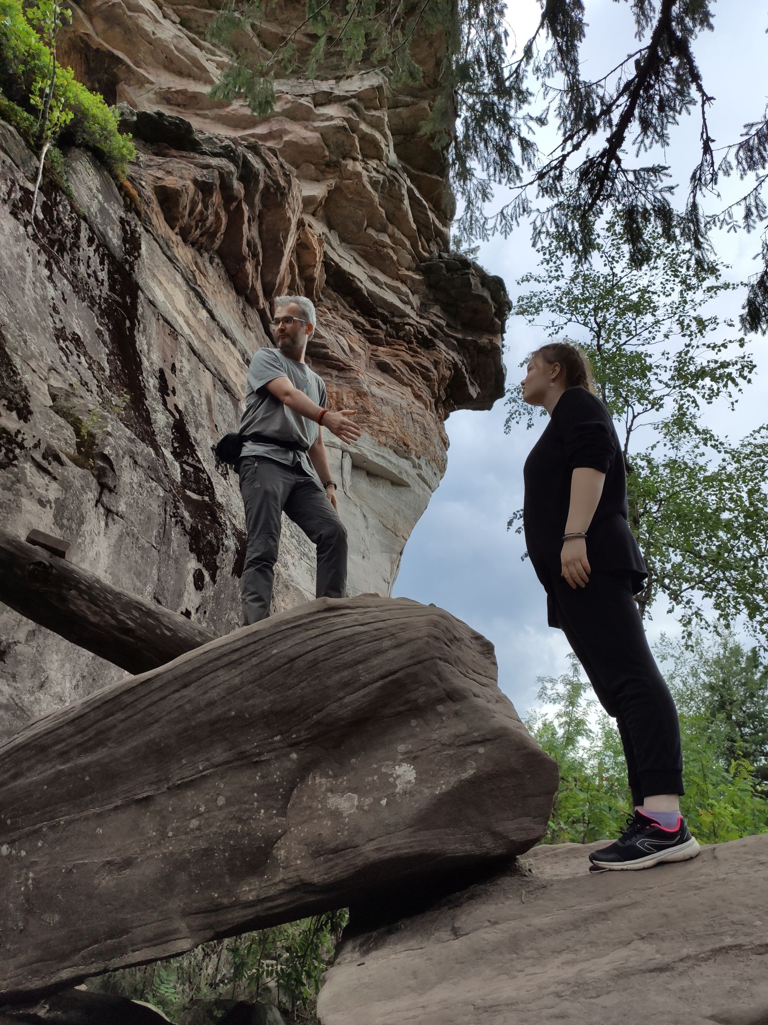 3 августа 2020 Сегодня, 3 августа, день начался в 5 утра по Перми и в 3 часа ночи по Москве. Бодро вскочив с мужем, выпили кофеечку, разбудили Соню, напоили ее чаем и устремились))) Сразу скажу, что поход наш бы мегапозитивный. Шли не как все нормальные люди, а дошли по реке до конца скалы и потом поднялись вверх и по всей скале шли назад. Прошли около 7,5 км, если не ошибаюсь, за 3 часа примерно. Река называется Усьва. Отмечу, что экология - это не про Урал. Тут на каждом шагу предприятия, которые либо действуют сейчас, либо уже прекратили действовать, но до сих пор оставляют свой неприятный и опасный след. С утра по Усьве плыли ошмётки пены. Как нам потом рассказали, в старых шахтах до сих пор есть выход кислотной воды, отсюда и пена. Но нам это не портило настрою совсем. Путь вдоль реки: Лезем вверх. Набор высоты резкий, я почти не фоткала. Дочь пыталась остаться лежать там, но мы придали ей бодрости и пошли дальше))) Начинают появляться виды с высокого берега за деревьями. Дошли до Чертова пальца. Это отдельно стоящий останец. Выглядит эффектно. Но на самом деле - таких вертикальных скал тут много. И мы идём по части из них. Просто они ещё не откололись))) Повсюду трещины и надо смотреть под ноги. Дошли до грота. Как оказалось, тут нашли стоянку древних людей. И путь вниз по нормальной тропе))) На обратном пути встретили мужчину, который только проснулся. Ему очень хотелось пообщаться. Он нам много интересного про Урал рассказал. Попрощались с ним и пошли к машине. Еще наверху Женька пожаловался, что болит нога над пяткой. Внизу он уже заметно прихрамывал. Решили исключить все остальные пешие треки и потихоньку начинать ехать к дому, чтобы перегоны не были большими. День на этом не закончился))) Lusha73, Nata_Struchkowa, Leutnant Ripley и 33 других сказали спасибо Поделиться сообщением Ссылка на сообщение