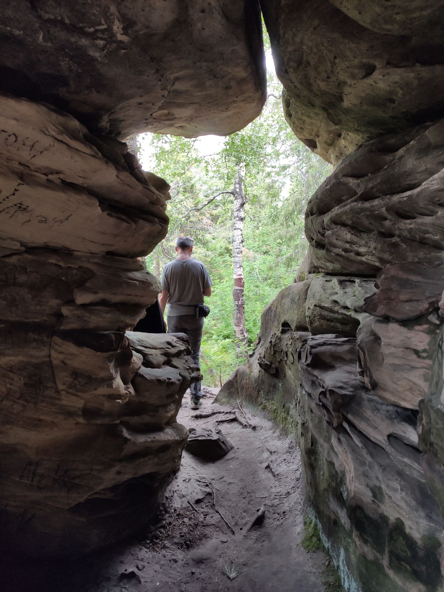 3 августа 2020 Через Яйвинскую ГРЭС (выяснив заодно, что это Государственная районная электростанция, которые строились в рамках проекта ГОЭЛРО). Познавательная поездка. Проехали по местам, где прошел ураган. Причем, на днях прошел - сломы у деревьев свежие и листья ещё не завяли. Очень много сломано, повалено и погнуто. Потом из прохлады въехали в жарищу. Посетили горнолыжный курорт Губаху, чтобы сфоткать надпись Счастье в горах))) Но сюда мы ещё вернёмся, а пока приглашаю прогуляться по легкодоступной, а поэтому очень многолюдной достопримечательности Каменный город. Фоток много. Но по сути, тут каменные останцы причудливой формы, с "улицами" разной ширины между ними. Сейчас туда ведёт вот такая тропа с деревянным настилом. Но надо быть аккуратным, т.к. часть досок уже держится или на одном гвозде или вообще ни на одном, поэтому, наступив на краешек такой доски, рискуешь упасть с тропы. Хорошо, если просто упасть. Городов как бы два. В Большом море народу тут прям морда демона))) Муж как обычно рванул наверх. Дочь пыталась за ним, но не смогла. Я решила, что в скользких кроссовках тоже не стоит. На четвертой фотке видно мужа сверху))) Пятое фото его - это вид сверху. А потом мы потихоньку начали пробираться в малый город. Встретили горных коров, приводивших всех в восторг) Про малый город знает мало народу, поэтому сначала мы тут были вообще одни. И, надо признать, что малый круче большого. Немного микромира)) И профили великан И медведь))) Муж сказал, что мне надо обнять мишку) На ночевку решили встать около ещё одного популярного места - Усьвинских столбов. Срезали часть пути по дороге вдоль газопровода. Вечером решили уже не ходить, а пойти с утра пораньше, чтоб людей не было. А ночью часы у мужа почему-то переключили экран на красную мышь))) irchick2308, Хозяйка смешных зверей, Кисуля и 32 других сказали спасибо Поделиться сообщением Ссылка на сообщение