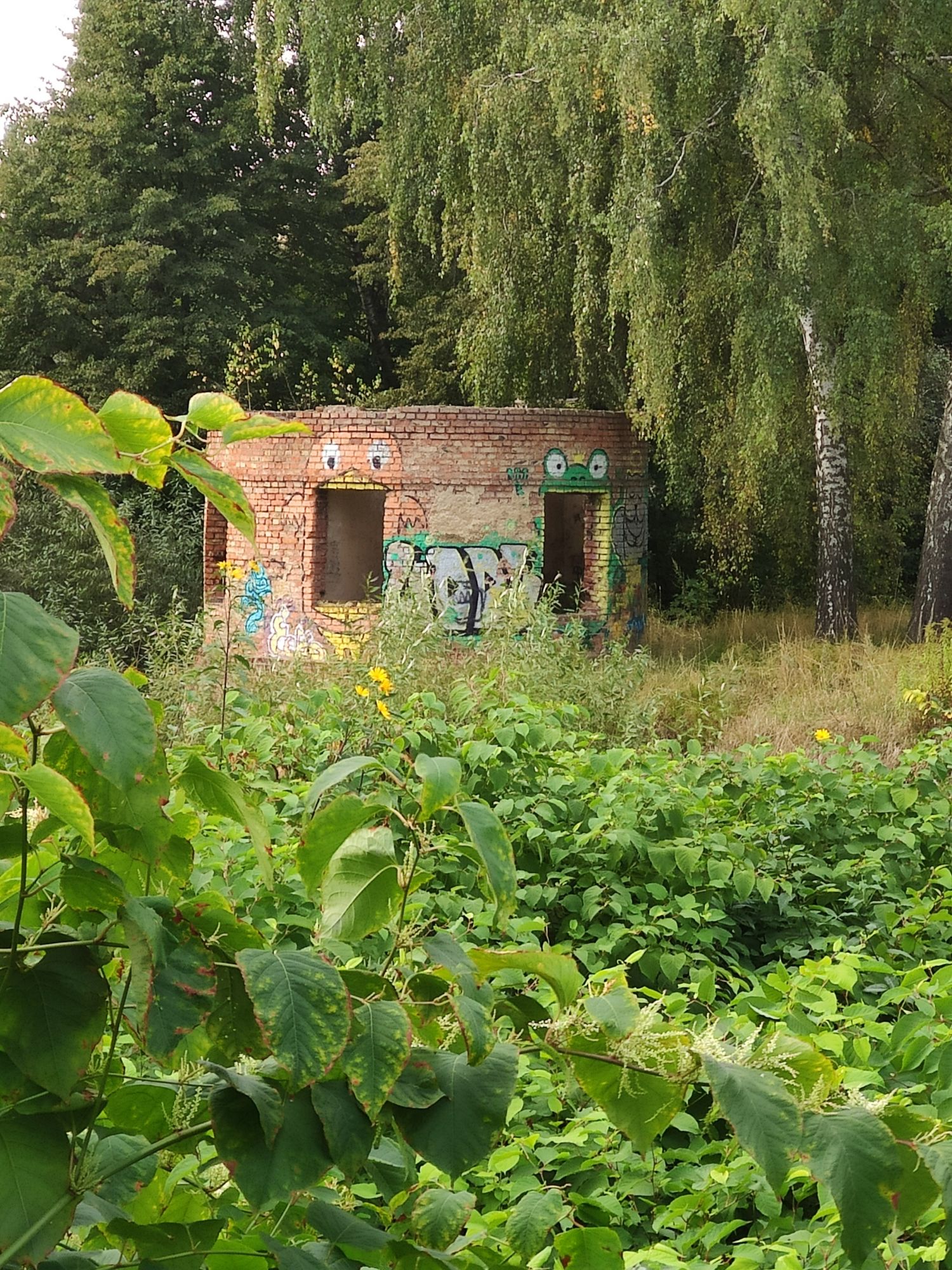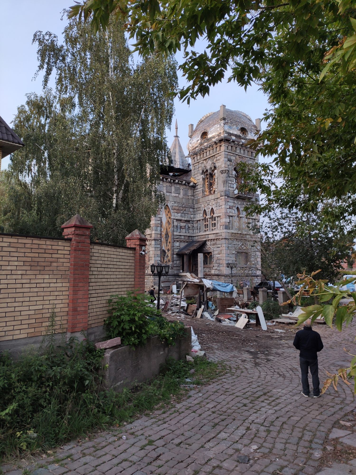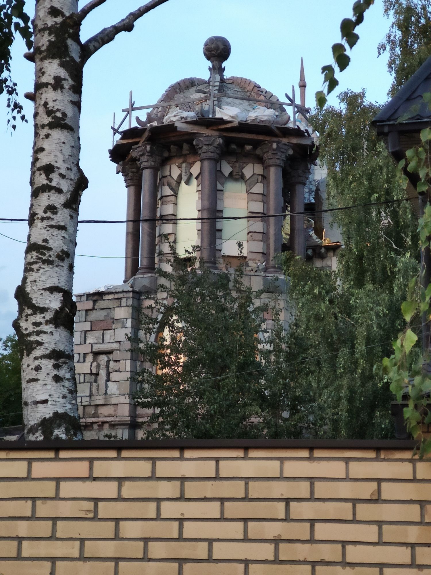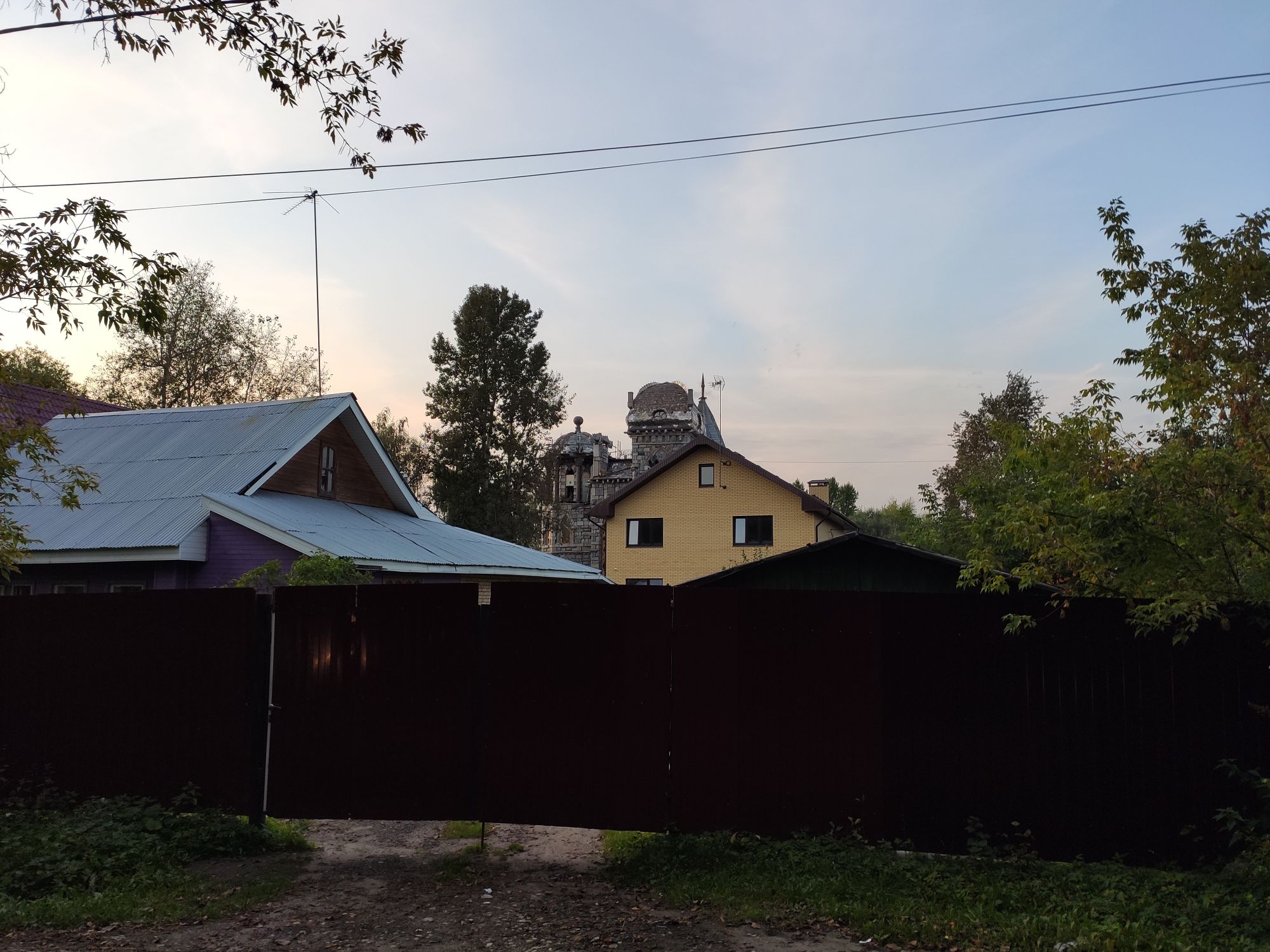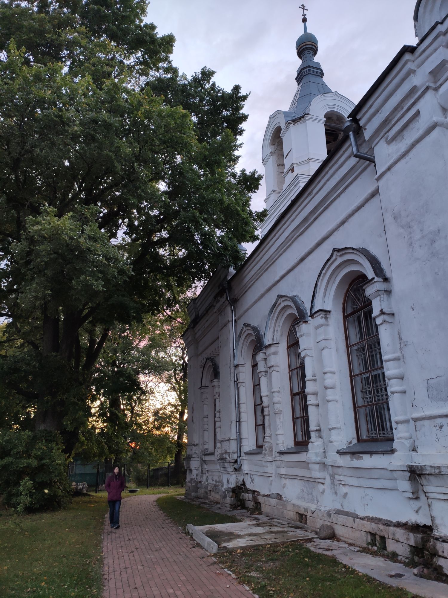 13 сентября 2020 Ну и опять наплюю на хронологию - отодвину рассказ про Тотьму. В общем, во вторник или среду муж подал идею сходить на шашлыки в лес с кем-нибудь из знакомых. Ну ок. Тут в пятницу написали знакомые и мы с ними договорились, что в субботу вечером дегустируем настойку))))) А, собственно, в субботу, т.е. вчера с утра они написали, что у них случился форс-мажор и они не смогут. Я посмотрела на мужа и предложила - А поехали (это слово важно!) посмотрим Троицкое-Кайнарджи. Это же совсем недалеко и мы давно хотели туда заехать. Муж посмотрел в телефон и сказал - Ок. Только едем не на машине, а на электричке. Тут 16 км, а ехать час! Я сказала ок, а он ответил, что нам надо через 15 минут выбегать, чтоб успеть на электрички. Оделись, выбежали)))) Сели у нас на Горенках, доехали до Реутова, там пересели на другую ветку и доехали до Кучино. Оттуда пешочком километра 4. Нормально погуляем, решили мы) По пути нашли на детской площадке маяк))) Потом перешли по мосту нашу Пехорку Прошли мимо пруда со смешным названием Макаронка. По пути "краеведили". Читали про завод "Прогресс", дачу купца Милованова и т.д. Живём ведь рядом, а столького не знаем. За заводом Прогресс свернули в лес. И до Троицкого-Кайнарджи уже шли по лесу. Когда я читала статьи про эту усадьбу и слушала экскурсии в музее ( @Каори, ты должна помнить), то представляла себе все совсем не так. Казалось, что тут должны быть большие площади и простор. Оказалось, что на маленькой площади стоит церковь, церковь-часовня и мавзолей. И вокруг кладбище. Вот на этом фото видно как всё компактно А вообще, у этого места богатая история. Здание усадьбы не сохранилось, хотя оно было очень интересным. Вот статья про усадьбу https://vadimrazumov.ru/3429.html На самом деле там ещё есть остатки акведука, который раньше шел к усадьбе (2 части в развалинах). Но мы решили, что до них далеко (1,5 км до ближнего)... И... решили, что надо пойти и посмотреть башню в стиле стимпанк в Салтыковке, про которую уже несколько статей попалось. Ну да, там же не 1,5 км, а всего 9... Ну пошли... Прошли остатки насосной станции Перешли Пехорку, Чечёру, Руднёвку и Никольскую канаву (краеведение, ага...) Шли очень красивыми полями (Вот тут примерно муж и вспомнил про то, что он хотел шашлык, а не прогулку на много км)))) На одном из полей лежали катушки. Я думаю - сейчас дойдем до вооот той, сфоткаю ее с обратной стороны, чтоб солнце не мешало. Дошли, оборачиваюсь, а там натюрморт "нарочно не придумаешь"))) Где-то тут скинула девчонкам карту...))) Безумству храбрых... Осень в этом году никак не становится золотой. На землю падают коричневые листья, но деревья в основном зелёные. Поэтому увидеть красный клён среди зелени было как чудо. Вышли в Салтыковку. В один из моментов, когда я сверялись с картой в телефоне, я поняла, что мы идём мимо школы имени Жени Рудневой. Одна из легендарных Ночных ведьм (про них много статей в интернете и даже фильм снят). Потом прошли красивый дом с большими окнами и наличниками. Поселок Салтыковка - это по сути дачные участки. Хотя сейчас там, как я понимаю, люди живут круглогодично. Домики от развалюх (но таких совсем мало) до дворцов. Один из дворцов - это "дворец Брынцалова в Салтыковке". Про него знал муж и даже узнал, когда мы проходили мимо. Внутрь мы, конечно же, не попали, но снаружи он тоже впечатляет. Забор со львами по углам, с грифонами на воротах, с коваными ажу