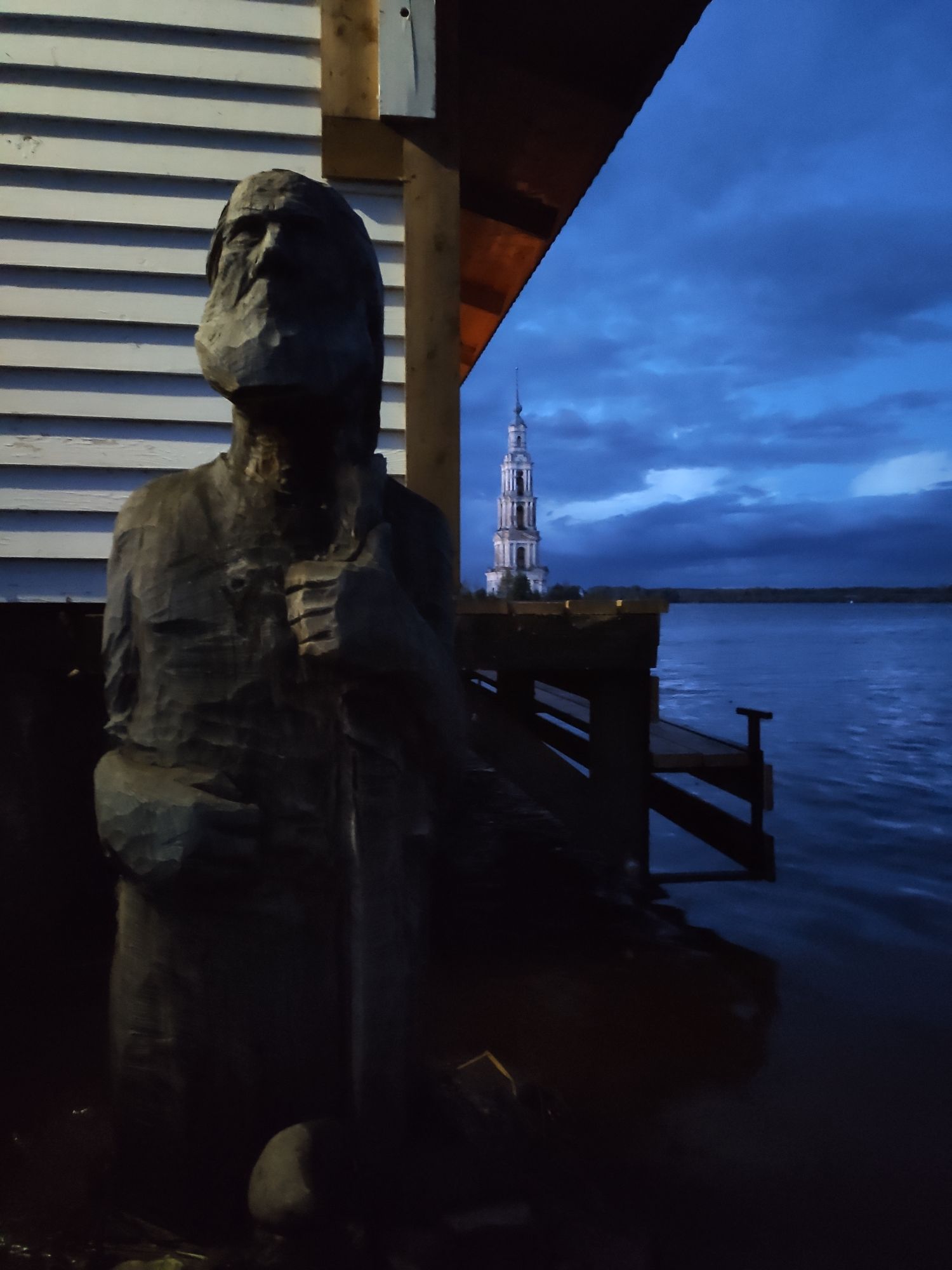 27 сентября 2020 И Рыбинск. Фото миллион. Город, как мы решили, именно славный. Он какой-то цельный и добрый. И исторический центр у него прекрасен. Вокруг все ухожено, везде клумбы и чистота. Я молчу про богатейшую историю. Первый день мы решили пройти маршрутом по игре. Я уже как-то писала, что там картинки в профиль можно собрать. Так вот тут мы собирали вид на ночной собор Рыбинска. Маршрут оказался очень классным, т.к. мы посмотрели почти всю историческую часть. Начинался он от авиационного училища. По советской части города через парк около завода Сатурн, который делает двигатели для самолётов. А ещё у него есть дочернее предприятие "Русская механика", которая единственная в стране производит снегоходы. Памятник Павлу Соловьёву, который занимался конструированием двигателей для нескольких типов самолётов. Прекрасный плакат! Мы прям поржали. А это заводской поселок. Построен, естественно, в советское время. Дома с советской атрибутикой, колоннами, башенками с часами, высокими потолками и т.д. Это, например, - детский сад! А это - Дом культуры Памятник Дерунову, который в 1960 году был назначен директором завода. Под его руководством рыбинский завод стал одним из ведущих производителей авиационных моторов, развивались и другие направления — производство дизельных моторов, новинкой для СССР стало производство снегоходов «Буран». Вид на авиационное училище и площадь Дерунова. А мы перемещаемся на набережную через позднесоветские районы Волжский парк. Кусочек посвящен Великой Отечественной - стоит военная техника, памятник генералу Батову, родившемуся в Рыбинском уезде, воевавшим в Первую мировую, Гражданскую и Великую Отечественную. За ним памятник авиатору виден. И набережная. Памятник авиатору смотрится очень круто. Как-то торжественно и гордо. Прям залюбовались! А вот та часовня на другом берегу не давала нам покоя. Манила изо всех сил. Но в этот день мы её не осилили, хотя выяснили, что стоит она в Петровском парке, в котором раньше находилась усадьба МихАлковых (нонче это МихалкОвы - Никита и др.))) Про это нам в музее потом расскажут. Осенние дорожки, идя по которым мы шуршали листьями... И памятник рыбакам, который с каждым взглядом приоткрывал свои новые винтики - то одна рыбка, то другая, то осетр, то ещё что. Мы возле него небольшую фотосессию устроили))) Потом вышли к какой-то старой то ли сцене, то ли заросшей смотровой. Кто закрыл глаза и случайно лизнул решетку - тот я Почувствовала себя ребенком. Аккуратно подстриженные и ухоженные кустики на клумбах Дальше мы повернули в город, чтобы пройти по разным улочкам. Обратите внимание на вывески. Насколько я понимаю, город обязывает магазины и всякие конторы делать вывески в старом стиле. Не все соблюдают, но выглядит интересно. Там даже Магнит косметик будет на фото))) Вот этот цветочный магазин то ли сетевой, то ли их всех обязали сделать красивые композиции перед входом, т.к. мы несколько по городу подобных видели. Памятник сантехнику у здания водоканала. Рядом ещё и золотой рыбке стоит, но он плохо получился. Много магазинов со словом "добрый" в названии. Например, Добрый зуб))) Пока я жар-птиц фотографировала, Ася нашла себе ошейничек))) Дом с интересной историей, которую мы прочитали уже по пути в Череповец на купленных на следующий день в музее карточках. Примерно в этом месте Евгений по
