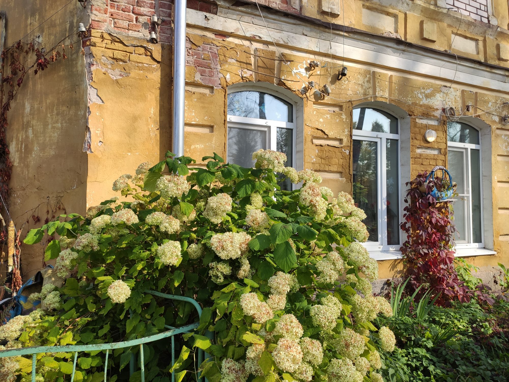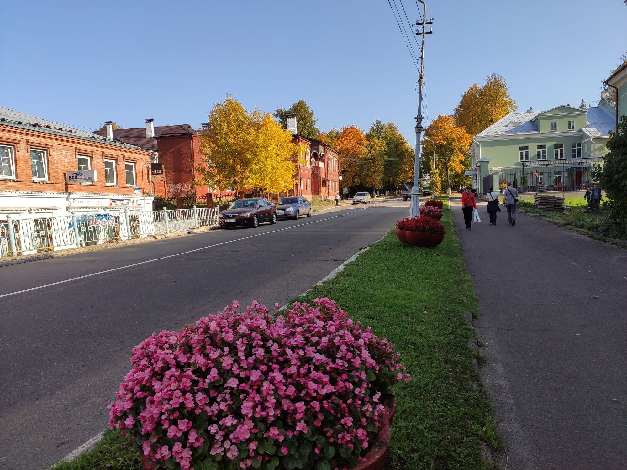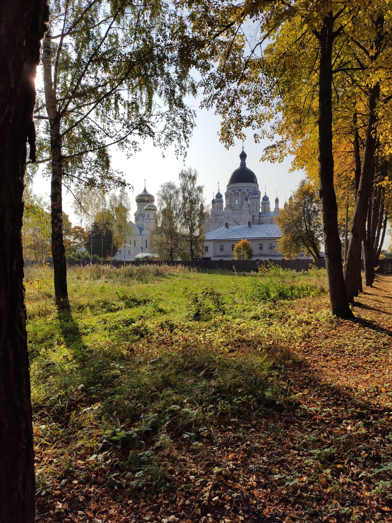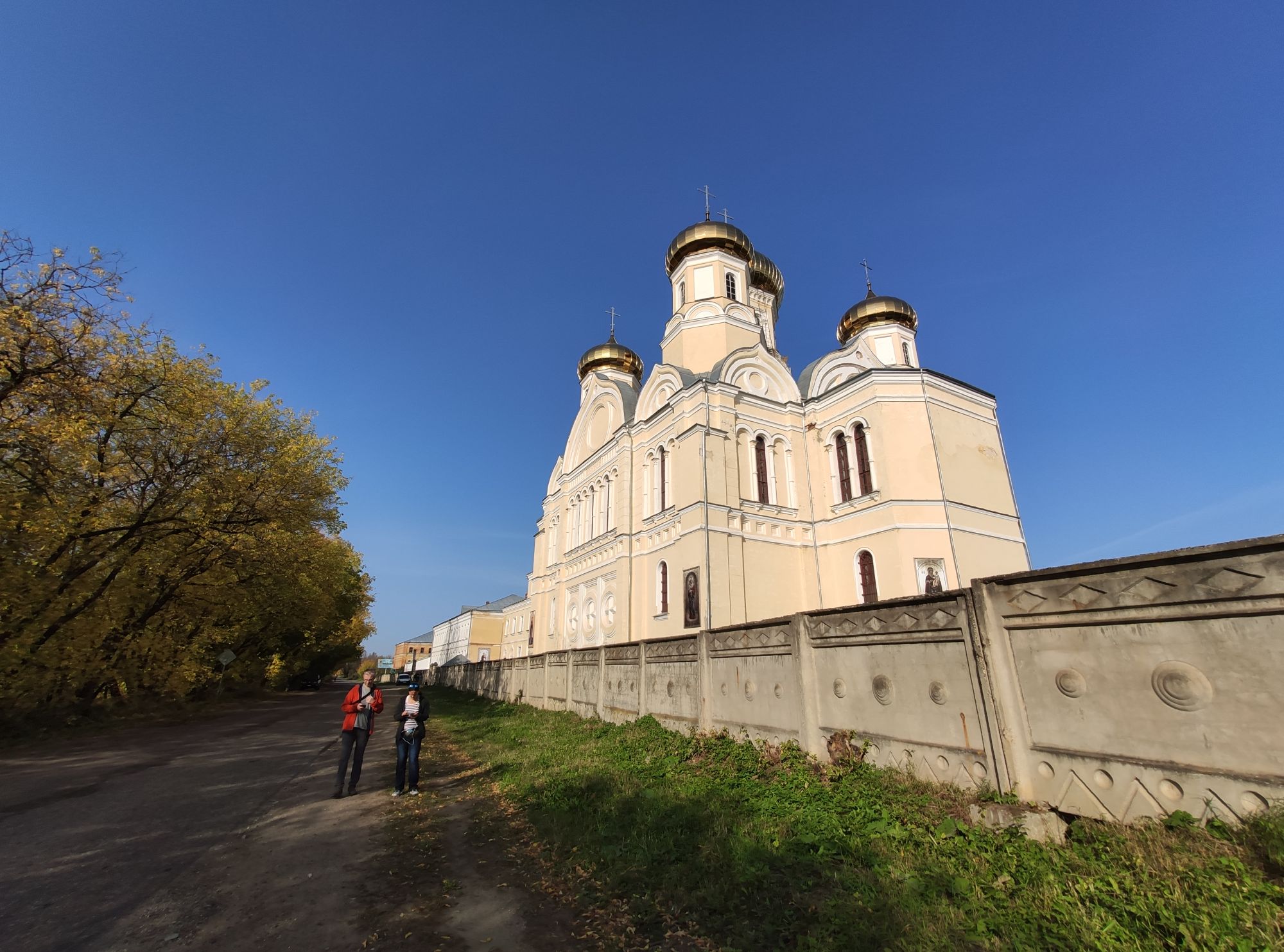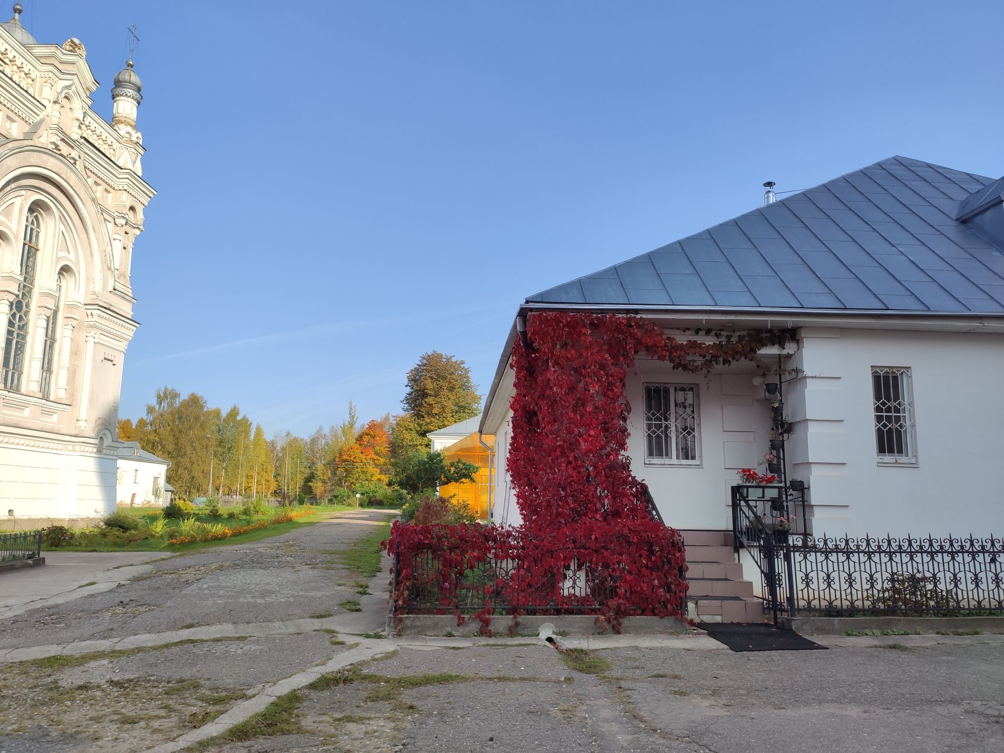 2 октября 2020 Решила я дописать отчёт про Волочёк сегодня. С утра мы встали, взглянули на карту и на часы. До экскурсии было ещё 4 часа, поэтому мы решили, что сходим пешочком от гостиницы до Казанского монастыря, потом поедим и, если останется время, чуток по центру пройдемся сами, а потом уже отдадимся во власть экскурсовода. У гостиницы маленький, но очень уютный цветник. А в соседнем дворе очень хитрые штуки выглядывали из-под земли))) мы так и не поняли что это. К монастырю мы, как водится, зашли с тыла. Но там вход гораздо уютнее оказался. Красивая осенняя аллея и деревянная калиточка. Правда, юбки и платки тут не выдают, но нам за это никто замечания не сделал, а наоборот улыбались, здоровались и говорили - проходите, смотрите, пожалуйста. Фотографируем с Асей розы. Мимо проходит монашка и очень вежливо, но как бы походя, сообщает - у нас вот в этой часовне мощи двух блаженных, помогают как Матрона. А вот со стороны улицы бетонный забор страшненький. Надеюсь, что после того, как закончат ремонт в храме, сделают красивую ограду. После собора вернулись к машине, заехали в Мак, перекусили и чуток погуляли в самом центре. Прошлись по набережной, по мостикам Полюбовались на модерн и домики с косыми углами, которые Ася тоже показывала. Прошлись по мостикам. Женька нам даже фотосессию устроил!))) Прошли по парку, глянули на драмтеатр Красивый домик рядом И бывший синематограф))) В парке, как оказалось, установлены львы с усадьбы Рябушинских, попасть куда я очень хотела, и которая стала у нас "вишенкой на торте". Ну и прекрасное объявление сфоткали мы с Асей, когда шли встретить Дениса у мед колледжа, где он преподает (по одному из образований он медик). Ну а дальше мы сели на машину и поехали смотреть достопримечательности и слушать увлекательные рассказы Дениса. Мы побывали в самой старой церкви Волочка, которая расположена на кладбище с древними захоронениями. Удивительно, но РПЦ совсем не хотело восстанавливать эту церковь, т.к. боялась оттока прихожан от главного храма города. Коротко о храме и Пятницком кладбище на стенде Потом была усадьба Сердюкова, где мы познакомились с его удивительнейшей биографией. Почитать кратко можно тут, хотя и неточностями, как я понимаю. Денис гораздо интереснее и живее рассказывал. Усадьба находится на частной территории, но препятствий нам никто не чинил - только собачка облаяла, но она на привязи. Усадьба стоит на берегу детища Сердюкова - Вышневолоцком водохранилище. Правда, при нем оно было значительно меньше и вода была чуть дальше. В доме на втором этаже, говорят, сохранилась лепнина в стиле модерн. А это огромный куст барбариса, который по преданию посадил сам Петр I. Письменных подтверждений нет, но даже в 19 веке за ним ухаживали как за Петровским. Он был всегда огорожен и подстрижен. Дальше мы посмотрели действующий до сих пор бейшлот. Но он весь в колючей проволоке и с табличками - фото и видео запрещено. Поэтому мы его издалека с рыбацкой тропинки осматривали. Денис сказал, что в нем все старинное, только кран для подъёма ворот заменили. Еще одна церковь, которую построил купец на свои деньги. Здание совмещено со зданием богадельни. Если не ошибаюсь, для этого была причина, но я ее не помню. Не всё держится в голове. Ну а потом мы эпично посетили бывшую ткацкую фабрику Прохорова. Ася уже всё описала, в принципе. Мне 