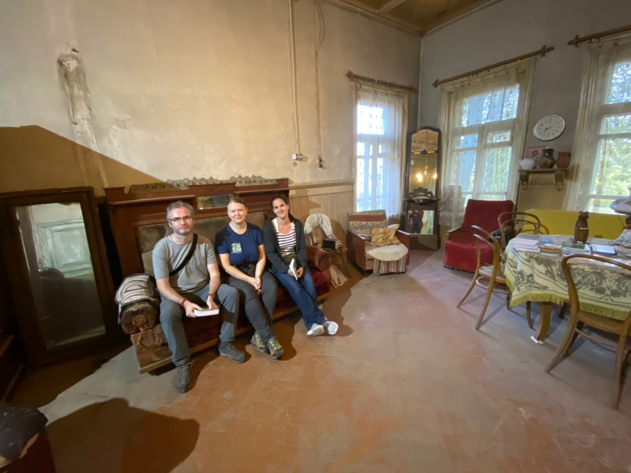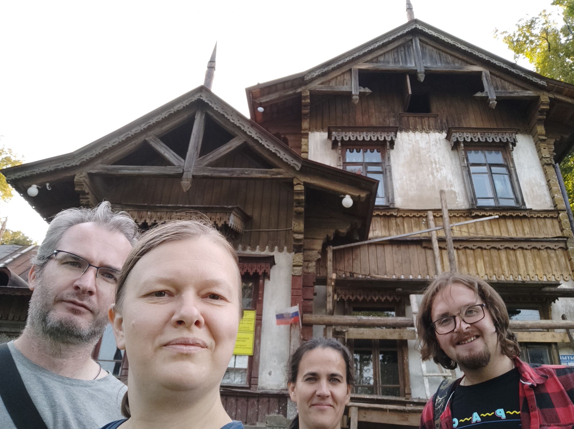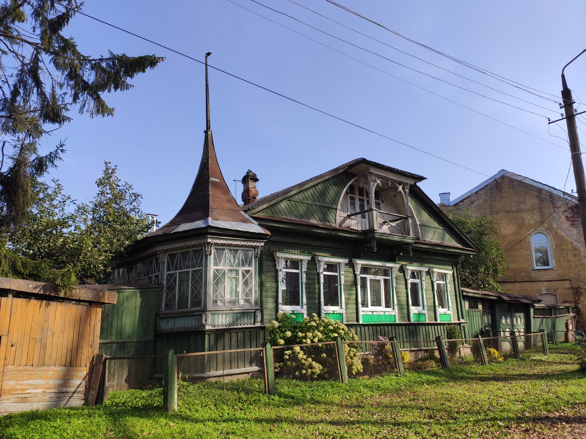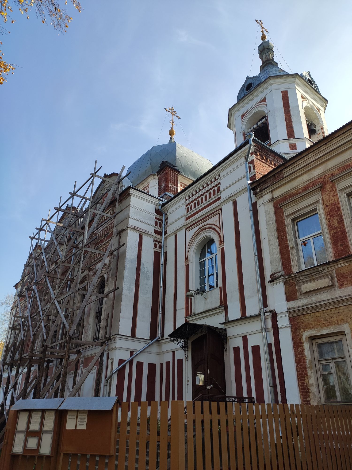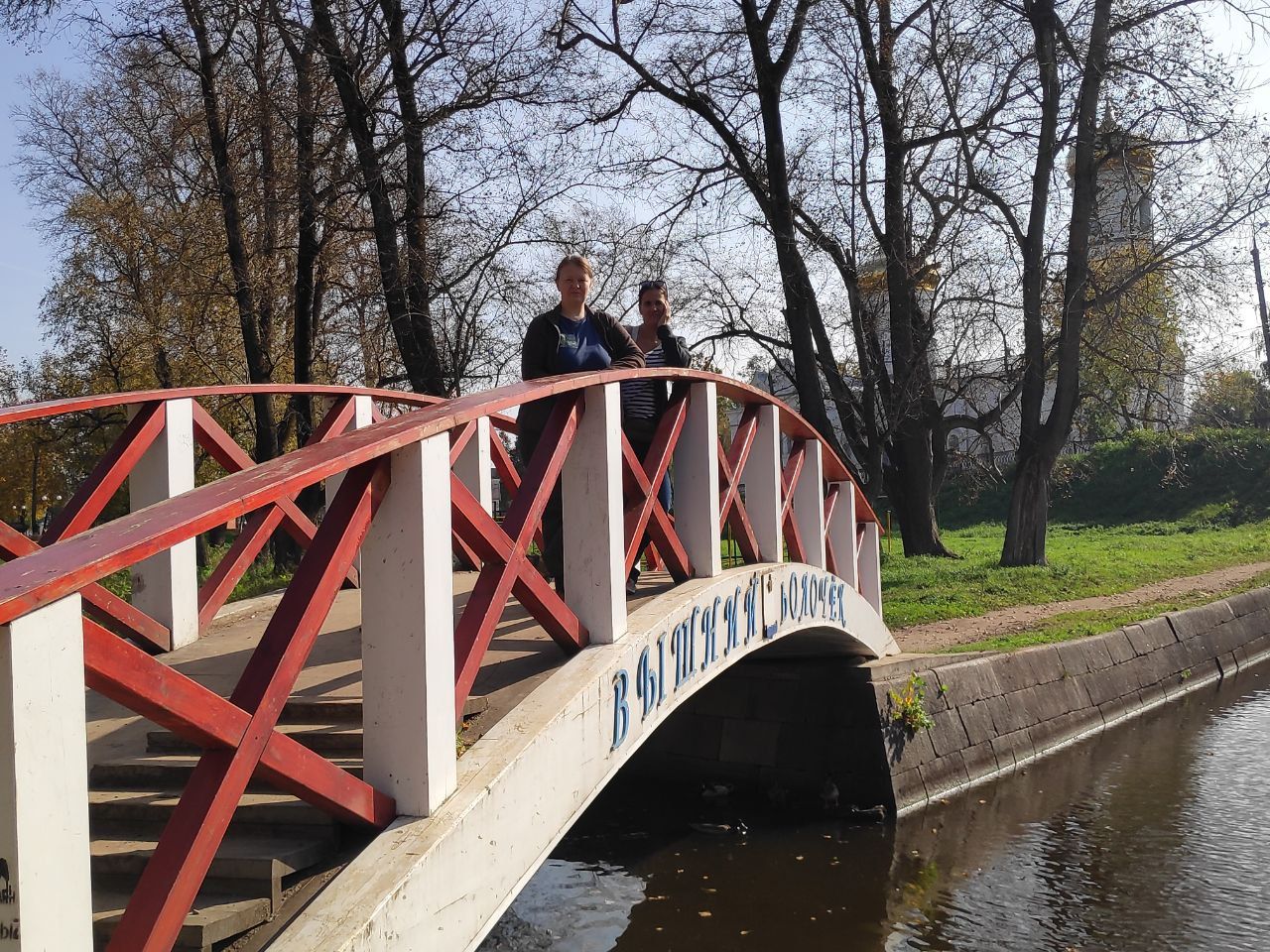 2 октября 2020 Решила я дописать отчёт про Волочёк сегодня. С утра мы встали, взглянули на карту и на часы. До экскурсии было ещё 4 часа, поэтому мы решили, что сходим пешочком от гостиницы до Казанского монастыря, потом поедим и, если останется время, чуток по центру пройдемся сами, а потом уже отдадимся во власть экскурсовода. У гостиницы маленький, но очень уютный цветник. А в соседнем дворе очень хитрые штуки выглядывали из-под земли))) мы так и не поняли что это. К монастырю мы, как водится, зашли с тыла. Но там вход гораздо уютнее оказался. Красивая осенняя аллея и деревянная калиточка. Правда, юбки и платки тут не выдают, но нам за это никто замечания не сделал, а наоборот улыбались, здоровались и говорили - проходите, смотрите, пожалуйста. Фотографируем с Асей розы. Мимо проходит монашка и очень вежливо, но как бы походя, сообщает - у нас вот в этой часовне мощи двух блаженных, помогают как Матрона. А вот со стороны улицы бетонный забор страшненький. Надеюсь, что после того, как закончат ремонт в храме, сделают красивую ограду. После собора вернулись к машине, заехали в Мак, перекусили и чуток погуляли в самом центре. Прошлись по набережной, по мостикам Полюбовались на модерн и домики с косыми углами, которые Ася тоже показывала. Прошлись по мостикам. Женька нам даже фотосессию устроил!))) Прошли по парку, глянули на драмтеатр Красивый домик рядом И бывший синематограф))) В парке, как оказалось, установлены львы с усадьбы Рябушинских, попасть куда я очень хотела, и которая стала у нас "вишенкой на торте". Ну и прекрасное объявление сфоткали мы с Асей, когда шли встретить Дениса у мед колледжа, где он преподает (по одному из образований он медик). Ну а дальше мы сели на машину и поехали смотреть достопримечательности и слушать увлекательные рассказы Дениса. Мы побывали в самой старой церкви Волочка, которая расположена на кладбище с древними захоронениями. Удивительно, но РПЦ совсем не хотело восстанавливать эту церковь, т.к. боялась оттока прихожан от главного храма города. Коротко о храме и Пятницком кладбище на стенде Потом была усадьба Сердюкова, где мы познакомились с его удивительнейшей биографией. Почитать кратко можно тут, хотя и неточностями, как я понимаю. Денис гораздо интереснее и живее рассказывал. Усадьба находится на частной территории, но препятствий нам никто не чинил - только собачка облаяла, но она на привязи. Усадьба стоит на берегу детища Сердюкова - Вышневолоцком водохранилище. Правда, при нем оно было значительно меньше и вода была чуть дальше. В доме на втором этаже, говорят, сохранилась лепнина в стиле модерн. А это огромный куст барбариса, который по преданию посадил сам Петр I. Письменных подтверждений нет, но даже в 19 веке за ним ухаживали как за Петровским. Он был всегда огорожен и подстрижен. Дальше мы посмотрели действующий до сих пор бейшлот. Но он весь в колючей проволоке и с табличками - фото и видео запрещено. Поэтому мы его издалека с рыбацкой тропинки осматривали. Денис сказал, что в нем все старинное, только кран для подъёма ворот заменили. Еще одна церковь, которую построил купец на свои деньги. Здание совмещено со зданием богадельни. Если не ошибаюсь, для этого была причина, но я ее не помню. Не всё держится в голове. Ну а потом мы эпично посетили бывшую ткацкую фабрику Прохорова. Ася уже всё описала, в принципе. Мне 