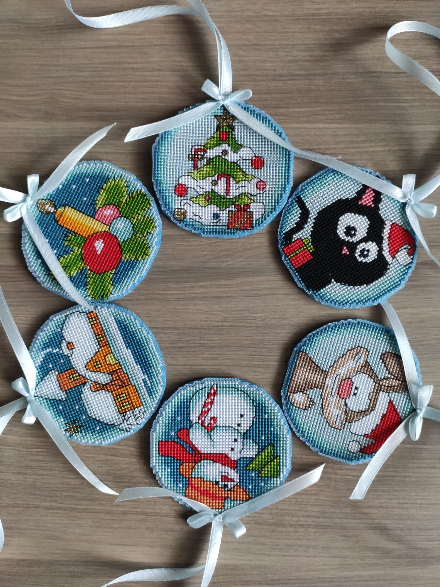 23 ноября 2020 Отчёт))) Зеленим гайку))) Процесс Вышив 4 игрушки, я стала думать - какую вышить пятую, т.к. была уверена, что две на оставшийся кусок пластиковой канвы не влезут, ибо я косякнула при разрезании ее на ровные части))) Но тут включился режим я_у_мамы_инженер и я поняла, что можно уместить обе. Ура! Ну и итог)) Потом я выбрала цвет задника из фетра. И склеила их, не откладывая в долгий ящик))) Сейчас лежат вот такой строчкой))) Ну и покажу ещё 2 доведенных до логического завершения процесса. Но они без гайки. Ангел с сердцем от Мастерской шовчиков. Ну что могу сказать... Я лоханулась с канвой. Канва с люрексом безбожно осыпается и сшивание становится прям мучением. Ну и цвет ниток я подобрала, наверное, не совсем для ангела))) Хотя... сегодня я пришила на подол и низ крыльев бисер и сделала нимб. И теперь он мне нравится))) Процесса нет. И ещё очень древняя работа. Мне ее добавили в одном из интернет-магазинов к заказу как сувенир. Какое-то время набор просто лежал. Потом я его быстро вышила. Получился такой вот примитивчик. И я даже попыталась вставить его в рамки, которые были в наборе, но закрепить не получилось и я всё это отложила. А сегодня на волне клеевой эпопеи, я постирала, погладила эти картинки и вклеила их в рамки)))) Будут новогодние миниатюрки))) Вот такой вот праздничный отчёт получился. Теперь надо себя допинать и отфоткать начатые наборы, чтобы завести на всё гайки. Всем здоровья и до новых встреч))) irisheckin, mamatata, Tari и 35 других сказали спасибо Поделиться сообщением Ссылка на сообщение