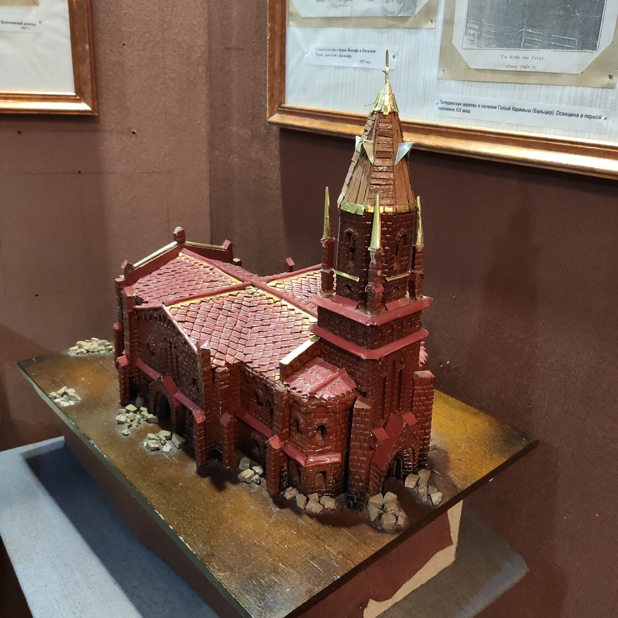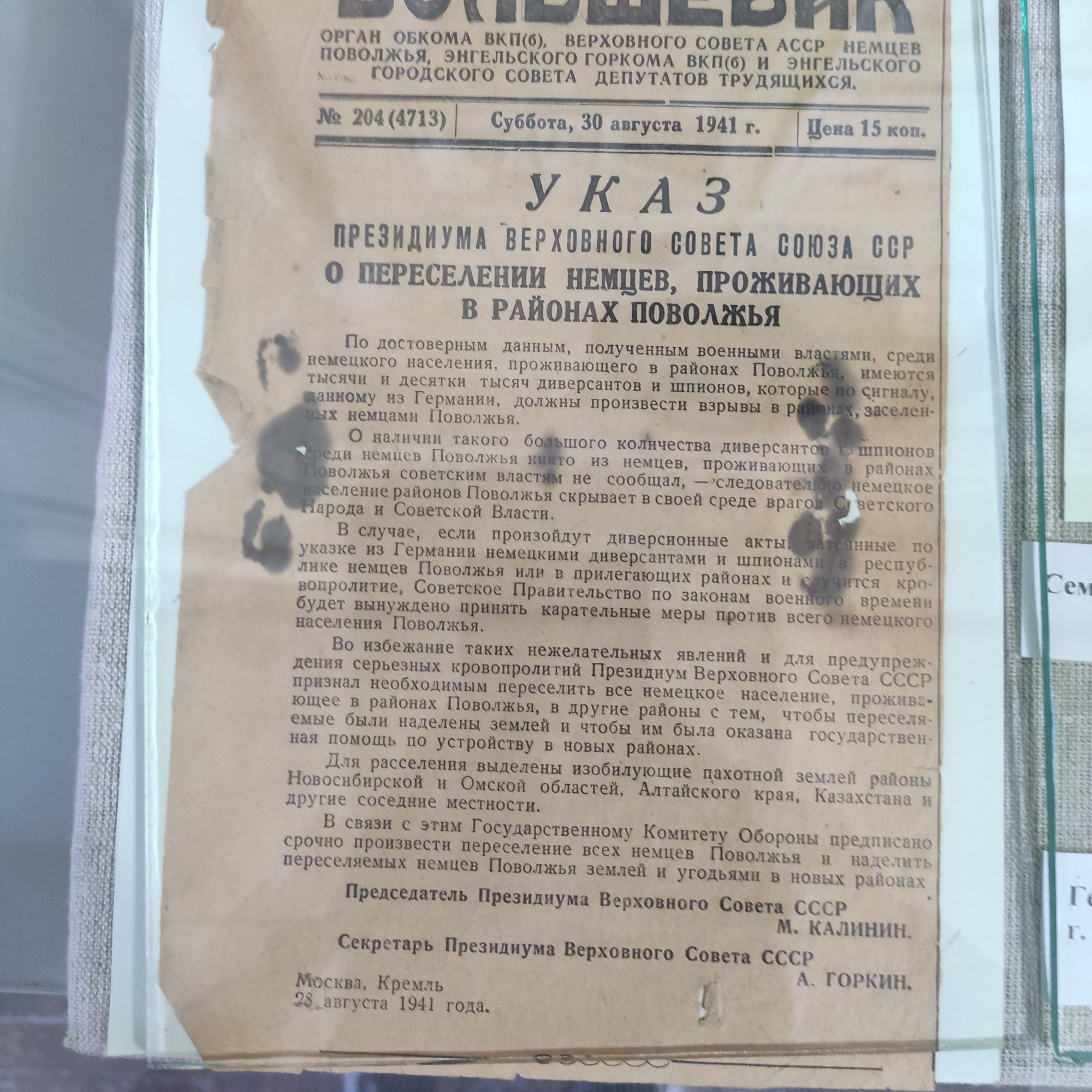 24 июня 2021 Ну и опять 15 мая))) Красноармейск. Заехали в город и бросилась в глаза особенность местных старых домиков - пестрая кладка. Кирпичи двух цветов. И они тут все такие - фото дальше))) В музее было интересно. Попали в него только потому, что они работали дольше в этот день, ибо Ночь музеев была))) Экскурсию вела не директор, но было очень живо и интересно. А директор тоже присоединилась к нашей беседе с экскурсоводом, когда мы после экскурсии уже общались про город и окрестности. Много нам посоветовали посмотреть, но у нас почти ничего не сложилось))) но это же пока!))) Вот эту церковь с фотографии мы посетим на следующий день. Ее сейчас облагородили. Это редкий для этих мест не католический и не лютеранский храм. Хотя в одном из музеев нам рассказали, что храм мог быть один на село. Вероисповеданий много, но, вроде, все христиане, поэтому службу по очереди проводили в одном и том же помещении храма. Немцы принесли с собой много новых технологий и инструментов, облегчающих ручной труд. Около этого фото нам рассказывали как немецких детей отдавали на проживание в русские семьи с целью выучить русский язык. Воспоминания этой девушки сохранились. Учили примерно так - бабушка с фото брала в руку ложку и говорила "ложка". Ну и повторялось это пока девушка не запоминала это слово))) А это кирха в Усть-Зо́лихе. Её чуть позже покажу. Мы туда ездили. Машинная вышивка. Крейсер "Варяг". В команде было 10 или даже больше жителей Красноармейска (он же Бальцер, он же - Голый Карамыш). Совсем чуток экспонатов, связанных с Великой Отечественной. А эта грамота вывешена, чтобы показать, что давали в виде премии за достижения советского хозяйства. Пальто! Это тот самый страшный указ о выселении немцев в Казахстан и Сибирь. И даже в тяжёлых условиях люди продолжали украшать свой быт. Например, свою одежду вышивкой. А это реально спасший жизнь солдату металлический лист. Это какой-то инструмент, который совершенно случайно именно в этот день оказался в кармане на пути у пули. На стене гобелен с Алёшей. Кто-то подарил в музей. Ну и зал гордости - ткацкий. Город славился и, как ни странно, до сих пор продолжает славится своими ткацкими фабриками. До сих пор две работают, хотя было больше. Ткали в основном сарпинку, но и другие ткани тоже. Вот тут на стенде Андрей Бендер. И да - считается, что именно он был прототипом того самого Остапа))) Андрей куда-то должен был отвезти деньги, но не довез. А вернувшись, сообщил, что его обокрали. Только после этого дела пошли в гору. Он сначала занимался перепродажей сарпинки, закупая ее по окресным сёлам, а потом открыл свои фабрики. И был очень богатым человеком. Если не путаю, то одна из работающих до сих пор фабрик раньше принадлежала ему. та самая сарпинка А это уже более или менее современная продукция))) Первая фотка - это советский период. Из отходов ткацкого производства вязали тапочки, авоськи и мочалки. А на втором фото - это уже 2000-е годы. Сейчас продукцию фабрики можно купить. Говорят, что трикотаж отличный (и подмигнул *девочкам понравится)))) Ну и куда же Саратовская область без Гагарина?)) Правильно - никуда!) Маленькая витрина с сувенирами, где есть изображение Гагарина. Дальше нам экскурсовод и директор (хотя она не директор, наверное, а руководитель Красноармейского филиала Саратовского музея) рассказали что ещё посмотреть и купить, по