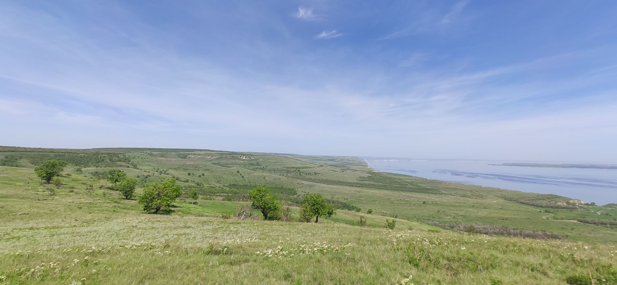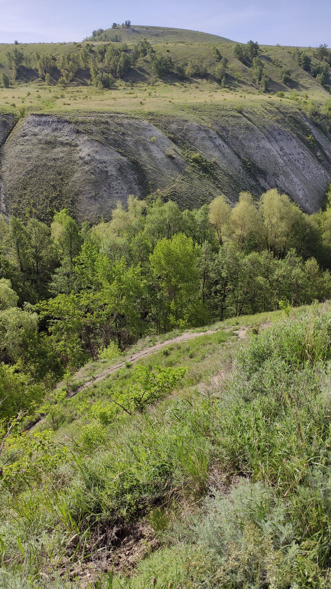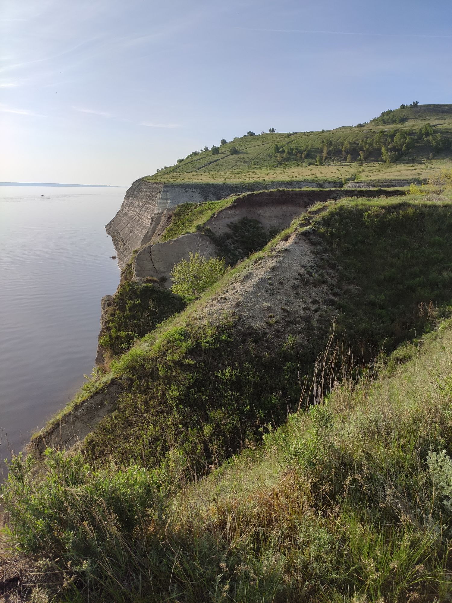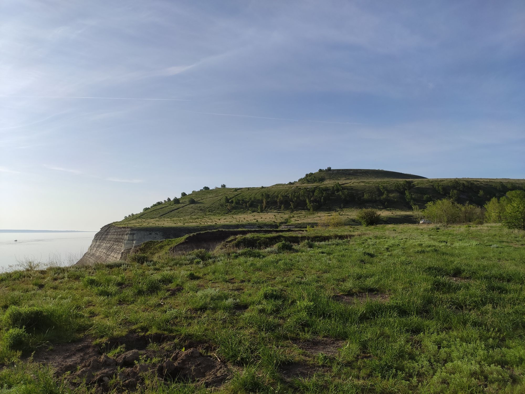 25 июня 2021 Итак, 16 мая. Собственно, предпоследний день того отпуска. Напомню, что начинали мы в местах, где находится утес Степана Разина. Проснулась я рано. В палатке было душновато и я вылезла наружу. А там... вот не зря росу с бриллиантами сравнивают. Вся трава была покрыта мелкими капельками росы и сверкала на солнце. А виды... Утренний кофе, печенька, сборка шмурдяка (палатки, спальники и вот это вот всё). Но дальше мы решили погулять пешком. Первым делом сходили и взяли геокешерский тайник (изредка в поездках в интересных местах всё ещё проигрываем). Место великолепное! Вокруг дубы. Следующий пункт нашей пешей программы - Тюремный овраг и гора. В разных источниках разные горы называют Дурман-горой. По некоторым мы как раз пешком на нее ходили. С этими местами очень много всяческих мистических преданий связано. По легендам Стенька долгое время провел на этом утесе. Да не просто провел, а ещё и трон себе заказал из слоновьей кости резной. Трон сделали великолепный. Установили его на одном из Утесов и Стенька обозревал окресности и вылавливал богатеньких купцов и грабил их. А в тюремном овраге пленников держал. На этом фото я уже покорила и овраг и гору))) В овраг спускаешься по заботливо выдолбленной в земле лесенке (хотя в дождь там весело прям должно быть, ибо глина). Уклон там приличный. В самом овраге на берегу очень красиво. Видите, Евгений там что-то высматривает? Это он змею увидел. Я погуглила, судя по расцветке хвоста, это вполне может быть не гадюка, а водяной уж. Вот тут можно про них почитать. На этом фото видно хвост. Но нам надо дальше. Вернее выше. По очень сыпучему склону, тропинка на котором еле угадывается. И, мне кажется, что тропинка после каждого человека разная будет, ибо за собой ты склон осыпаешь. В одном месте я не прошла - побоялась. Нога не ставилась и пыталась съехать, пошли другой траекторией (слово тропа тут не подходит ). День опять был жаркий, но мы ходили утром, поэтому ещё терпимо оказалось. Я даже футболку снимала и чуток позагорала. За подъемом следует большая поляна до следующего подъёма. На ней тропа тоже не очень заметна, т.к. заросла травой. Но тут можно было примерно направления придерживаться. С горы виды ещё круче, чем от машины. Сели с Женькой под березкой и включили себе песню Течет река Волга на Женькином телефоне, а я на своем сняла под нее виды. Если хотите, могу и тут показать, но ее надо залить тогда куда-нибудь. Прошлись по горе с километр. Любовались цветочками, ящерками, выпрыгивающими из-под ног и бабочками (тут я опять видела махаонов!) А ещё - часто в горах вижу профили. Придумала себе, что это духи гор и всегда их благодарю за то, что они разрешают нам смотреть такие чудесные места. И снова спуск в тюремный Тюремный овраг, который ни разу не легче подъёма. Я почти на четвереньках пользу, ибо кроссовки норовят уехать, потянув меня за собой, естественно))) А дальше уже поехали на машине. Заехали на Дурман-гору. У нас всё было нормально, но, говорят, что там какой-то разлом, что может газ из-под земли выделяться и из-за этого плохо людям. Осталось только с локацией горы определиться))) Виды не очень сильно меняются, но каждый поворот головы всё равно поражает! Очень красивое место! Дальше трон. Какой-то умелец сделал вот такой большой трон, который виден издалека. А рядом повесил табличку с описанием места. Место для фо
