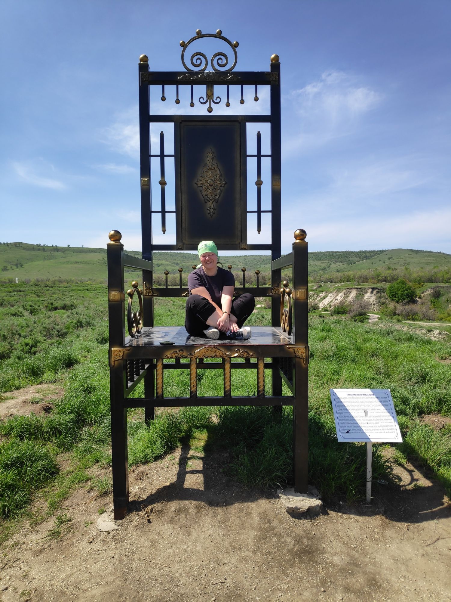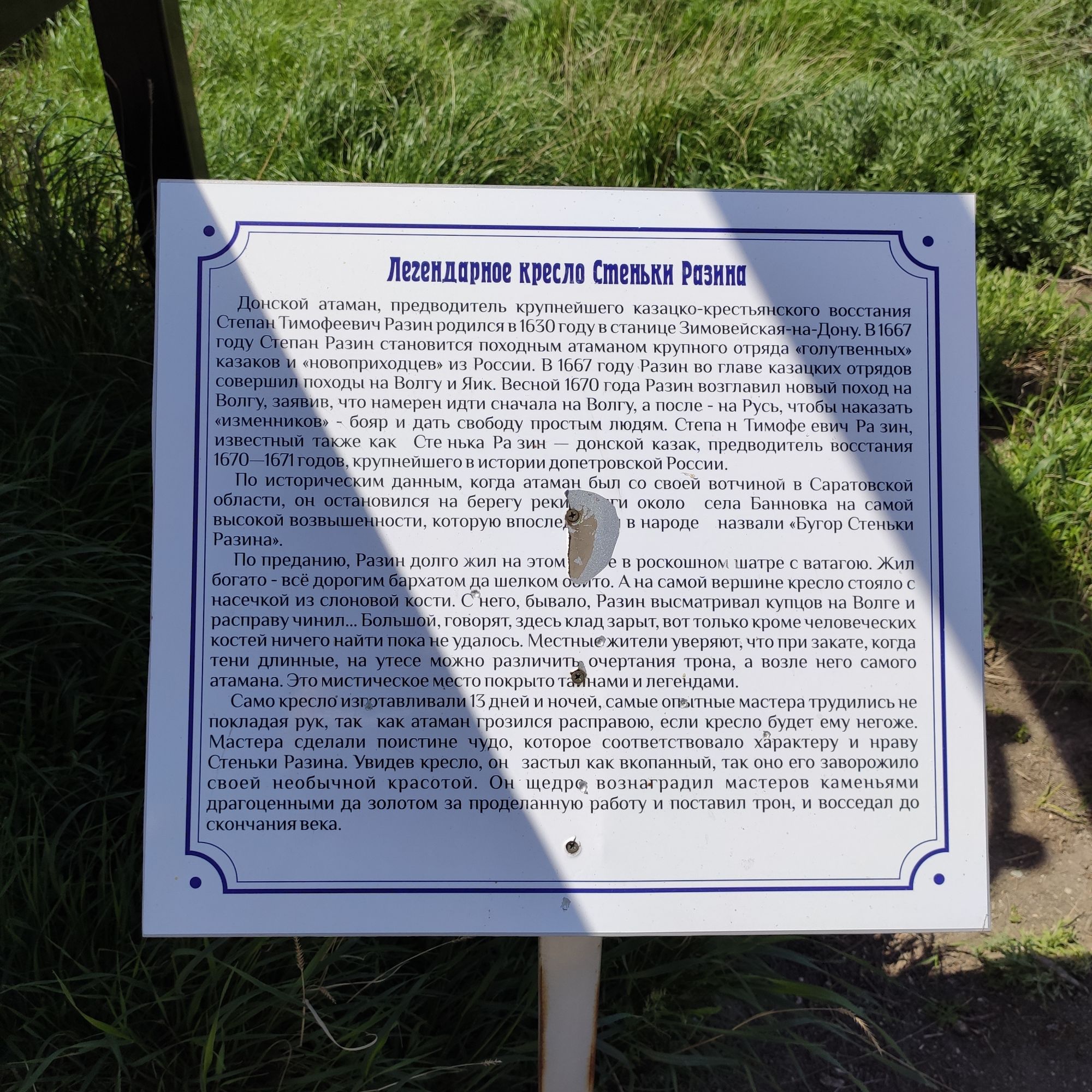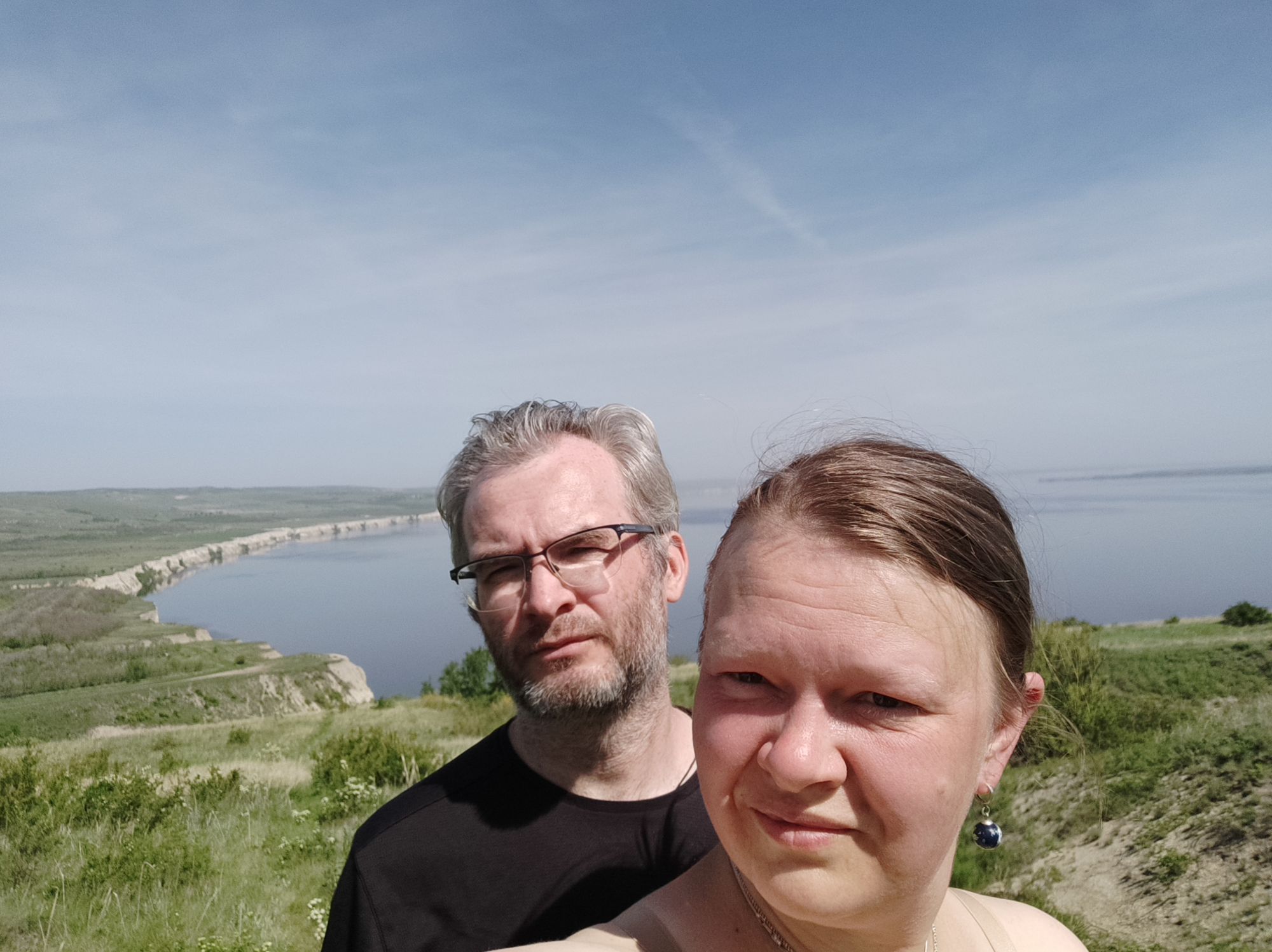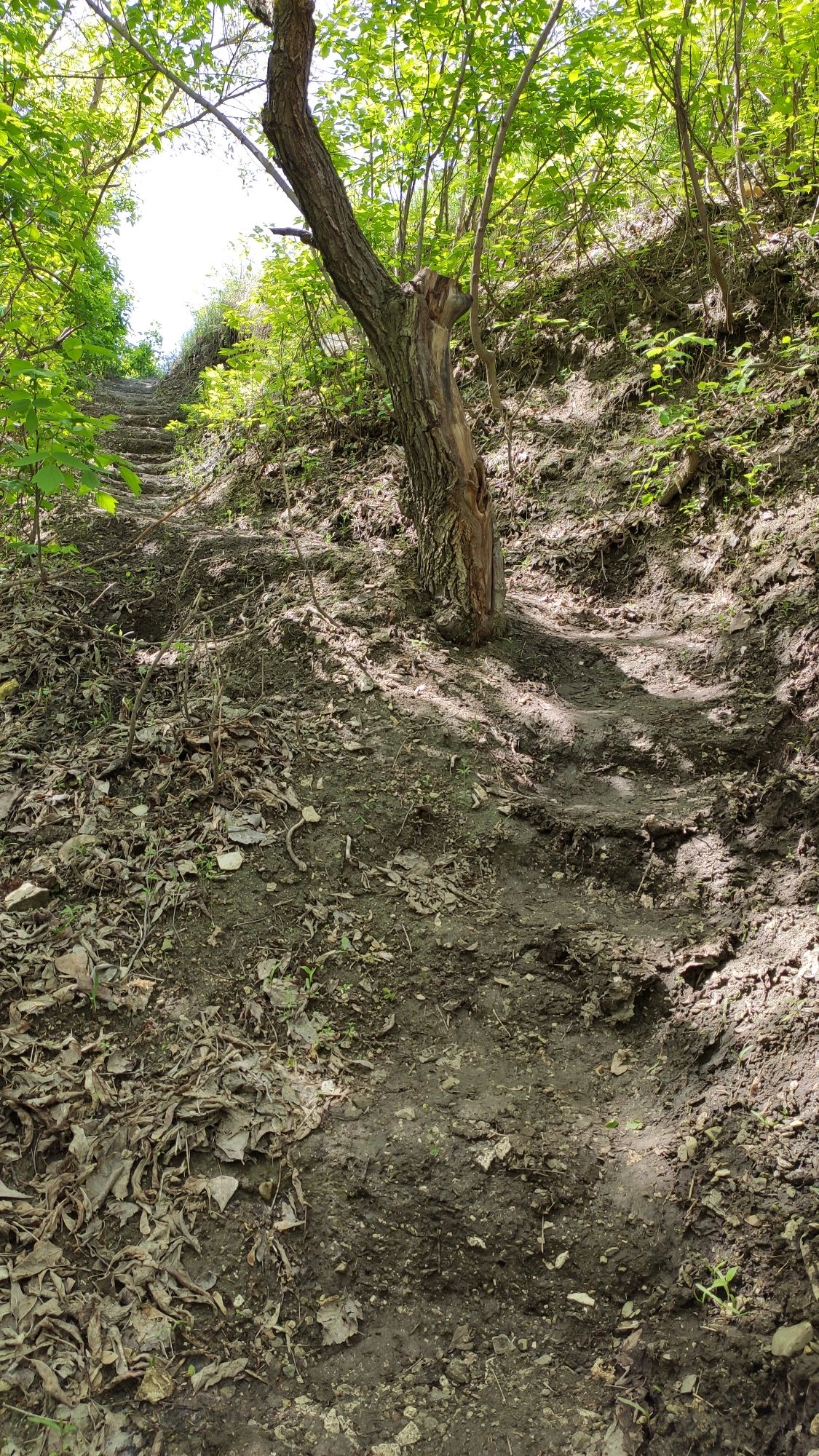 25 июня 2021 Итак, 16 мая. Собственно, предпоследний день того отпуска. Напомню, что начинали мы в местах, где находится утес Степана Разина. Проснулась я рано. В палатке было душновато и я вылезла наружу. А там... вот не зря росу с бриллиантами сравнивают. Вся трава была покрыта мелкими капельками росы и сверкала на солнце. А виды... Утренний кофе, печенька, сборка шмурдяка (палатки, спальники и вот это вот всё). Но дальше мы решили погулять пешком. Первым делом сходили и взяли геокешерский тайник (изредка в поездках в интересных местах всё ещё проигрываем). Место великолепное! Вокруг дубы. Следующий пункт нашей пешей программы - Тюремный овраг и гора. В разных источниках разные горы называют Дурман-горой. По некоторым мы как раз пешком на нее ходили. С этими местами очень много всяческих мистических преданий связано. По легендам Стенька долгое время провел на этом утесе. Да не просто провел, а ещё и трон себе заказал из слоновьей кости резной. Трон сделали великолепный. Установили его на одном из Утесов и Стенька обозревал окресности и вылавливал богатеньких купцов и грабил их. А в тюремном овраге пленников держал. На этом фото я уже покорила и овраг и гору))) В овраг спускаешься по заботливо выдолбленной в земле лесенке (хотя в дождь там весело прям должно быть, ибо глина). Уклон там приличный. В самом овраге на берегу очень красиво. Видите, Евгений там что-то высматривает? Это он змею увидел. Я погуглила, судя по расцветке хвоста, это вполне может быть не гадюка, а водяной уж. Вот тут можно про них почитать. На этом фото видно хвост. Но нам надо дальше. Вернее выше. По очень сыпучему склону, тропинка на котором еле угадывается. И, мне кажется, что тропинка после каждого человека разная будет, ибо за собой ты склон осыпаешь. В одном месте я не прошла - побоялась. Нога не ставилась и пыталась съехать, пошли другой траекторией (слово тропа тут не подходит ). День опять был жаркий, но мы ходили утром, поэтому ещё терпимо оказалось. Я даже футболку снимала и чуток позагорала. За подъемом следует большая поляна до следующего подъёма. На ней тропа тоже не очень заметна, т.к. заросла травой. Но тут можно было примерно направления придерживаться. С горы виды ещё круче, чем от машины. Сели с Женькой под березкой и включили себе песню Течет река Волга на Женькином телефоне, а я на своем сняла под нее виды. Если хотите, могу и тут показать, но ее надо залить тогда куда-нибудь. Прошлись по горе с километр. Любовались цветочками, ящерками, выпрыгивающими из-под ног и бабочками (тут я опять видела махаонов!) А ещё - часто в горах вижу профили. Придумала себе, что это духи гор и всегда их благодарю за то, что они разрешают нам смотреть такие чудесные места. И снова спуск в тюремный Тюремный овраг, который ни разу не легче подъёма. Я почти на четвереньках пользу, ибо кроссовки норовят уехать, потянув меня за собой, естественно))) А дальше уже поехали на машине. Заехали на Дурман-гору. У нас всё было нормально, но, говорят, что там какой-то разлом, что может газ из-под земли выделяться и из-за этого плохо людям. Осталось только с локацией горы определиться))) Виды не очень сильно меняются, но каждый поворот головы всё равно поражает! Очень красивое место! Дальше трон. Какой-то умелец сделал вот такой большой трон, который виден издалека. А рядом повесил табличку с описанием места. Место для фо