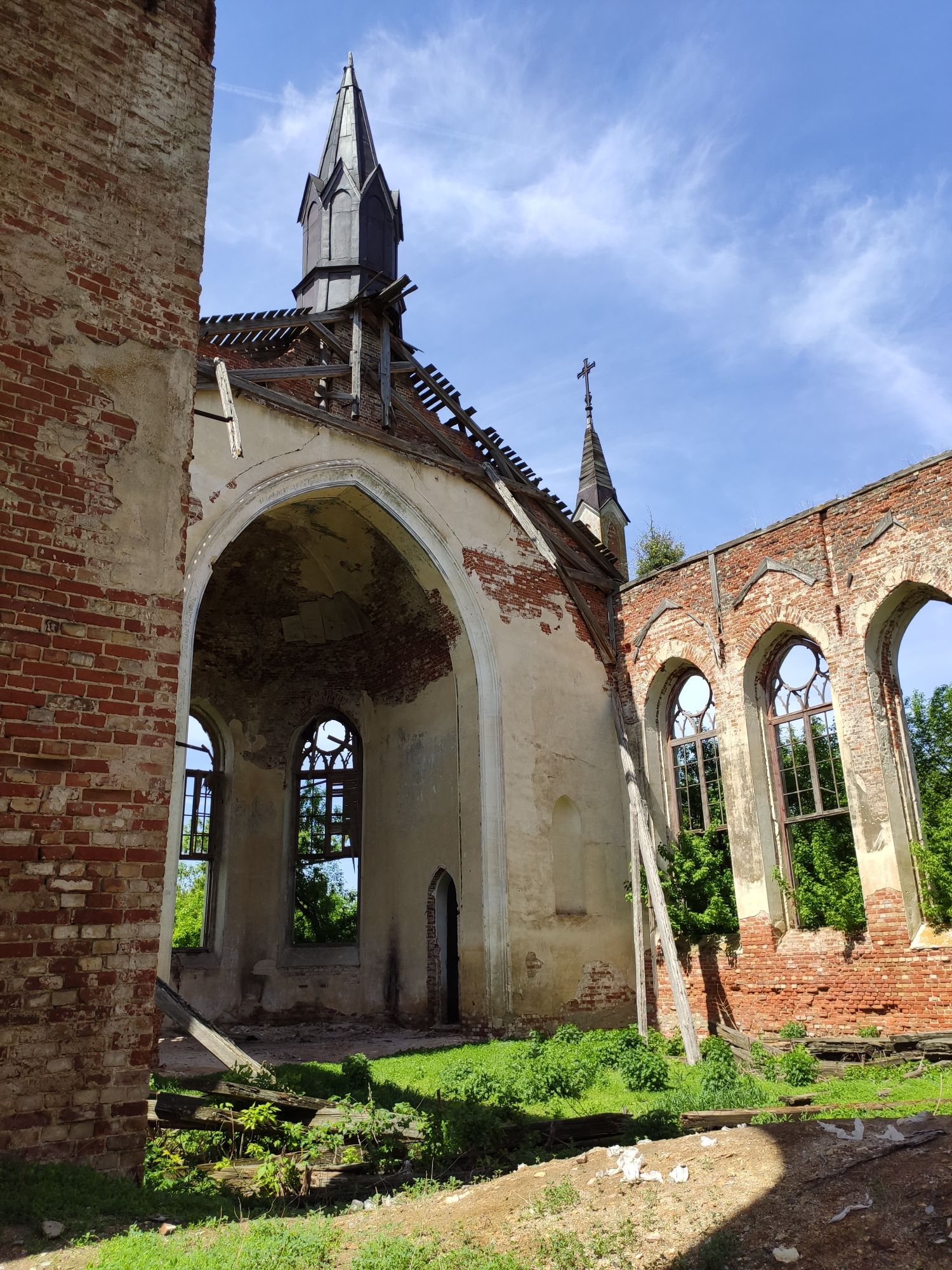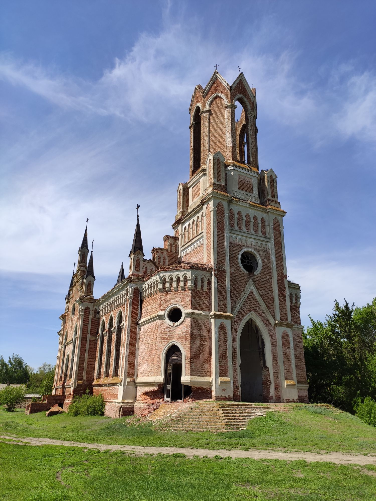 25 июня 2021 16 мая. Продолжение. А вот и та точка на карте, которая стояла очень давно, когда мы ещё не знали про немцев Поволжья и вот это вот всё. Это католическая церковь Святой Марии в Каменке (ранее Бер). Она такая! Такая! Прям в зобу дыхание спирает! Рядом дом пастора, но он в полной разрухе и весь зарос. Я хотела залезть и сфоткать, но побоялась, что кирпич сверху меня тюк и всё. Но Оля была бы не Оля, если бы не пообщалась с местными))) В общем, зашла я в магазин за мороженым (жарко было) и разговорилась с продавщицей. Та мне рассказала, что в 90-е немцы хотели восстановить свою республику (я потом погуглила - действительно хотели), приехали сюда "со своим попенком". А тут же крыша была! И росписи не все, но много сохранились. Так вот они жили в церкви в маленьком помещении, а крышу всю сняли, делать хотели. Попенок службы служил. А потом не получилось-то с республикой и уехали они. А крыши теперь и нет. Потом остатки догорели. И стоит вот она без крыши. Долго ещё простоит? А вообще - хорошо бы вернулись немцы. Пусть бы жили, всё лучше. А я про Зоркино (Цюрих-на-Волге) им рассказала. Попрощались и поехали мы на утес Синие лбища. Скажу сразу, что вода была высокой и под сам утес спуститься не получилось. Но он и сверху впечатляет! Только дорога туда очень не очень)))) Плохая, в общем, дорога и сквозь кусты. Но красивая! Потом мы пытались найти съезд/спуск: Тут не очень видно, но к воде дорога под хорошим уклоном. Оставили машину, подошли к воде. Женька намылился обойти гору по колено в воде, но тут увидел змейку, прячущуюся под камень. Опять было не понятно - уж это или гадюка, но проверять сколько таких змеек вдоль берега под камнями он расхотел)))) Поэтому опять огородами поехали в Золотое. Я тут прям очень коровкам посочувствовала - они прятались в тени единственного (и того лысого) дерева в округе. По Золотому проехали, выйдя из машины у отремонтированного храма с огроменным кустом шикарной сирени. Я прям носом в нее зарылась)) И на берегу ещё вышли А вообще, история у города интересная и даже музей есть. Но оставили на потом. Домики я уже из машины снимала. Заехали на обратном пути в Красноармейск. Магазины пряников (Сказка) и трикотажа (Ассорти) были закрыты. Поесть тоже не удалось - всё или закрыто или из еды пиво и острые крылышки. Софткали для ОлиЮ @OlkaY городской "маяк" и поехали в сторону дома. Ночевали в Саратове в гостинице, рассудив так, что надо хорошо выспаться на завтра, чтобы допилить до дома, заехав в один из музеев по пути, чтобы ножки размять))) В гостинице похихикали над флажками на лестнице Помылись и легли спать с кондеем! В жару - это блаженство! Продолжение следует) Каори, Lorans, BlueeYeS и 19 других сказали спасибо Поделиться сообщением Ссылка на сообщение