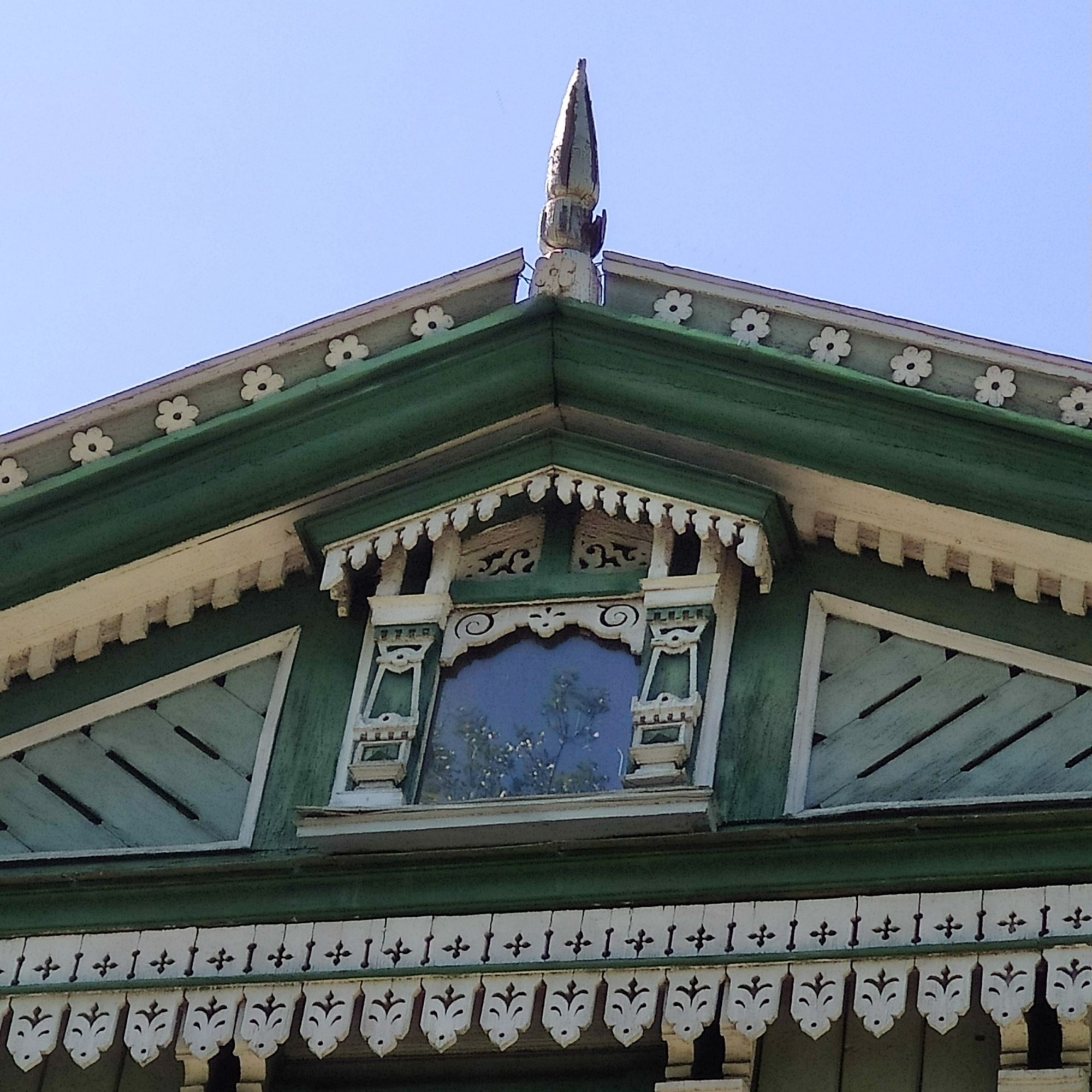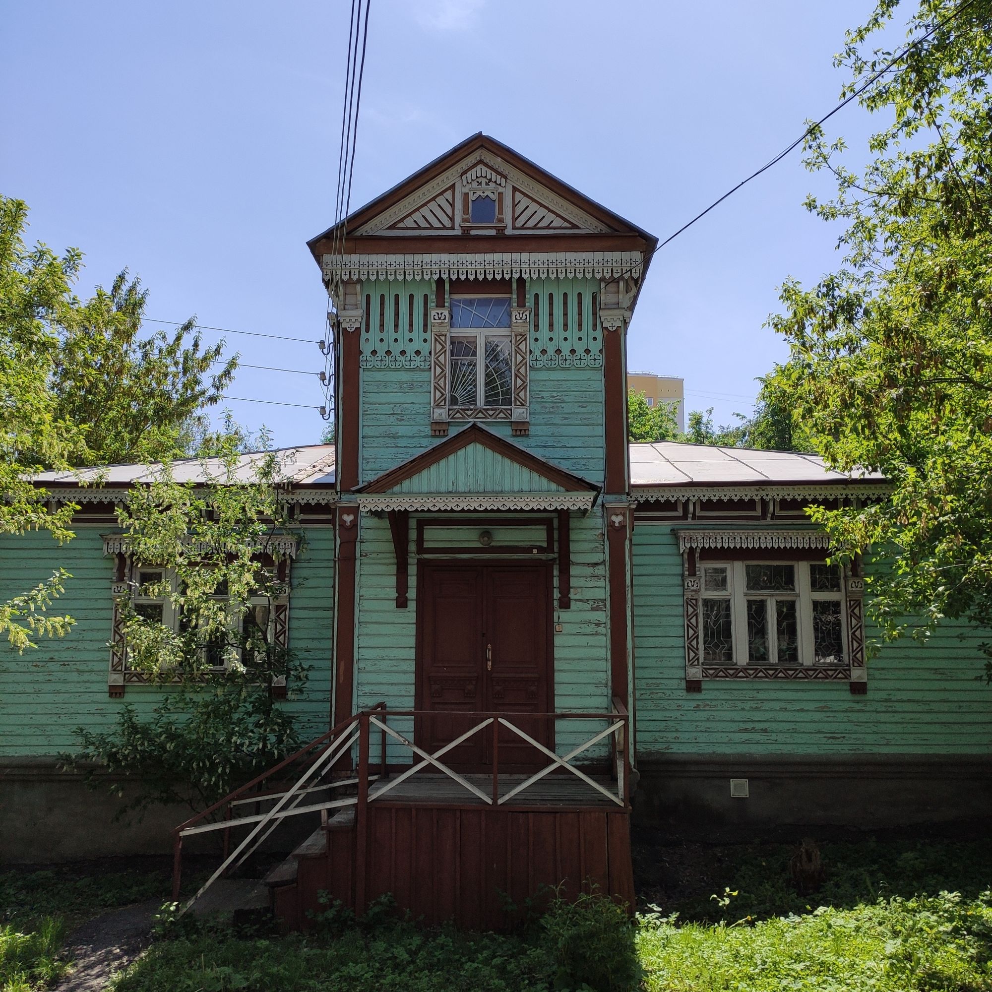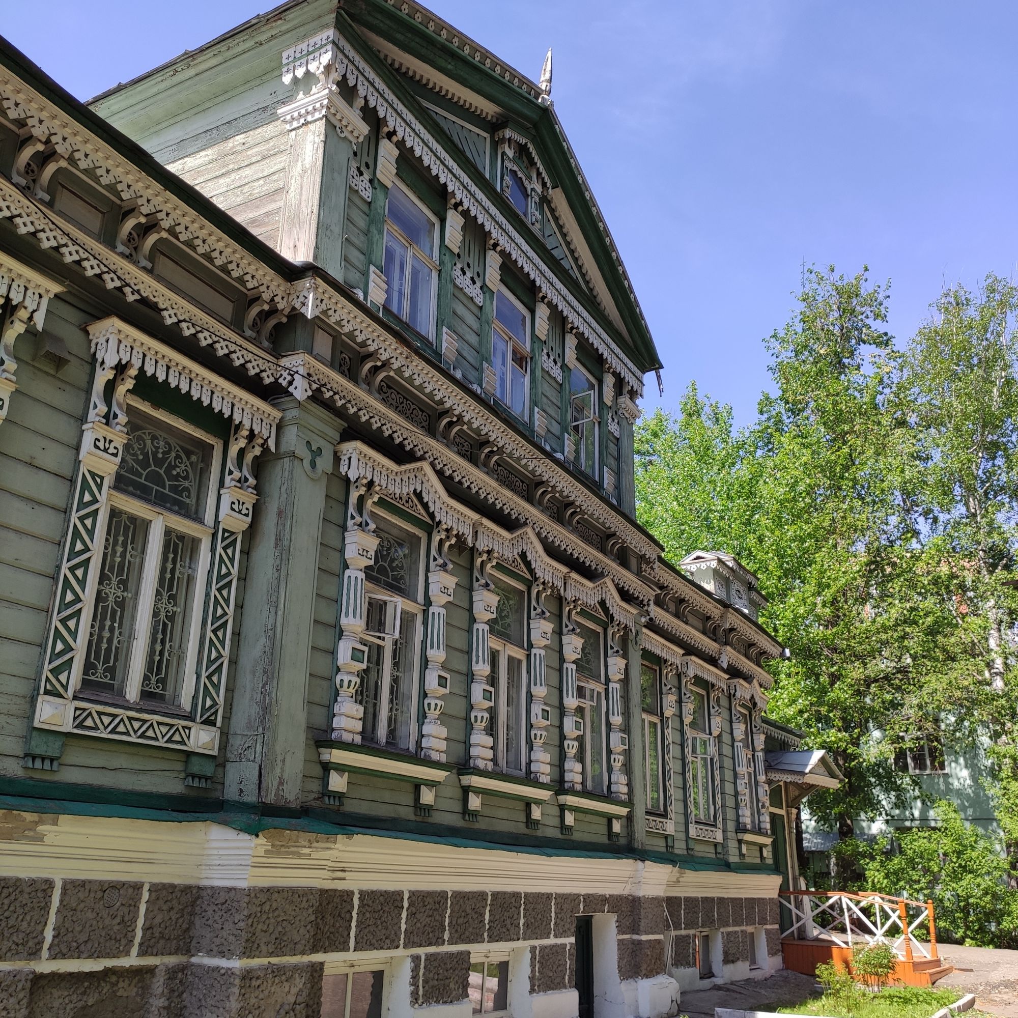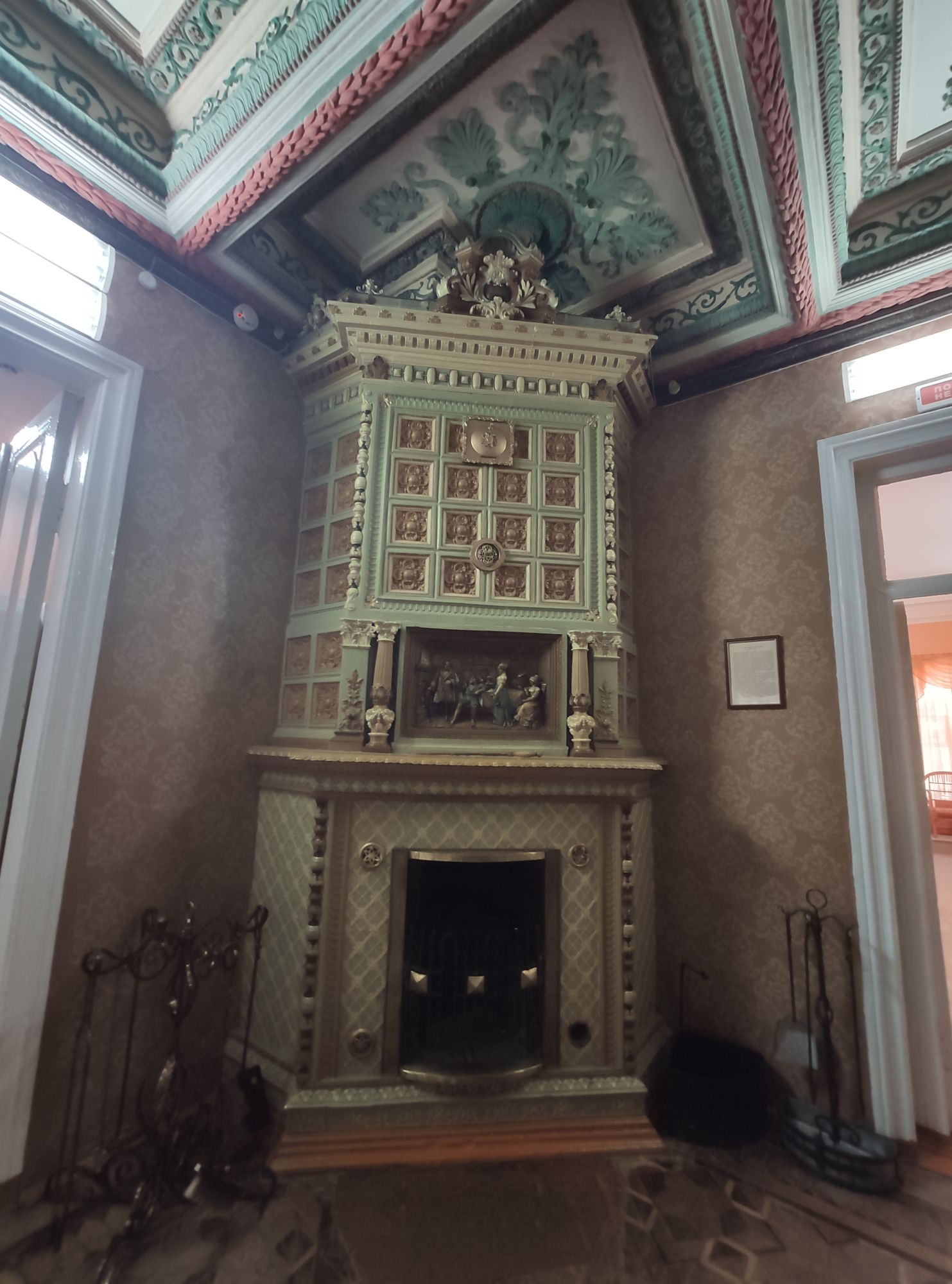 25 июня 2021 Ну и 17 мая - последний ходовой день отпуска. Завтракаем и едем в Пензу. Я очень хотела побывать внутри в том самом теремке - Доме лесопромышленника Тюрина. Там сейчас музей народного творчества. Скопировала историю дома в скрытый текст. Переписывать не буду, взяла отсюда Скрытый текст Усадьба С. Л. Тюрина (Музей народного творчества). Здание городской усадьбы пензенского лесопромышленника Степана Лаврентьевича Тюрина (1846-1911гг.), является региональным памятником деревянного зодчества середины XIX века (решение исполкома Пензенского областного Совета депутатов трудящихся №466, октябрь 1972 г.). Неподалеку от Тамбовской заставы, бывшей окраины нашего города, на улице, ранее называвшейся Верхней Пешей, (сейчас ,ул.Куйбышева) находится особняк, расположенный посреди обширной усадьбы, принадлежал в 1 половине 19 века надворной советнице Варваре Никаноровне Загоскиной, двоюродной тетке известного русского писателя , Михаила Николаевича Загоскина и родной теткой Лаврентия Загоскина — известного Путешественника, знаменитого исследователя Аляски. Вокруг здания сохранилась часть старого усадебного парка, сейчас получившая статус памятника природы. В сквере и за пределами изгороди сохранилась часть липовой аллеи, идущей от здания в сторону ул. Красной. Более 150 лет назад по этой липовой аллее подъезжали богатые экипажи, запряженные парой или тройкой лошадей. Бил фонтан, мимо проходили богатые сановитые кавалеры и дамы в красивых длинных платьях со шлейфами. Имение во владении Загоскиных находилось до 1866 года, до конца 19 века владельцы менялись, самым знаменитым среди них был барон Отто Карлович фон Эйнем, владевший ею с 1892 по 1897 годы, брата известного в то время московского кондитера Фердинанда Теодора фон Эйнема. В советский период предприятие, созданное «шоколадным королём» фон Эйнемом, стало известной на весь мир кондитерской фабрикой «Красный Октябрь». Деятельность Отто Карловича фон Эйнема(владельца пензенской усадьбы в 1892-1897 гг.) была связана с благотворительностью и развитием ремесленного труда в губернии. При нем в этом кабинете был установлен необыкновенной красоты камин. По сути это даже не камин, а причудливое соединение камина и печи-голландки, характерное соединение для городской архитектуры Германии и Голландии. Камин облицован разноцветными майоликовыми изразцами немецкой работы, украшенными растительным и геометрическим орнаментом, снабжен затейливо выполненными вьюшками из блестящей бронзы, Над каминной полкой, на уровне глаз зрителя, помещен керамический рельеф с жанровой сценкой из средневековой городской жизни: двое мужчин, судя по одежде, состоятельных купцов, о чем-то беседуют, мужчина помоложе поглощен разговором с нарядной дамой. Через несколько лет после смерти фон Эйнема владельцем усадьбы с 1901 по 1911 гг. стал известный пензенский лесопромышленник Степан Лаврентьевич Тюрин. Это отличительная черта делового человека того времени - сначала дело, потом благотворительность, и только потом личные удобства. А затем – его вдова Любовь Андреевна Тюрина. Он коллекционировал редкие в наших местах виды деревьев. Здесь на месте старого фруктового сада он собрал дендрарий из более чем 40 видов промышленных деревьев, который он привез из Маньчжурии, Дальнего Востока, Памира, Сибири и даже Северной Амери