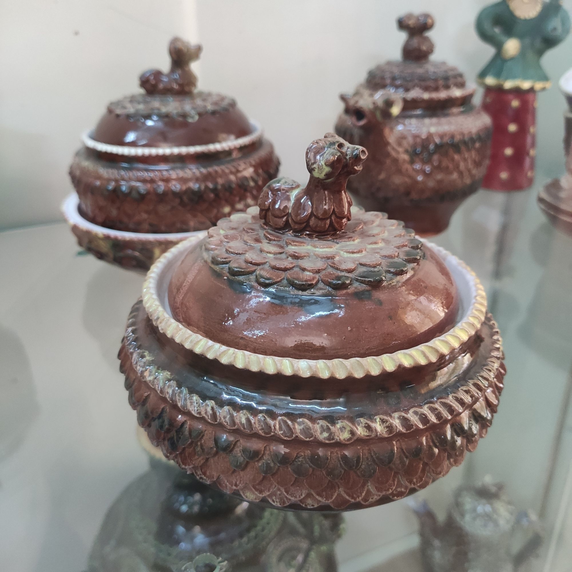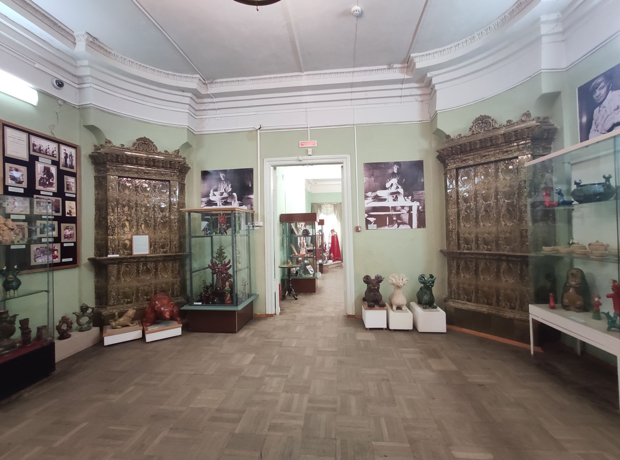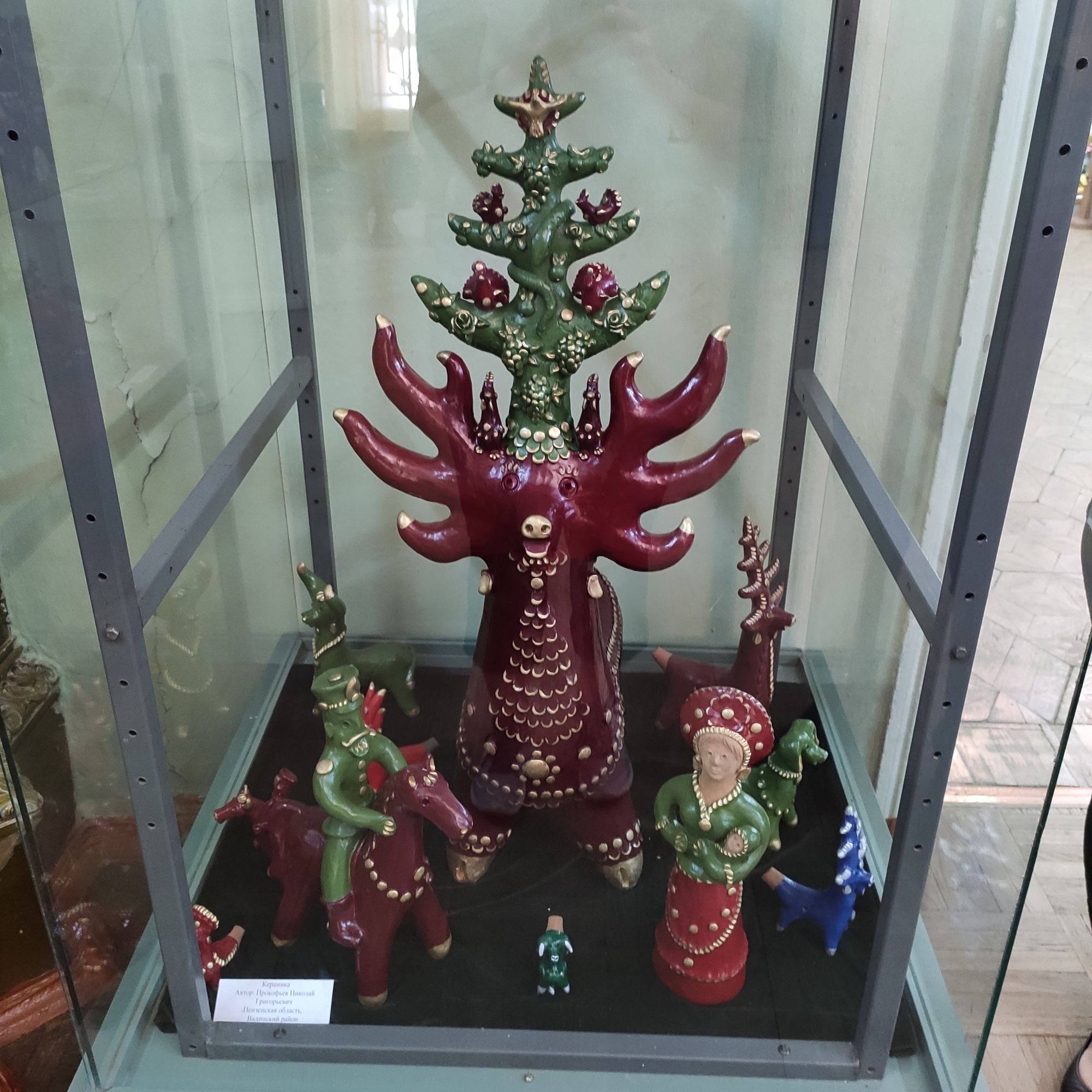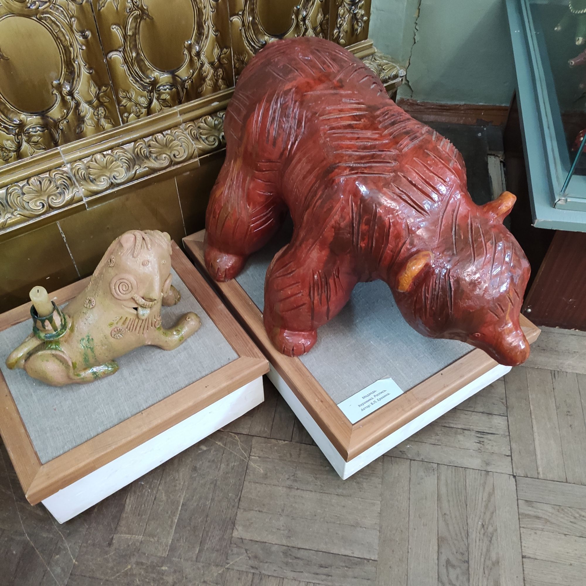 25 июня 2021 Ну и 17 мая - последний ходовой день отпуска. Завтракаем и едем в Пензу. Я очень хотела побывать внутри в том самом теремке - Доме лесопромышленника Тюрина. Там сейчас музей народного творчества. Скопировала историю дома в скрытый текст. Переписывать не буду, взяла отсюда Скрытый текст Усадьба С. Л. Тюрина (Музей народного творчества). Здание городской усадьбы пензенского лесопромышленника Степана Лаврентьевича Тюрина (1846-1911гг.), является региональным памятником деревянного зодчества середины XIX века (решение исполкома Пензенского областного Совета депутатов трудящихся №466, октябрь 1972 г.). Неподалеку от Тамбовской заставы, бывшей окраины нашего города, на улице, ранее называвшейся Верхней Пешей, (сейчас ,ул.Куйбышева) находится особняк, расположенный посреди обширной усадьбы, принадлежал в 1 половине 19 века надворной советнице Варваре Никаноровне Загоскиной, двоюродной тетке известного русского писателя , Михаила Николаевича Загоскина и родной теткой Лаврентия Загоскина — известного Путешественника, знаменитого исследователя Аляски. Вокруг здания сохранилась часть старого усадебного парка, сейчас получившая статус памятника природы. В сквере и за пределами изгороди сохранилась часть липовой аллеи, идущей от здания в сторону ул. Красной. Более 150 лет назад по этой липовой аллее подъезжали богатые экипажи, запряженные парой или тройкой лошадей. Бил фонтан, мимо проходили богатые сановитые кавалеры и дамы в красивых длинных платьях со шлейфами. Имение во владении Загоскиных находилось до 1866 года, до конца 19 века владельцы менялись, самым знаменитым среди них был барон Отто Карлович фон Эйнем, владевший ею с 1892 по 1897 годы, брата известного в то время московского кондитера Фердинанда Теодора фон Эйнема. В советский период предприятие, созданное «шоколадным королём» фон Эйнемом, стало известной на весь мир кондитерской фабрикой «Красный Октябрь». Деятельность Отто Карловича фон Эйнема(владельца пензенской усадьбы в 1892-1897 гг.) была связана с благотворительностью и развитием ремесленного труда в губернии. При нем в этом кабинете был установлен необыкновенной красоты камин. По сути это даже не камин, а причудливое соединение камина и печи-голландки, характерное соединение для городской архитектуры Германии и Голландии. Камин облицован разноцветными майоликовыми изразцами немецкой работы, украшенными растительным и геометрическим орнаментом, снабжен затейливо выполненными вьюшками из блестящей бронзы, Над каминной полкой, на уровне глаз зрителя, помещен керамический рельеф с жанровой сценкой из средневековой городской жизни: двое мужчин, судя по одежде, состоятельных купцов, о чем-то беседуют, мужчина помоложе поглощен разговором с нарядной дамой. Через несколько лет после смерти фон Эйнема владельцем усадьбы с 1901 по 1911 гг. стал известный пензенский лесопромышленник Степан Лаврентьевич Тюрин. Это отличительная черта делового человека того времени - сначала дело, потом благотворительность, и только потом личные удобства. А затем – его вдова Любовь Андреевна Тюрина. Он коллекционировал редкие в наших местах виды деревьев. Здесь на месте старого фруктового сада он собрал дендрарий из более чем 40 видов промышленных деревьев, который он привез из Маньчжурии, Дальнего Востока, Памира, Сибири и даже Северной Амери