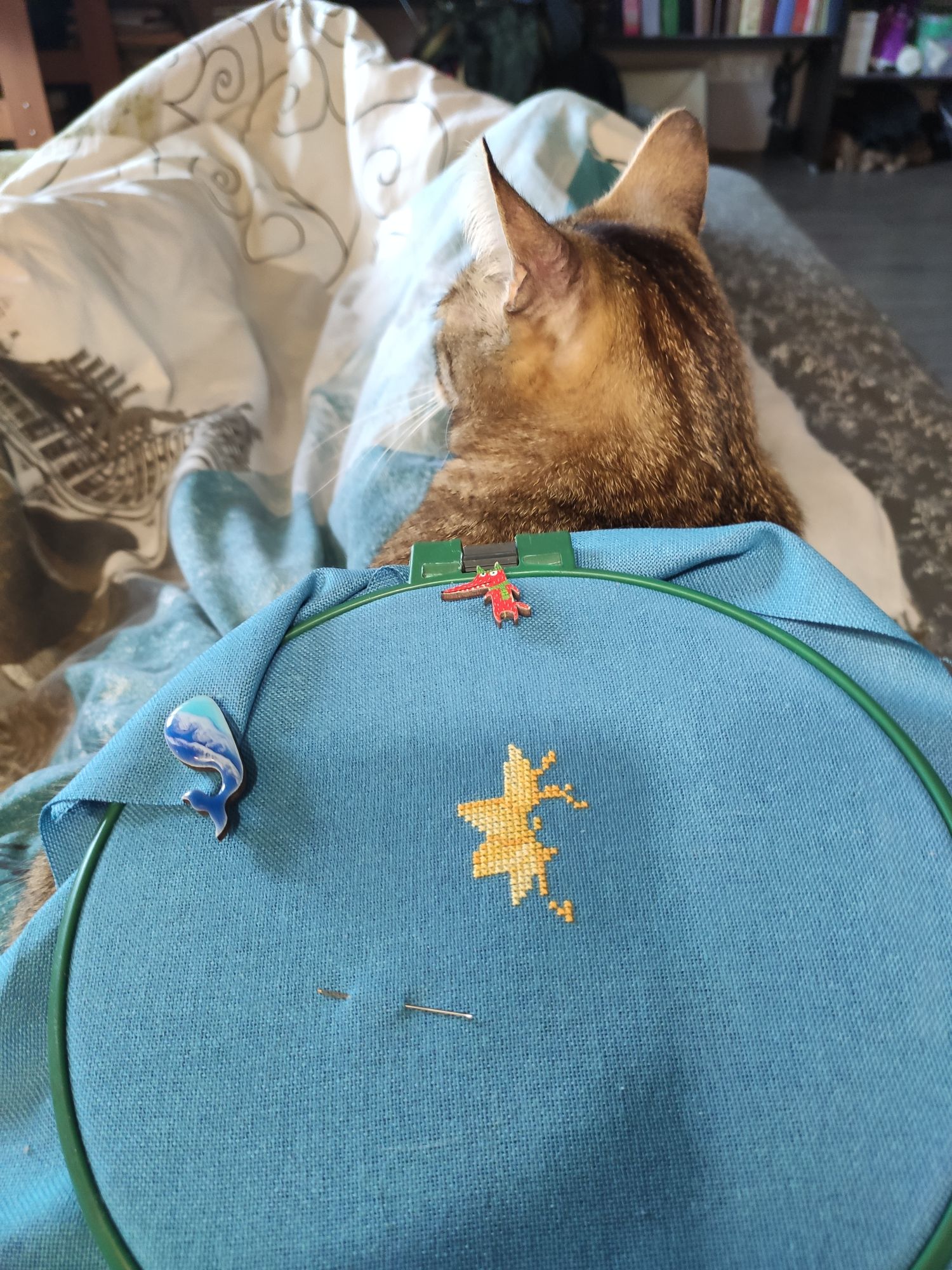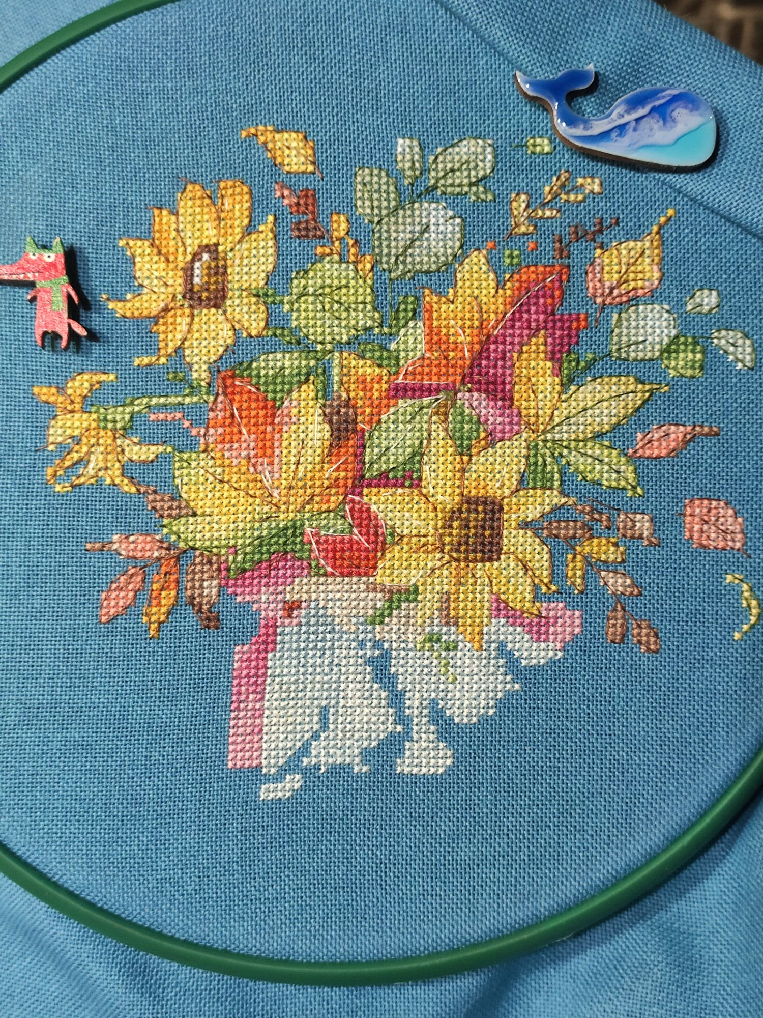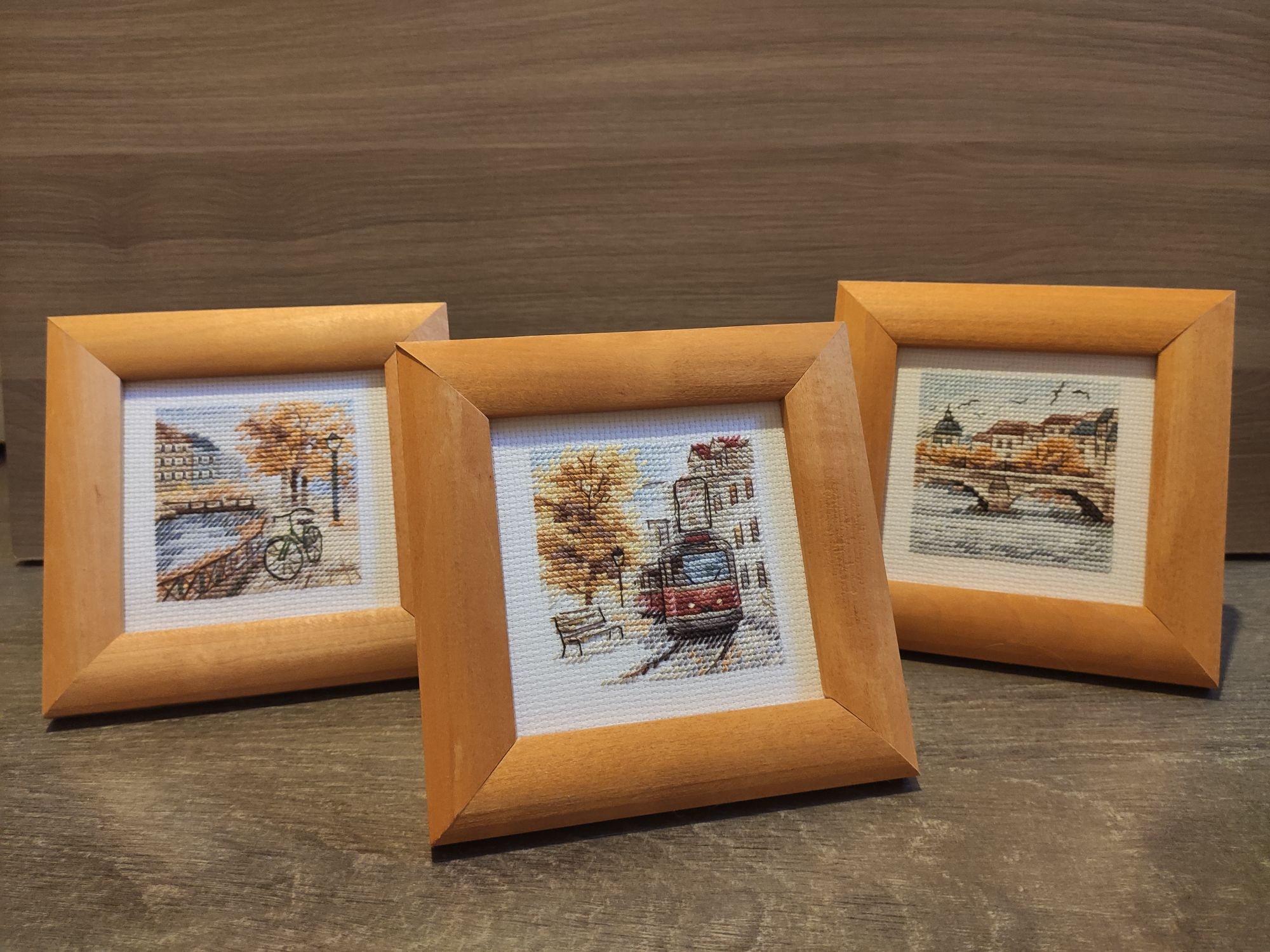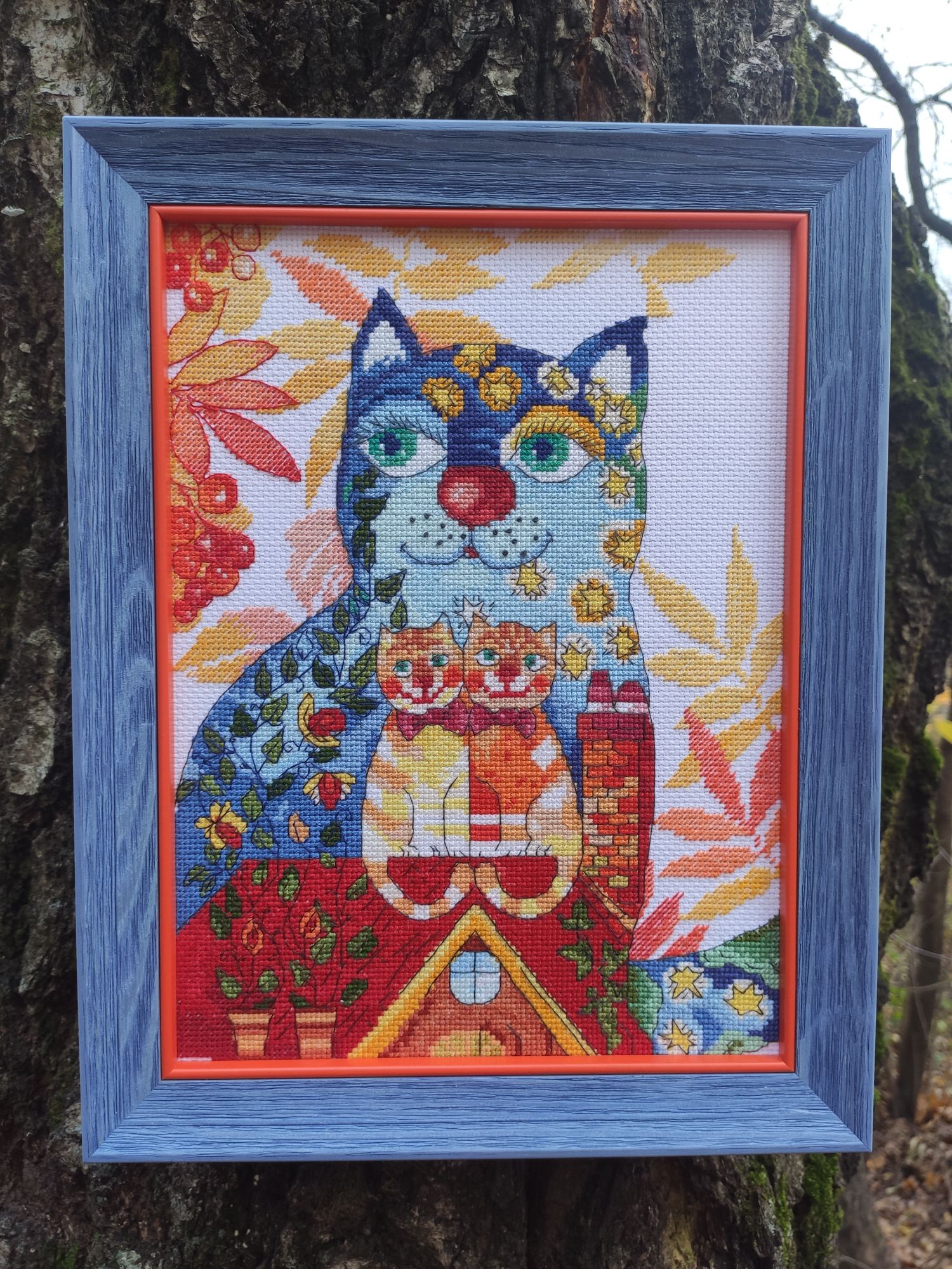 24 октября 2021 Зачастила я с вышивкой (на отчёт по поездке совсем времени нет, но я пока всё ещё очень хочу его тут написать))) Сегодня прям не только процессы, но и оформление будет!) 1) Осень в ее руках от Полины Тарусовой закончена. Процесс - кайф! 2) Начала "Зеленуш и ловец снов" от Rugo (муж Насти Кравцовой из Овечкиных забав стал делать схемы). Случайно положила нитки от нового процесса на ткань девочки-осени и поняла, что у меня синий период))) Причем определенного оттенка))) В быту именую Зеленуша Синим, т.к. я его именно синим вижу. Набор мне девчонки купили на ФР. В набор входит пластиковая голубая канва, нитки, иголка, схема. В принципе, готов к тому, чтоб открыть и шить) 3) Наконец-то добралась до Щелково и оформила у Ирины из Багет Идеи кучку работ. Планировала меньше, но #такполучилось)))) Все оформления без стекла. Зайца и Тоториков показала в прошлый раз, т.к. у них готовые рамки я у Ирины купила. Итак, вот моё богатство))) Начну с оформленных подарков. По пути в Пермь, мы заезжали в Казань. Я, естественно, не могла не забежать к @МарСанна. Сидели, болтали, ничего не предвещало. Я достала посмотреть ее вышивки. Беру в руки котиков, у меня загораются глаза и я слышу - Хочешь подарю, а то они у меня так в виде тряпочки и провисят... Ну котиков я точно бросить не смогла)))) Пока не передумал никто, смотала их в свой рулончик и увезла с собой)))) С Ириной очень долго подбирали рамку. Я сначала хотела другую, но рада, что Ирина меня мягко уговорила на эту. В сочетании со слипом - вау!) МарСанна, спасибище! Дальше малютка от Аси. Это тоже моя любовь! Ася подарила мне этих кактусят тряпочкой. Одно время они на стене провисели на булавочках, потом долго путешествовали в рулончике, побывали на встрече нижегородских вышивальщиц, а теперь вот у Ирины обрели одёжку в виде офигенского багета. Он как вельветовый! Чаеманы от Пчелиного улья (в моей версии - кофеманы)))). Это мы с Женькой с утра)))) В прошлый мой приезд к Ирине мы рамку так и не подобрали. В этот же - как-то они ррраз и оформились. Отдельное спасибо ОлеЮ (опять глюк с упоминаниями через @), что она победила в сражении с пятнами, которые не были мной замечены дома. И напомню - какие они чудесные! Ещё один дизайн от Пчелиных забав. Не помню названия, но это вышивка, которая дарила позитив в прошлый карантин. Это же я на карантине, - сказала я, уведев смешного птиса в ленте. Он был сразу же куплен и вышит. А оформлен вот только теперь. Женя из Пчелиного улья сейчас продает все свои схемы по 100 рублей (вдруг кто захочет заиметь такого красавца)))) Ну а у меня оформилась Девочка-осень. Хотелось быстрого оформления. Стали подбирать рамы. В целом, подходила зелененькая с кактусят, но хотелось прослойки. А вот прослойку найти не удалось. Тогда Ирина вытащила несколько готовых. Пару я сразу отмела, а эту решили приложить. И она, на удивление, подошла. Хотя на фото всё равно передать цвет канвы мне не удаётся. Ну и закончу показом оформления осенних миниатюрок от Алисы. Тут Ирина не при чем. Я в Леонардо уже давно купила эти рамочки, но натянуть было лень. А тут повод такой. В итоге - натянула, но руки у меня кривые)))), поэтому близко фоткать не стала)))) В целом, норм) Теперь надо будет повесить. Надеюсь, что завтра проверну эту авантюру - крючки я купила))) Catopuma, росомашка, BlueeYeS и 30 других сказали спасибо Поделиться сообщением Ссылка на сообщение