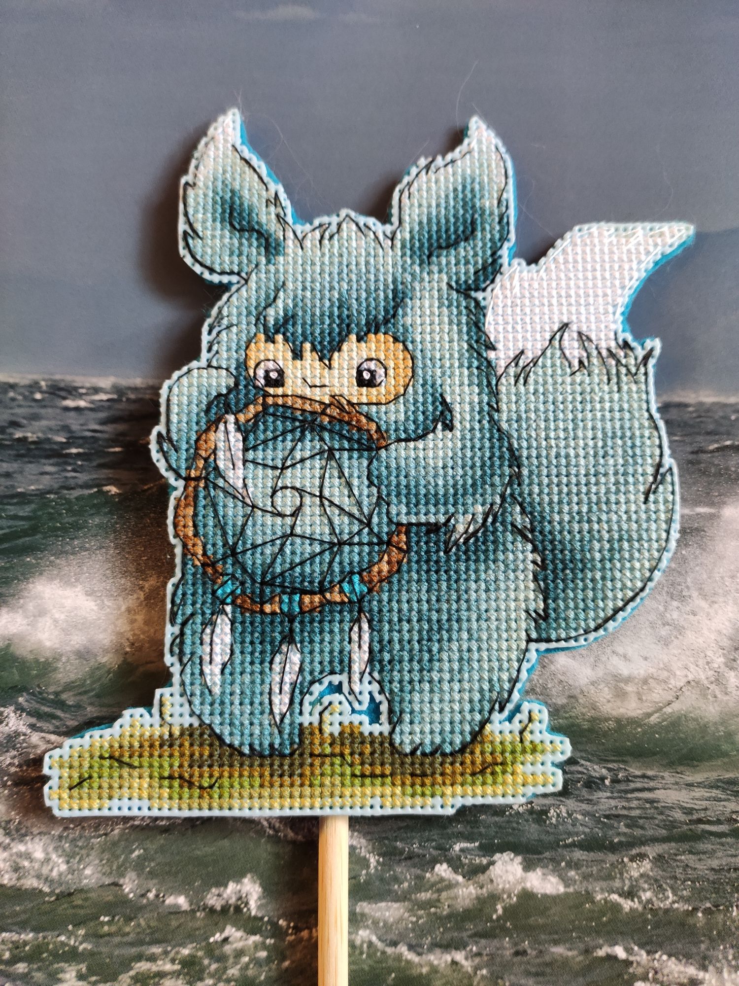 29 октября 2021 Закончила я Зеленуша с ловцом снов от Rugo - Егора Кравцова, мужа Насти Кравцовой из Овечкиных забав. Результат офигительный. Я тащусь от цветов, от взгляда и ваще)))) По схеме - много шахматки и есть не оправданные одиночки. Рада, что не страдаю по сериям работ. Этих Зеленушей 5 или 6 схем, но бороться с шахматкой я не готова, хотя, повторюсь, результат мне нравится) Оформила на палочку, сзади фетр. Сейчас решила дошить Лунного котейку. Прям синий период у меня)))) ЛАДОМИРА, Маса, IrnKA и 25 других сказали спасибо Поделиться сообщением Ссылка на сообщение