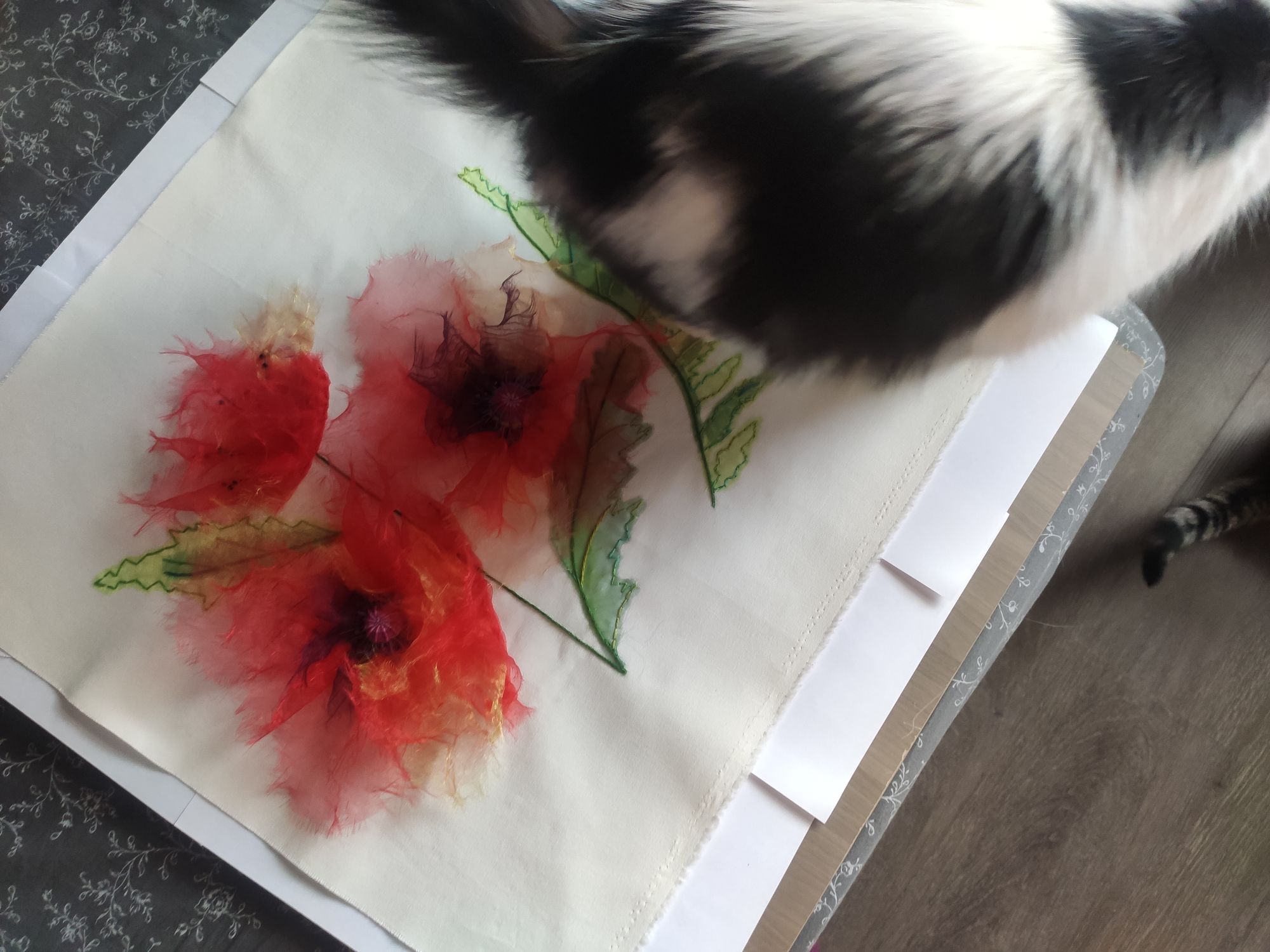 25 января 2022 А я не просто так пришла))) Встречайте! Маки! Нет, не так! МАКИ!!! Фирма Rowandean Набор Oriental Poppies 0149 Купила в Нитке. Вроде как у них эксклюзивные продажи наборов этой фирмы) История: Нитку мне сосватала Ася, насколько я помню))) Я давно залипала на их тетю лошадь и бизона. Но с этими наборами пока так и не сложилось)))) И вот однажды Нитка в инсте выложила отшив маков! И всё - я пропала! Но в продаже тогда их не оказалось. Потом я нырнула в работу и мне было не до мониторинга этого набора. Решила, что куплю потом)))) А потом наступило быстрее, чем я думала - этот набор мне подарила большая группа лиц, сплочённая Стичем, на мой день варенья))) И я поняла, что отошью эти маки сразу после Снежной королевы) Это не вышивка - это творчество) В наборе ткань с небольшими наметками рисунка, несколько цветов органзы, ткань для центра маков, иголка, нитки. И инструкция на английском + выкройки))))) Инструкцию перевела с помощью перевода в Яндексе по фото. В отшиве ориентировалась на фото обложки, фото в инсте у Нитки и собственные ощущения))) Гайку мне накрутят вряд ли, ибо вышивки тут не много. Но процесс я фоткала, поэтому покажу))) Коты помогали во время всех операций с набором - вскрытие, глажка, вырезание, пришивание, фотографирование))) Девчонки, спасибище! И да, в наборе не хватило органзы фиолетового цвета. Девчонки из Нитки опреативно откликнулись и готовы были помочь найти и выслать. Но мне надо было вотпрямсейчас, поэтому я добыла её сама у свекрови)))) Ну и закрываем гаечку с Робином) Спасибо чудесной компании. Это было долго, но очень душевно)))) Остальное попозже принесу) vasilisa-1977, makalicha1970, Egelia и 30 других сказали спасибо Поделиться сообщением Ссылка на сообщение