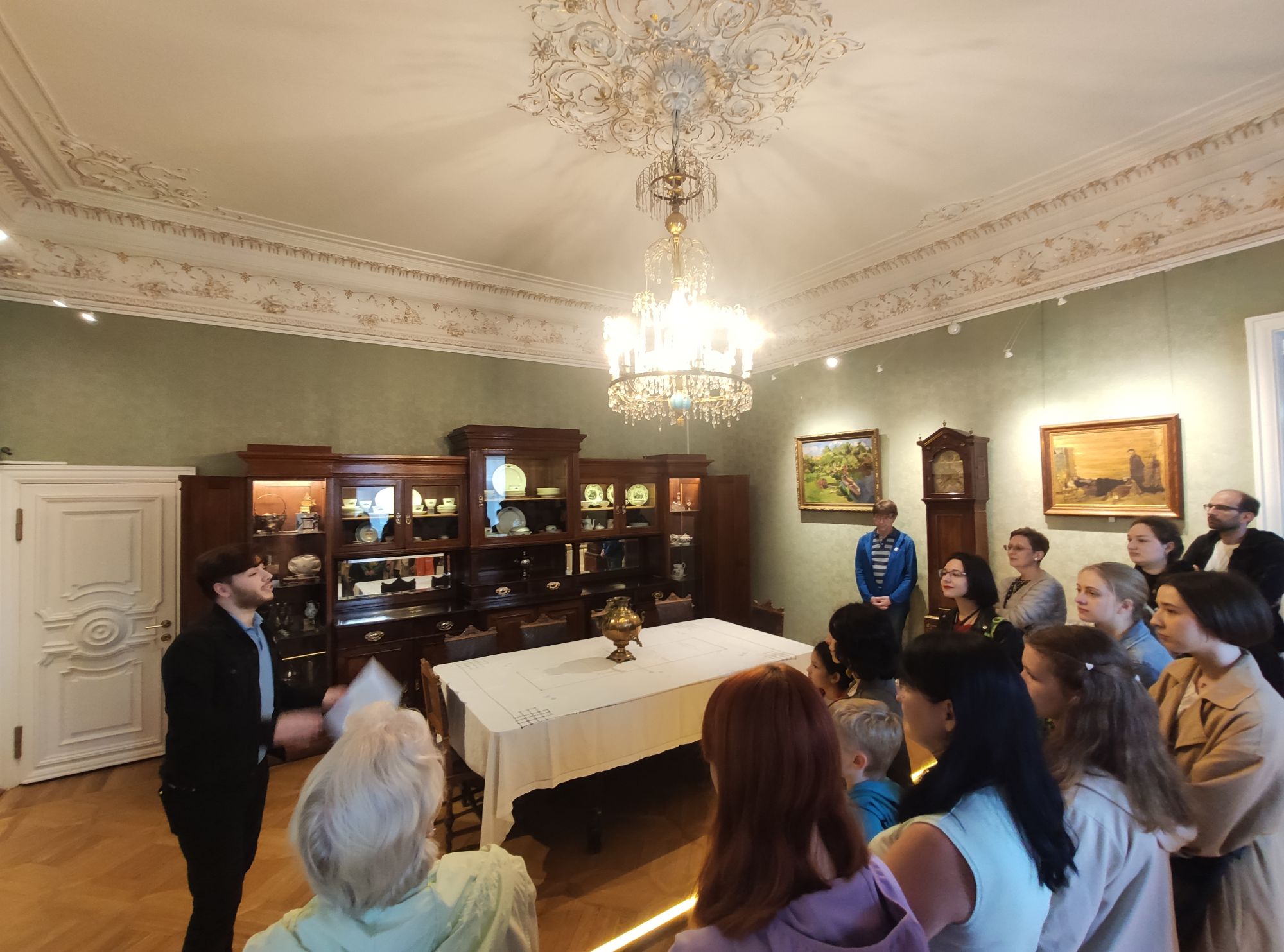 16 июня 2022 А пока я пробиваюсь сквозь 50 оттенков серого в девушке, принесу вам невышивальный отчёт. Наверное, большой. 5 июля день был длинный. Сначала муж меня уговорил сходить в дом-музей Шаляпина с проектом Stradivaly. У них канал про музыку на Ютубе, канал в телеграме (https://t.me/Stradivaly ). Ребята очень клёвые и весёлые) И экскурсию по дому вел Саша из этого проекта. Но за ним присматривал Александр - штатный экскурсовод музея. Ему мы задавали сложные вопросы))) В общем и целом, биографию Федора Ивановича можно почитать в интернете, поэтому я коротенько. Эту усадьбу Шаляпин приобрел в 1910 году. Усадьба деревянная, выстоявшая в пожаре 1812 года. После приобретения усадьбы Шаляпины ее полностью реконструировали по последнему слову техники - там появился телефон, водопровод с ванными комнатами, электричество и т.д. Территорию усадьба тогда занимала тоже огромную, не то, что сейчас. У Шаляпина было 2 семьи. Первая жена - Иола Торнаги была итальянской балериной. Федор Иванович влюбился в нее во время ее гастролей по России. Признался в любви оригинально - спел в опере Онегина: «Онегин, я клянусь на шпаге: Безумно я люблю Торнаги!». Венчались они в Гагино (это деревня на пути к деревне, где Женькина бабушка живёт). Мы там были, когда церковь только начинали реставрировать. Надо будет заехать и посмотреть что там сейчас. На фото портреты и личные вещи Иолы. Заинтересовало то, что она была католичкой (сохранились ее иконки), но они венчались. Значит она перекрестилась? Не нашла пока этой информации, но может потом где попадется. В браке родилось шестеро детей (старший умер ребенком). Но потом у Шаляпина появилась вторая семья. И именно со второй женой Шаляпин уехал в 1922 году за границу. Про вторую семью тут почти не рассказывали, т.к. в этом доме он жил именно с Иолой. Сам Шаляпин очень любил рисовать и неплохо это делал. Был прям очень дружен с художниками Коровиным и Серовым. Рисовал Шаляпин везде и всем. Даже углем на скатертях. Сохранились чашки с его рисунками. Много висит картин, которые ему дарили. А этот портрет они сообразили с Коровиным и Серовым на троих. У каждого что-то не получалось и дорисовывал следующий. Шаляпин был знатный и азартный игрок. При этом вообще не умел проигрывать. Как-то его обыграла в бильярд дочь и он долго дулся на неё. Ещё он любил поесть и неплохо готовил. Например, макароны по-шаляпински - это макароны, сваренные в насыщенном грибном бульоне. А пельмени он лепил всегда и везде))) И уху отлично готовил. Любил розыгрыши. Например, пошли они с друзьями на рыбалку, т.к. ухи захотелось. А любимое место занято каким-то сельским учителем. Решили его разыграть. Надули бычий пузырь, нарисовали на нем реалистичное лицо, привязали нитку и кинули в реку. Учитель увидел, испугался, а эти ещё и за верёвочку дёргают. Учитель сбежал, место освободилось. А на самовар, оказывается, баранки вешали, чтобы они теплые были)))) Гримировался Федор Иванович всегда сам дома. У него была коллекция накладных носов и ушей + парики. Загримируется, а потом кучера вызывает. Иногда кучера в страхе уезжали, например, когда он для роли Мефистофеля был загримирован)))) На пике славы в честь Шаляпина называли духи, сигареты и много всего другого. А после прихода советской власти, судьбу национализировали. Шаляпиным оставили всего пару комнат на верхнем этаже (малюсеньких комнат). А в о