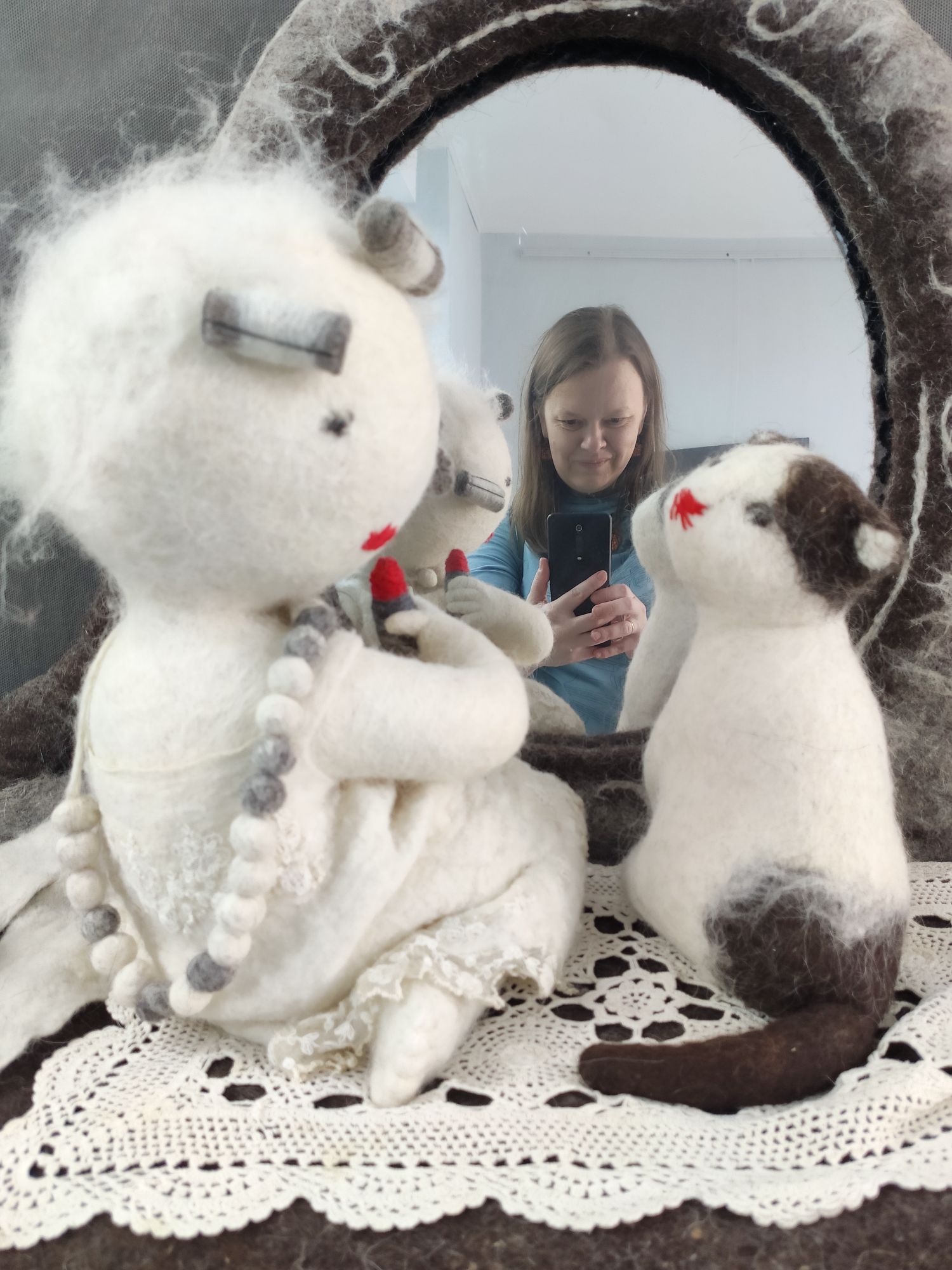 16 июня 2022 Пункт 2 - выставка Ирины Андреевой "Теплый день" в ДК "Темп" недалеко от метро Алтуфьево. Да-да, это войлочные куклы. Я уже показывала фото с её выставки "Притяжение зимы". И мне так понравилось, что я решила сходить ещё. Побродить, душой погреться. Поразглядывайте детальки на фото (лучше сходить, конечно, там до 8 вечера до 26 июня можно попасть). И ещё - в этот раз автора не было, зато выставку мне показал прекрасный охранник. Дяденька в возрасте. Мы с ним очень мило пообщались (ну Оля и дяденька - это уже бренд)))). И беременный и кормящий валеночки))) А на улице было синее-синее небо и скворцы. Любушка1985, ЕленаМ, Аринесса и 25 других сказали спасибо Поделиться сообщением Ссылка на сообщение