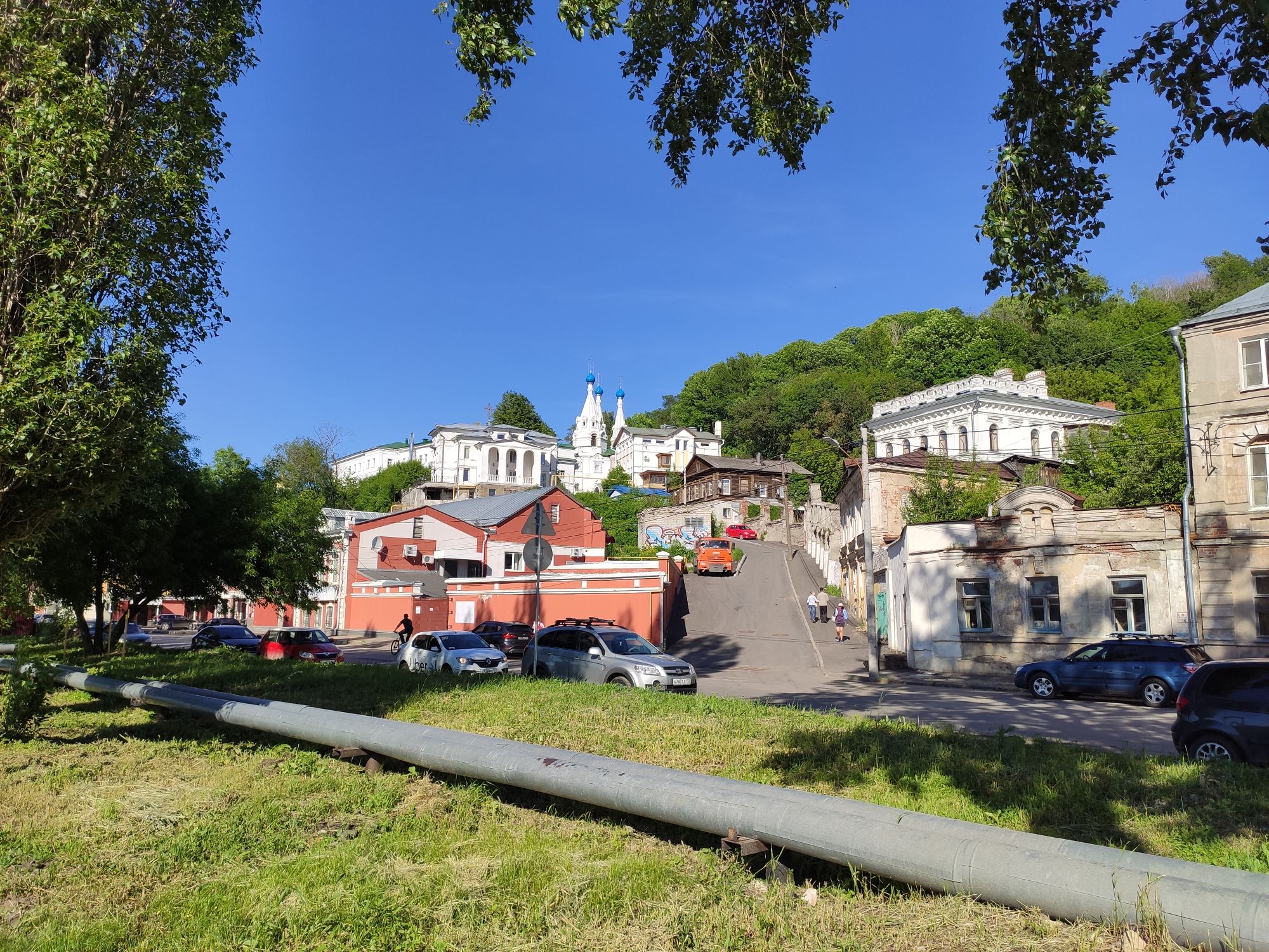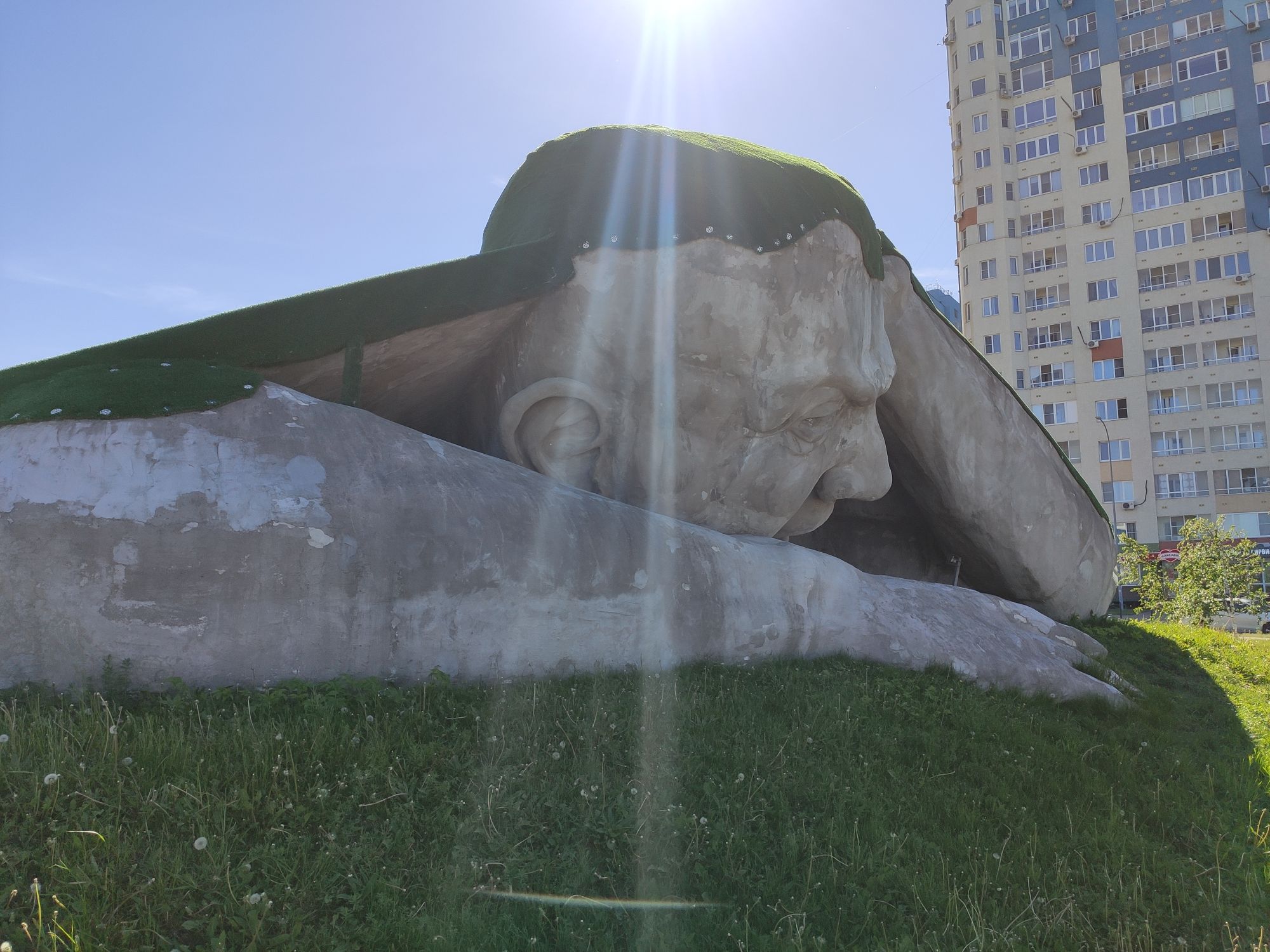 23 июня 2022 Ну и отчёт, который я никак не могу написать))) На длинные выходные долго думали куда поехать. И решили, что, если не знаешь куда поехать, "ехай" в Нижний)))) Выехали 11-го не рано. Пробки стояли прекрасные. Ощущение было, что в Нижний хотят все. В пробках Женька совсем не любит стоять, поэтому мы доверились Яндексу и ехали... Вел он нас интересными тропами (видимо, заражен он вирусом Сусанина))) По пути любовались на облака А это нас уже Нижний вечером встретил Встретились с Асей и Ко, обнимались, наобщались))) Взяли билеты на следующей день на экскурсию))) Выспались))) И 12-го пошли с утра гулять по жаркому городу. Кремль радовал цветами и ухоженностью. очень мне понравились мини-тюльпанчики, которые в тени больших цвели)) Думали дойти и посмотреть маленького соловья на одной из стен Кремля. В интернете написано было, что он как раз где Холм поэтов. Но увы, проход туда был закрыт - сейчас там воссоздают фуникулёр старинный. Полюбовались на откосы, на ромашки и маки... И пошли дальше. Возле этой церкви случайно встретили Женькиного одноклассника))) Дошли до крыш с НЛО. Взглянули на Рождественскую церковь с не парадного ракурса Перешли через мост (там было шикарное граффити с крокодилом, но я не сфоткала). Первая наша цель - пакгаузы. Их наконец-то открыли!) Это очень интересный артефакт 19 века изначально спроектированный для Москвы. Вот тут их историю можно почитать - https://travelblognn.ru/azhurnye-pakgauzy-na-strelke-unikalnyj-obekt-kulturnogo-naslediya-iz-19-veka-plyus-unikalnye-foto-rechnogo-porta/ . Их хотели снести, но энтузиасты отстояли. Сейчас их красиво обыграли, а в зеркальных павильонах внутри проходят выставки. Сейчас в одном из залов бесплатная выставка, рассказывающая об истории этих сооружений. Недалеко от Стрелки нас ждала ещё одна точка на карте. НО сначала надо было поесть. Решили зайти в ТЦ Седьмое небо (надеюсь, не вру))) и посмотреть там кафе. До ТЦ шли по набережной, украшенной граффити: Из всех кафе нам приглянулась Хачапурная. Мы очень вкусно пообедали, а при оплате счета нам сказали, что, если счёт оплатить наличными, то в подарок литр домашнего вина на выбор))) Мы взяли белого полусладкого. Нам принесли его в двух поллитровых пластиковых бутылочках))) И мы довольные пошли дальше. Второй точкой был вот этот дядька страшный... Это как-то связано с культурным обменом с Венгрией - вроде, у них там тоже есть такой... Ну а дальше... Дальше экскурсия... У нас уже было прилично шагов на шагомере, но такси для слабых! А мы-то ого-го! И мы пошли обратно)))) по жаре)))) Дойдя почти до места, где начиналась экскурсия, мы поняли, что время ещё есть, и просто тупо сидели в тени и... пили холодное вино, любуясь Волгой и видом на виллу в итальянском стиле, про которую Ася как-то рассказывала у себя в теме))) Экскурсия отдельно) vasilisa-1977, Irm, OlkaY и 27 других сказали спасибо Поделиться сообщением Ссылка на сообщение