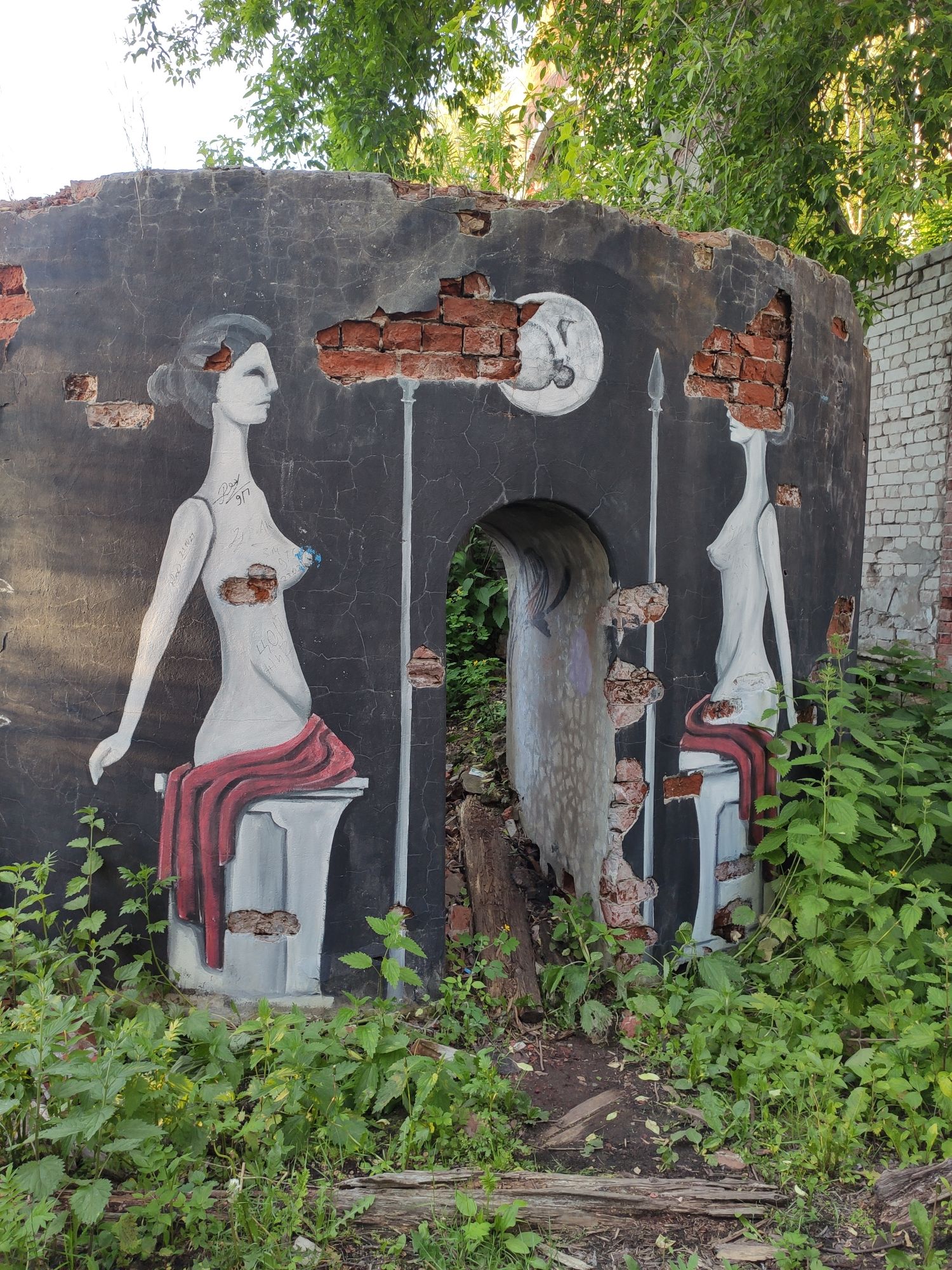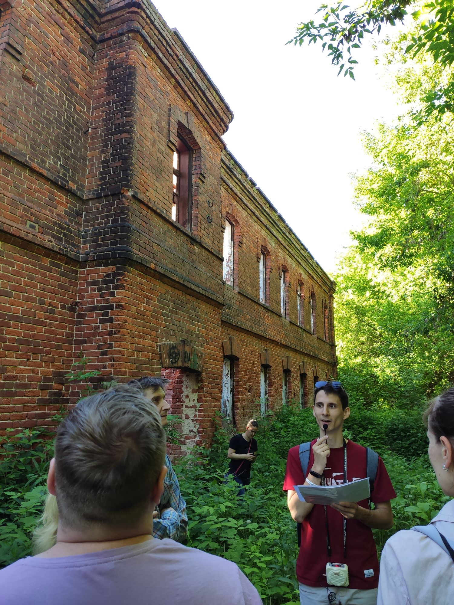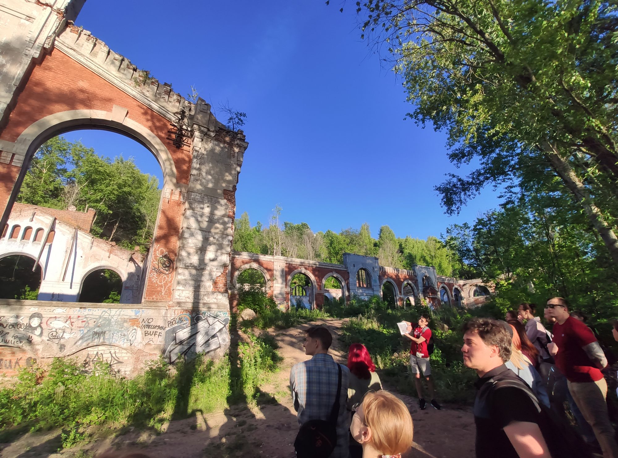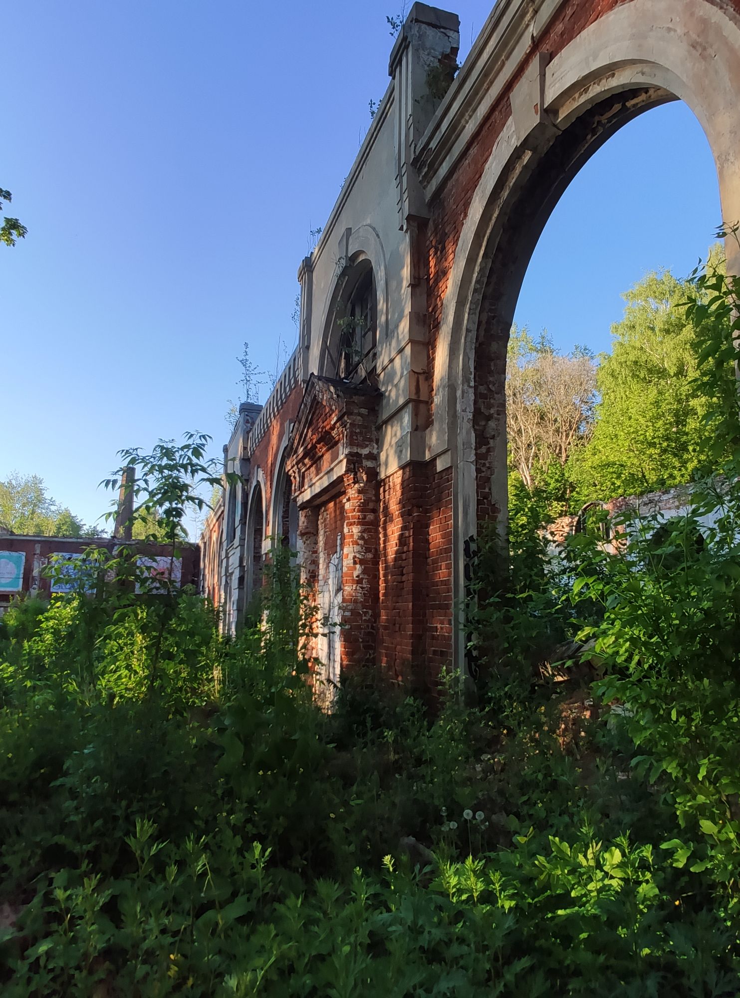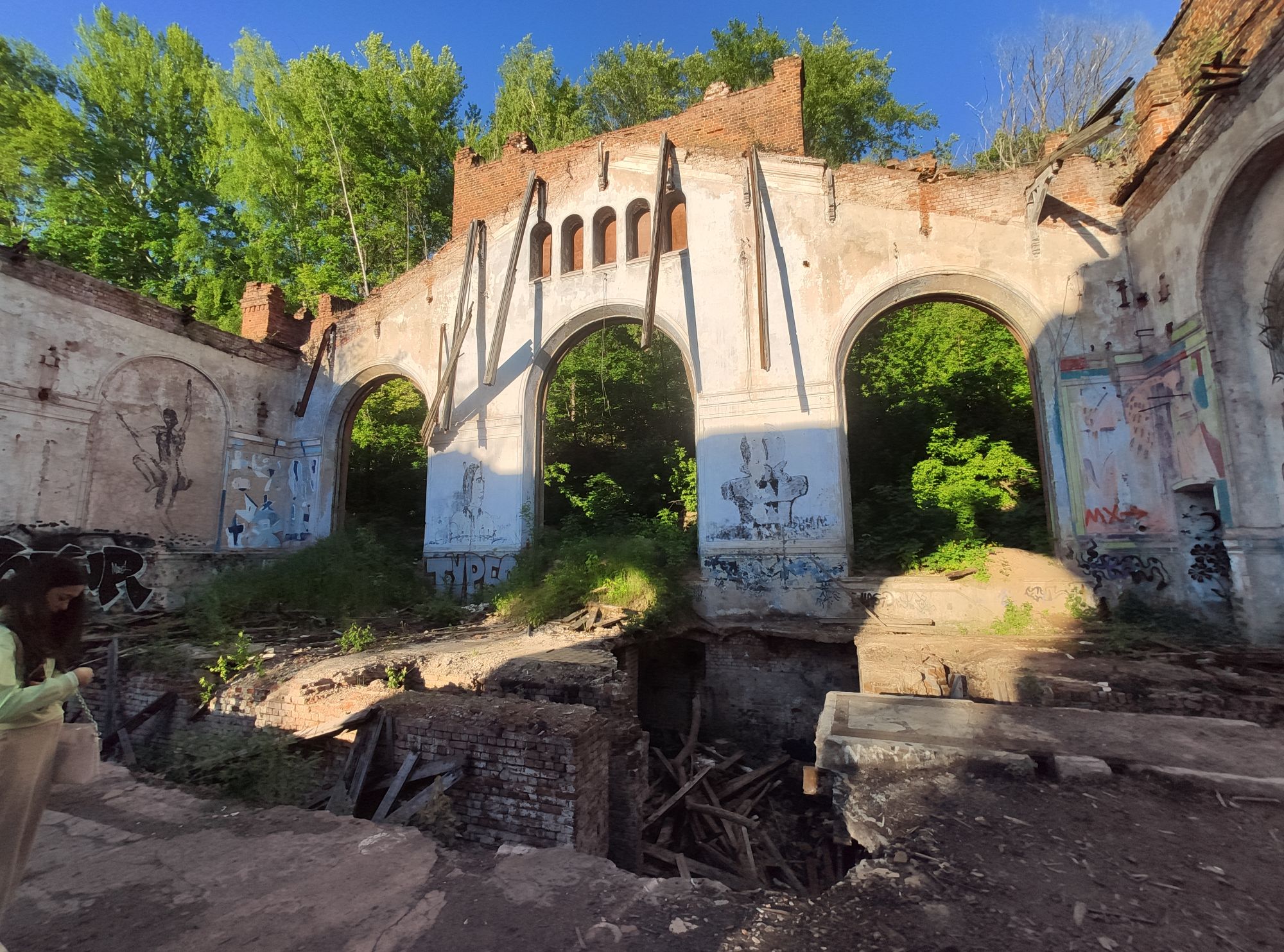 23 июня 2022 Экскурсия была по Черниговской. Когда-то это была мега-активная улица - мукомольные мельницы богатых купцов, Ромодановский вокзал и инфраструктура с ним связанная, судна на воде, паровозы, а позднее поезда на берегу. Вот тут есть старые фото этих мест. Экскурсию вел молодой человек от проекта Городские экспедиции. Рассказывал он очень интересно, но у меня часть экскурсии выпало из восприятия, т.к. организм, видимо, боролся с тепловым ударом. Я прям физически не могла стоять на солнце. В итоге я пряталась за колоннами и не очень слышала рассказ))) Хотя в мою стену каких-то знаний всё равно добавились новые кирпичики. К сожалению, судьба зданий, которые мы посмотрели на этой экскурсии, совсем не ясна. Возможно, части из них не станет уже в ближайшие годы. Что-то могут перестроить, что-то снести, не смотря на протесты градозащитников. Под Метромостом находится мельница Башкировых. Она работала до советского времени. Тут был и современный элеватор, который снесли совсем недавно... А сейчас думают вписать эти здания в современный жил. комплекс. Опоры метромоста облюбовали граффитисты. Есть там и очень неплохие рисунки. И тоже почти под мостом рядом с мельницами спрятался Ромодановский вокзал, хотя сейчас это не вокзал, а производство пластиковых карт (или чипов для них - не помню). Вокзал перестал работать как вокзал в 1970-х годах, когда склоны в нескольких местах обвалились на ЖД полотно. Восстанавливать было не рентабельно, тем более, что к тому моменту уже были возможности продублировать направления с других вокзалов. Здание вокзала сначала подавали разным организациям, а потом и вовсе забросили. И оно стало разрушаться. И вот в один прекрасный день этому зданию очень повезло. Хозяин фирмы решил под свое производство отреставрировать вокзал! И сделал это! И даже выиграл какой-то конкурс среди отреставрированных зданий. Жд пути давно разобраны, а красавец вокзал стоит! А дальше мы пошли вдоль несуществующих нынче путей. Заглянули посмотреть на дома служащих, которые не смотря на свой внешний вид, теоретически можно восстановить - фундамент отличный и стены стоят без трещин, но... заниматься этим некому, а вот на землю иногда просматривают застройщики.... Заглянули в дыру в земле, чтобы посмотреть на старинную штольню. А потом мы заглянули в пару зданий (не помню, если честно, что там было в старину, но в 90-е где-то тут было подпольное производство алкоголя. Сейчас же, как и все местные здания, эти облюбовали граффитисты. Еще в лесу стоит водонапорка. Раньше же паровозы надо было ещё и водой заправлять. А водонапорки раньше красивые ставили... Этой ещё и повезло, что подъезд очень плохой и поэтому не всё вывезли. Например, можно посмотреть на старинный клепаный бак для воды. А вот деревянная обшивка и лестница не сохранились. Дорога - это отдельный кайф)) Ну и звезда отчёта - Куйбышевская водонапорная станция. Про нее прекрасно рассказала Ася тут. Сразу скажу, что тут надо не то, что внимательно смотреть под ноги, а прям вот ОЧЕНЬ внимательно это делать! Везде провалы. Некоторые прям очень глубокие. Но место завораживает своей величиной, своей мощью, красотой и т.д. Сейчас эт прям выставка современного искусства. Очень жаль, что у нас вот так относятся к прошлому и к истории. Там такой шикарный музей мог бы быть... Но уже вряд ли... И закончили мы про