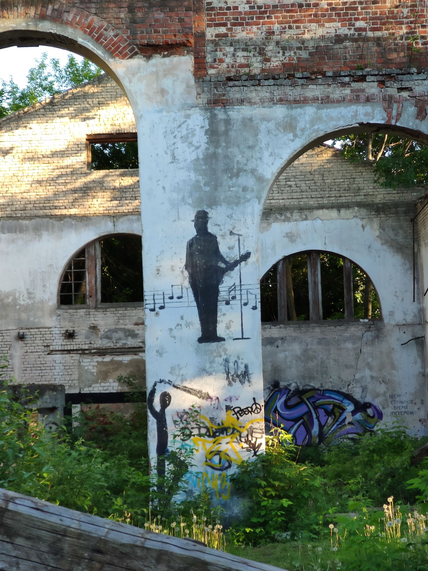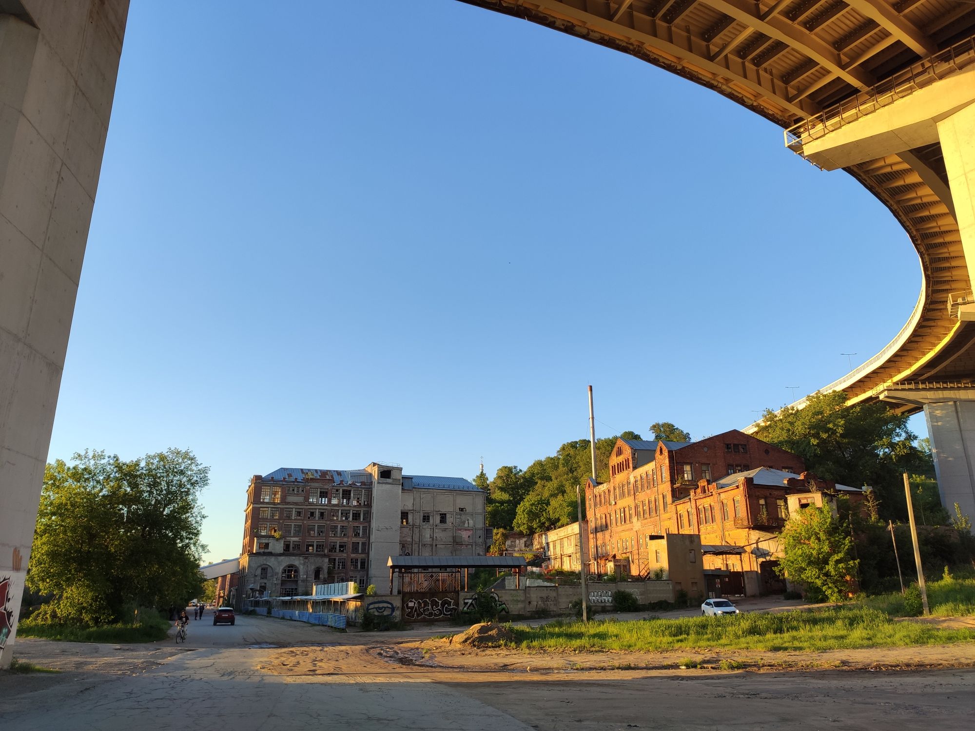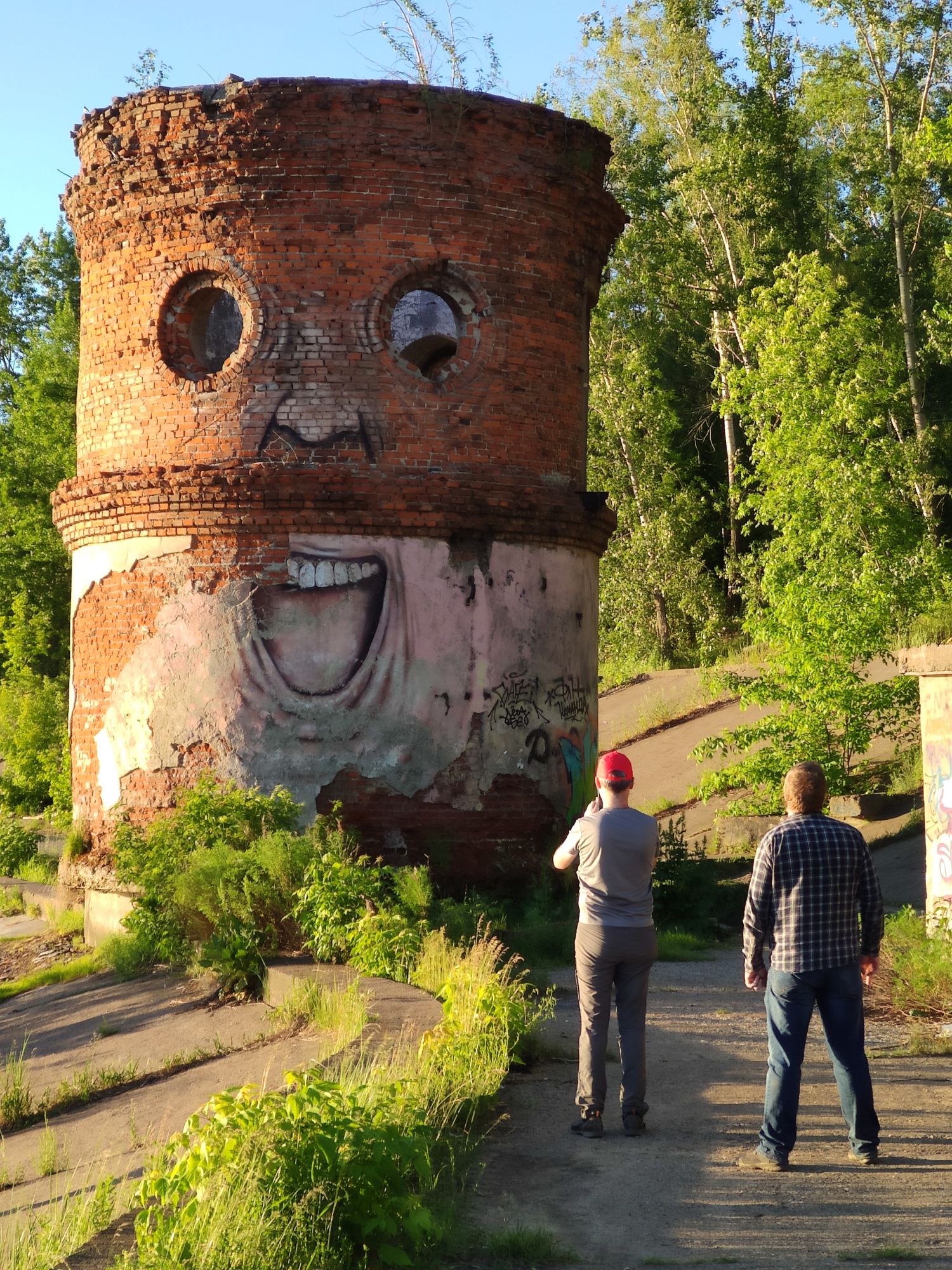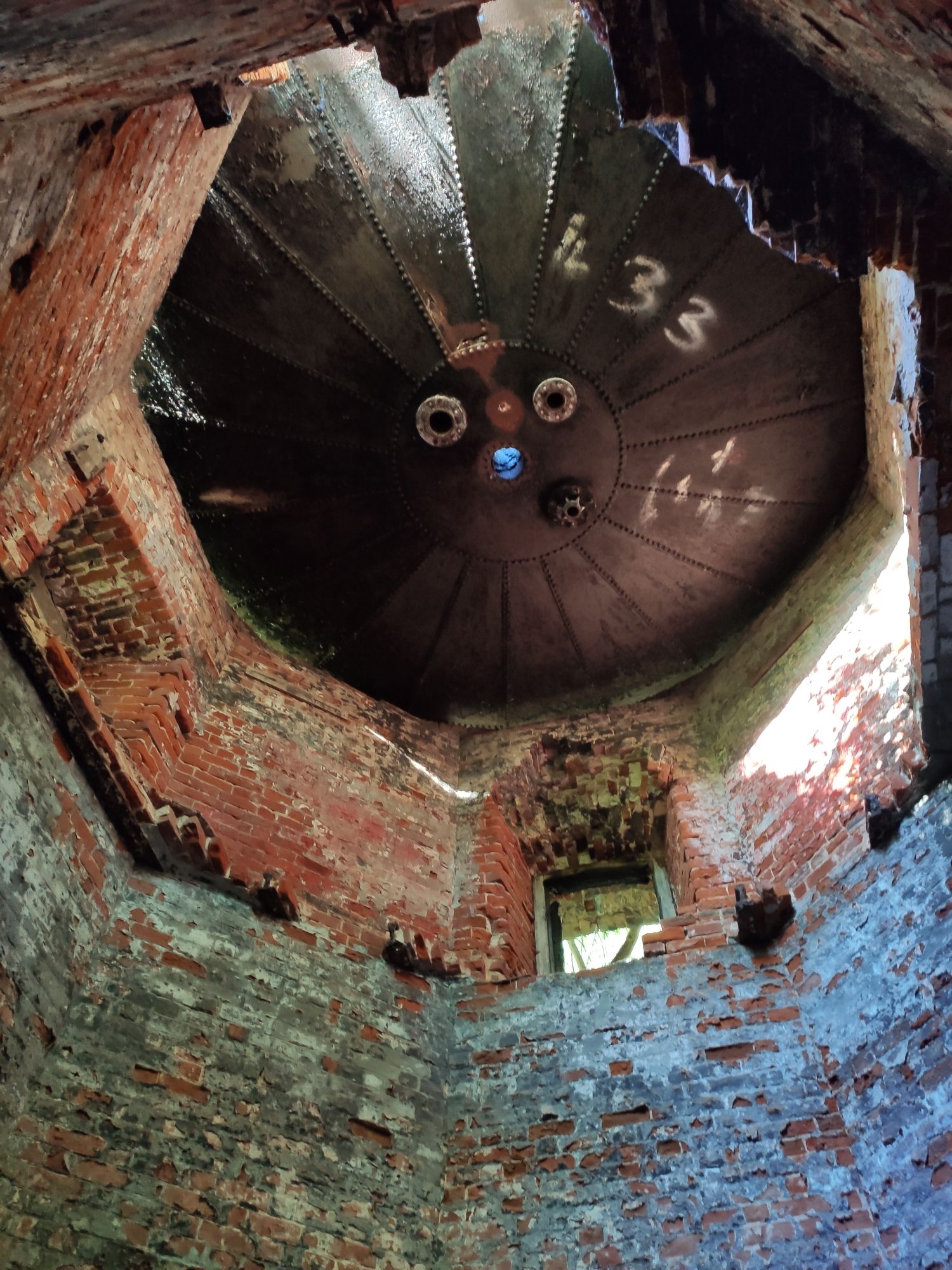 23 июня 2022 Экскурсия была по Черниговской. Когда-то это была мега-активная улица - мукомольные мельницы богатых купцов, Ромодановский вокзал и инфраструктура с ним связанная, судна на воде, паровозы, а позднее поезда на берегу. Вот тут есть старые фото этих мест. Экскурсию вел молодой человек от проекта Городские экспедиции. Рассказывал он очень интересно, но у меня часть экскурсии выпало из восприятия, т.к. организм, видимо, боролся с тепловым ударом. Я прям физически не могла стоять на солнце. В итоге я пряталась за колоннами и не очень слышала рассказ))) Хотя в мою стену каких-то знаний всё равно добавились новые кирпичики. К сожалению, судьба зданий, которые мы посмотрели на этой экскурсии, совсем не ясна. Возможно, части из них не станет уже в ближайшие годы. Что-то могут перестроить, что-то снести, не смотря на протесты градозащитников. Под Метромостом находится мельница Башкировых. Она работала до советского времени. Тут был и современный элеватор, который снесли совсем недавно... А сейчас думают вписать эти здания в современный жил. комплекс. Опоры метромоста облюбовали граффитисты. Есть там и очень неплохие рисунки. И тоже почти под мостом рядом с мельницами спрятался Ромодановский вокзал, хотя сейчас это не вокзал, а производство пластиковых карт (или чипов для них - не помню). Вокзал перестал работать как вокзал в 1970-х годах, когда склоны в нескольких местах обвалились на ЖД полотно. Восстанавливать было не рентабельно, тем более, что к тому моменту уже были возможности продублировать направления с других вокзалов. Здание вокзала сначала подавали разным организациям, а потом и вовсе забросили. И оно стало разрушаться. И вот в один прекрасный день этому зданию очень повезло. Хозяин фирмы решил под свое производство отреставрировать вокзал! И сделал это! И даже выиграл какой-то конкурс среди отреставрированных зданий. Жд пути давно разобраны, а красавец вокзал стоит! А дальше мы пошли вдоль несуществующих нынче путей. Заглянули посмотреть на дома служащих, которые не смотря на свой внешний вид, теоретически можно восстановить - фундамент отличный и стены стоят без трещин, но... заниматься этим некому, а вот на землю иногда просматривают застройщики.... Заглянули в дыру в земле, чтобы посмотреть на старинную штольню. А потом мы заглянули в пару зданий (не помню, если честно, что там было в старину, но в 90-е где-то тут было подпольное производство алкоголя. Сейчас же, как и все местные здания, эти облюбовали граффитисты. Еще в лесу стоит водонапорка. Раньше же паровозы надо было ещё и водой заправлять. А водонапорки раньше красивые ставили... Этой ещё и повезло, что подъезд очень плохой и поэтому не всё вывезли. Например, можно посмотреть на старинный клепаный бак для воды. А вот деревянная обшивка и лестница не сохранились. Дорога - это отдельный кайф)) Ну и звезда отчёта - Куйбышевская водонапорная станция. Про нее прекрасно рассказала Ася тут. Сразу скажу, что тут надо не то, что внимательно смотреть под ноги, а прям вот ОЧЕНЬ внимательно это делать! Везде провалы. Некоторые прям очень глубокие. Но место завораживает своей величиной, своей мощью, красотой и т.д. Сейчас эт прям выставка современного искусства. Очень жаль, что у нас вот так относятся к прошлому и к истории. Там такой шикарный музей мог бы быть... Но уже вряд ли... И закончили мы про