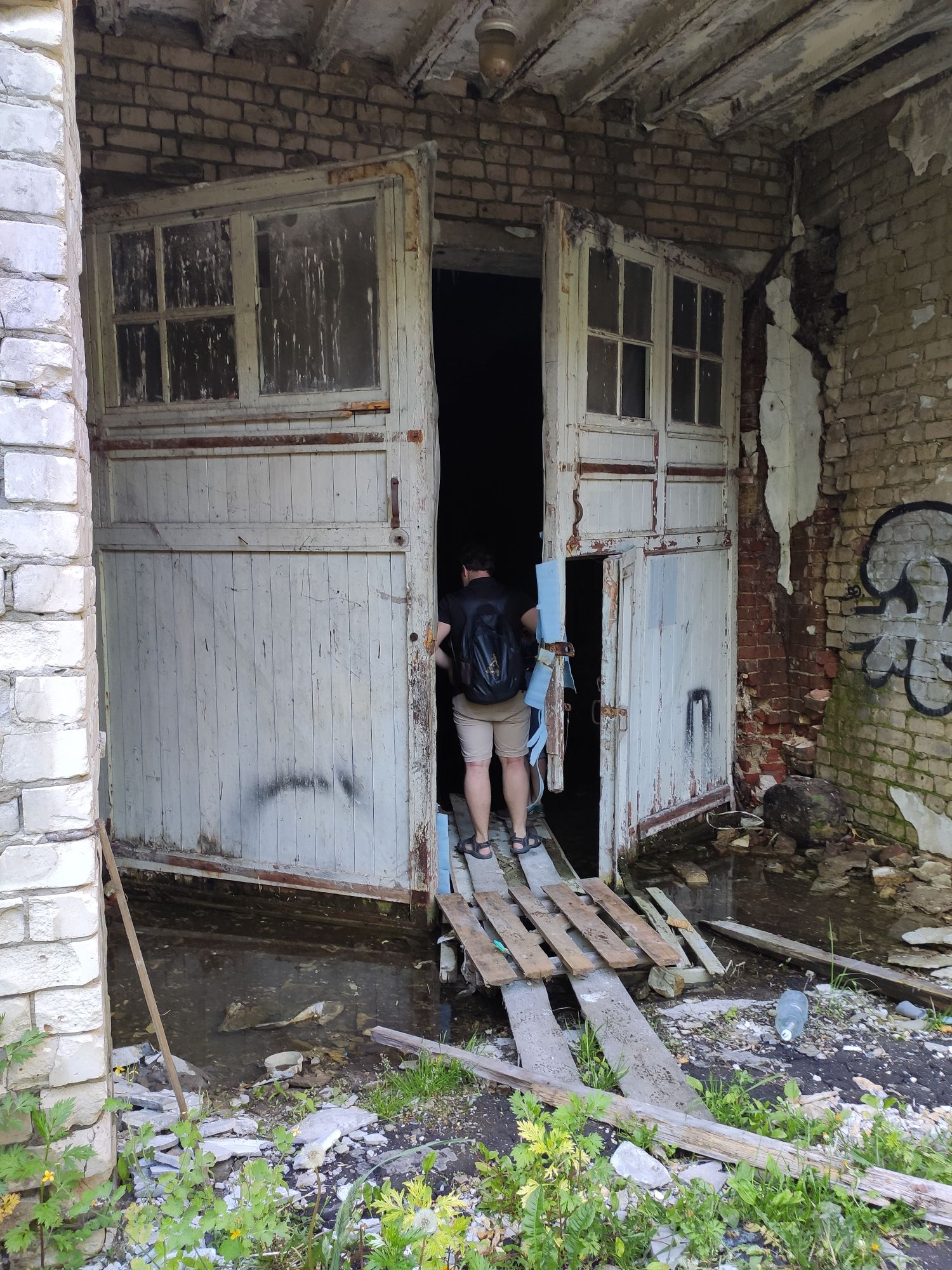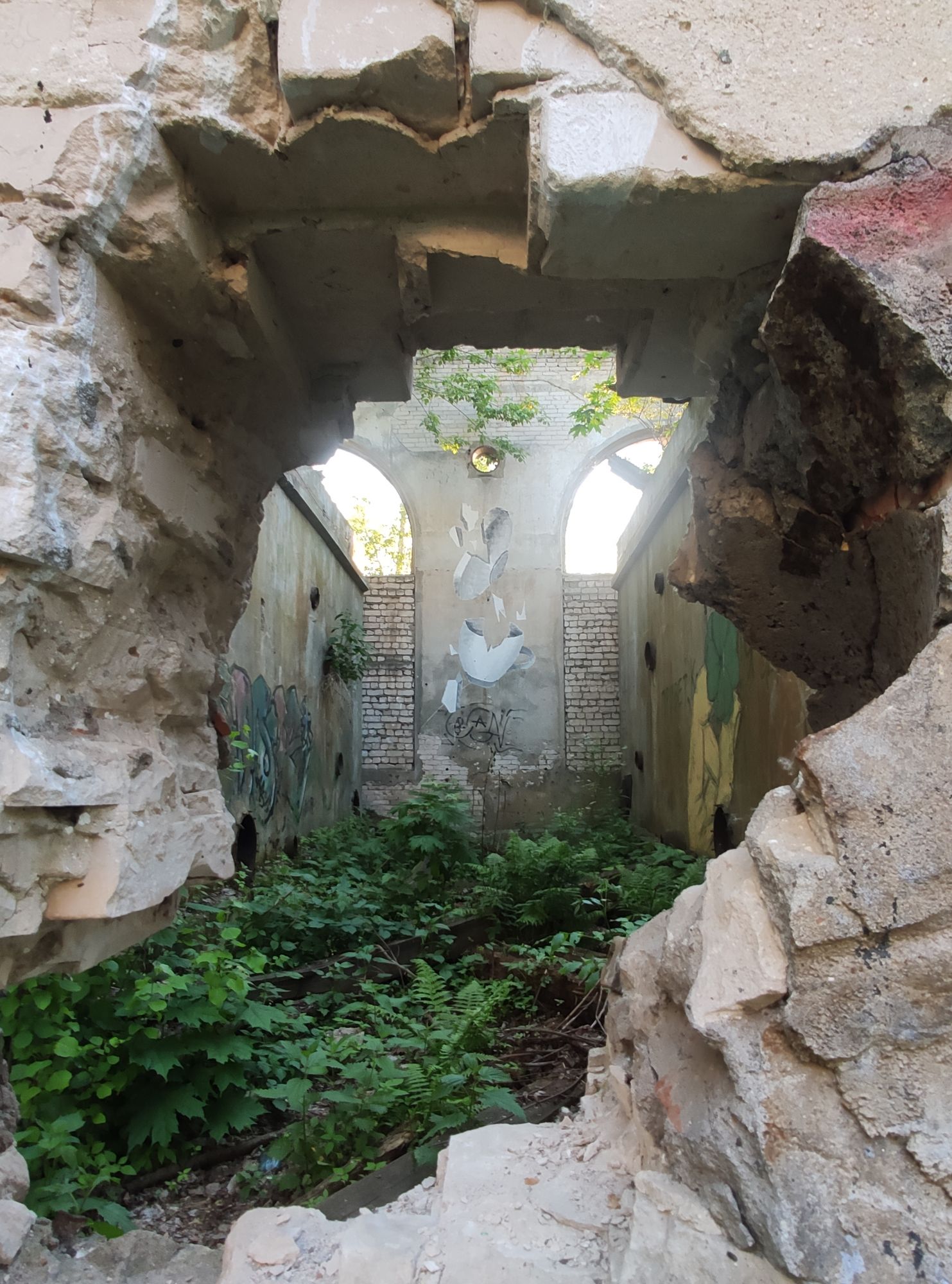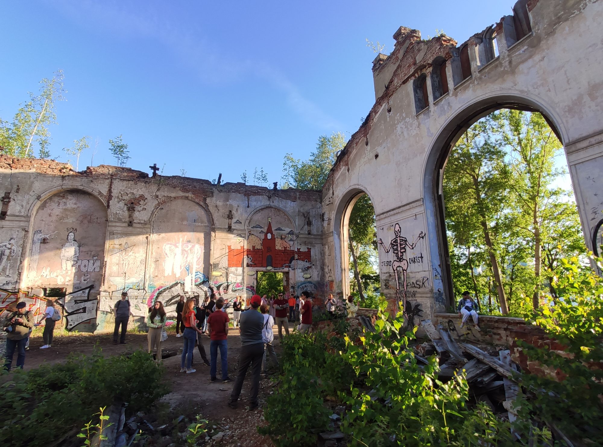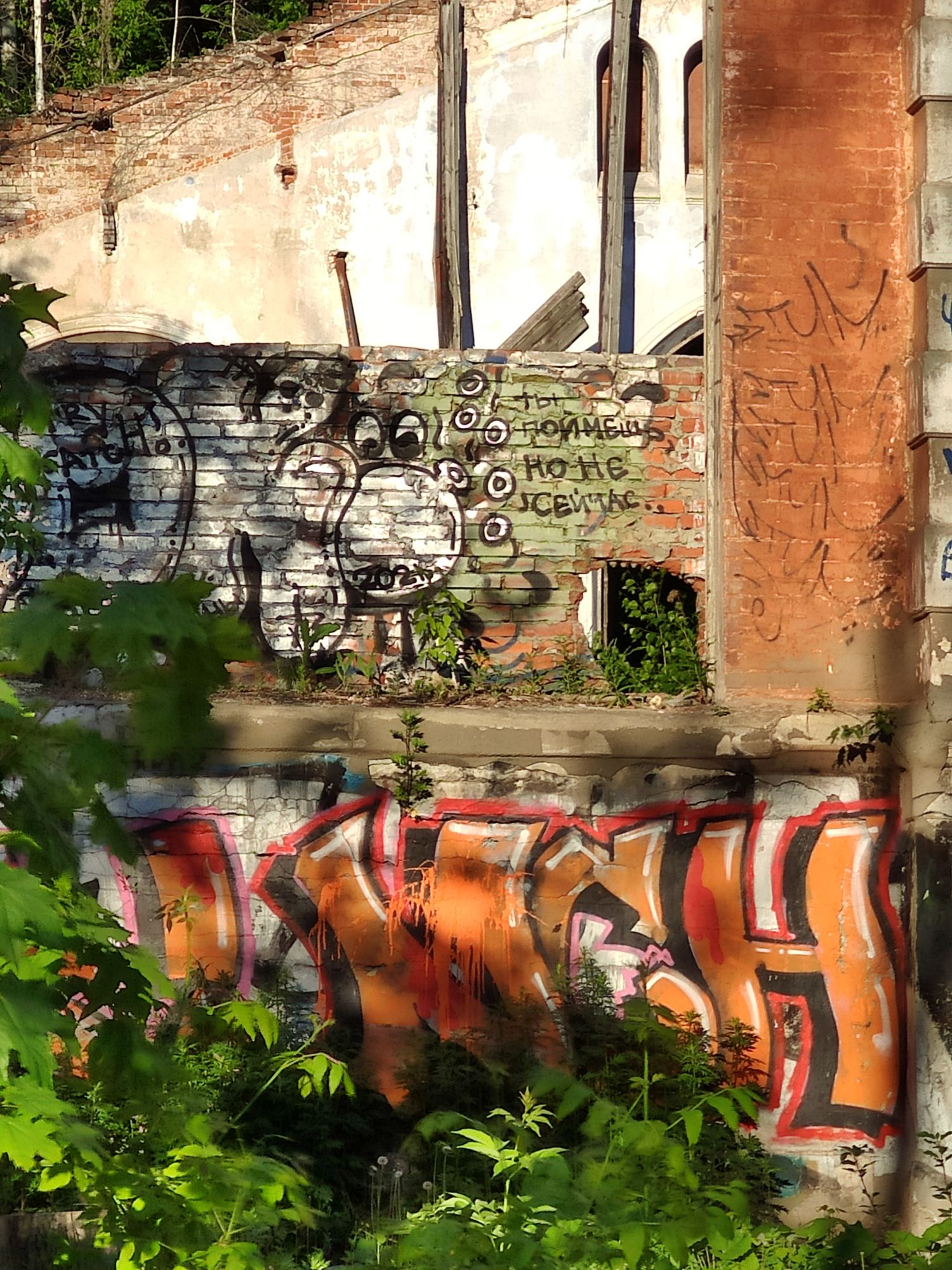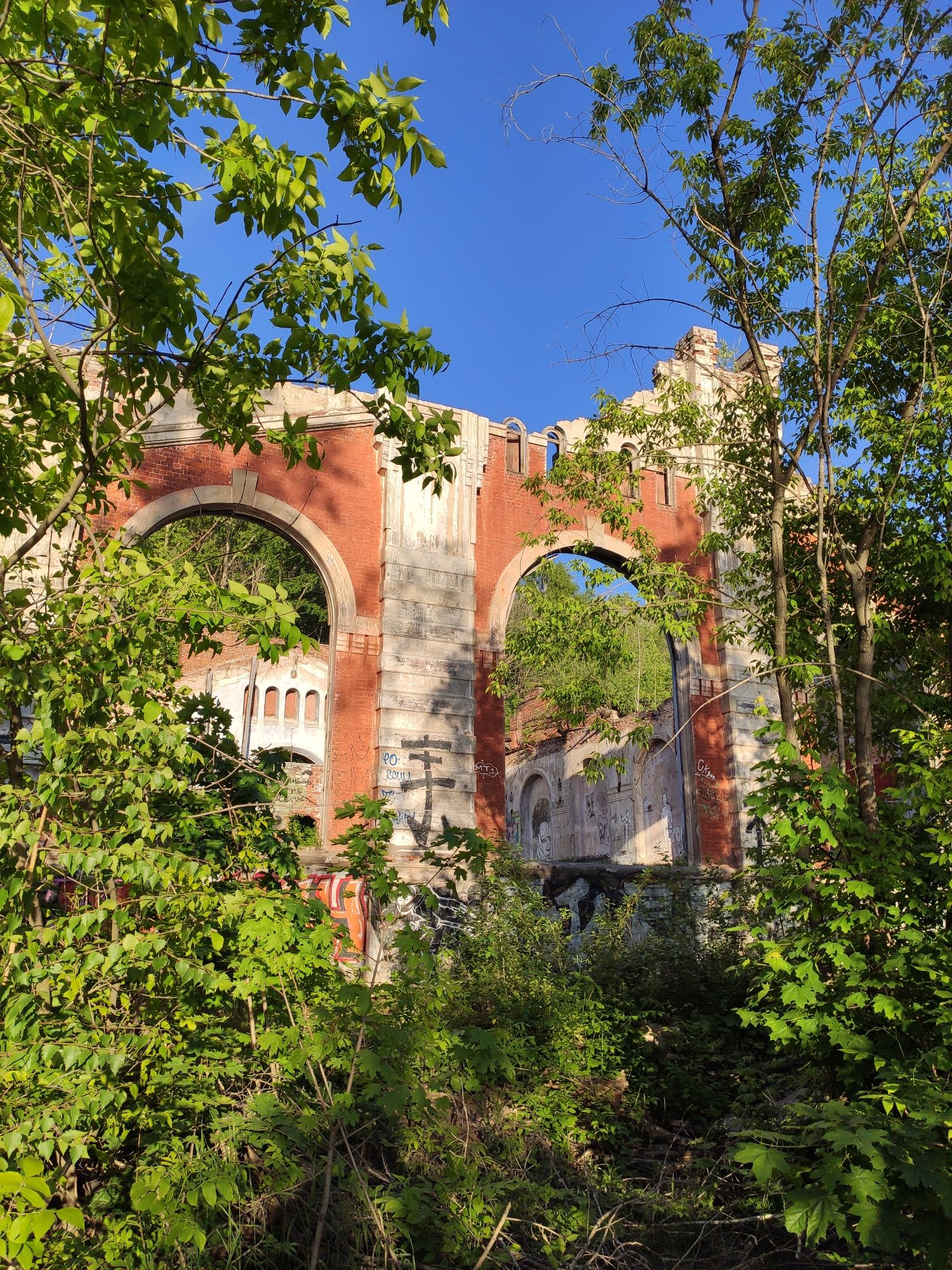 23 июня 2022 Экскурсия была по Черниговской. Когда-то это была мега-активная улица - мукомольные мельницы богатых купцов, Ромодановский вокзал и инфраструктура с ним связанная, судна на воде, паровозы, а позднее поезда на берегу. Вот тут есть старые фото этих мест. Экскурсию вел молодой человек от проекта Городские экспедиции. Рассказывал он очень интересно, но у меня часть экскурсии выпало из восприятия, т.к. организм, видимо, боролся с тепловым ударом. Я прям физически не могла стоять на солнце. В итоге я пряталась за колоннами и не очень слышала рассказ))) Хотя в мою стену каких-то знаний всё равно добавились новые кирпичики. К сожалению, судьба зданий, которые мы посмотрели на этой экскурсии, совсем не ясна. Возможно, части из них не станет уже в ближайшие годы. Что-то могут перестроить, что-то снести, не смотря на протесты градозащитников. Под Метромостом находится мельница Башкировых. Она работала до советского времени. Тут был и современный элеватор, который снесли совсем недавно... А сейчас думают вписать эти здания в современный жил. комплекс. Опоры метромоста облюбовали граффитисты. Есть там и очень неплохие рисунки. И тоже почти под мостом рядом с мельницами спрятался Ромодановский вокзал, хотя сейчас это не вокзал, а производство пластиковых карт (или чипов для них - не помню). Вокзал перестал работать как вокзал в 1970-х годах, когда склоны в нескольких местах обвалились на ЖД полотно. Восстанавливать было не рентабельно, тем более, что к тому моменту уже были возможности продублировать направления с других вокзалов. Здание вокзала сначала подавали разным организациям, а потом и вовсе забросили. И оно стало разрушаться. И вот в один прекрасный день этому зданию очень повезло. Хозяин фирмы решил под свое производство отреставрировать вокзал! И сделал это! И даже выиграл какой-то конкурс среди отреставрированных зданий. Жд пути давно разобраны, а красавец вокзал стоит! А дальше мы пошли вдоль несуществующих нынче путей. Заглянули посмотреть на дома служащих, которые не смотря на свой внешний вид, теоретически можно восстановить - фундамент отличный и стены стоят без трещин, но... заниматься этим некому, а вот на землю иногда просматривают застройщики.... Заглянули в дыру в земле, чтобы посмотреть на старинную штольню. А потом мы заглянули в пару зданий (не помню, если честно, что там было в старину, но в 90-е где-то тут было подпольное производство алкоголя. Сейчас же, как и все местные здания, эти облюбовали граффитисты. Еще в лесу стоит водонапорка. Раньше же паровозы надо было ещё и водой заправлять. А водонапорки раньше красивые ставили... Этой ещё и повезло, что подъезд очень плохой и поэтому не всё вывезли. Например, можно посмотреть на старинный клепаный бак для воды. А вот деревянная обшивка и лестница не сохранились. Дорога - это отдельный кайф)) Ну и звезда отчёта - Куйбышевская водонапорная станция. Про нее прекрасно рассказала Ася тут. Сразу скажу, что тут надо не то, что внимательно смотреть под ноги, а прям вот ОЧЕНЬ внимательно это делать! Везде провалы. Некоторые прям очень глубокие. Но место завораживает своей величиной, своей мощью, красотой и т.д. Сейчас эт прям выставка современного искусства. Очень жаль, что у нас вот так относятся к прошлому и к истории. Там такой шикарный музей мог бы быть... Но уже вряд ли... И закончили мы про