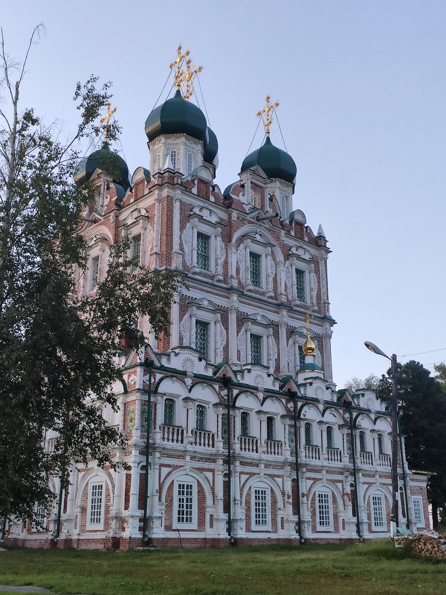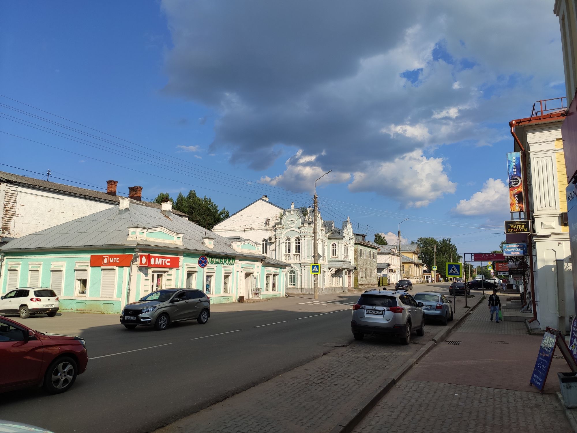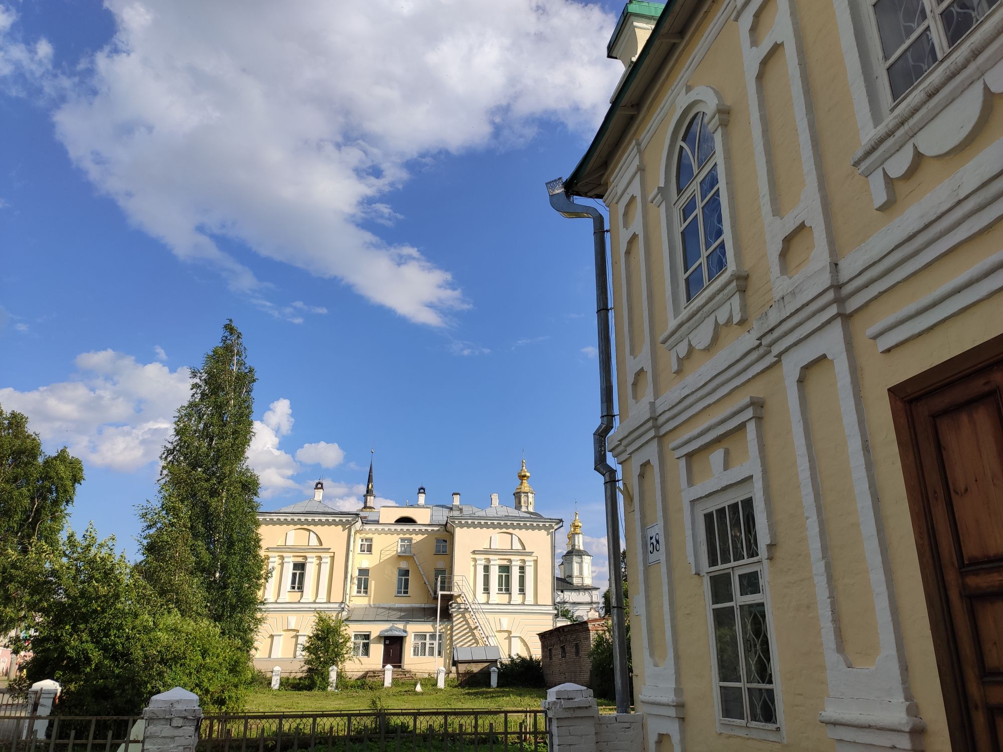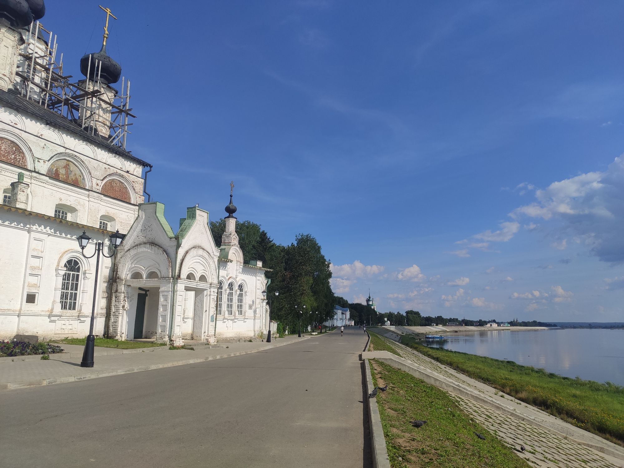 8 августа 2022 Всё ещё 22 июля в отчёте))) Успели на предпоследний паром из Котласа в Сольвычегодск. Женька забронировал у Екатерины номер на две ночи. И как же я ему благодарна. Понимаю, что я почему-то влюбляюсь в этом маленький городок. Приехав туда, снова замедлилась и наконец поймала отпускной ритм какой-то... Вот тут мой майский отчёт про Сольвычегодск. Там и контакты Екатерины, если вдруг кто соберётся, есть. Подъехали к парому и поразились тому, как отличается река в весеннее половодье и летом. Весь этот песок весной был покрыт водой. И паром отходил от деревьев аж. Можно фото сравнить весной и сейчас. Я прогулялись по песку босиком и помочила ножки в Вычегде. Искупаться так и не собрались, хотя погода позволяла. На фото видно как лихо мигали мальчишки и девчонки с борта. Благовещенский собор всё так же встречает всех на берегу))) Скрытый текст Нашла тут его на старинных рисунках. Посмотрите, как он отличался от того, что мы видим сейчас. И наше фото его же с другой стороны с зимней поездки - январь 2016. Решили сразу заселился, а потом пойти гулять. Ася прекрасно описала историю возникновения гостевого дома у себя в отчёте и приложила много фото. Я в этот раз почему-то в основном детали фоткала. Вот таких котиков вырезал из бревна местный мастер. Это Мася, Мимоза и Абель. С Абелем история интересная. Короче. Говорят, что в Сольвычегодске все коты чьи-то. Этот кот в прошлый наш приезд увязался за нами и прошел примерно километр до гостевого дома. Зашёл на террасу и остался сидеть. Он белый и глухой. Екатерина сказала, что хозяев искали, давали объявление. Но не нашли. Откуда взялся - не понятно. Свалился с неба, похоже)))) Теперь его зовут в честь врача, работавшего в этой больнице - Абель. Попросту Беляш. А это Мася Еду мы в этот раз решили не готовить, а довериться Екатерине за отдельную плату. Тут были очень вкусные оладушки, мясо в крапивных листьях типа долмы, супы, салатики варенье из ревеня! Какое же оно вкусное!!! А соль была вот в такой солонке - ослик Конаковского завода. Теперь я хочу такого ослика домой. После ужина нам показали гостевой дом, который устроили в главном корпусе больницы. Дизайнер - сама Екатерина. И, надо сказать, что отменный дизайнер! А мы снимали номер в доме с росписями, который устроен в бывшем родильном доме. Во дворике очень душевно и уютно - лавочки, качели, гамачок, удобное деревянное крылечко... И цветочки) Вечерком по холодку прошлись по городу. Показали и рассказали Асе то, что уже знаем. Полюбовались Введенским собором, Вычегдой и кисуленьками))) Скрытый текст Тут покажу пару старых рисунков/фото Введенского собора 23 июля. С утра встали на расслабоне. Никуда бежать не надо, день, когда можно отдохнуть... Вкусно позавтракали, выпили чашечку кофе... И пошли знакомить Асю с наследием Строгановых. Мы с Женькой прекрасно помним экскурсию в январе 2016, когда нам очень интересно и доступно рассказали про Строгановых - про династию, про добычу соли, про то, как они разбогатели и начали развивать город, вкладывая в свою вотчину огромные средства. Так же на экскурсии нам показывали все их "фишечки" - я в прошлый раз писала про "полкана" на паникадиле и два изображения псоглавца - Святого Христофора. Ну и хорошо тогда рассказали про все промыслы, которые развивались благодаря династии Строгановых и благодаря которым многие направления в и