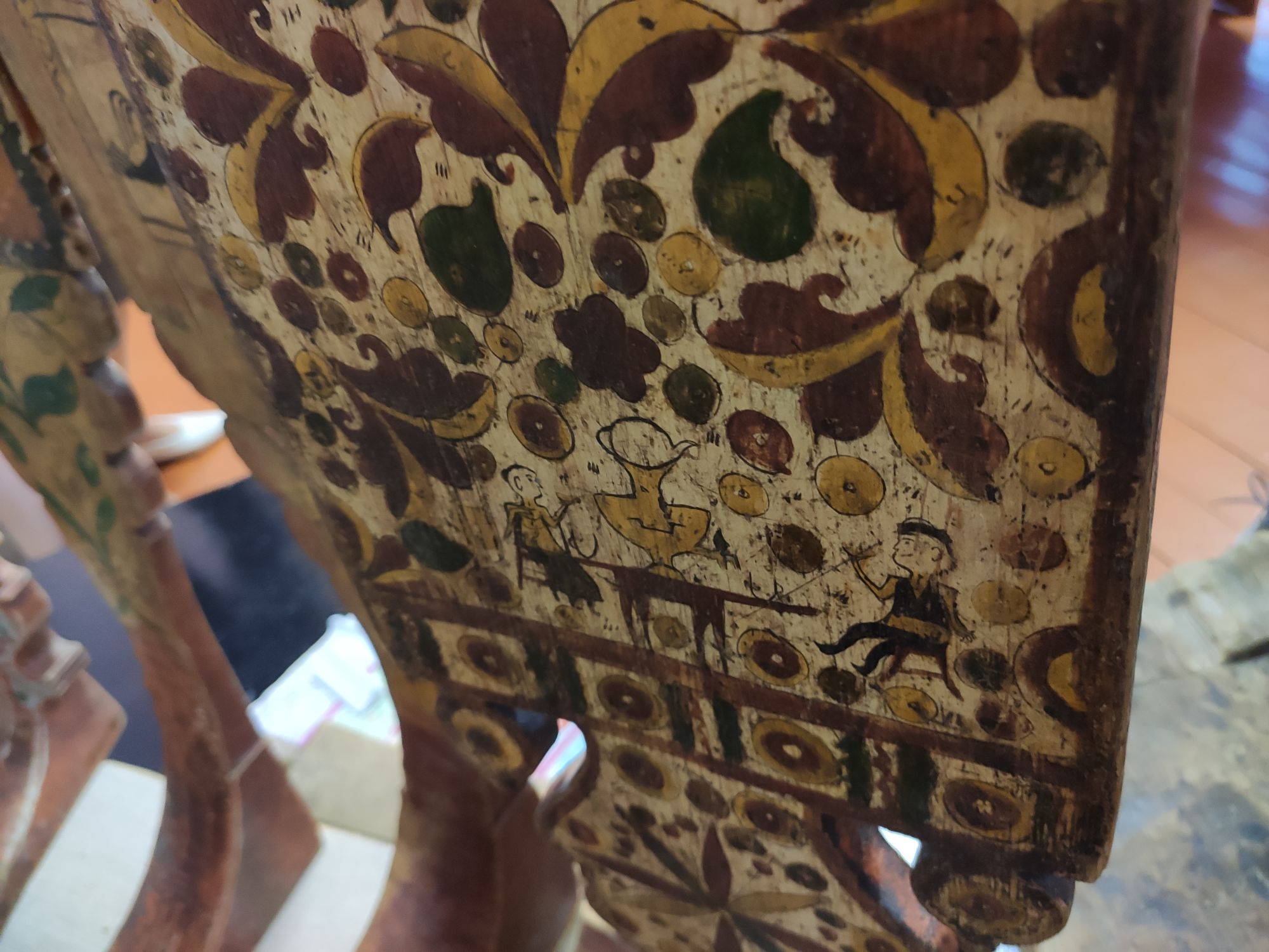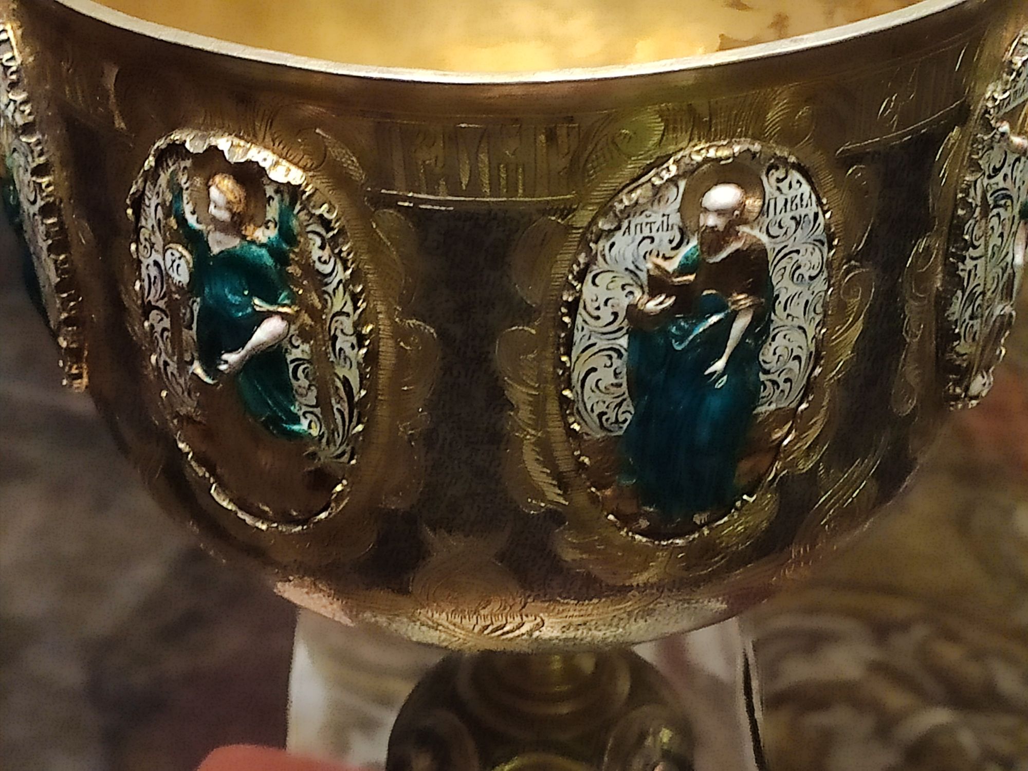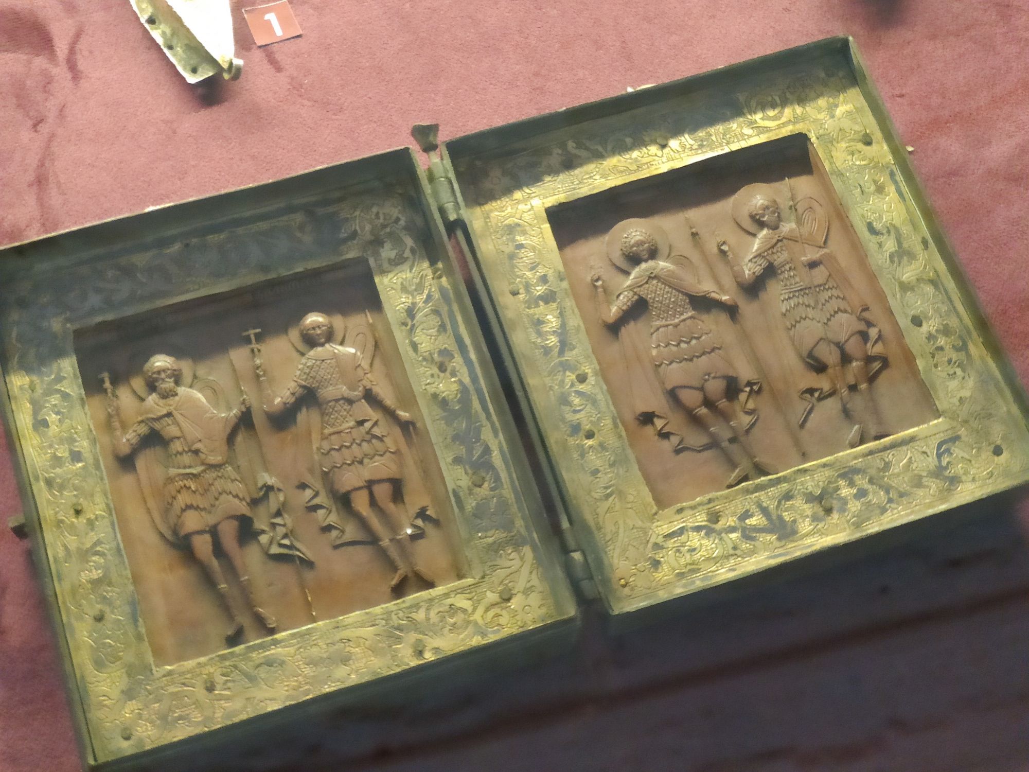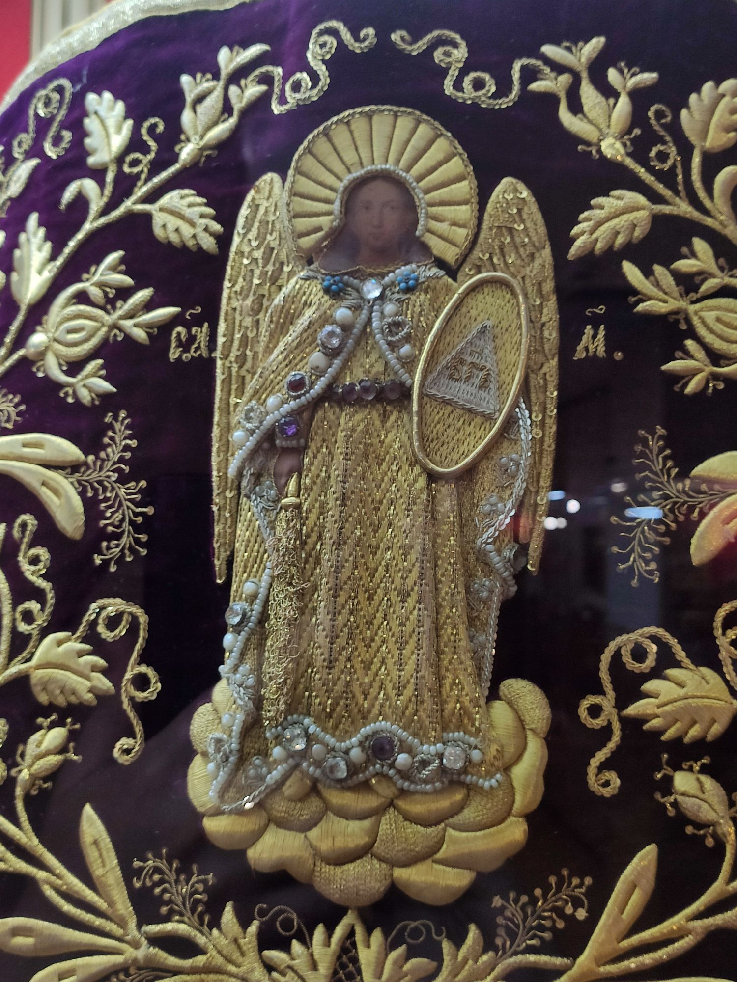 8 августа 2022 Продолжение. Великий Устюг. Город встретил нас изнуряющей жарой. Вообще, мы были очень голодные, поэтому начали с обеда))) Потом решили чуток пройтись. Шли от тени до тени и сторону улицы выбирали теневую. И вот идём мы за какими-то палаточками. Думали, что там просто рынок приехал и продают шторы/штаны/полотенца.... И тут опа - из-под палатки выглядывает огромный туесок с росписью. Ну и мы не смогли пройти мимо. Женька ушел в тень, а мы с Асей погуляли вдоль палаточек. Продавали разные изделия народных промыслов и всякие авторские вещицы. И мы бы ушли без покупок, если бы не вот этот лоток... Муж с женой делают вот таких куколок. В основном там парочки, занятые разными делами))) Визитку брала, но что-то найти не могу. Найду, выложу. Я купила Женьке подарок - бабулька и дедулька на мотоцикле)))) Прошли через Соборное дворище - центр В. Устюга с несколькими храмами. А дальше пошли в Депозитарий - это открытое хранение фондов музея (то, что не вошло в выставочные коллекции музеев Устюга на данный момент). Этот музей нам давно рекомендовала Маша из Тотьмы как самый крутой устюжский музей. (Но я продолжаю хотеть ещё и в краеведческий))) В Депозитарии мы взяли экскурсию. Нам досталась великолепная Инна Валерьевна. От нее мы узнали слово "шишебар" (или шишибар, не знаю)))). Это репейник. Нам рассказали, что когда выделили здание под фондохранилище, сотрудники пошли его смотреть. В здании в советское время был кинотеатр. И вот посреди зрительного зала рос огромный куст шишебара))) А сейчас в этом зале вот такая красота: Фото будет много, уж простите))) Город был купеческий, богатый. Сухона и Северная Двина - это торговые пути в свое время были. А богатые купцы любили, чтобы у них всё было самое лучшее. Поэтому изразцовых печей в городе было много. Жаль, что жители не очень это всё ценили. Чтобы увеличить жилплощадь, печи ломали. А сотрудники музея буквально на помойках собирали изразцы и уносили в музеи. Причем, производство наладили своё - из местной глины. Были даже свои сюжеты. Например "барочные часы". Ну и всякие веточки, травки)) А эти сюжетные изразцы я вообще обожаю. Надписи читать и картинки разглядывать всегда удовольствие. Типа "заяц дикой". Такие изразцы ещё в зелёной гамме встречаются. А на узких изразцах как мультик покадрово - собака увидела зайца и он начал от неё удирать, иногда оглядываясь. А ещё - дверцы и заслонки обычно делались с обратной стороны печи, а где изразцы было лицо. Без всяких заслонок. Но в музеях часто, чтобы показать и дверки, вставляют их в изразцовую сторону. Это дверка местного производства. В экспозиции много разной красивой мебели. Почему-то я не сфоткала красивый немецкий то ли буфет, то ли шкаф. В Великом Устюге буфеты назывались ресторанами. И каждая дверка и каждый ящичек запирались на ключ. Прятали там сладости от детей и спиртное от мужа))) Стенд с прялками. Часть прялок отсутствует - они на выставке в Кирилло-Белозерском монастыре. Обсуждаем прялки. Выясняется, что, во-первых, мы в курсе выставки и в курсе, что в Кирилло-Белозерском монастыре директор музея "болен" прялками и мечтал о выставке много лет)))) На нас Инна Валерьевна начинает коситься. Во-вторых, она перечисляет росписи - Мезенская, Двинская и, забывая слово, говорит - "ну на Р, только я забыла"... Из меня вылетает "Ракульская. Не знаю зачем я это знаю". Нам тут же вопро