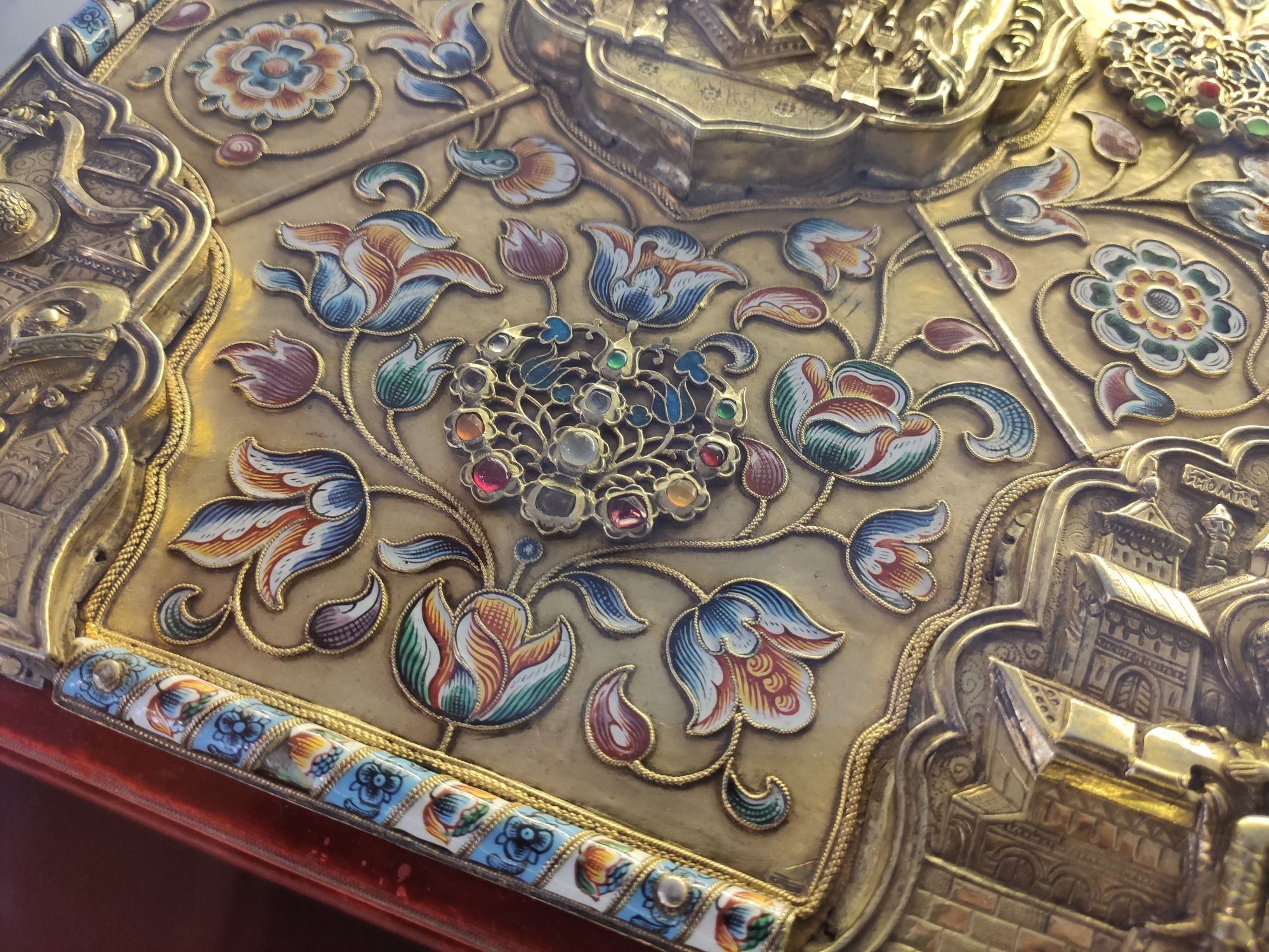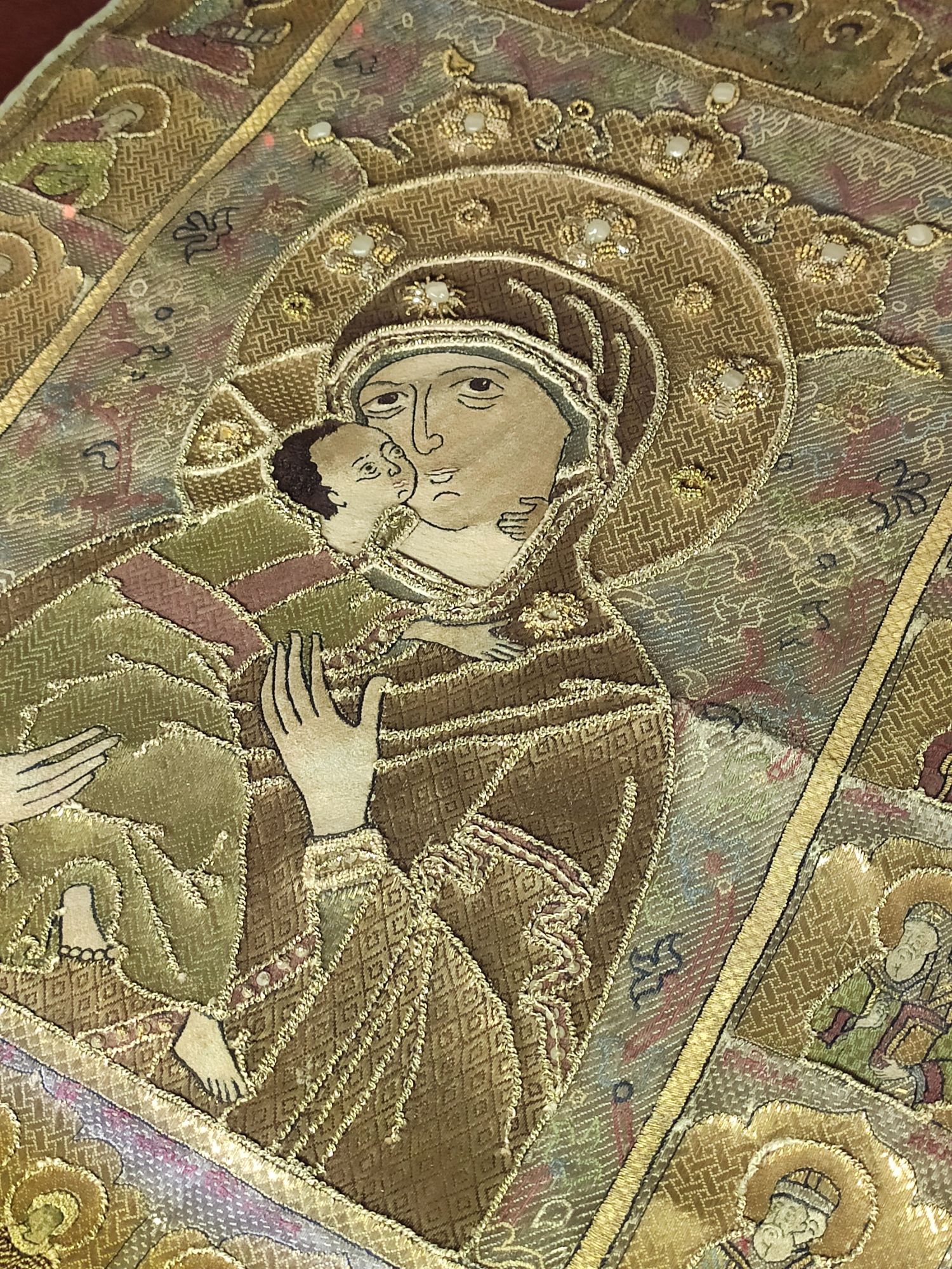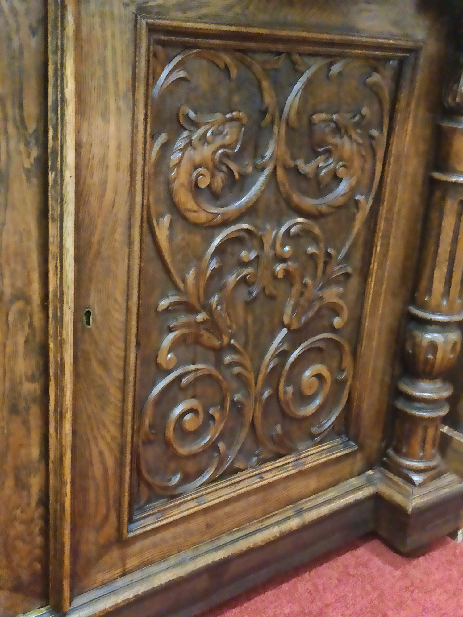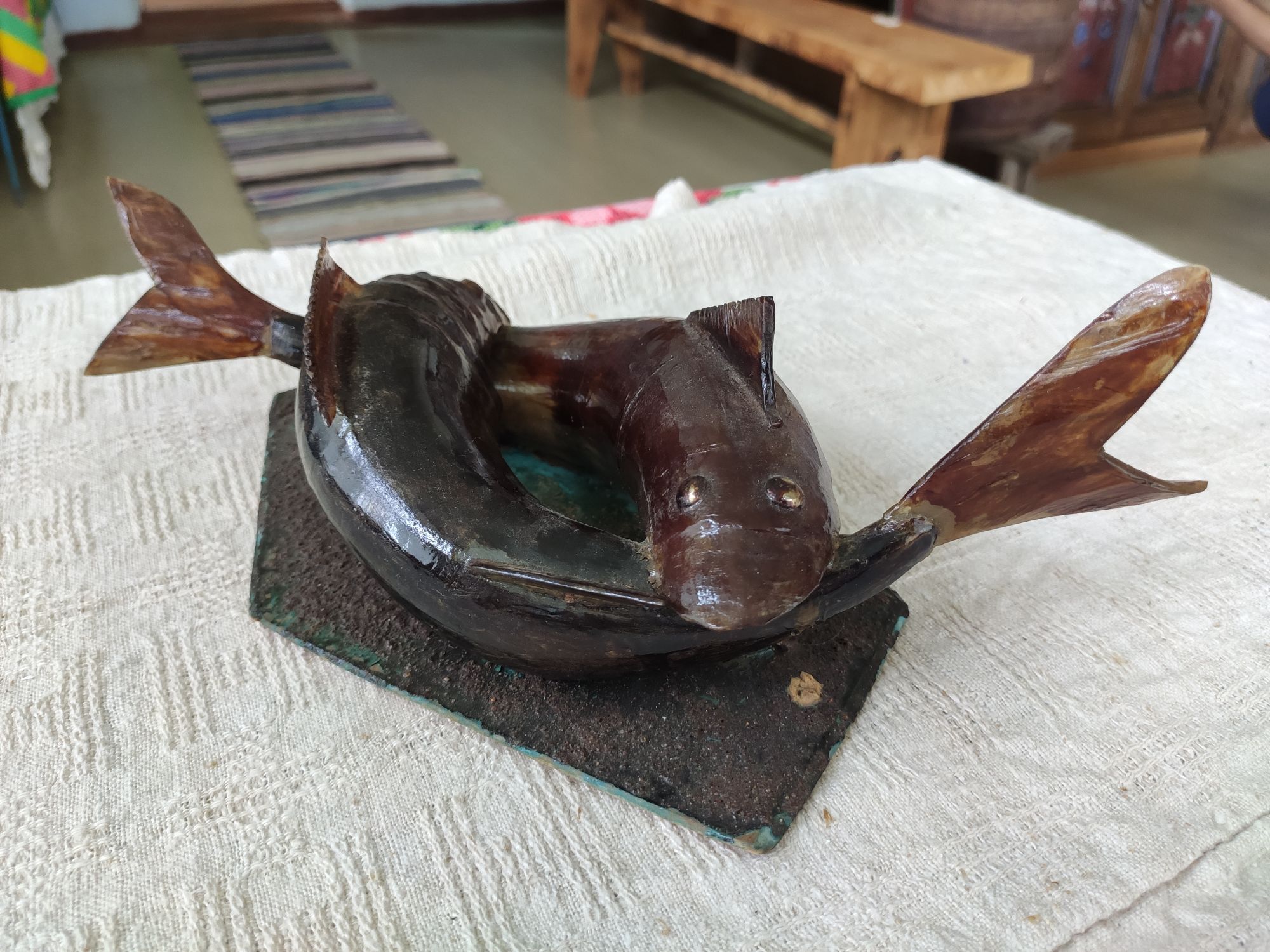8 августа 2022 Продолжение. Великий Устюг. Город встретил нас изнуряющей жарой. Вообще, мы были очень голодные, поэтому начали с обеда))) Потом решили чуток пройтись. Шли от тени до тени и сторону улицы выбирали теневую. И вот идём мы за какими-то палаточками. Думали, что там просто рынок приехал и продают шторы/штаны/полотенца.... И тут опа - из-под палатки выглядывает огромный туесок с росписью. Ну и мы не смогли пройти мимо. Женька ушел в тень, а мы с Асей погуляли вдоль палаточек. Продавали разные изделия народных промыслов и всякие авторские вещицы. И мы бы ушли без покупок, если бы не вот этот лоток... Муж с женой делают вот таких куколок. В основном там парочки, занятые разными делами))) Визитку брала, но что-то найти не могу. Найду, выложу. Я купила Женьке подарок - бабулька и дедулька на мотоцикле)))) Прошли через Соборное дворище - центр В. Устюга с несколькими храмами. А дальше пошли в Депозитарий - это открытое хранение фондов музея (то, что не вошло в выставочные коллекции музеев Устюга на данный момент). Этот музей нам давно рекомендовала Маша из Тотьмы как самый крутой устюжский музей. (Но я продолжаю хотеть ещё и в краеведческий))) В Депозитарии мы взяли экскурсию. Нам досталась великолепная Инна Валерьевна. От нее мы узнали слово "шишебар" (или шишибар, не знаю)))). Это репейник. Нам рассказали, что когда выделили здание под фондохранилище, сотрудники пошли его смотреть. В здании в советское время был кинотеатр. И вот посреди зрительного зала рос огромный куст шишебара))) А сейчас в этом зале вот такая красота: Фото будет много, уж простите))) Город был купеческий, богатый. Сухона и Северная Двина - это торговые пути в свое время были. А богатые купцы любили, чтобы у них всё было самое лучшее. Поэтому изразцовых печей в городе было много. Жаль, что жители не очень это всё ценили. Чтобы увеличить жилплощадь, печи ломали. А сотрудники музея буквально на помойках собирали изразцы и уносили в музеи. Причем, производство наладили своё - из местной глины. Были даже свои сюжеты. Например "барочные часы". Ну и всякие веточки, травки)) А эти сюжетные изразцы я вообще обожаю. Надписи читать и картинки разглядывать всегда удовольствие. Типа "заяц дикой". Такие изразцы ещё в зелёной гамме встречаются. А на узких изразцах как мультик покадрово - собака увидела зайца и он начал от неё удирать, иногда оглядываясь. А ещё - дверцы и заслонки обычно делались с обратной стороны печи, а где изразцы было лицо. Без всяких заслонок. Но в музеях часто, чтобы показать и дверки, вставляют их в изразцовую сторону. Это дверка местного производства. В экспозиции много разной красивой мебели. Почему-то я не сфоткала красивый немецкий то ли буфет, то ли шкаф. В Великом Устюге буфеты назывались ресторанами. И каждая дверка и каждый ящичек запирались на ключ. Прятали там сладости от детей и спиртное от мужа))) Стенд с прялками. Часть прялок отсутствует - они на выставке в Кирилло-Белозерском монастыре. Обсуждаем прялки. Выясняется, что, во-первых, мы в курсе выставки и в курсе, что в Кирилло-Белозерском монастыре директор музея "болен" прялками и мечтал о выставке много лет)))) На нас Инна Валерьевна начинает коситься. Во-вторых, она перечисляет росписи - Мезенская, Двинская и, забывая слово, говорит - "ну на Р, только я забыла"... Из меня вылетает "Ракульская. Не знаю зачем я это знаю". Нам тут же вопро