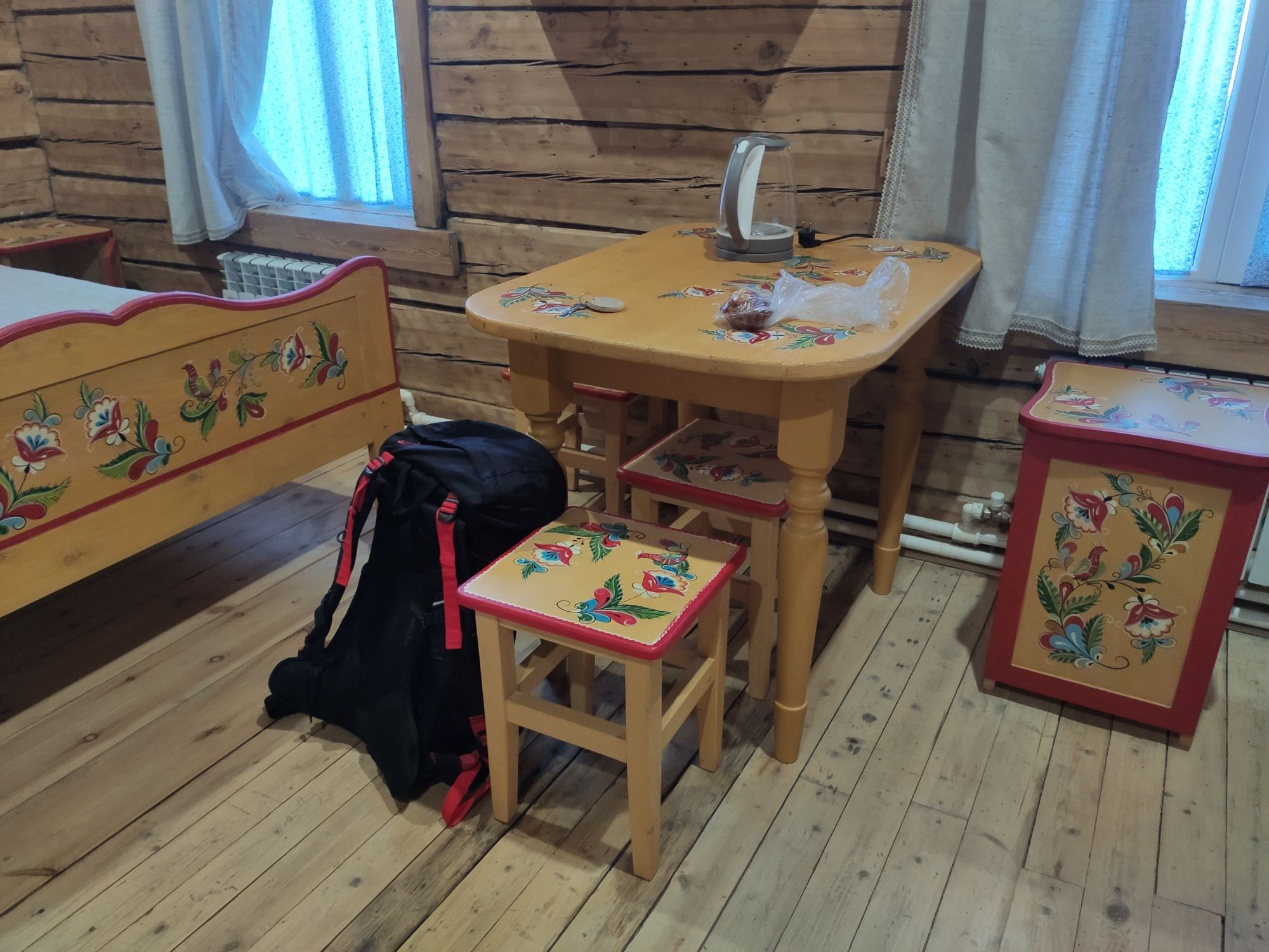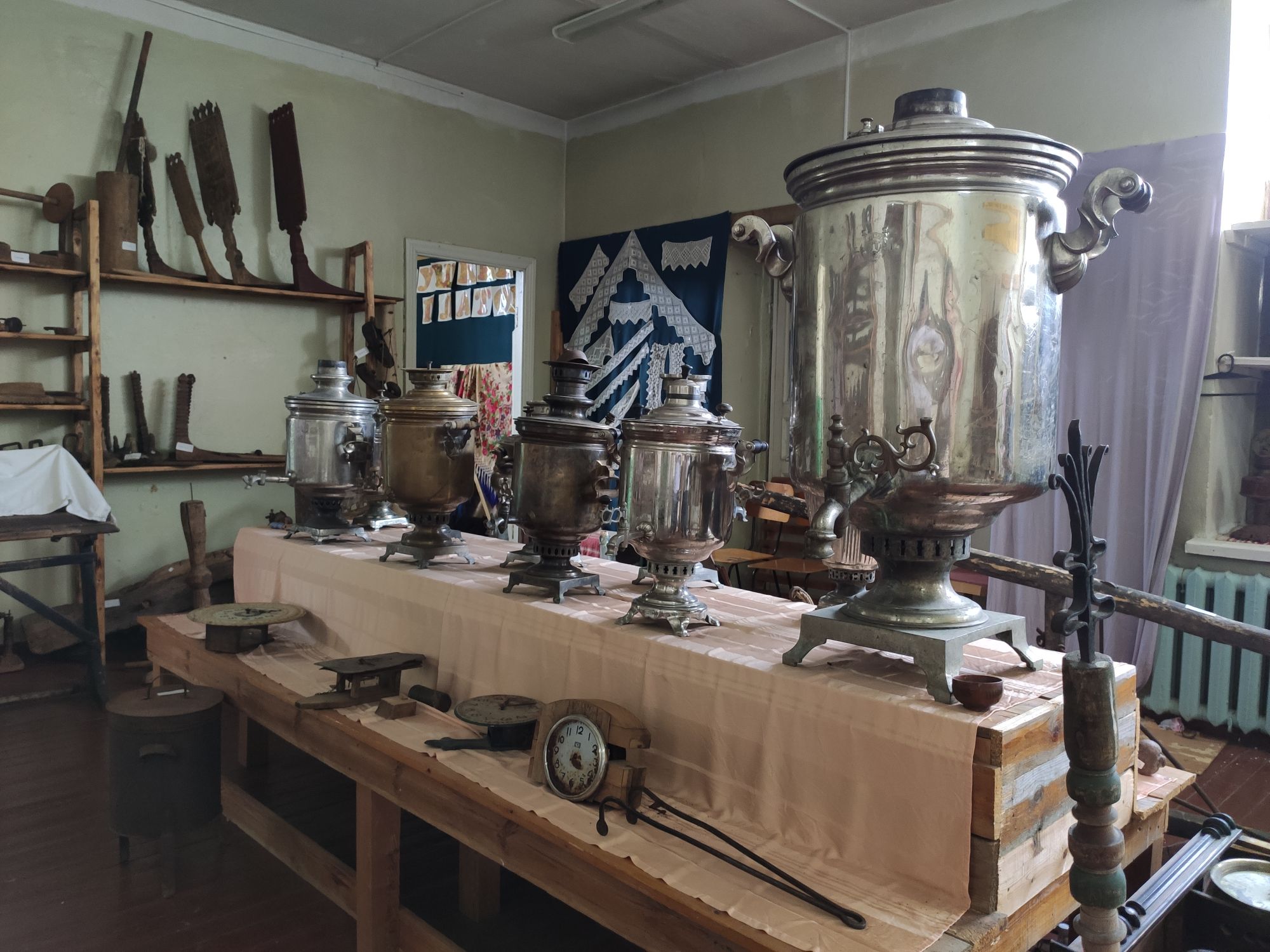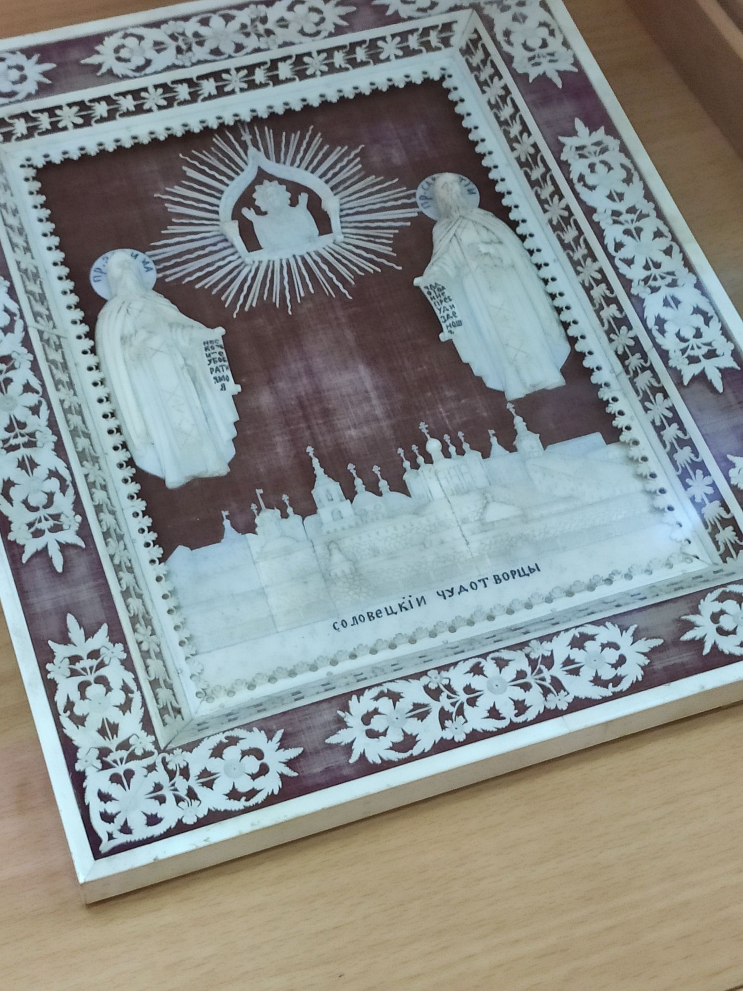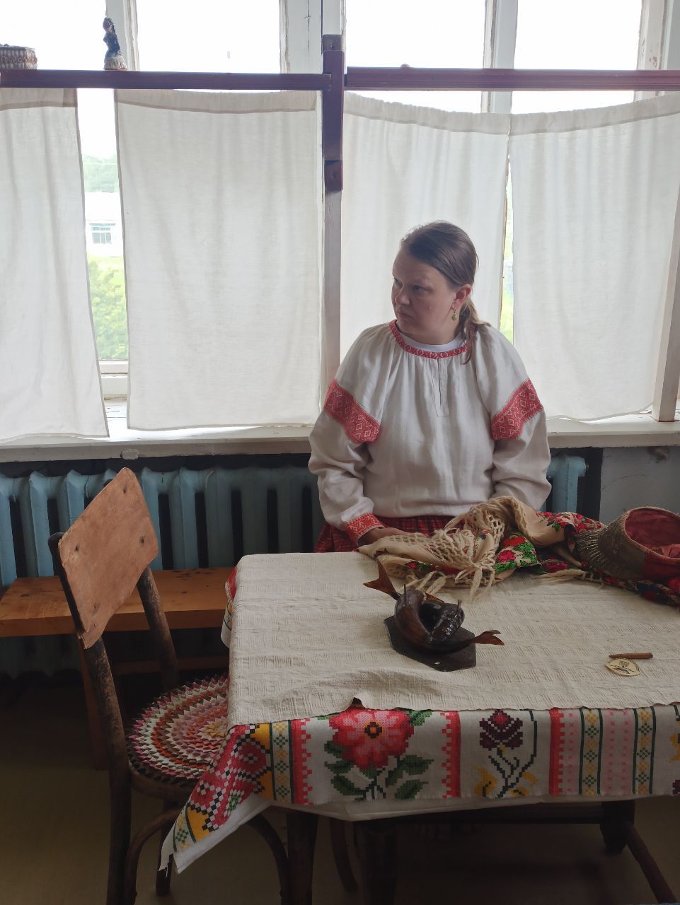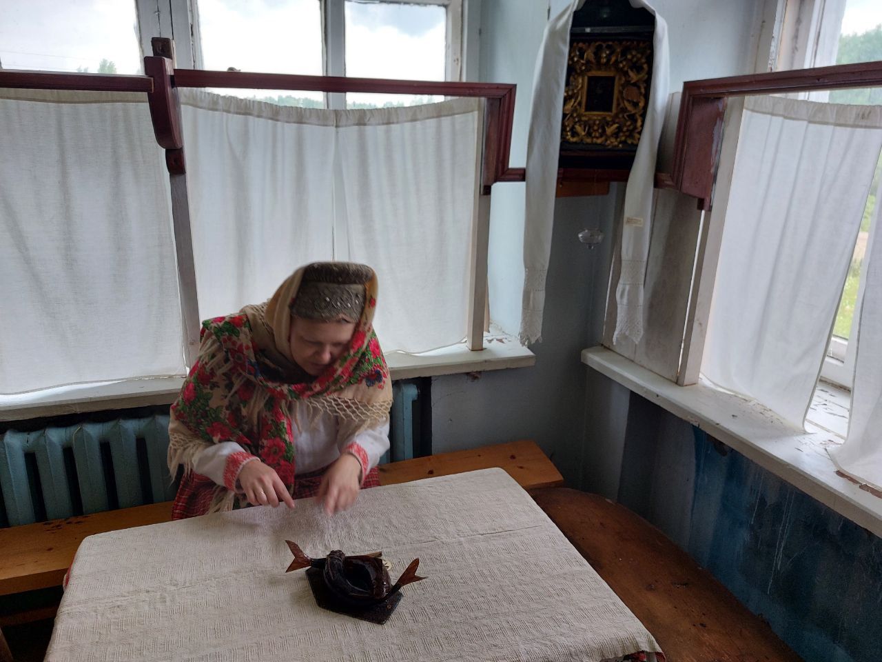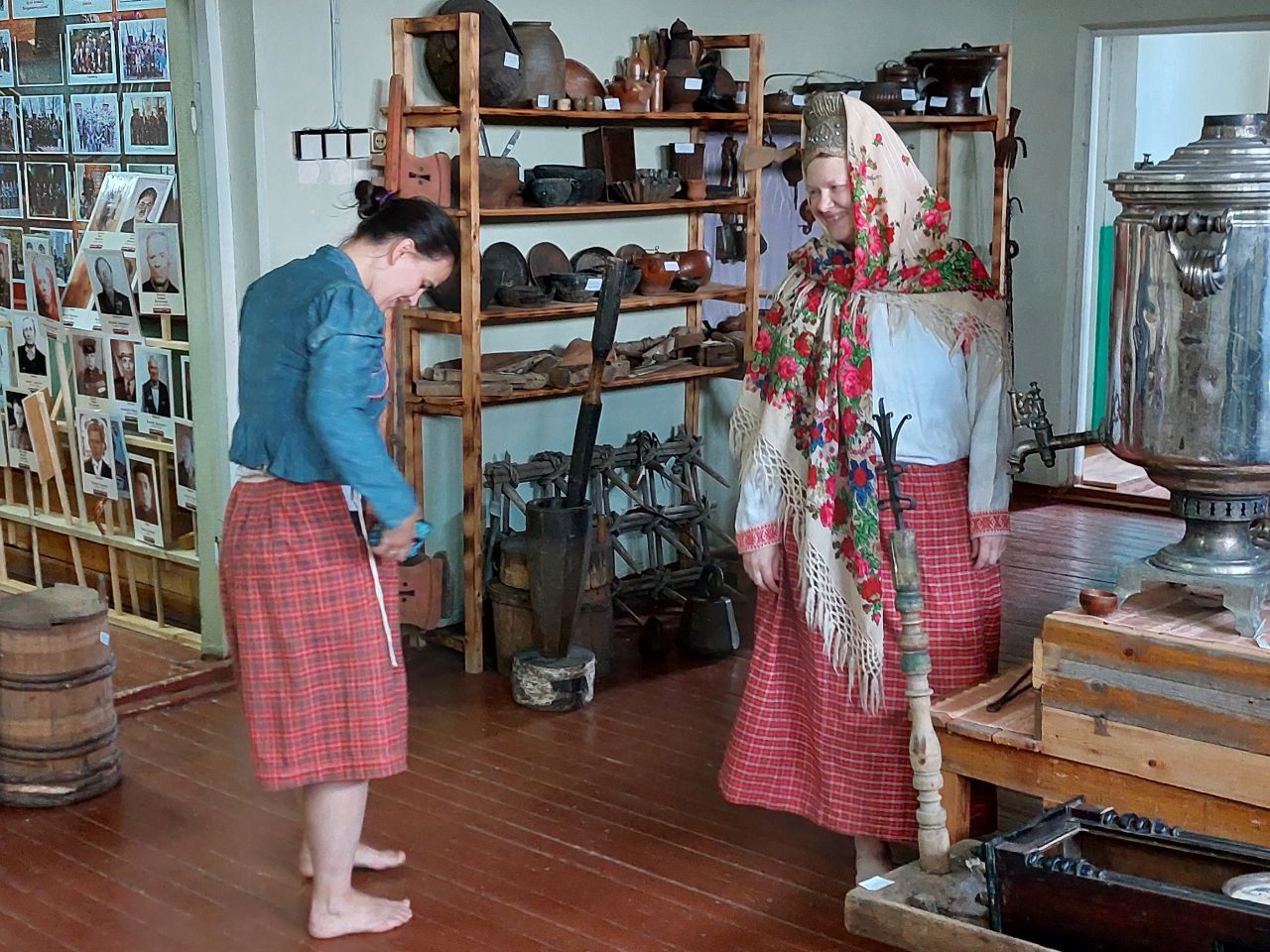 10 августа 2022 Подхватили мы Валентину Владимировну у ее дома и довезли до школы на нашей машине. Музей оказался школьный, но очень богатый на экспонаты. И, что ценно, всё подписано. Каждый предмет. Конечно, во всех местных музеях сетуют, что лучшие образцы увезли в Москву и Питер экспедиции, которые снаряжались сюда в ранне-советское время. Но в таких музеях ценно то, что ты как будто открыл бабушкин сундук и тебе всё можно потрогать и примерить. Можешь взять в руки вещь и понять какая она. Ася у себя в отчёте прекрасно описала этот музей, но я немного повторюсь))) В одном зале выставка предметов народного быта + верхнеуфтюжская роспись. Да, есть отдельное направление росписей такое. Я Погуглила про росписи этих мест. Похоже, что основную массу росписей привнесли старообрядцы (в этих местах их было очень много). Просто тут красители не те, росписи по дереву и бересте... Да и, возможно, не самыми мастерскими художниками... Скрытый текст Вот для примера фото старообрядческих книг из интернета. Интересный момент про художника Нестерова Михаила Васильевича. У него есть автопортрет, на котором изображен туес с верхнеуфтюжской росписью. Художник, побывав в этих краях был впечатлён и очарован севером. И после этого подобный туес появился почти на всех его дальнейших картинах. И, вроде как, хранится этот туес в музее в Уфе. Вот одна из статей на эту тему в сети. Ещё немного экспонатов. Погребушки для быстрого сбора ягод. Черники, например. До сих пор так собирают. В покатухе катали тесто перед тем, как его "посадить" на "грядку" - доска на высоте головы в районе печи. Там тесто поднималось "росло". Вот про эту красную штуку мы спросили, но все трое забыли зачем она)))) Вроде туда привязывали струну и использование как-то связано с шерстью. Но это неточно. Я в ВК написала Валентине Владимировне, но не знаю - ответит ли))) В корчаге варили пиво. А когда пиво варили в больших корчагах на продажу или на большие праздники, то разливали его огромным ковшом с одного из первых фото. Это крюк для закрепления груза на санях. Если я вру, то муж поправит))) Ну и мы перешли в следующую комнатку, которая нам подарила потрясную фотосессию и "татарчонка" (про это у Аси в теме подробно Лучшие фото я приносила. Теперь бэкстейдж практически))) Видео не принесу))) Ну и в следующем зале, в котором находится убранство комнаты с печью, перенесенное из одной из местных изб, фотосессия продолжилась. Были ещё залы, где сохраняется память школы и память о Великой Отечественной Войне. Но там я не фотографировала. И ещё, внезапно, там же есть 2 иконы из церкви Дмитрия Солунского (там в самой церкви были пару икон с подобным письмом), но в церковь их забирать не торопятся почему-то... Денег за экскурсию брать отказывались, но мы всё-таки настояли на том, что это на развитие музея - новые стенды, бумага, файлики. Нам сказали, что всё обязательно учтут. Валентине Владимировне низкий поклон за то, что она делает. За то, что сохраняет память. За то, что растит (не она одна, но и она тоже) таких как Дарья, которую мы встретили в церкви. Уезжали из Верхней Уфтюги под дождичком. Очень вдохновлённые и наполненные. Наверное, каждый своим. Но было тепло и хорошо на душе. В Белой Слуде остановились у симпатичной церкви. Про нее там всё написано на щите. Но можно ещё и вот тут почитать. В 1963 году тут сгорела церковь очень похожа