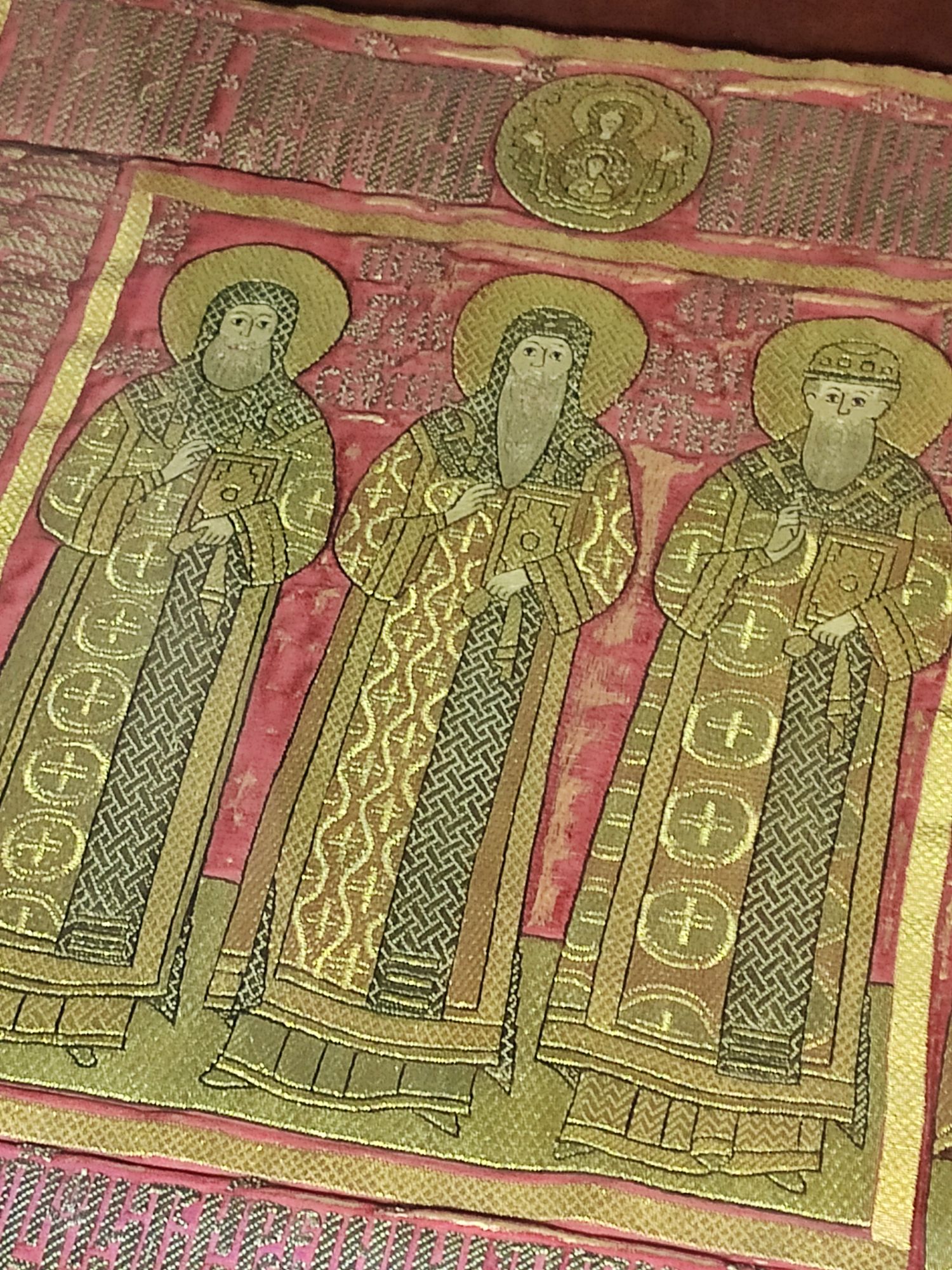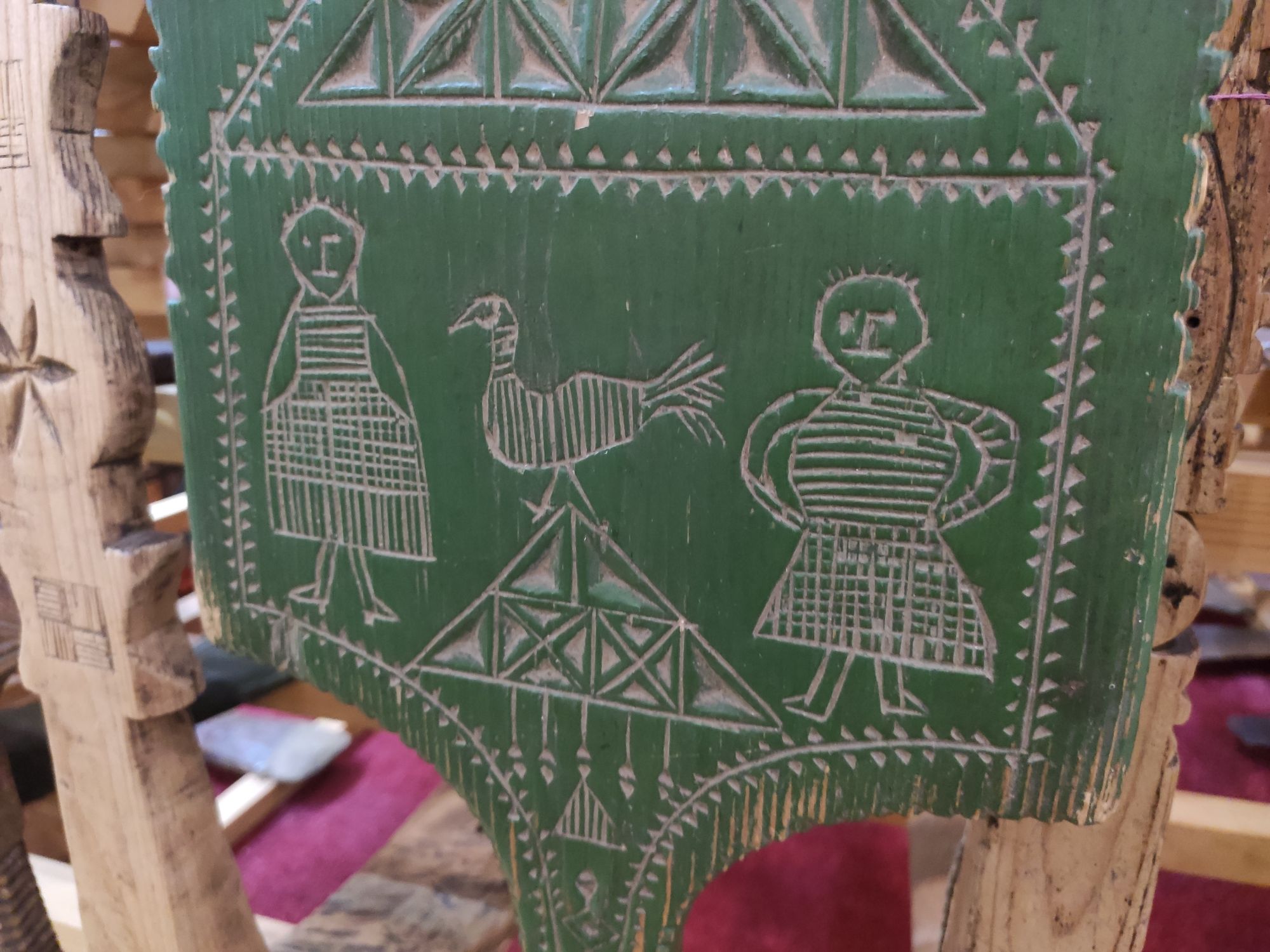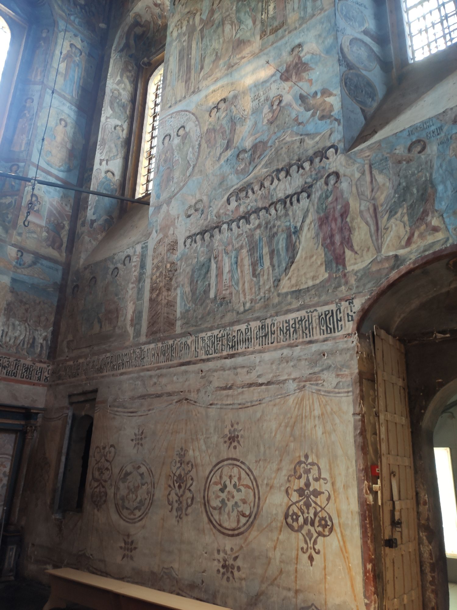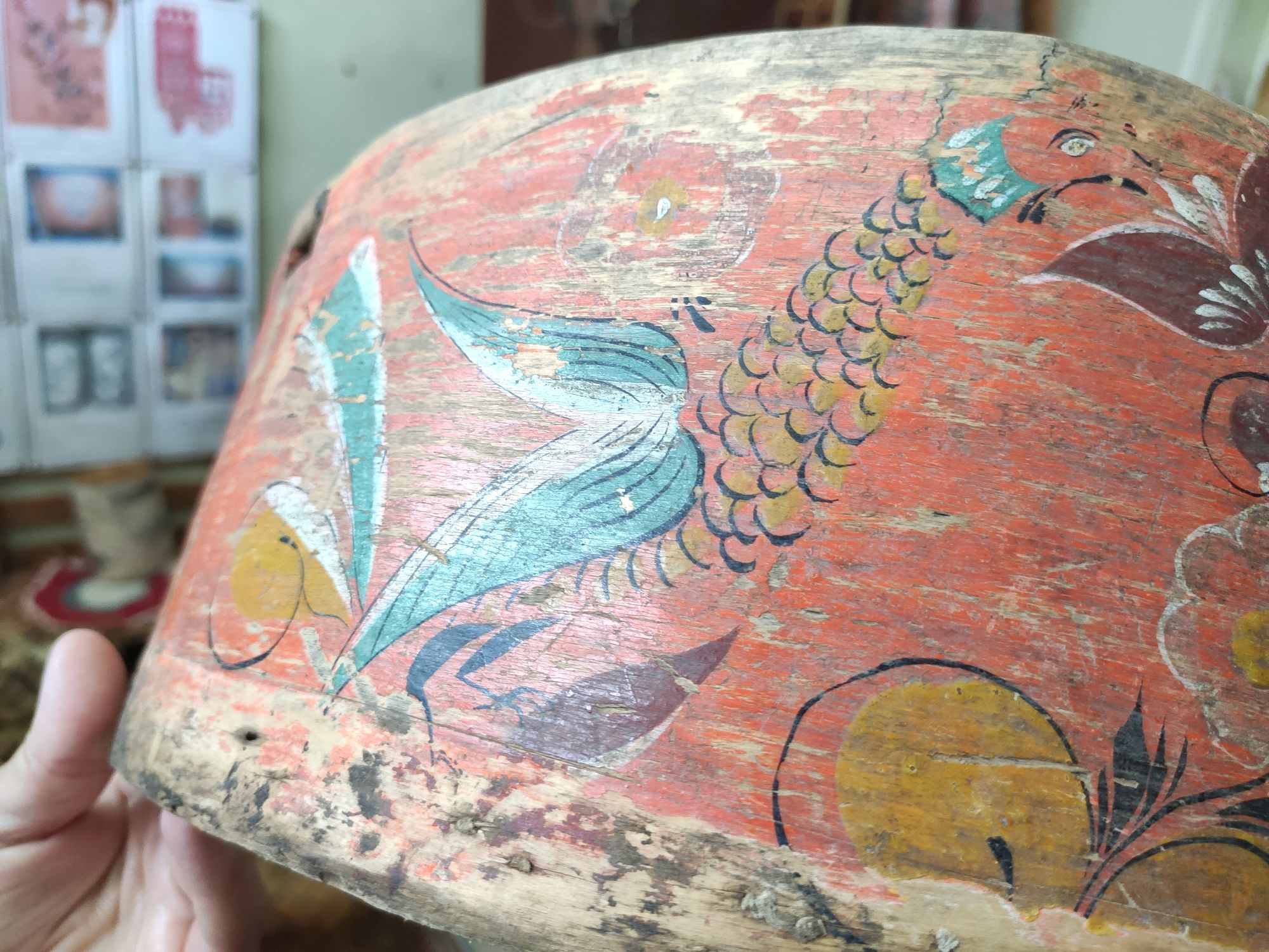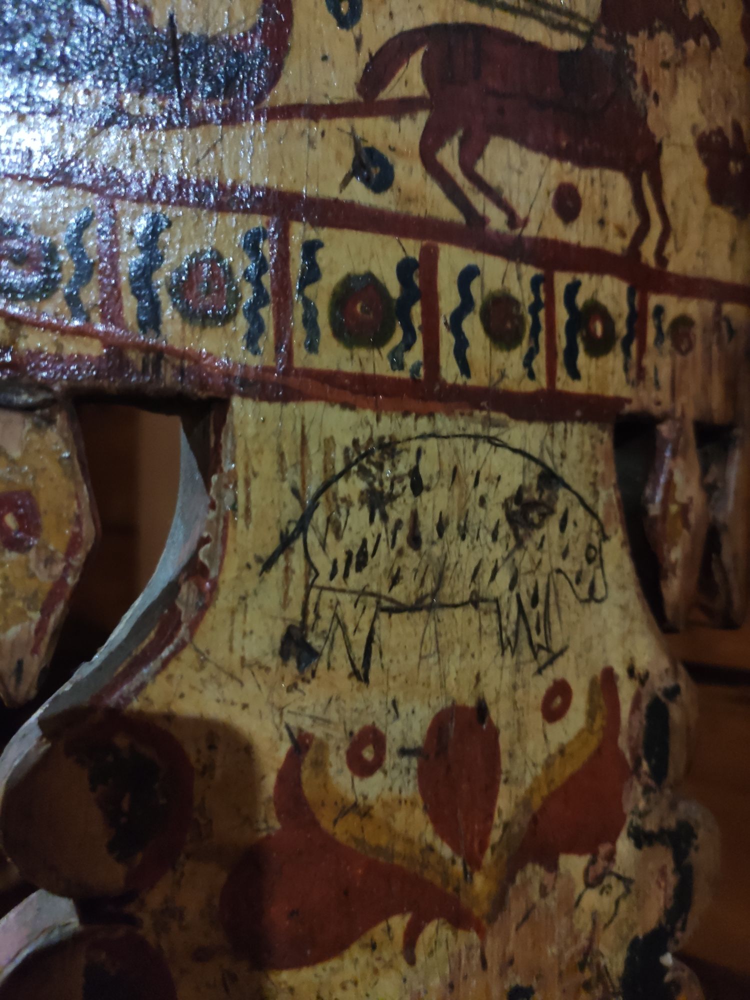10 августа 2022 Подхватили мы Валентину Владимировну у ее дома и довезли до школы на нашей машине. Музей оказался школьный, но очень богатый на экспонаты. И, что ценно, всё подписано. Каждый предмет. Конечно, во всех местных музеях сетуют, что лучшие образцы увезли в Москву и Питер экспедиции, которые снаряжались сюда в ранне-советское время. Но в таких музеях ценно то, что ты как будто открыл бабушкин сундук и тебе всё можно потрогать и примерить. Можешь взять в руки вещь и понять какая она. Ася у себя в отчёте прекрасно описала этот музей, но я немного повторюсь))) В одном зале выставка предметов народного быта + верхнеуфтюжская роспись. Да, есть отдельное направление росписей такое. Я Погуглила про росписи этих мест. Похоже, что основную массу росписей привнесли старообрядцы (в этих местах их было очень много). Просто тут красители не те, росписи по дереву и бересте... Да и, возможно, не самыми мастерскими художниками... Скрытый текст Вот для примера фото старообрядческих книг из интернета. Интересный момент про художника Нестерова Михаила Васильевича. У него есть автопортрет, на котором изображен туес с верхнеуфтюжской росписью. Художник, побывав в этих краях был впечатлён и очарован севером. И после этого подобный туес появился почти на всех его дальнейших картинах. И, вроде как, хранится этот туес в музее в Уфе. Вот одна из статей на эту тему в сети. Ещё немного экспонатов. Погребушки для быстрого сбора ягод. Черники, например. До сих пор так собирают. В покатухе катали тесто перед тем, как его "посадить" на "грядку" - доска на высоте головы в районе печи. Там тесто поднималось "росло". Вот про эту красную штуку мы спросили, но все трое забыли зачем она)))) Вроде туда привязывали струну и использование как-то связано с шерстью. Но это неточно. Я в ВК написала Валентине Владимировне, но не знаю - ответит ли))) В корчаге варили пиво. А когда пиво варили в больших корчагах на продажу или на большие праздники, то разливали его огромным ковшом с одного из первых фото. Это крюк для закрепления груза на санях. Если я вру, то муж поправит))) Ну и мы перешли в следующую комнатку, которая нам подарила потрясную фотосессию и "татарчонка" (про это у Аси в теме подробно Лучшие фото я приносила. Теперь бэкстейдж практически))) Видео не принесу))) Ну и в следующем зале, в котором находится убранство комнаты с печью, перенесенное из одной из местных изб, фотосессия продолжилась. Были ещё залы, где сохраняется память школы и память о Великой Отечественной Войне. Но там я не фотографировала. И ещё, внезапно, там же есть 2 иконы из церкви Дмитрия Солунского (там в самой церкви были пару икон с подобным письмом), но в церковь их забирать не торопятся почему-то... Денег за экскурсию брать отказывались, но мы всё-таки настояли на том, что это на развитие музея - новые стенды, бумага, файлики. Нам сказали, что всё обязательно учтут. Валентине Владимировне низкий поклон за то, что она делает. За то, что сохраняет память. За то, что растит (не она одна, но и она тоже) таких как Дарья, которую мы встретили в церкви. Уезжали из Верхней Уфтюги под дождичком. Очень вдохновлённые и наполненные. Наверное, каждый своим. Но было тепло и хорошо на душе. В Белой Слуде остановились у симпатичной церкви. Про нее там всё написано на щите. Но можно ещё и вот тут почитать. В 1963 году тут сгорела церковь очень похожа