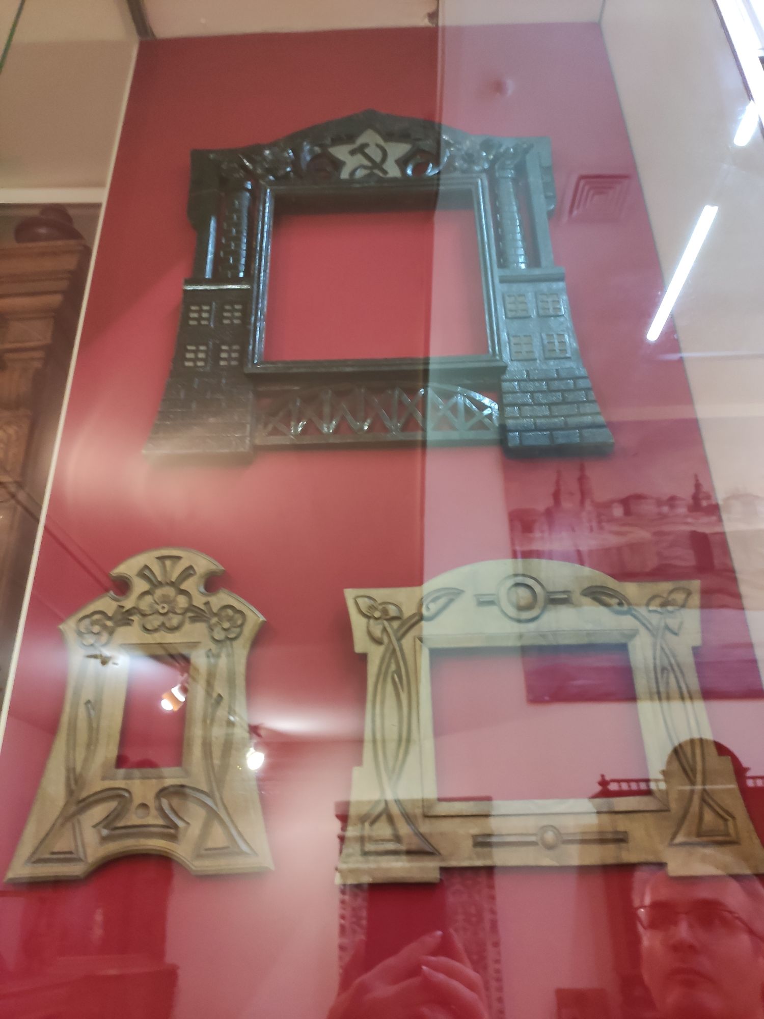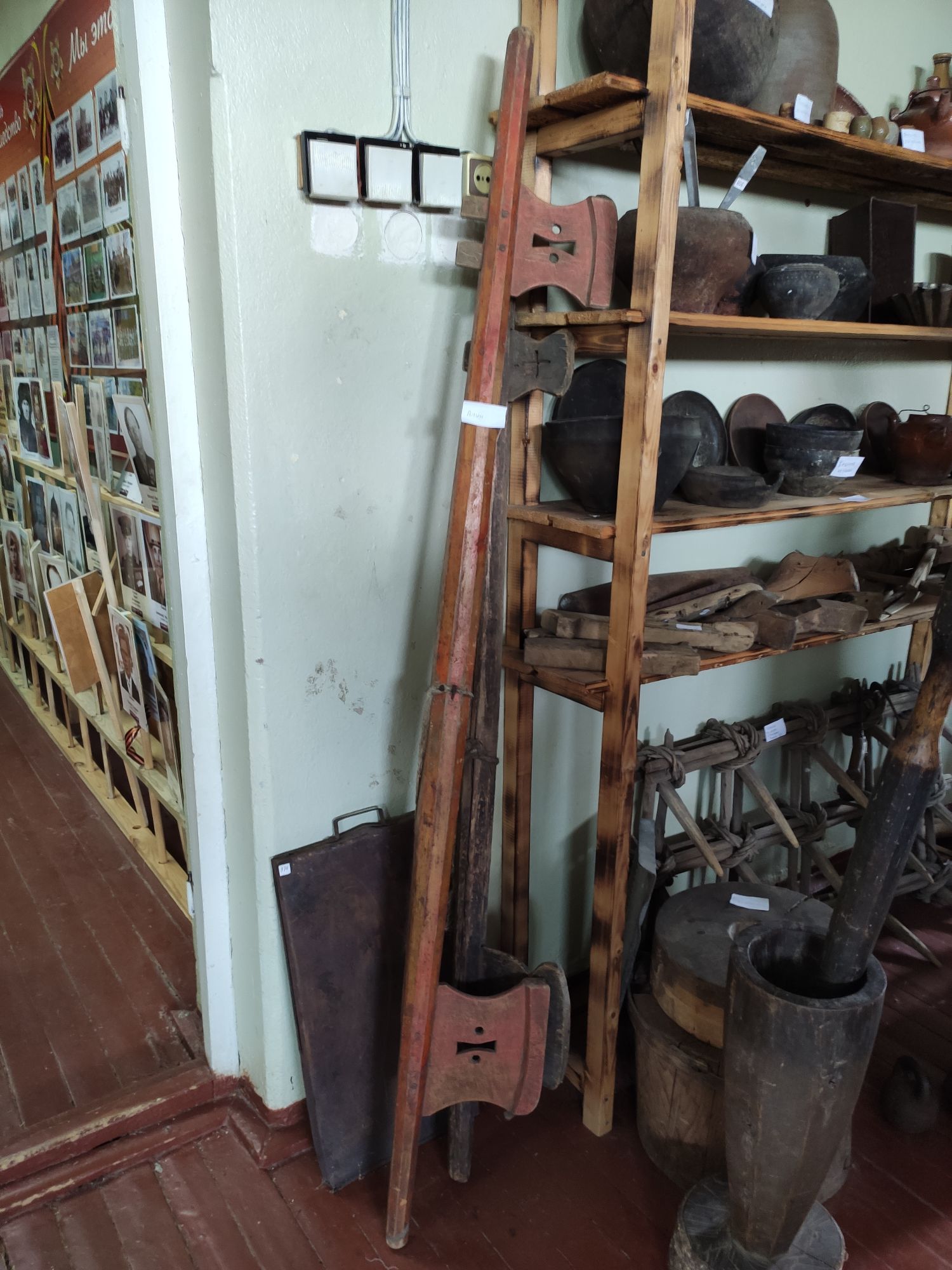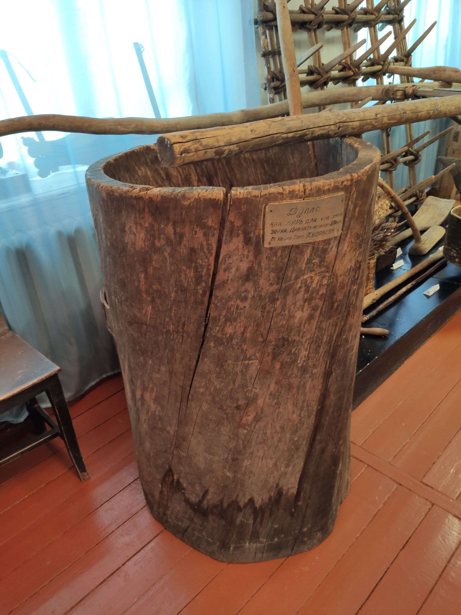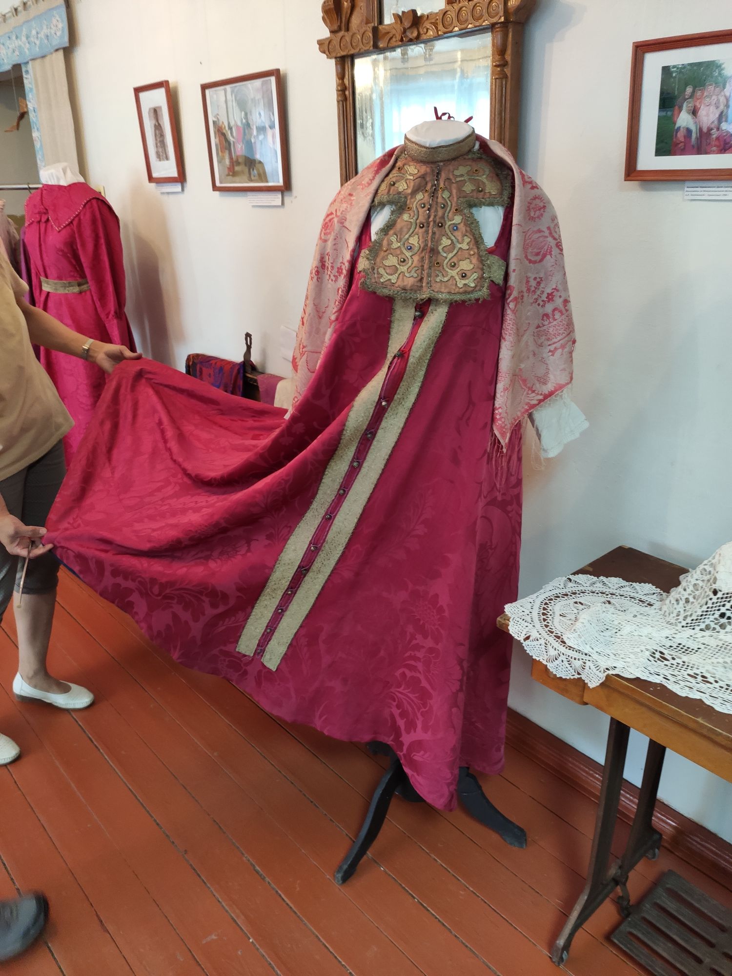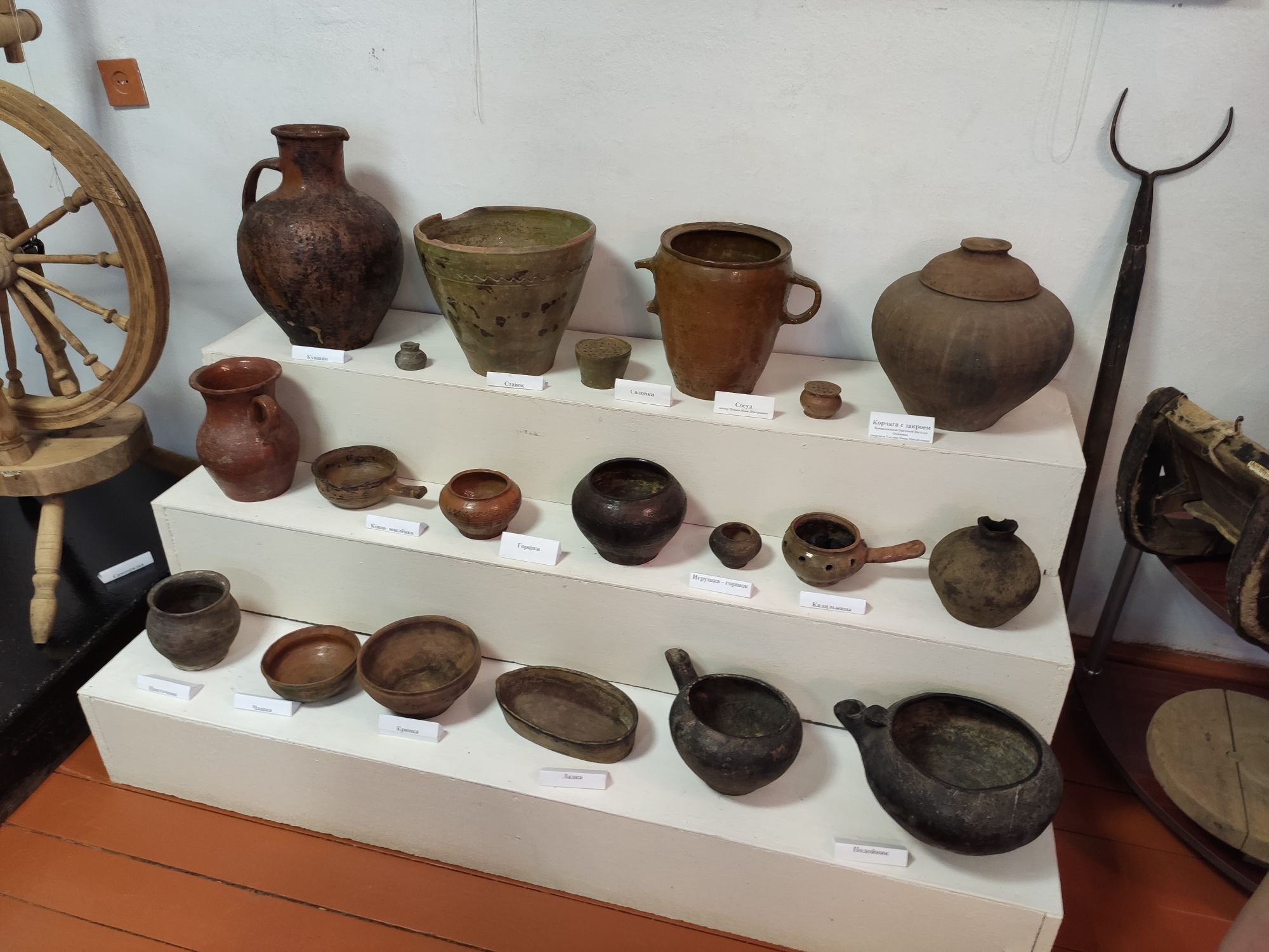 13 августа 2022 Черевковский музей оказался прекрасен всем, кроме запаха краски. Видимо, туристов/посетителей сейчас почти не бывает, поэтому решили быстренько покрасить внутри то, что надо. А тут мы... А у Аси ещё и голова самого утра болит. Тяжко ей было, т.к. ладно бы не интересно - ушел, сославшись на голову и дело с концом. Так нет - тут было очень интересно. И опять почти всё можно потрогать - и это прекрасно!))) Рассказ начался с общих данных про город. Мы узнали, что Черевково было одним из центров старообрядчества. И там даже старообрядческая церковь была. Но после прихода советской власти церковь перестроили в школу, если не ошибаюсь. На фото она такая приземистая из трёх двухскатных крыш. Потом показали часы и самовары. Про формы самоваров я себе даже заметку сделала: банка, рюмка, репка, яйцо и желудь)))) А дальше пошло раздолье. Кокошники и перчатки расшитые золотом тут лежали на витрине, зато костюмы все в доступе. Нам очень много рассказали про пошивы. Мы рассматривали швы, способы пошива, клины, вытачки, пуговицы, украшение бисером. Село было очень богатым, поэтому тут могли себе позволить такую красивую одежду. Немного зубов мамонта И идём смотреть предметы быта))) Огромная ступа/ларь, которой больше 200 лет. Фига на ручке на рубеле. Прялочки. Тут мы 4 росписи посмотрели. Ракульская. Основная особенность - птичка в квадрате (хотя на ранних может быть не птичка), а сверху древо, вырастающее из квадрата. Это пермогорская. Тут птицы сирин обычно изображены. И рисунок мелкий. Ну и это... Видишь прялку - загляни с обратной стороны, т.к. там частенько шедевры)))) Двинская роспись - тут четкое деление. Внизу обычно лошадь с повозкой, середина - растения и птицы, верх - разделен на три части, где крайние две как окошки. И Мезенская прялочка в плохом состоянии, но лошадки и птички характе́рные читаются. Саночки "оковыши" - для того, чтоб лучше скользили, их полозья обивали железом. Тяжёлые как не знаю что. Люлька или зыбка. Старообрядческая - на ней в изголовье изображён восьмиконечный крест. И год написан. Из керамических сосудов нам показали те, что редко встречаются. Кадильница - в ней хранили тлеющие угольки на случай, если печь потухнет, например, или разжечь где что надо. Вместо спичек) Необычный подойник. Там есть выемка для кусочка сливочного масла, которым смазывали вымя корове. И дегтярница. Название говорит само за себя. В ней делали и хранили деготь. Во втором зале советский период. Школьная форма, например. Девчачью не сфоткала. И там же почему-то лежит дореволюционный календарь, в котором куча всего - и информация о железных дорогах, и про писателей что-то написано и т.д. Ну и реклама - куда же без неё?))) Покажу несколько страниц, хотя фоткала много. Когда-то в Черевково была спичечная фабрика, но потом её в Балабаново, если не ошибаюсь перенесли. Огромные книги достижений и информации. Не знаю как их ещё описать))) там и медные планы и удои скота. А ещё - мы наткнулись на фотоальбом и нам рассказали про ежегодные соревнования по многим видам спорта - там и плавание, и мотогонки, и бег, и стрельба... Соревнование командное. Многие кубки передали на хранение в музей. Тут же и фотоархив))) Там столько задора в глазах у участников!) (У Аси в отчёте фоток побольше))) И ещё витрина с игрушками. Коник был отреставрирован недавно. Но хвостик родной у него отвалился. И, как с