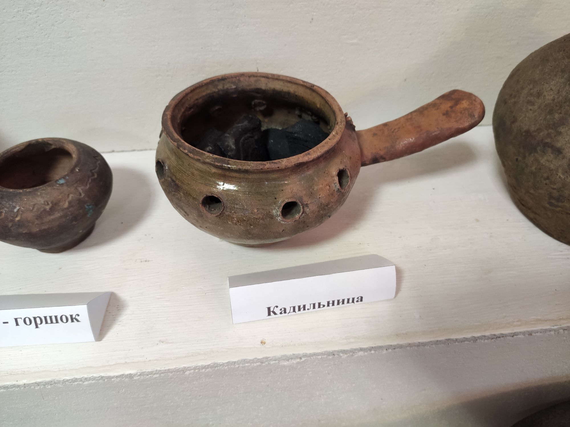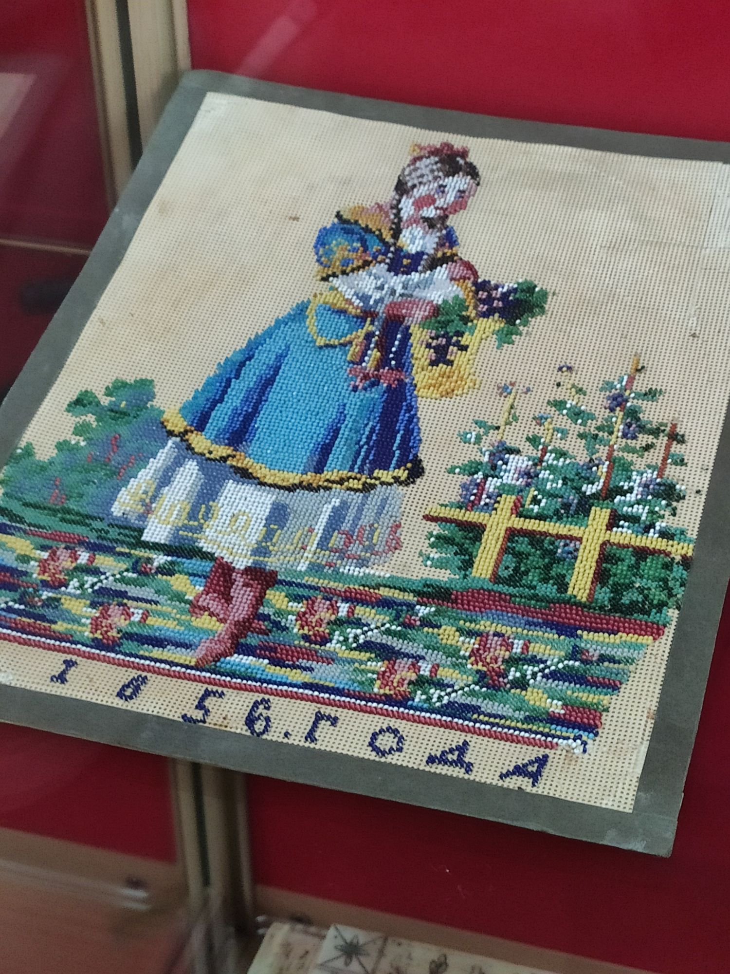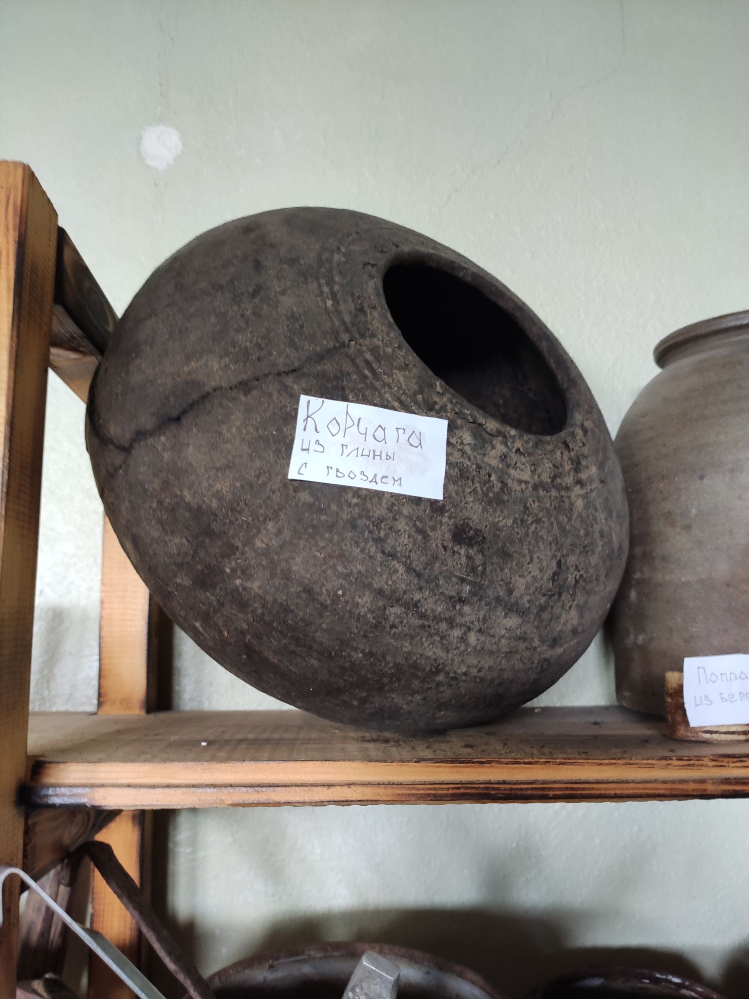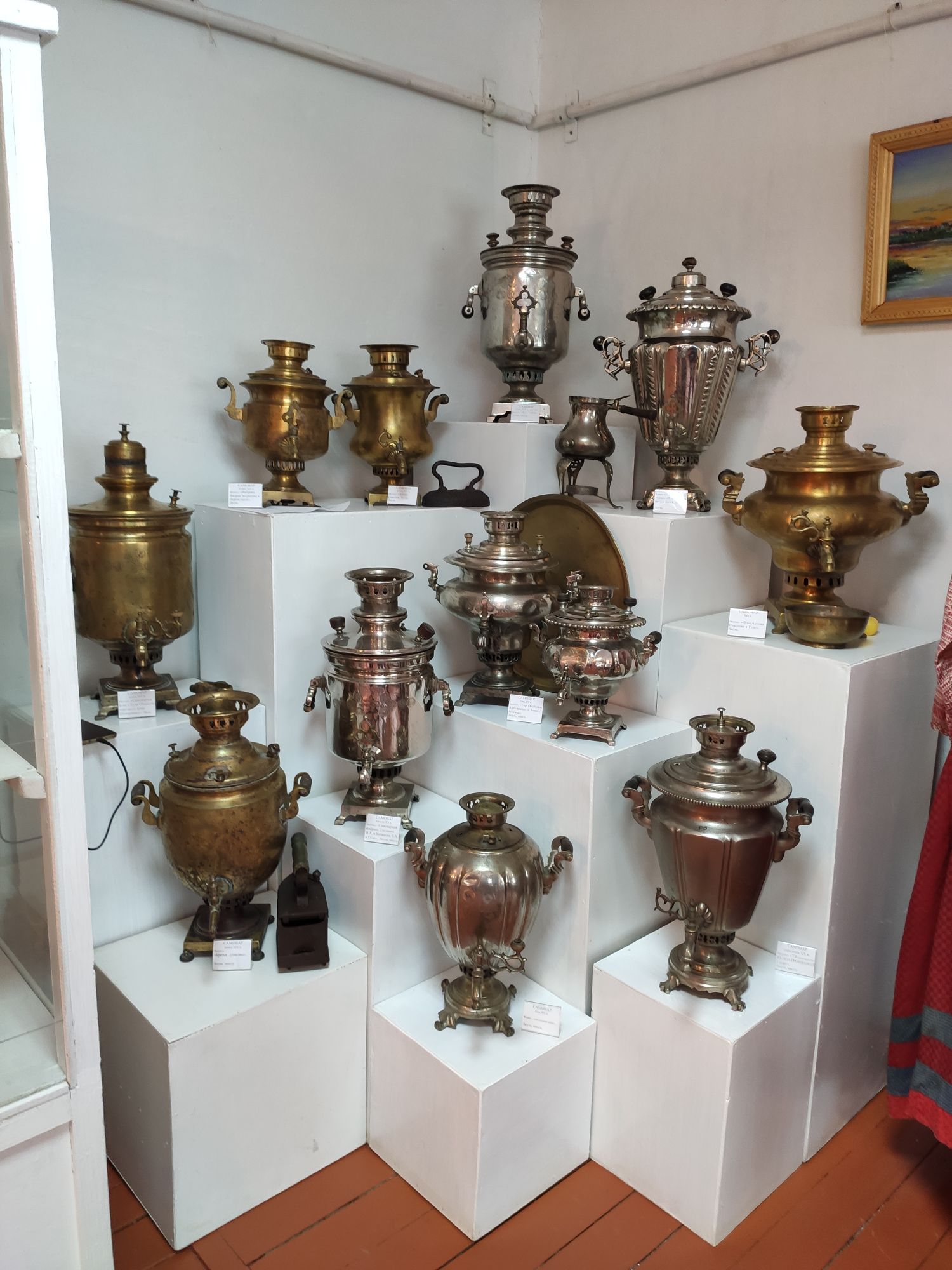 13 августа 2022 Черевковский музей оказался прекрасен всем, кроме запаха краски. Видимо, туристов/посетителей сейчас почти не бывает, поэтому решили быстренько покрасить внутри то, что надо. А тут мы... А у Аси ещё и голова самого утра болит. Тяжко ей было, т.к. ладно бы не интересно - ушел, сославшись на голову и дело с концом. Так нет - тут было очень интересно. И опять почти всё можно потрогать - и это прекрасно!))) Рассказ начался с общих данных про город. Мы узнали, что Черевково было одним из центров старообрядчества. И там даже старообрядческая церковь была. Но после прихода советской власти церковь перестроили в школу, если не ошибаюсь. На фото она такая приземистая из трёх двухскатных крыш. Потом показали часы и самовары. Про формы самоваров я себе даже заметку сделала: банка, рюмка, репка, яйцо и желудь)))) А дальше пошло раздолье. Кокошники и перчатки расшитые золотом тут лежали на витрине, зато костюмы все в доступе. Нам очень много рассказали про пошивы. Мы рассматривали швы, способы пошива, клины, вытачки, пуговицы, украшение бисером. Село было очень богатым, поэтому тут могли себе позволить такую красивую одежду. Немного зубов мамонта И идём смотреть предметы быта))) Огромная ступа/ларь, которой больше 200 лет. Фига на ручке на рубеле. Прялочки. Тут мы 4 росписи посмотрели. Ракульская. Основная особенность - птичка в квадрате (хотя на ранних может быть не птичка), а сверху древо, вырастающее из квадрата. Это пермогорская. Тут птицы сирин обычно изображены. И рисунок мелкий. Ну и это... Видишь прялку - загляни с обратной стороны, т.к. там частенько шедевры)))) Двинская роспись - тут четкое деление. Внизу обычно лошадь с повозкой, середина - растения и птицы, верх - разделен на три части, где крайние две как окошки. И Мезенская прялочка в плохом состоянии, но лошадки и птички характе́рные читаются. Саночки "оковыши" - для того, чтоб лучше скользили, их полозья обивали железом. Тяжёлые как не знаю что. Люлька или зыбка. Старообрядческая - на ней в изголовье изображён восьмиконечный крест. И год написан. Из керамических сосудов нам показали те, что редко встречаются. Кадильница - в ней хранили тлеющие угольки на случай, если печь потухнет, например, или разжечь где что надо. Вместо спичек) Необычный подойник. Там есть выемка для кусочка сливочного масла, которым смазывали вымя корове. И дегтярница. Название говорит само за себя. В ней делали и хранили деготь. Во втором зале советский период. Школьная форма, например. Девчачью не сфоткала. И там же почему-то лежит дореволюционный календарь, в котором куча всего - и информация о железных дорогах, и про писателей что-то написано и т.д. Ну и реклама - куда же без неё?))) Покажу несколько страниц, хотя фоткала много. Когда-то в Черевково была спичечная фабрика, но потом её в Балабаново, если не ошибаюсь перенесли. Огромные книги достижений и информации. Не знаю как их ещё описать))) там и медные планы и удои скота. А ещё - мы наткнулись на фотоальбом и нам рассказали про ежегодные соревнования по многим видам спорта - там и плавание, и мотогонки, и бег, и стрельба... Соревнование командное. Многие кубки передали на хранение в музей. Тут же и фотоархив))) Там столько задора в глазах у участников!) (У Аси в отчёте фоток побольше))) И ещё витрина с игрушками. Коник был отреставрирован недавно. Но хвостик родной у него отвалился. И, как с