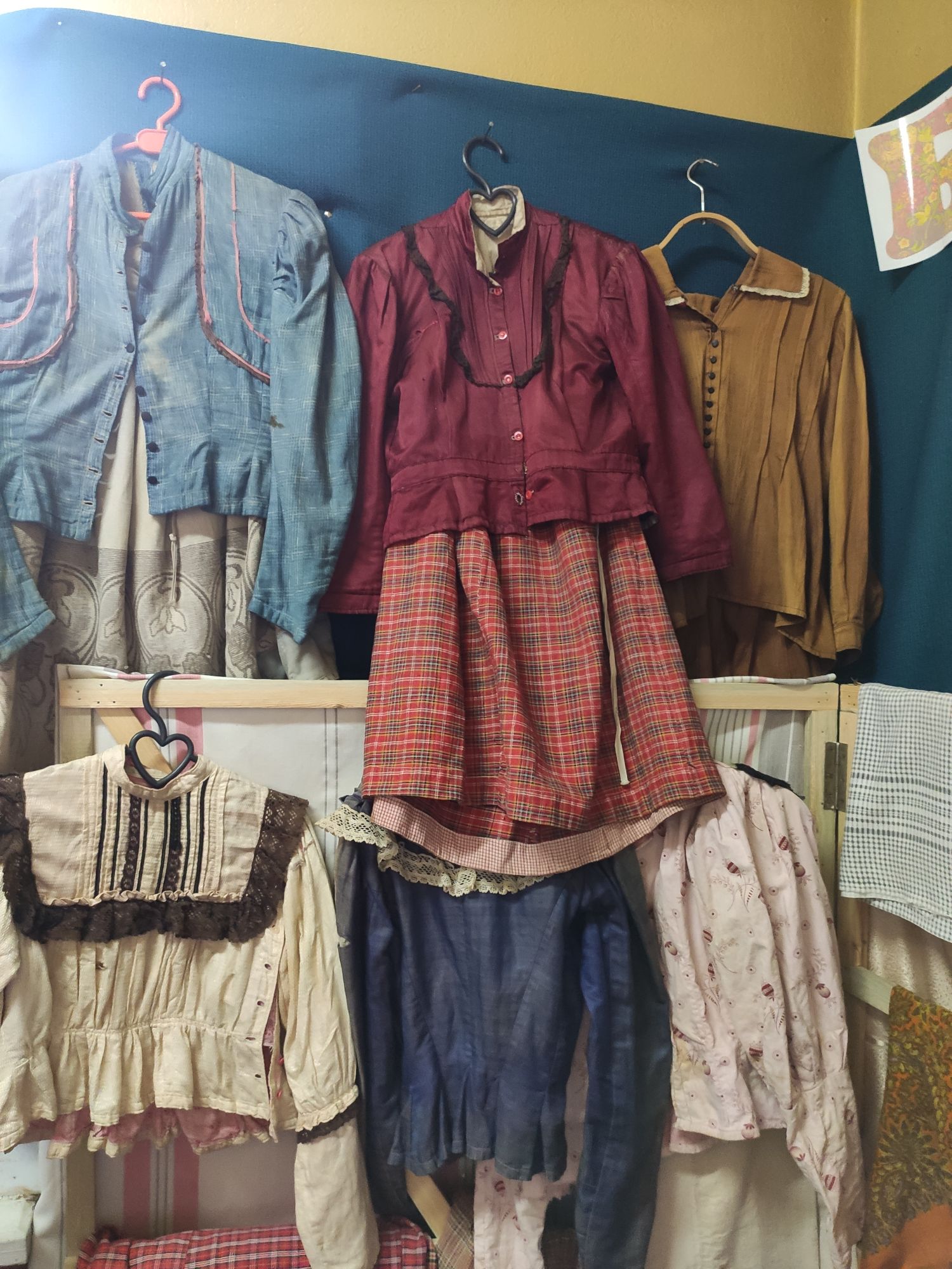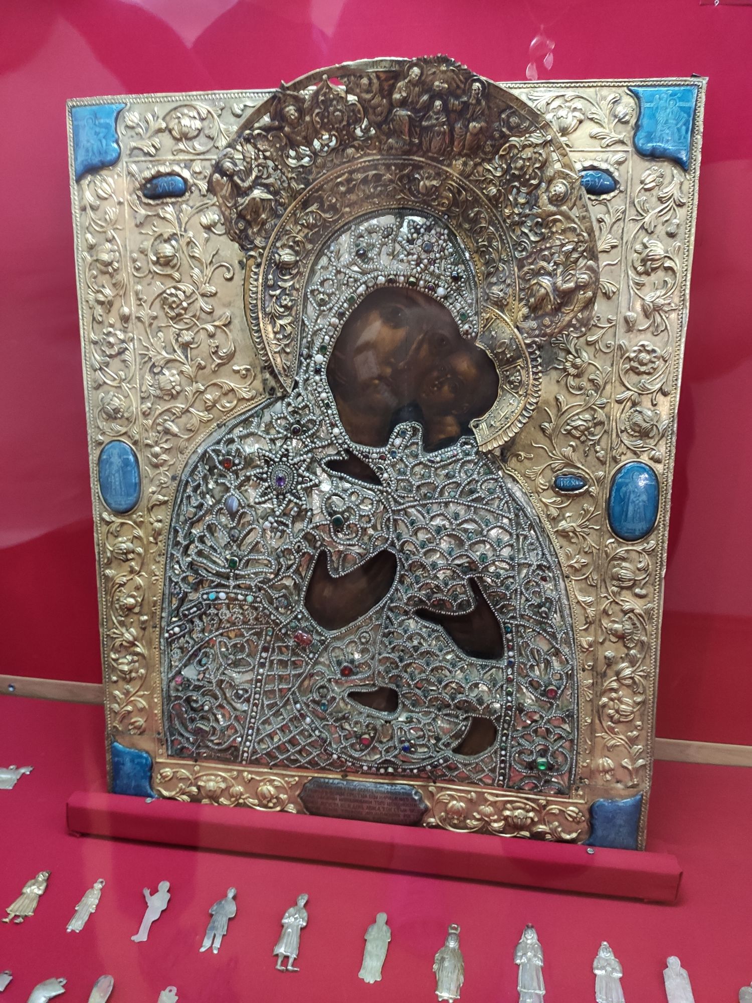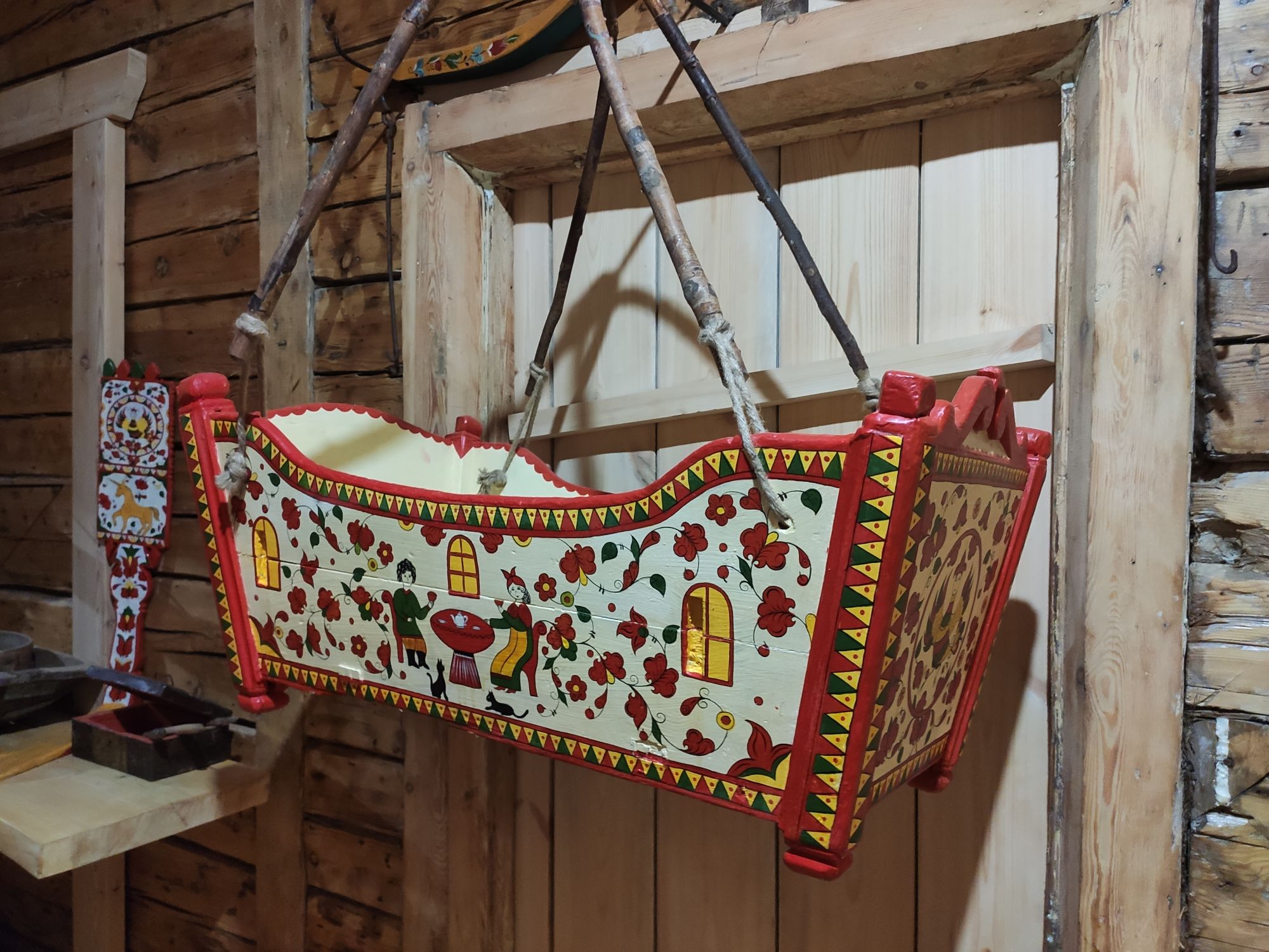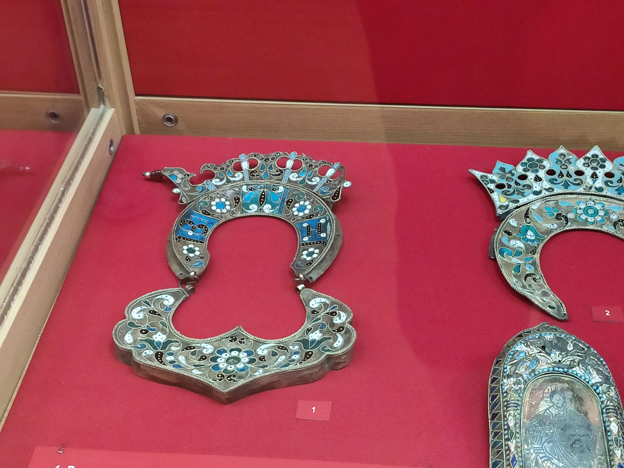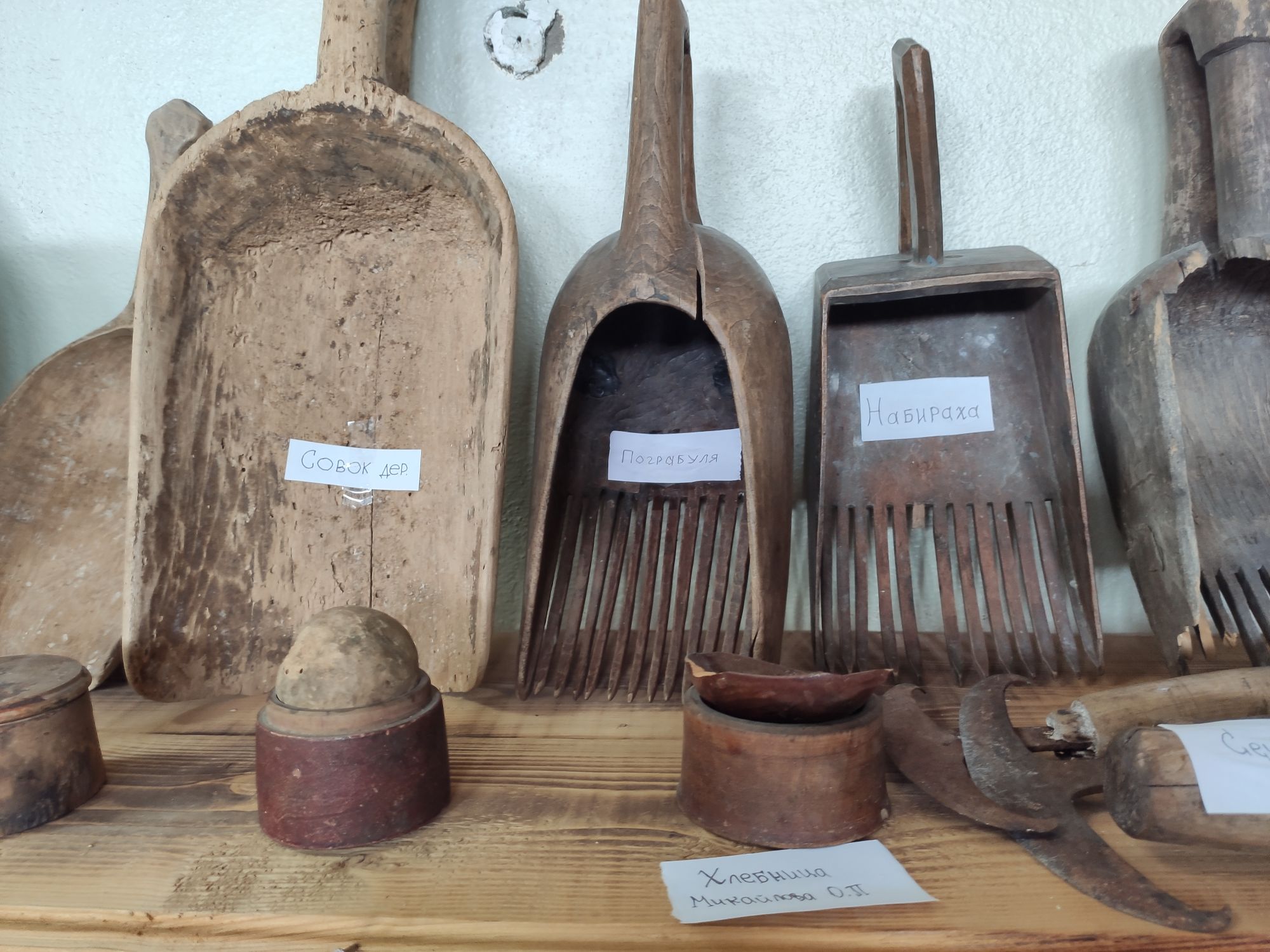 13 августа 2022 Черевковский музей оказался прекрасен всем, кроме запаха краски. Видимо, туристов/посетителей сейчас почти не бывает, поэтому решили быстренько покрасить внутри то, что надо. А тут мы... А у Аси ещё и голова самого утра болит. Тяжко ей было, т.к. ладно бы не интересно - ушел, сославшись на голову и дело с концом. Так нет - тут было очень интересно. И опять почти всё можно потрогать - и это прекрасно!))) Рассказ начался с общих данных про город. Мы узнали, что Черевково было одним из центров старообрядчества. И там даже старообрядческая церковь была. Но после прихода советской власти церковь перестроили в школу, если не ошибаюсь. На фото она такая приземистая из трёх двухскатных крыш. Потом показали часы и самовары. Про формы самоваров я себе даже заметку сделала: банка, рюмка, репка, яйцо и желудь)))) А дальше пошло раздолье. Кокошники и перчатки расшитые золотом тут лежали на витрине, зато костюмы все в доступе. Нам очень много рассказали про пошивы. Мы рассматривали швы, способы пошива, клины, вытачки, пуговицы, украшение бисером. Село было очень богатым, поэтому тут могли себе позволить такую красивую одежду. Немного зубов мамонта И идём смотреть предметы быта))) Огромная ступа/ларь, которой больше 200 лет. Фига на ручке на рубеле. Прялочки. Тут мы 4 росписи посмотрели. Ракульская. Основная особенность - птичка в квадрате (хотя на ранних может быть не птичка), а сверху древо, вырастающее из квадрата. Это пермогорская. Тут птицы сирин обычно изображены. И рисунок мелкий. Ну и это... Видишь прялку - загляни с обратной стороны, т.к. там частенько шедевры)))) Двинская роспись - тут четкое деление. Внизу обычно лошадь с повозкой, середина - растения и птицы, верх - разделен на три части, где крайние две как окошки. И Мезенская прялочка в плохом состоянии, но лошадки и птички характе́рные читаются. Саночки "оковыши" - для того, чтоб лучше скользили, их полозья обивали железом. Тяжёлые как не знаю что. Люлька или зыбка. Старообрядческая - на ней в изголовье изображён восьмиконечный крест. И год написан. Из керамических сосудов нам показали те, что редко встречаются. Кадильница - в ней хранили тлеющие угольки на случай, если печь потухнет, например, или разжечь где что надо. Вместо спичек) Необычный подойник. Там есть выемка для кусочка сливочного масла, которым смазывали вымя корове. И дегтярница. Название говорит само за себя. В ней делали и хранили деготь. Во втором зале советский период. Школьная форма, например. Девчачью не сфоткала. И там же почему-то лежит дореволюционный календарь, в котором куча всего - и информация о железных дорогах, и про писателей что-то написано и т.д. Ну и реклама - куда же без неё?))) Покажу несколько страниц, хотя фоткала много. Когда-то в Черевково была спичечная фабрика, но потом её в Балабаново, если не ошибаюсь перенесли. Огромные книги достижений и информации. Не знаю как их ещё описать))) там и медные планы и удои скота. А ещё - мы наткнулись на фотоальбом и нам рассказали про ежегодные соревнования по многим видам спорта - там и плавание, и мотогонки, и бег, и стрельба... Соревнование командное. Многие кубки передали на хранение в музей. Тут же и фотоархив))) Там столько задора в глазах у участников!) (У Аси в отчёте фоток побольше))) И ещё витрина с игрушками. Коник был отреставрирован недавно. Но хвостик родной у него отвалился. И, как с