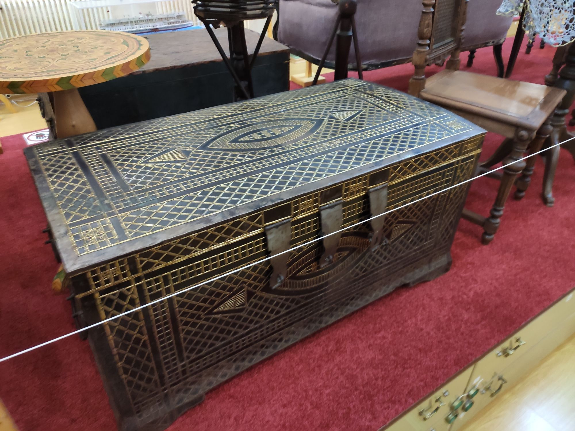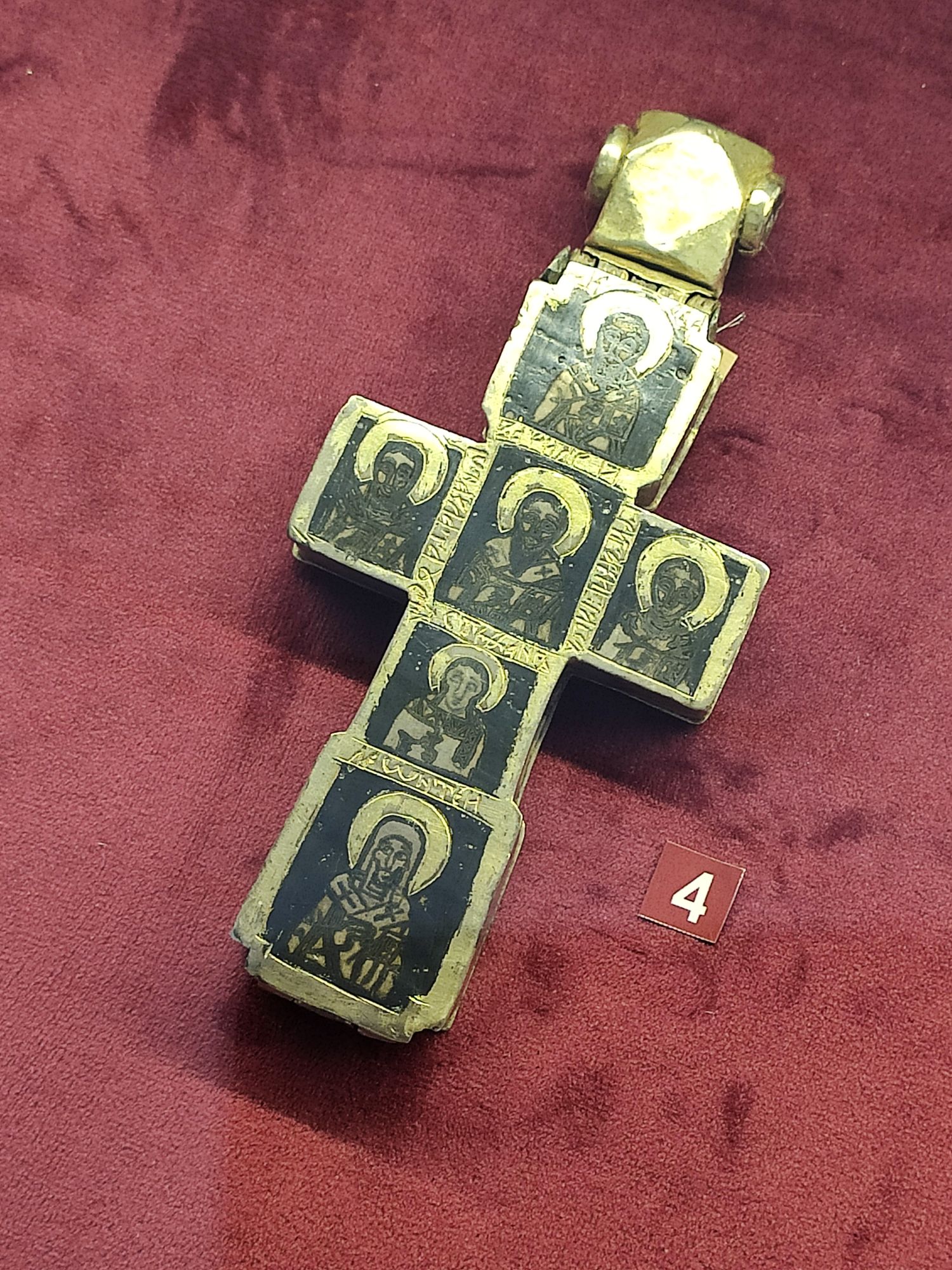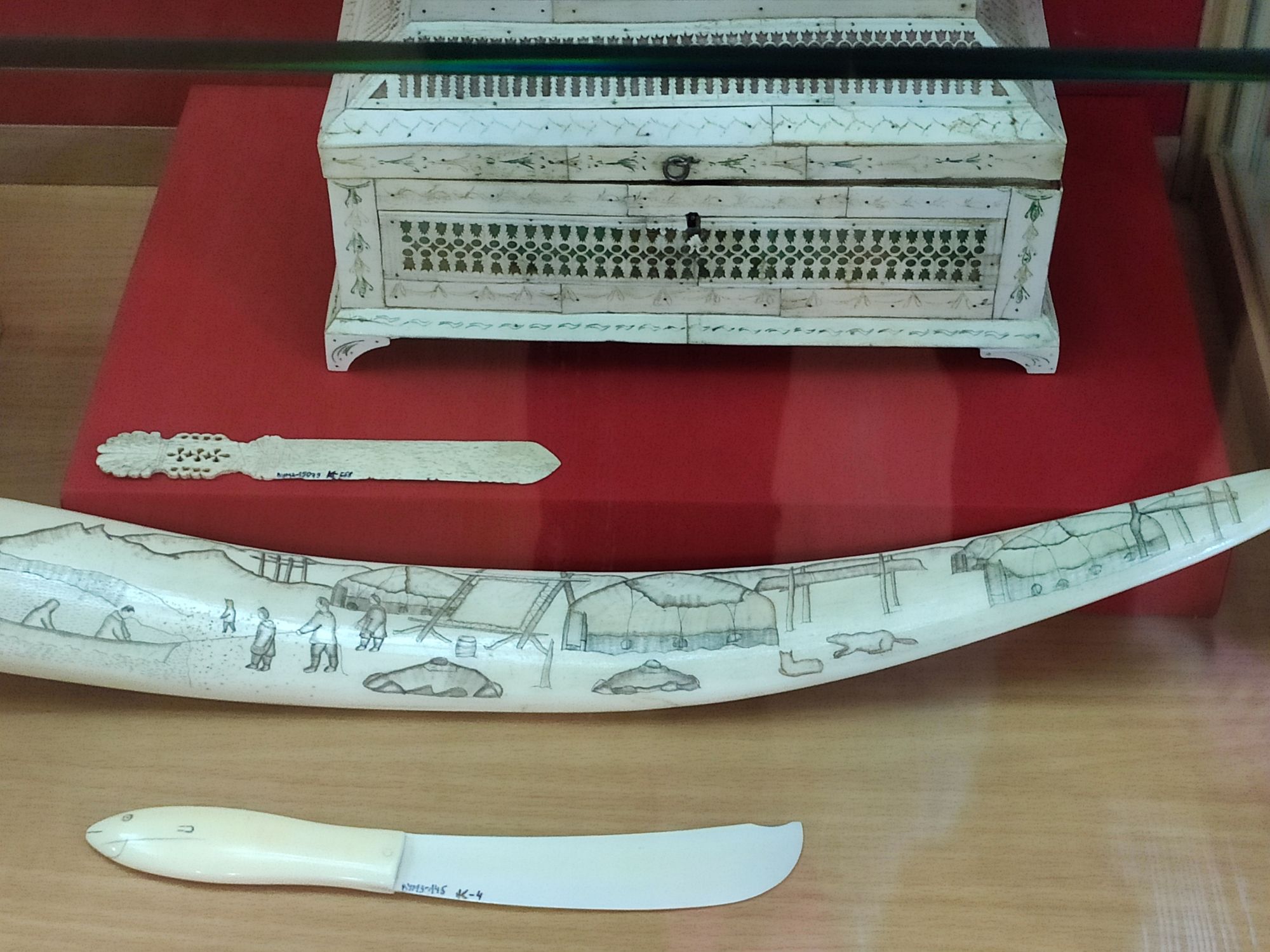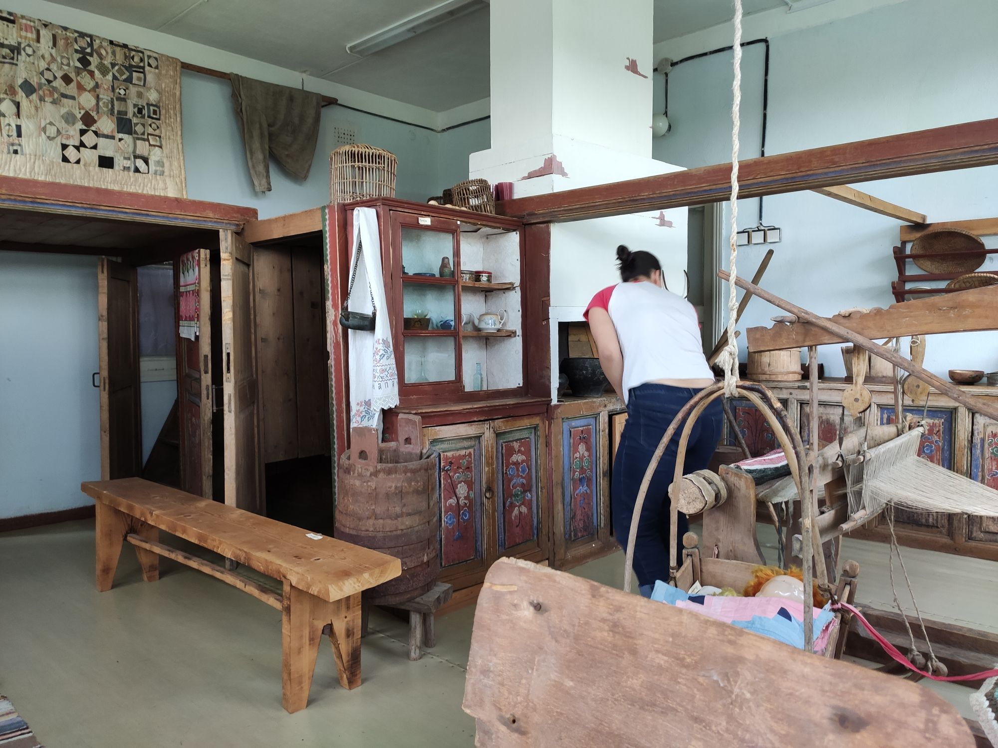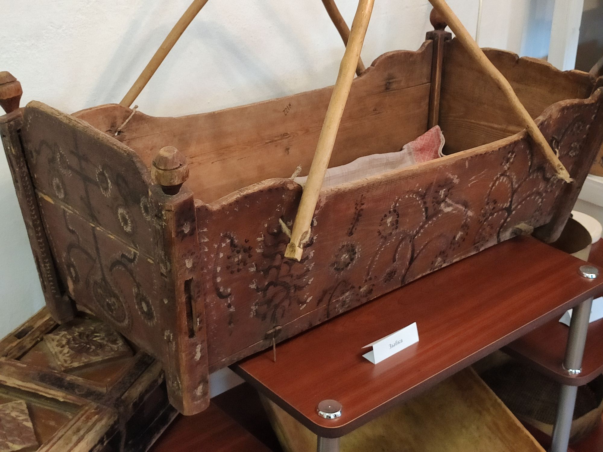 13 августа 2022 Черевковский музей оказался прекрасен всем, кроме запаха краски. Видимо, туристов/посетителей сейчас почти не бывает, поэтому решили быстренько покрасить внутри то, что надо. А тут мы... А у Аси ещё и голова самого утра болит. Тяжко ей было, т.к. ладно бы не интересно - ушел, сославшись на голову и дело с концом. Так нет - тут было очень интересно. И опять почти всё можно потрогать - и это прекрасно!))) Рассказ начался с общих данных про город. Мы узнали, что Черевково было одним из центров старообрядчества. И там даже старообрядческая церковь была. Но после прихода советской власти церковь перестроили в школу, если не ошибаюсь. На фото она такая приземистая из трёх двухскатных крыш. Потом показали часы и самовары. Про формы самоваров я себе даже заметку сделала: банка, рюмка, репка, яйцо и желудь)))) А дальше пошло раздолье. Кокошники и перчатки расшитые золотом тут лежали на витрине, зато костюмы все в доступе. Нам очень много рассказали про пошивы. Мы рассматривали швы, способы пошива, клины, вытачки, пуговицы, украшение бисером. Село было очень богатым, поэтому тут могли себе позволить такую красивую одежду. Немного зубов мамонта И идём смотреть предметы быта))) Огромная ступа/ларь, которой больше 200 лет. Фига на ручке на рубеле. Прялочки. Тут мы 4 росписи посмотрели. Ракульская. Основная особенность - птичка в квадрате (хотя на ранних может быть не птичка), а сверху древо, вырастающее из квадрата. Это пермогорская. Тут птицы сирин обычно изображены. И рисунок мелкий. Ну и это... Видишь прялку - загляни с обратной стороны, т.к. там частенько шедевры)))) Двинская роспись - тут четкое деление. Внизу обычно лошадь с повозкой, середина - растения и птицы, верх - разделен на три части, где крайние две как окошки. И Мезенская прялочка в плохом состоянии, но лошадки и птички характе́рные читаются. Саночки "оковыши" - для того, чтоб лучше скользили, их полозья обивали железом. Тяжёлые как не знаю что. Люлька или зыбка. Старообрядческая - на ней в изголовье изображён восьмиконечный крест. И год написан. Из керамических сосудов нам показали те, что редко встречаются. Кадильница - в ней хранили тлеющие угольки на случай, если печь потухнет, например, или разжечь где что надо. Вместо спичек) Необычный подойник. Там есть выемка для кусочка сливочного масла, которым смазывали вымя корове. И дегтярница. Название говорит само за себя. В ней делали и хранили деготь. Во втором зале советский период. Школьная форма, например. Девчачью не сфоткала. И там же почему-то лежит дореволюционный календарь, в котором куча всего - и информация о железных дорогах, и про писателей что-то написано и т.д. Ну и реклама - куда же без неё?))) Покажу несколько страниц, хотя фоткала много. Когда-то в Черевково была спичечная фабрика, но потом её в Балабаново, если не ошибаюсь перенесли. Огромные книги достижений и информации. Не знаю как их ещё описать))) там и медные планы и удои скота. А ещё - мы наткнулись на фотоальбом и нам рассказали про ежегодные соревнования по многим видам спорта - там и плавание, и мотогонки, и бег, и стрельба... Соревнование командное. Многие кубки передали на хранение в музей. Тут же и фотоархив))) Там столько задора в глазах у участников!) (У Аси в отчёте фоток побольше))) И ещё витрина с игрушками. Коник был отреставрирован недавно. Но хвостик родной у него отвалился. И, как с