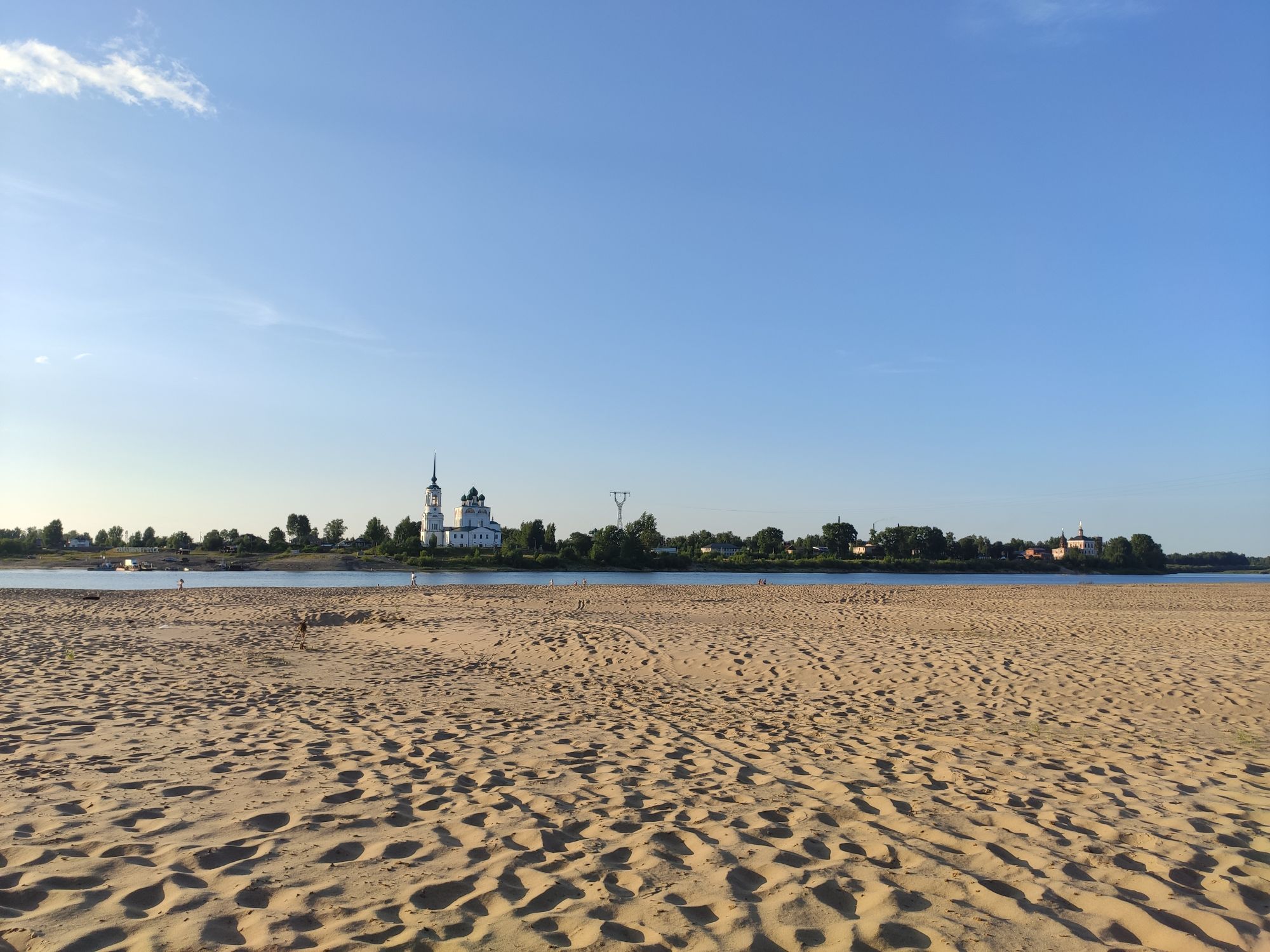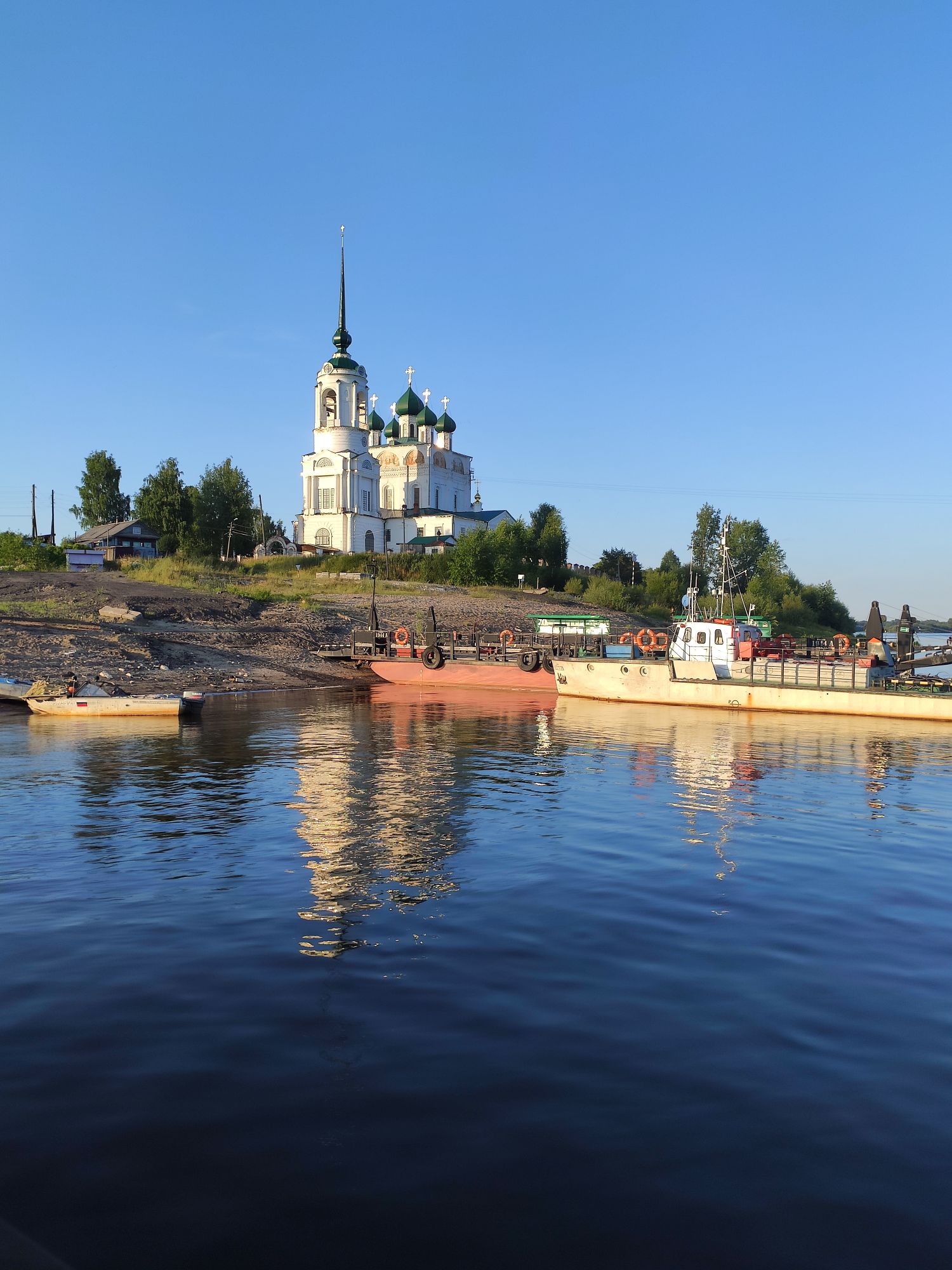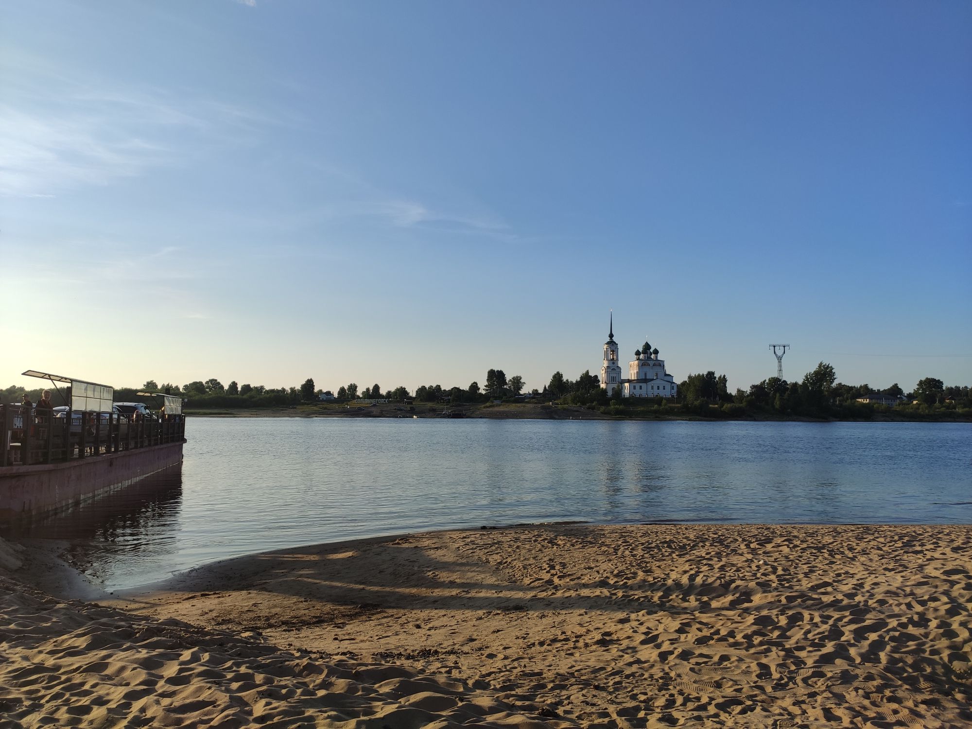 11 августа 2022 Поехали дальше)))) Паром в этом месте идёт очень долго, т.к. обплывает много песчаных островов. Мы плыли и наслаждались... рекой, ровным гулом мотора, редкими криками чаек и бесконечно красивым небом. Почти не разговаривали 40-50 минут... Для справки - паромов тут 2 - платный и бесплатный. Но ходят по 3 раза в день, если не ошибаюсь (расписания все гуглятся, но делать это надо заранее, т.к. связь есть далеко не везде). И для сравнения ледовая переправа в этом месте зимой))) Вжух и ты на месте. Хотя и не менее красиво. В Красноборске ночевали в гостинице над Пятерочкой. Заселились рано. Надеялись, что поедим в каком-нибудь кафе, но... Это северный туризм - фиг вам, а не кафе)))) Но нас спасла Пятёрочка. На пути к закрытой кафешке проходили мимо музея. И вот такой стенд про росписи перед музеем висит. Наглядно видно где и какие были. Покумекали немного, взяв туристическую брошюрку на ресепшене, и решили, что смотаемся в пару мест сегодня, чтобы завтра упилить подальше))))) Одно из этих мест - гора Шеломя или Шоломя - от слова шлем. Вид оттуда потрясающий! Говорят, что в районе этой горы Ермак Тимофеевич тренировал своё войско перед походом в Сибирь. Лето 2022 Посмотрите как дышит гора и лес после дождя! Январь 2016 Под горой стоит 2 Никольских церкви - деревянная 17 века (1642 г.) и каменная второй половины 19 века. Дорожка к ним такая прям хорошая... Глиняная... Под горку... После дождичка - самое то!))) А вот и церкви. Читала, что в районе горы было очень много населенных пунктов, на в 30-х годах 20 века их расселили. А сейчас образовалась какая-то инициативная группа, которая сплотилась вокруг идеи восстановления этих церквей. И даже есть те, кто строит дачи на месте, где жили их предки. И обратно в горку))) Еще один пункт подглядели в брошюре. В деревне Вотежица стоит памятный камень Самсону Ксенофонтовичу Суханову - каменотесу, гранитных дел мастеру. Оказалось, что он со своими артелями участвовал в строительстве большого числа знаковых мест Санкт-Петербурга + пьедестал памятника Минину и Пожарскому на Красной площади - тоже его рук дело. Вот статья из Википедии. Почитайте, интересно. Памятник очень ухожен. И чуток домиков рядом с памятником. Хотели на берег речки подъехать, но выхода к воде не было. Зато высокий берег подарил красивые виды. На этом наш очень насыщенный день подошёл к концу. Потом ещё был просмотр фильма, над которым мы ржали до слёз, но он останется за кадром)))) На Красноборск нам катастрофически не хватило времени. На самом деле там есть соляной курорт "Солониха", краеведческий музей, а ещё Дом-музей художника Александра Алексеевича Борисова. Он рисовал столь любимый мной север. Причем, Крайний север. У него очень интересная судьба. В 10 лет он сильно заболел. И родители решили, что, если выздоровеет, то отдадут его в монастырь на работы. Он выздоровел и был отправлен на Соловки. Там помогал монахам и учился иконописи. Рисование так его зацепило, что он продолжил рисовать и дома после возвращения. По счастливой случайности он в итоге попал на учебу к таким великим мастерам как Шишкин и Куинджи. Потом с Витте он путешествовал по Мурману. Фотографировал и рисовал. Дальше уже были его экспедиции на Новую Землю, где он в жесточайших условиях занимался нанесением на карту новых заливов и изучением рельефа, заодно рисуя в лютый мороз, когда замерзали краски. Привез о