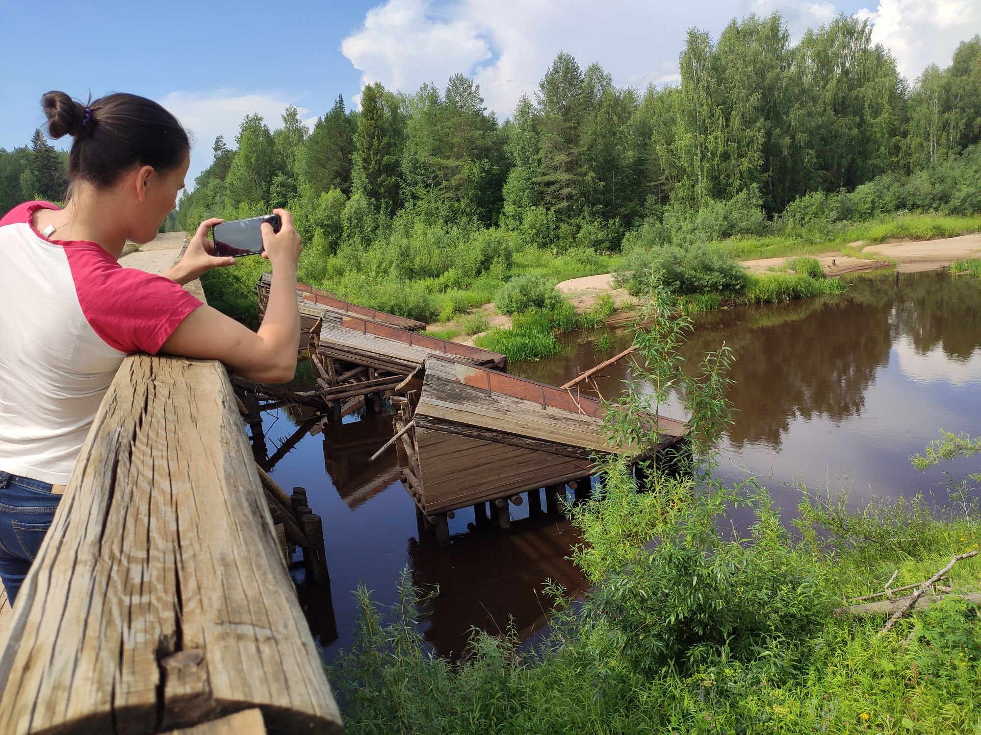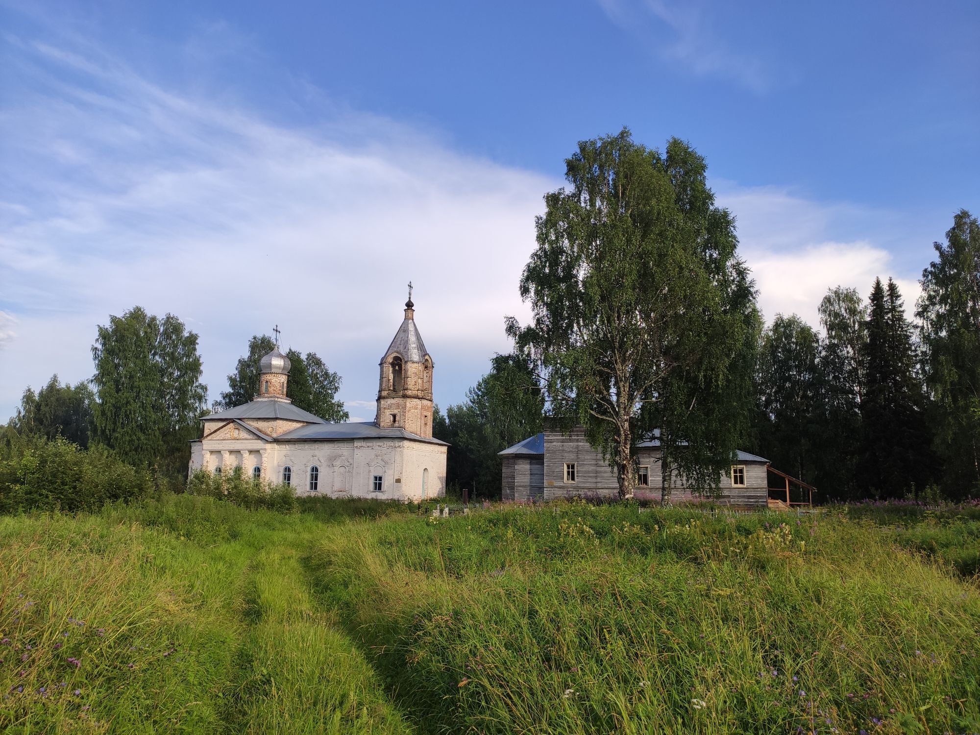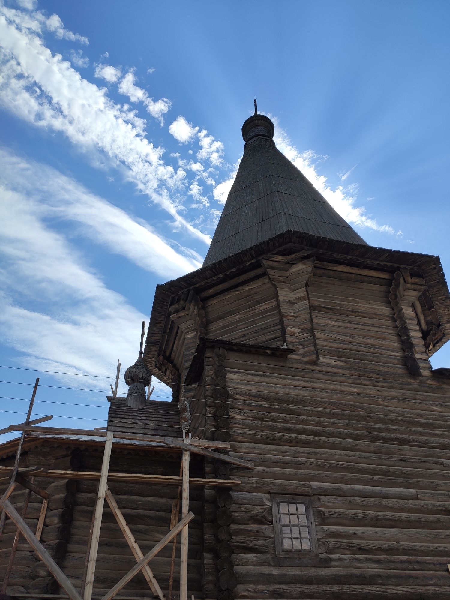 10 августа 2022 Продолжаю. 24 июня. Встали, позавтракали. За завтраком очень душевно пообщались с Екатериной. Решили ехать от Сольвычегодска до Верхней Уфтюги по той стороне реки. Вроде бы там нормальная должна быть дорога, по крайней мере, для нас))) Дорога оказалась очень красивой. Мы не отливали от окошек. А иногда просили остановить. Познакомили Асю с вереском. Живописная Уфтюга. И мост с быками-ледорезами через реку Лахому. А вот и Верхняя Уфтюга. Древнее село, в котором сохранилась старинная (1784 года постройки) деревянная церковь Дмитрия Солунского. До 2018 года самой высокой деревянной церковью была церковь в Кондопоге. Но в 2018 она сгорела (это действительно огромная утрата). После этого титул самой высокой деревянной церкви делят две - Дмитрия Солунского в Верхней Уфтюге и Вознесения Господня в Пияле. Обе по 45 метров. Рядом с деревянным сохранились остатки каменного храма. Добавила сюда фото января 2016 года. Цитата из Википедии: Цитата Церковь дважды перебиралась. Первый раз в 1912 году по чертежам, выполненным в 1900-е годы архитекторами Д. В. Милеевым и К. К. Романовым, при этом церковь поставили на кирпичный фундамент. В 1981—1988 годах церковь вновь перебиралась московским архитектором А. В. Поповым[3]. Реставрация церкви А. В. Поповым проводилась методом переборки. Первоначальные архитектурно-конструктивные элементы памятника, не потерявшие своей прочности, были сохранены, утраченные заменялись новыми деталями. В процессе реставрации А. В. Попов воссоздал оригинальный плотницкий инструмент — колунообразный топор, которым согласно исследованиям автора пользовались строители церкви И немного старинных фото: В 2016 в январе мы ехали к Верхней Уфтюге через Краснобоск через ледовую переправу. Не могу не поделиться фото: Когда мы подъехали, у храма сидели две девушки. Видно было, что они заняты какими-то строительными работами и присели недавно. Мы спросили разрешения попасть внутрь, т.к. в январе 2016 нам это сделать не удалось. Внутри остатки иконостаса, на двери старинный замок с огромными ключами, колокол и иконы. Несколько прям очень интересного письма - не видела такого. Мы спросили у девушки - есть ли тут у них музей какой-нибудь, где можно узнать побольше о селе и округе? Девушка нас внимательно осмотрела (на севере это в обязательном порядке происходит, как будто тебя оценивают - достоен ли ты) и сказала, что если нам интересно, то она сейчас позвонит и узнает - могут ли нам экскурсию провести. Мы заверили, что очень интересно. Девушка дозвониться не смогла. Спросила - на машине ли мы? Получив утвердительный ответ, сказала - сейчас я выеду с той стороны церкви, езжайте за мной. И лихо выехала на мотоцикле. Мы только успели в машину прыгнуть)))) Нас отвезли к Валентине Владимировне, которая провела нам чудеснейшую экскурсию. Но об этом в следующем сообщении. Иногда вот такая вот случайная встреча с какой-то девушкой, занимающейся какими-то строительными работами в Верхней Уфтюге (многие ли слышали про это место?) очень цепляют. Оказалось, что зовут девушку Дарья. Она закончила школу с золотой медалью, потом закончила ВУЗ и вернулась. И восстанавливает церковь. Потому что это важно. Потому что это - Родина! А ещё - эта церковь восстанавливается волонтёрами центра Вереница. И Дарья - одна из них. А ещё - Веренице можно помочь. Можно деньгами тут - https://vk.com/