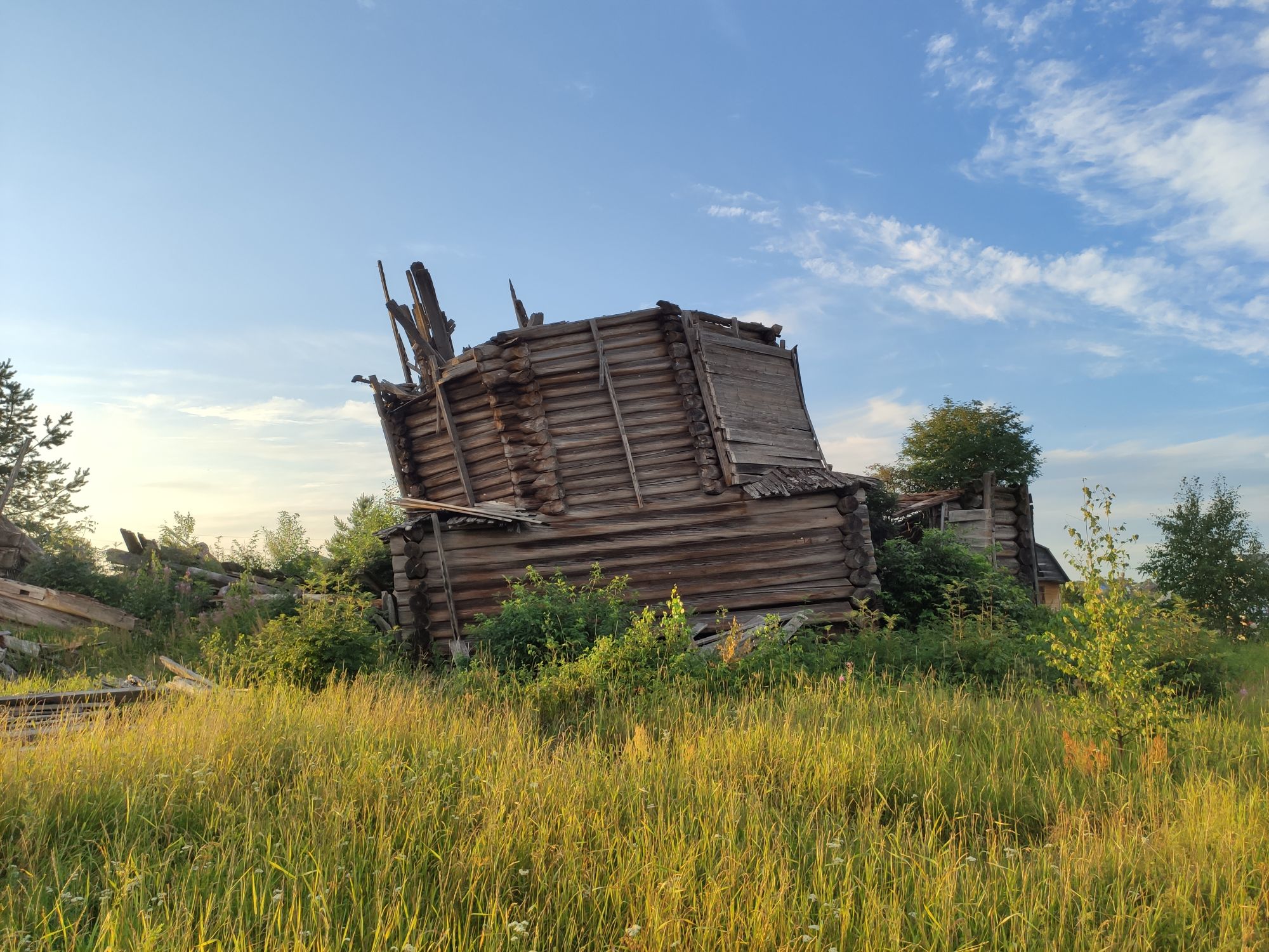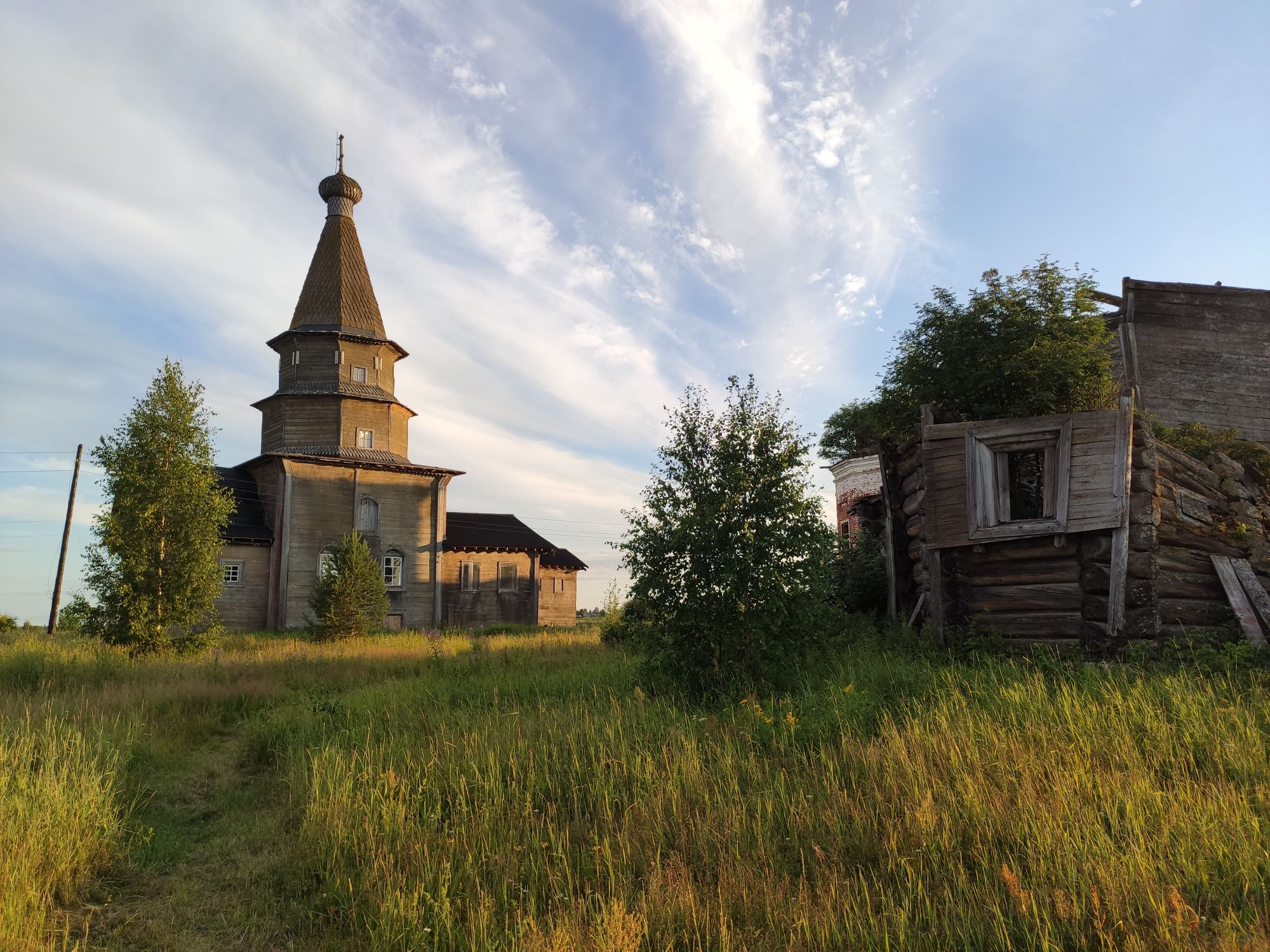 13 августа 2022 Едем дальше. По точкам у меня в Масловке почти на трассе стоит метка... Там 2 деревянные церкви - Власьевская и Климентовская. В январе 2016 они выглядели ужасно. Сейчас их законсервировали волонтеры Общего дела, о котором я выше писала - https://obsheedelo.ru/objects/arkhangelskaya-oblast-khram-sv-klimenta-papy-rimskogo-v-d-tulgas По ссылке информация о храме и что сделано проектом Общее дело. Маленькое отступление. Тут на севере очень интересно всё с названиями. Есть название деревень (например, Масловка), а есть название куста деревень (например, Тулгас). И тебе могут сказать, что церкви в Тулгасе, а Яндекс-карты тебе только реку такую найдут))) И для сравнения 2 фото - январь 2016 и июль 2022. И "био" остановки. Очень красивые места! Дальше храм в Зачачье. Он тоже просто стоял точкой на карте. Оказалось, что его консервацией занимается проект Вереница. Это место подарило нам встречу с "дяденькой". Он рассказал о том, что он волонтёр, приехал сюда помогать во славу Божью. Рассказал как приехали семинаристы и стали рассказывать, что в крупных городах новые храмы строят... Говорят, что их спросили - а чего не едете в глубинку восстанавливать? Тут намолено, места предками выбраны... Они взгляды потупили и ничего не ответили. Так и живём. А ещё "дяденька" рассказал нам про храм в Меландово. Что сейчас волонтеры разобрали высокий шатер, т.к. он был близок к обрушению, и сложили его в церкви, а кровлю просто закрыли материалом. Надеятся, что теперь это всё доживёт до реставрации. Фото Зачачья у меня немного, ибо я шла уже с трудом. Вот старое фото этих храмов И домик из Зачачья с интересными полукруглыми маленькими окошками. Там таких домиков много. По пути в Меландово я на болоте углядела морошку. Прям из окна машины. Не спрашивайте как)))) Видите ягодку по центру? Вот её и увидела) А у Аси была мечта - посмотреть на морошку в естественной среде, так сказать. Одела она сапожки и полезла. Я б и без сапожник полезла, но не в этот раз))) Фото морошки вблизи у Аси в теме))) И Меландово. Сначала мы подъехали к каменному храму с интересными главками, покрытыми деревянными лемехами. Я из машины не выходила))) А потом поехал посмотреть на деревянный храм. Как нам рассказал "дяденька" (и я потом читала) эту церковь уже однажды переносили с одного места на другое, т.к. берега на севере такие... Их подмывает на раз-два. Церковь стоит в очень красивом месте, а на заднем плане видны дома-великаны. А дальше мы пилили довольные до Емецка. Со слов Женьки там была гостиница, а ехать дальше сил уже не было. В общем, приезжаем мы в место, где обозначена гостиница, а там шиномонтаж, автозапчасти, стоянка дальнобоев и никаких упоминаний о гостинице. При этом на Яндекс-картах написано, что гостиница до 20:00, что странно. Мы уже усталые, ещё я тут со своей ногой. Женька, увидев, что про гостиницу ничего не написано, начал подпсиховывать))) Сказал, что никуда не пойдет. Поворачиваюсь к Анастасии и говорю - спасай! Можешь сходить в магазин и спросить? Друг в беде не бросит, пошла)))) Вернулась и говорит, что надо в Автозапчастях спрашивать. Опять поехали к месту, где гостиница. Женька удаляется в шиномонтаж. Там его посылают в автозапчати - это отдельный магазин)))) Вышел и пересказал диалог: - Здравствуйте! Где-то у вас тут гостиница. - Сколько вас? - Трое. - По 700 рублей. 2100. И пробивает чек. Говорит - Пойдёмте. Показала номер, где, чего. - Сейчас я в восемь у
