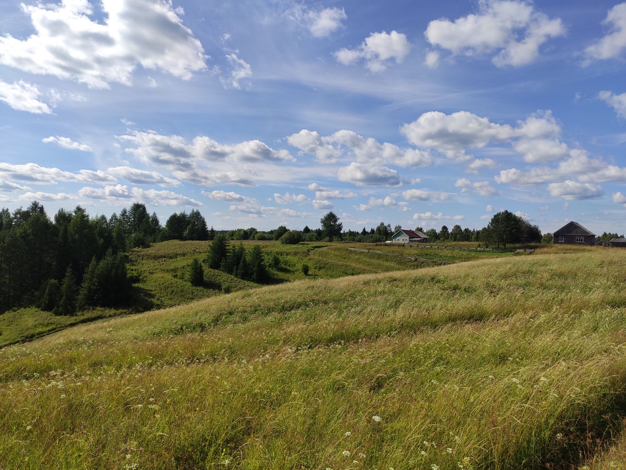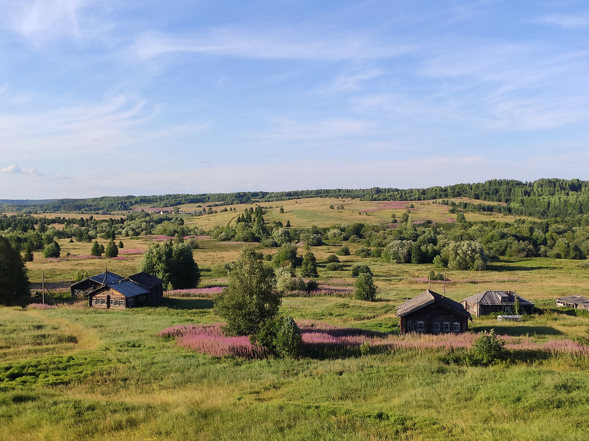 23 августа 2022 Кельчемгора Не совру, если скажу, что самое яркое впечатление от Мезени в 2016 осталось от посещения Кельчемгоры. Скрытый текст КЕЛЬЧЕМГОРА Выше Юромы по правому берегу реки километров на 6 растянулась Кельчемгора – группа деревень, состоящая из ШИЛЯВЫ, ЗАОЗЕРЬЯ, Мокшевы, Заручья и КОЛЬШИНА. Каждая из них интересна по-своему. Колышин как бы отодвинулся от берега, его дома окружили небольшую покрытую зелёным травяным ковром площадь с обетным крестом посередине. Совсем рядом, в Заручье всё иначе. Дома тут стоят «на городской манер» – фасадами друг к другу, создавая, таким образом, улицу. Многие из них, несмотря на то, что рублены давно – в 70-80-е гг. прошлого века, сохранили на кровлях прекрасные коньки и сложные, затейливой резьбы кисти-полотенца под ними. Среди высоких и ладных домов Заручья неожиданной выглядит изба на невысоком подклете всего с тремя окнами, к ней примыкает другая и вовсе без подклета. Каждая крыта на один скат. От этого получается, что одна стена сруба на 3 бревна выше другой. Такая кровля встречается на банях, овинах, амбарах, и очень редко на домах. И уж если на домах, то бедных, для которых и материала было немного, да и рубились они кое-как. Мокшева, следующая за Заручьем деревня, расположилась в широком овраге, по которому проходит дорога. С одной стороны дома повернулись к ней боком, с другой фасадами, упираясь озадками в склон холма. В этом порядке каждая изба выступает несколько вперед по сравнению с предыдущей. Такой разворот объясняется желанием поставить дом окнами к югу, чтобы соседний не создавал тени. Входя в деревню, сразу видишь всю перспективу домов. Могучие, стремительные коньки, повторяясь на каждой крыше, усиливают чёткий ритм порядка. Остается только поражаться, как в таком, казалось бы, неудобном месте – в овраге, по дну которого вдобавок ещё и ручей протекает, удалось так естественно вписать, тут даже не скажешь разместить, именно вписать около двух десятков домов! Тропинка из Мокшевы в Заозерье идёт через высокий угор. С него открывается величественная панорама. Слева далеко видна Мезень с отмелями, синеватые леса за ней, позади, на холме – Заручей, внизу, под самой горой прячется Мокшева, отсюда заметен только строгий порядок её крыш, а правее раскинулась по берегу Шелява и у горизонта в погожий день можно заметить Юрому. Тут, на открытом холме, стоит высоченный столб – остатки креста. Удивительное место! Его тёмный силуэт был виден издалека. Словно символ того, что эти места обжиты человеком. Теперь, без поперечных брусов крест особенно напоминает древнего идола. Вероятно, во времена языческие так вот и ставили идолов, чтобы те могли видеть всё, что делается вокруг. Для язычников божеством была сама природа, а где как не здесь захватывает дух от её величия! На этой горке, на виду у всей Кельчемгоры, мезенские девушки в красных, синих, розовых сарафанах под Иванов день рвали цветы, искали «призорные травы», водили хороводы. Архитектура Кельчемгоры говорит о высоком плотницком мастерстве. Коньки, курицы, яркие травы и цветы росписи, затейливая резьба, кресты, покрытые прихотливой вязью, – всё это органически связывалось с таинственной, страшной, но в то же время и доброй природой. Из книги "По берегам Пинеги и Мезени" Автор: М.И. Мильчик Выше скрыла текст Мильчика с описанием этих мест. Там в