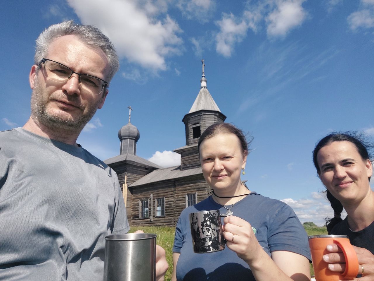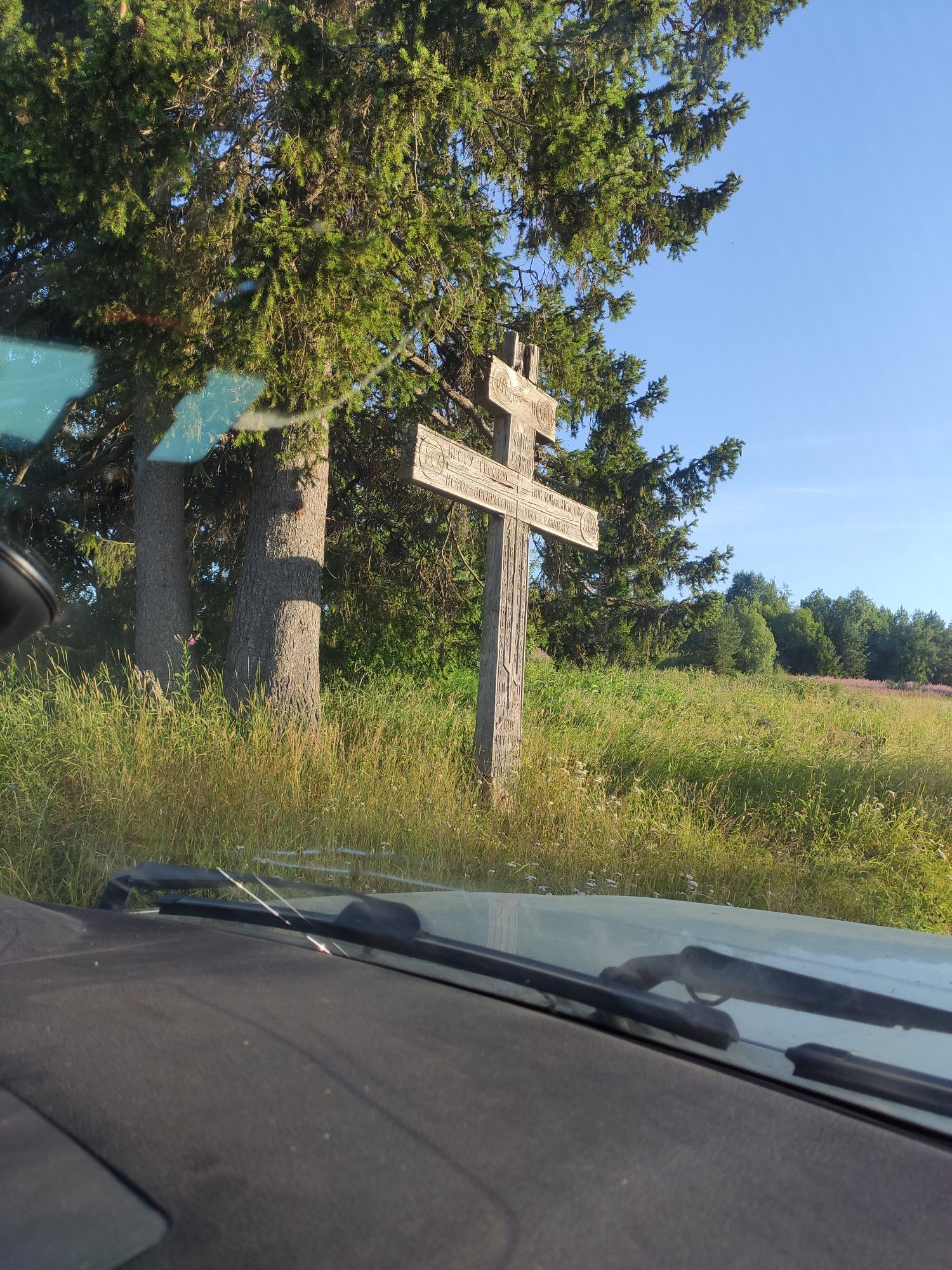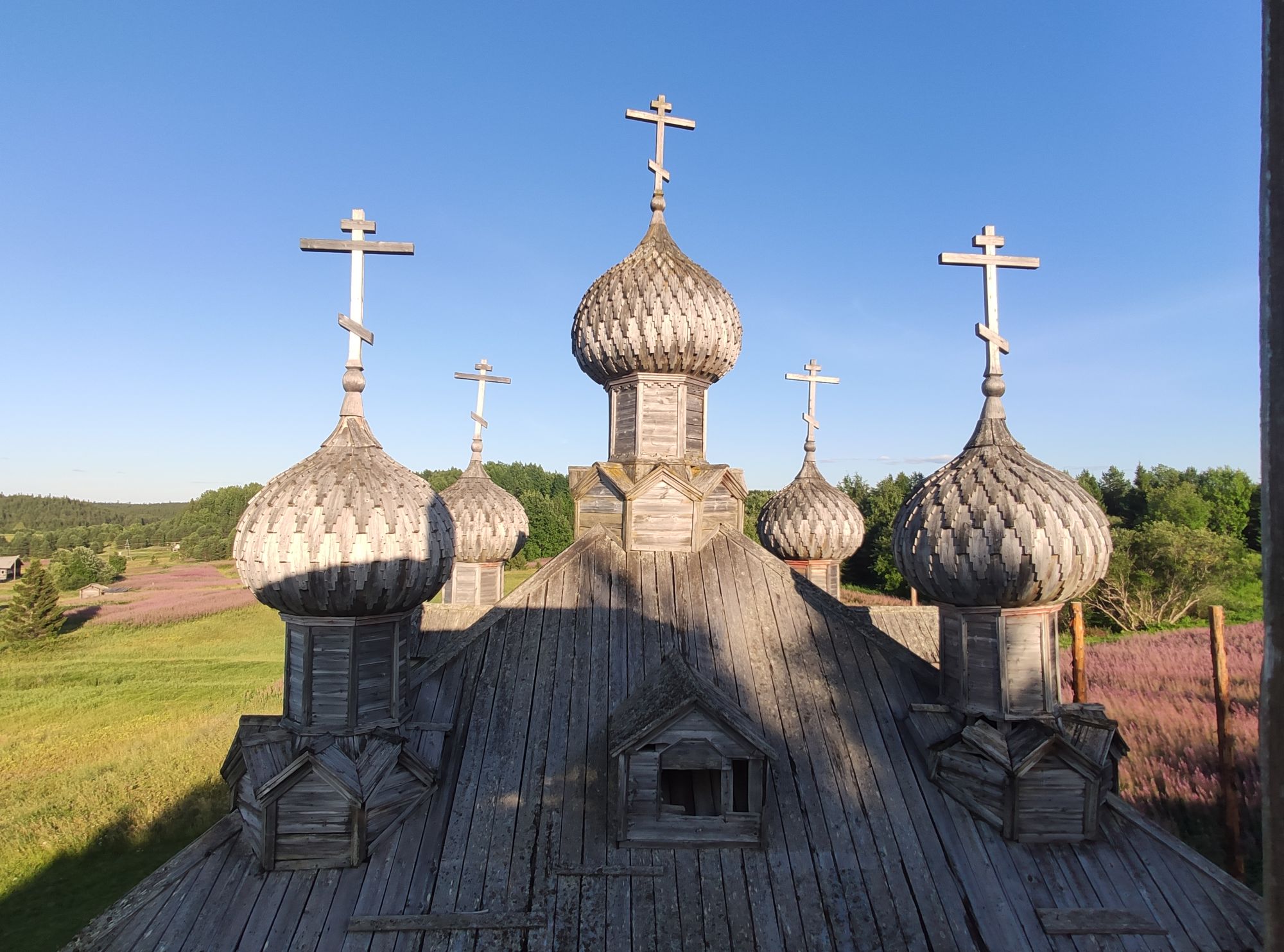 23 августа 2022 Заозерье. Это тоже деревня входящая в куст деревень Кельчемгора. В 2016 мы ехали по книге Мильчика "От Пинеги до Мезени". Там как-то вскользь было упомянуто про церковь, построенную в традициях каменной архитектуры и не сильно достойной внимания.... И про несколько резных обетных крестов. И вот едем мы из Мокшевы через горку. Солнце клонится к закату. Причем весь день с переменным успехом шел дождь, а тут солнце играет с облаками в прятки. И вот переваливаем мы через горку и теряем дар речи. В прямом смысле слова. Женька даже притормозил. Не помню кто, но, вроде, Леша попросил остановить со словами - такое надо пешком пройти. Фото сентября 2016. Дошли до церквушки, дверь не заперта. На стенах вырезаны инициалы и даты... С одной стороны вандализм, а с другой - 45-й, 46-й, 50-й год... Это уже история. В советское время тут был кинотеатр. И на колокольню лестница открыта... Долго любовались... Потом ещё по деревне немного прошлись. Посмотрели здание школы и обетные кресты. И ещё полюбовались на красавицу-церковь по пути к машине. Фото все без фильтров. А лето 2022 подарило нам розовое иванчайное Заозерье. Седое дерево и иван-чай... Мы не могли оторваться... Заезжали с другой стороны, поэтому сначала полюбовались обетными крестами. А потом пошли к церкви... Пока любовались ей внутри, подошёл дяденька. Представился Алексеем Николаевичем. Разговорились. Поднялся с нами на колокольню. А потом позвал нас пить чай. Тут пригодилась вторая половина торта Маша)))) Много рассказал про себя - как служил в речном флоте. Про сыновей, которые пошли по стопам отца. Про то, что дочка у него приезжает часто и увлекается краеведением. Советовал нам посетить Екатериновку с крестом. Мы попытались на карте найти и не смогли. Говорим - что-то не ищет Екатериновку. А Алексей - так на карте она как Усть-Немнюга! Мы - ??? Он - А не знаю, мы как Екатериновку ее знаем. Рассказал про советскую бытность, что народу было много, а сейчас тут постоянно живут двое - он и сосед. Сосед пьющий, а он сам раньше пил, а потом в один день как отрезало и больше вообще не пьет. А, когда пришло время прощаться, чуть не оставил себе нашего татарчонка Но мы не отдали))) Эмоции били через край. В Шиляве полюбовались на наклеенных на фронтон львов, сфоткала их уже на ходу))) И там же посмотрели обетный крест с Иисусом. Правда, потихоньку разрушающийся. В 2016 мы к нему тоже заезжали. Осталось чуток. Но позже отдельным сообщением))) Цыпа, Irm, Хозяйка смешных зверей и 24 других сказали спасибо Поделиться сообщением Ссылка на сообщение