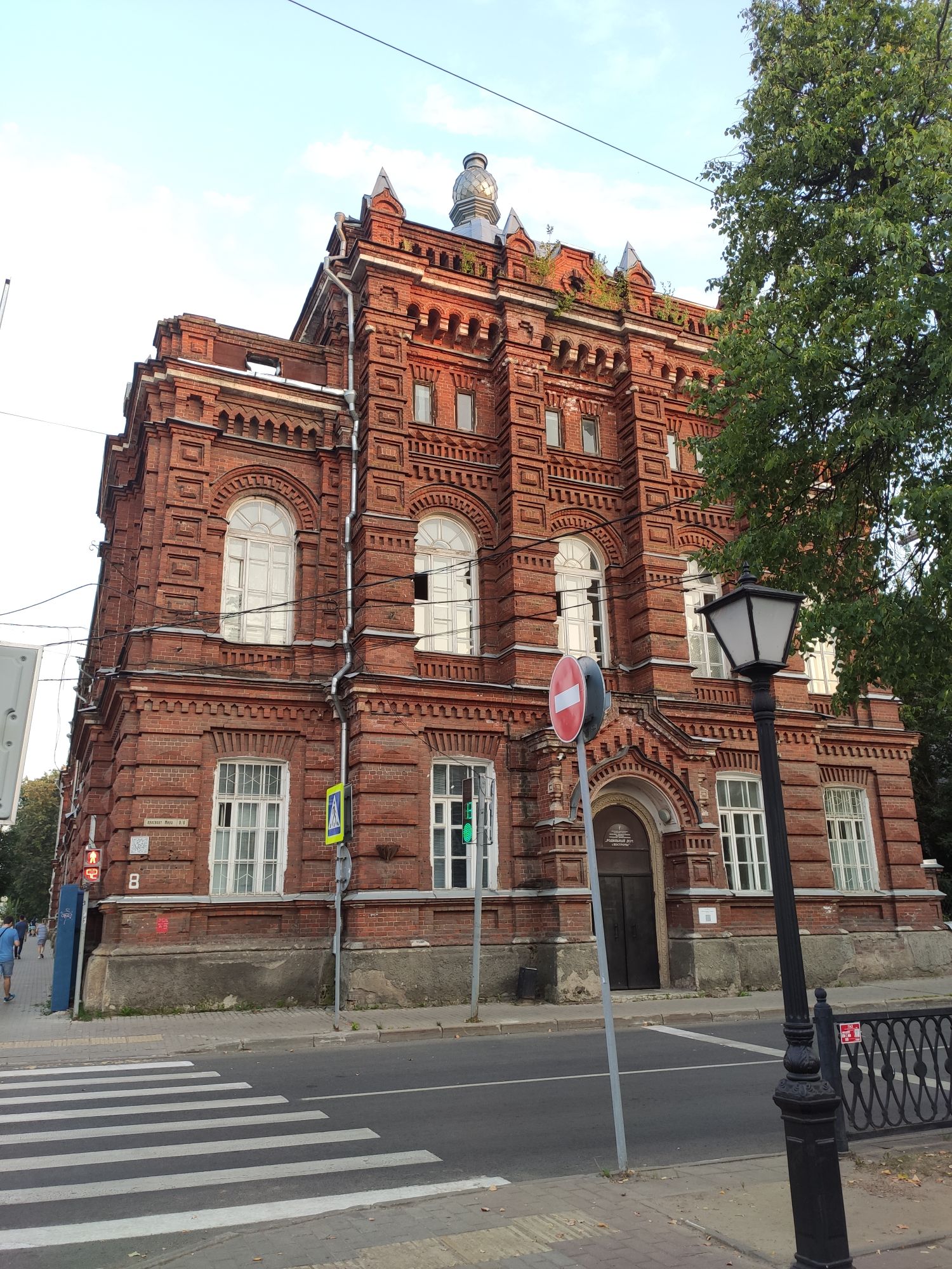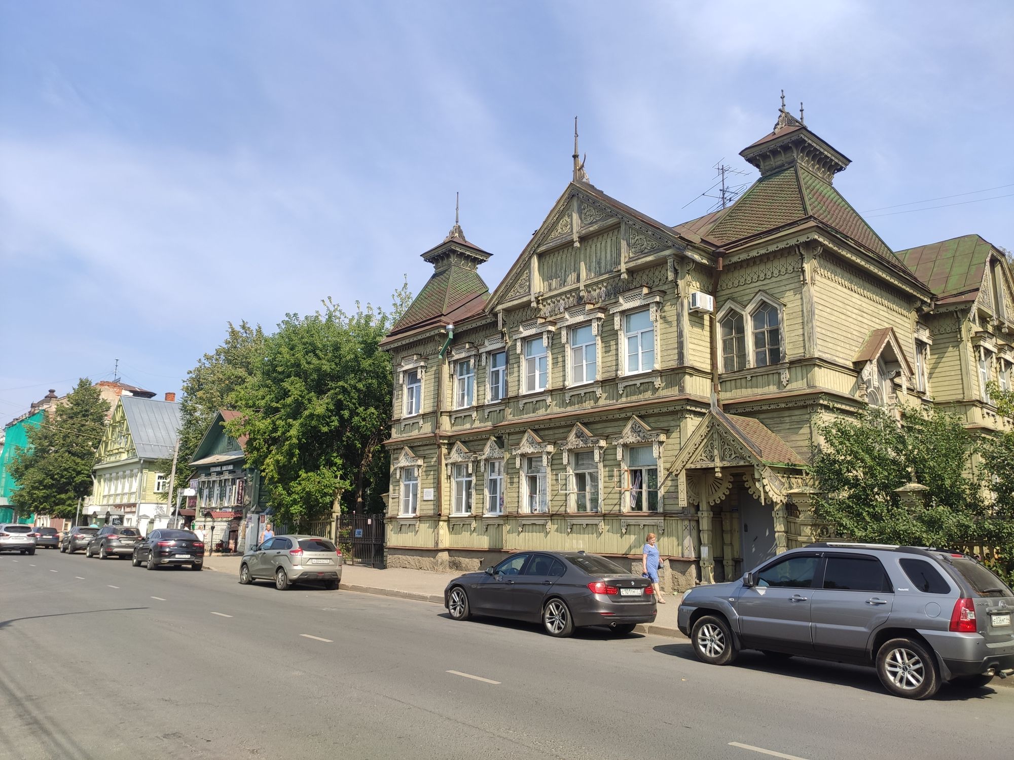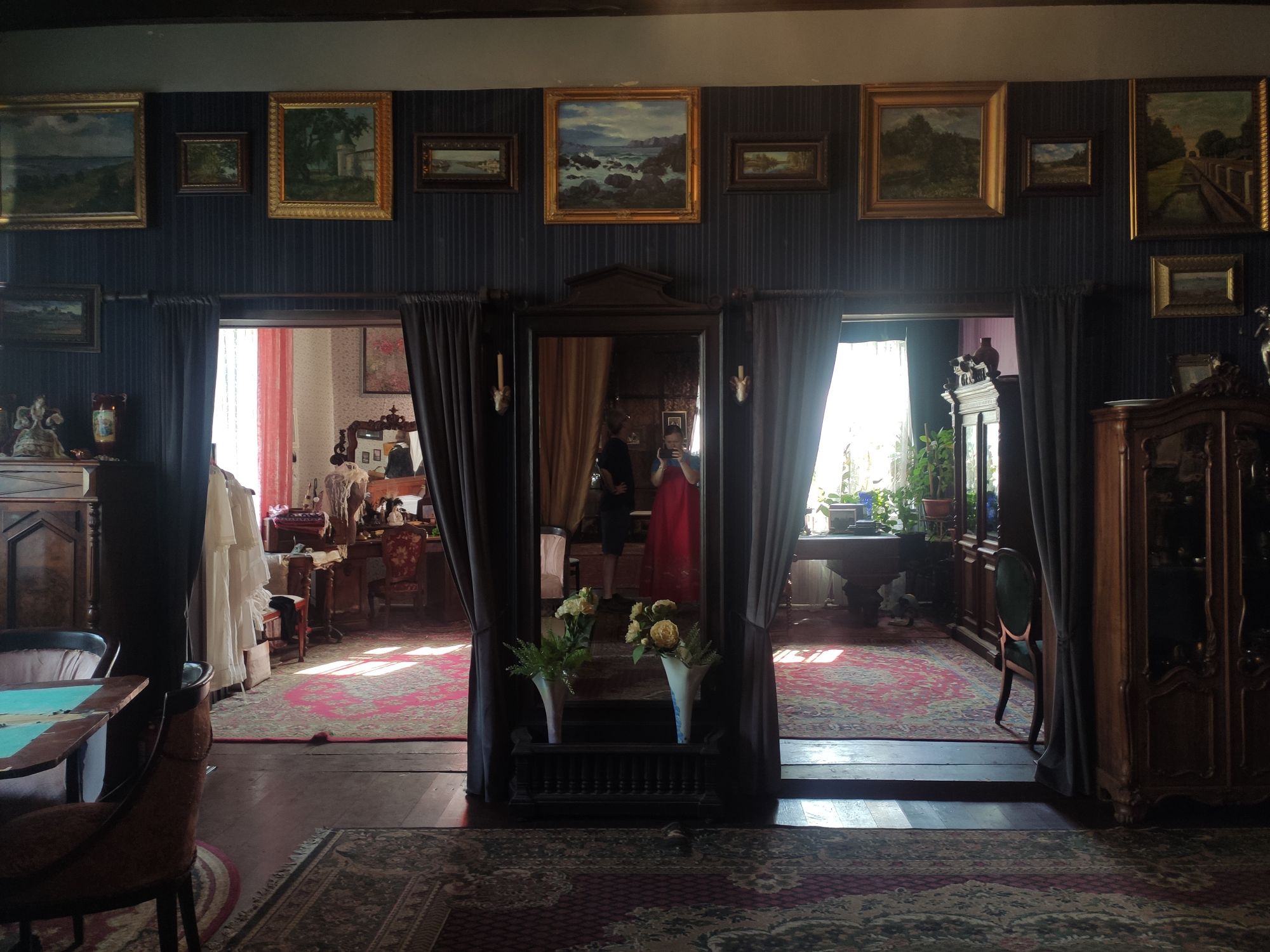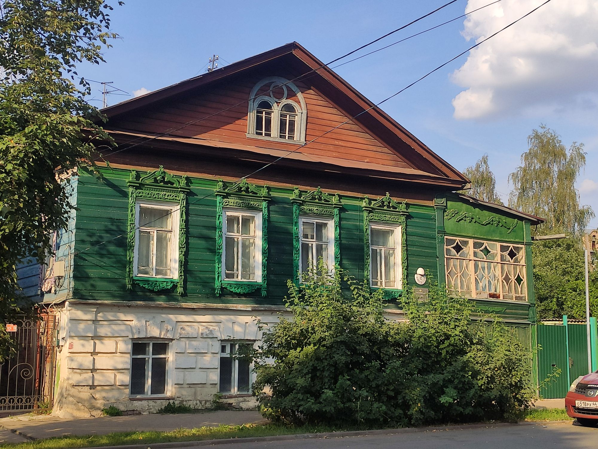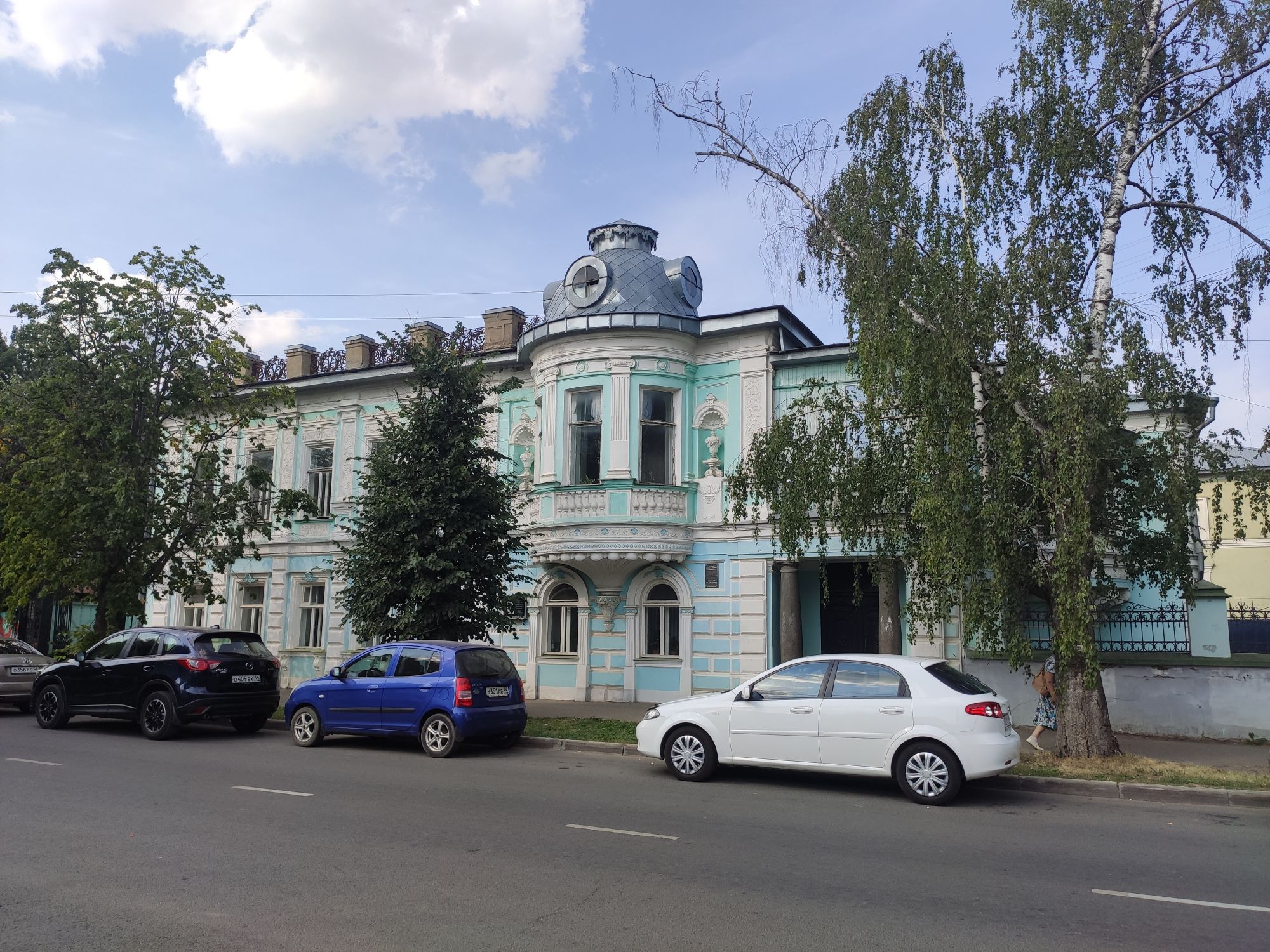 5 сентября 2022 День второй. Прогноз ваще не радовал... Опять 32... Но утро мы начали с чашечки чудесного кофе в полюбившейся с первого раза кофейне. Заодно полюбовались ещё раз на церковь в торговых рядах. Почему-то она мне очень полюбилась, хотя внутрь мы даже не подумали зайти. Она такая не... очевидная и при этом её видно издалека. Пока пили кофе, решали куда сходить. Музеев очень хотелось (все же помнят, что я их люблю?))) И вот выбор пал на Дом городского головы. В основном, конечно, по причине близости к дому. Плюс - он находится в особнячке в стиле модерн. Ну и решающее - это то, что мы спросили у знакомого, который был в Костроме, но у нас разное отношение к музеям - куда сходить? А он много чего перечислил, а вот про этот музей написал - не тратьте время.))) Вот это окошко на чердаке моё внимание привлекло ещё вчера. Музей частный, поэтому перед посещением, конечно, лучше позвонить. Но нам было не принципиально попасть, поэтому позвонили "на удачу". И... дверь - таки открылась)) Нас присоединили к экскурсии, которую проводили другой паре. Тут в каждой комнате свой рассказ, не особо связанный с предыдущим, поэтому мы послушали сначала вторую половину экскурсии, а потом первую. Ведёт дяденька немного своеобразно, но мы быстро под него подстроились. А после ухода той пары, он ещё немного поменял стиль изложения))) ЭТот музей - это не Дом-музей, а скорее как склад кучи интереснейших вещей, разобранных по темам. Я такое до этого видела в шикарном техническом музее в Нижнем. Хозяйка музея - истовый коллекционер. Добывает разные интересные предметы того времени - мебель, посуду, картины, бытовые вещи, столовые приборы. Всё это поселяется в музее. Но не на витринах, а как бы в быту. И почти всё можно потрогать, а ещё тебе про всё расскажут. И это невероятно круто!) Вот, например, тарелка с двойным дном и носиком - вниз наливался кипяток, чтобы мясо сверху не остывало. Чашечки, тарелочки с клеймами и надписями. Очень интересно сделаны потолки. Люстры, естественно, старинные. Очень красивые шкафы. По всему музею висят картины в технике "пуантилизм" местного художника. Убей - не помню фамилию. У него был дефект зрения, поэтому картины писал вот так. Экскурсовод посмеялся, что, когда с усталости развесили всю коллекцию, а потом с утра на неё посмотрели, оказалось, что часть вверх ногами висит))) В столовой нам очень много всяких интересных предметов показали. Например, пельменница. Мы вот супницу знали, но, оказывается, пельменница должна быть с дырками на крышке, чтоб пельмени не слиплись. Икорница - тут вверх клали икру, а вниз - лёд. Вилка для колбасы, у которой есть механизм, чтобы наколотую колбасу "уронить" себе в тарелку одним нажатием кнопочки. Соль - предмет дорогой. Поэтому, для гостей ее не ставили. Солоночка была малюсенькая с малюсенькой ложечкой для хозяина, а для гостей был набор специй с ручкой и назывался он "прибор". Прказывали очень много всего, но я самое интересное и необычное сфоткала. На стене висят три совсем маленькие картины с милыми девушками. Но только приблизившись, видишь, что на картину наклеен локон волос. Говорят, что одно время было модно написать портрет и приклеить туда локон этой девушки. Картина, на которой изображён дом, в котором находится музей. Сейчас перед музеем липы, поэтому дом и не видно, по сути. А стоит этот дом на фундаменте, оставшемся от 