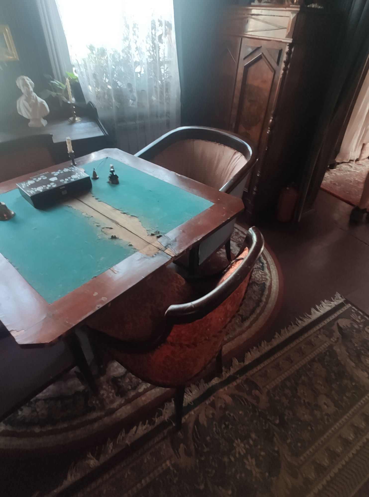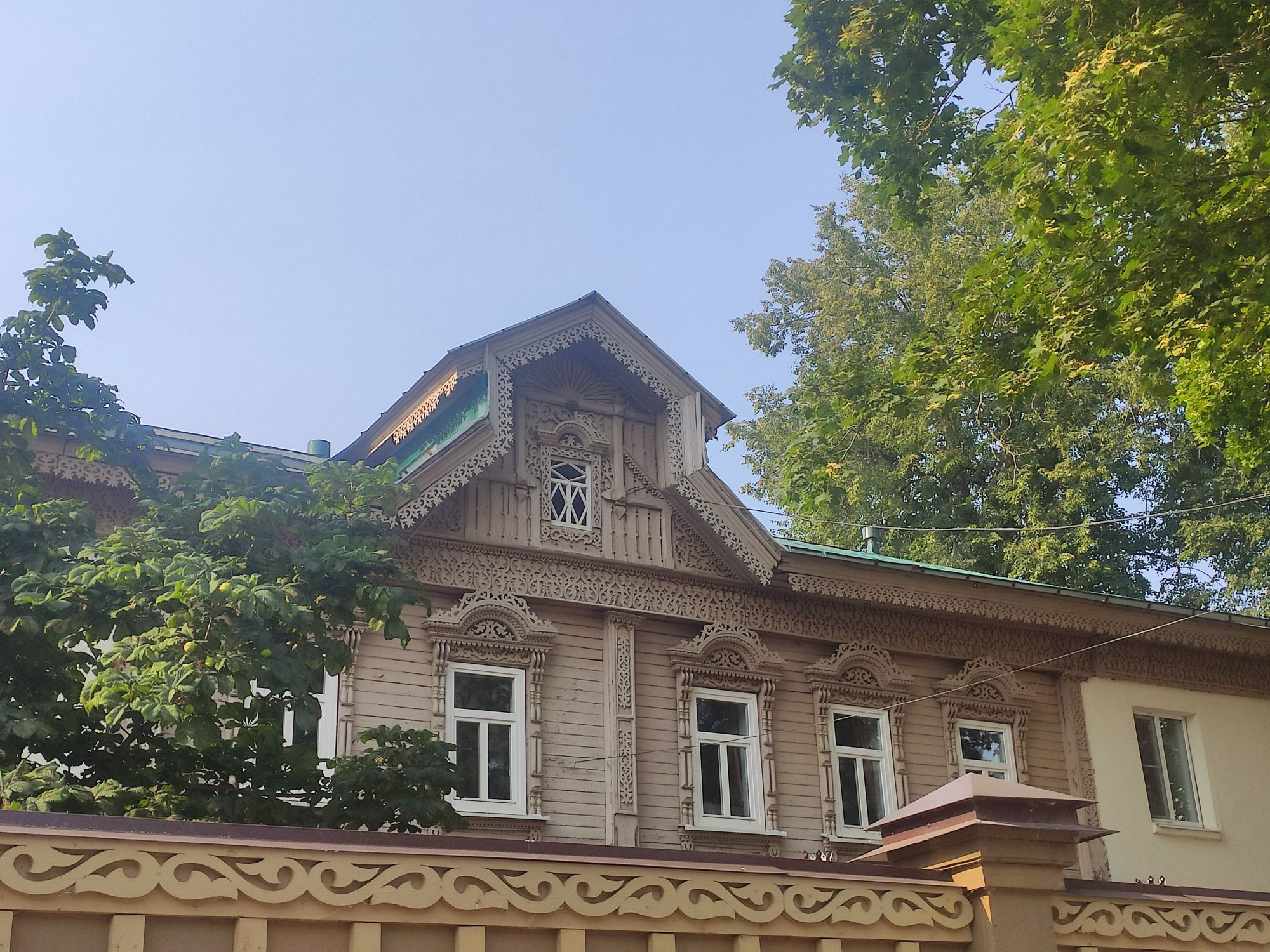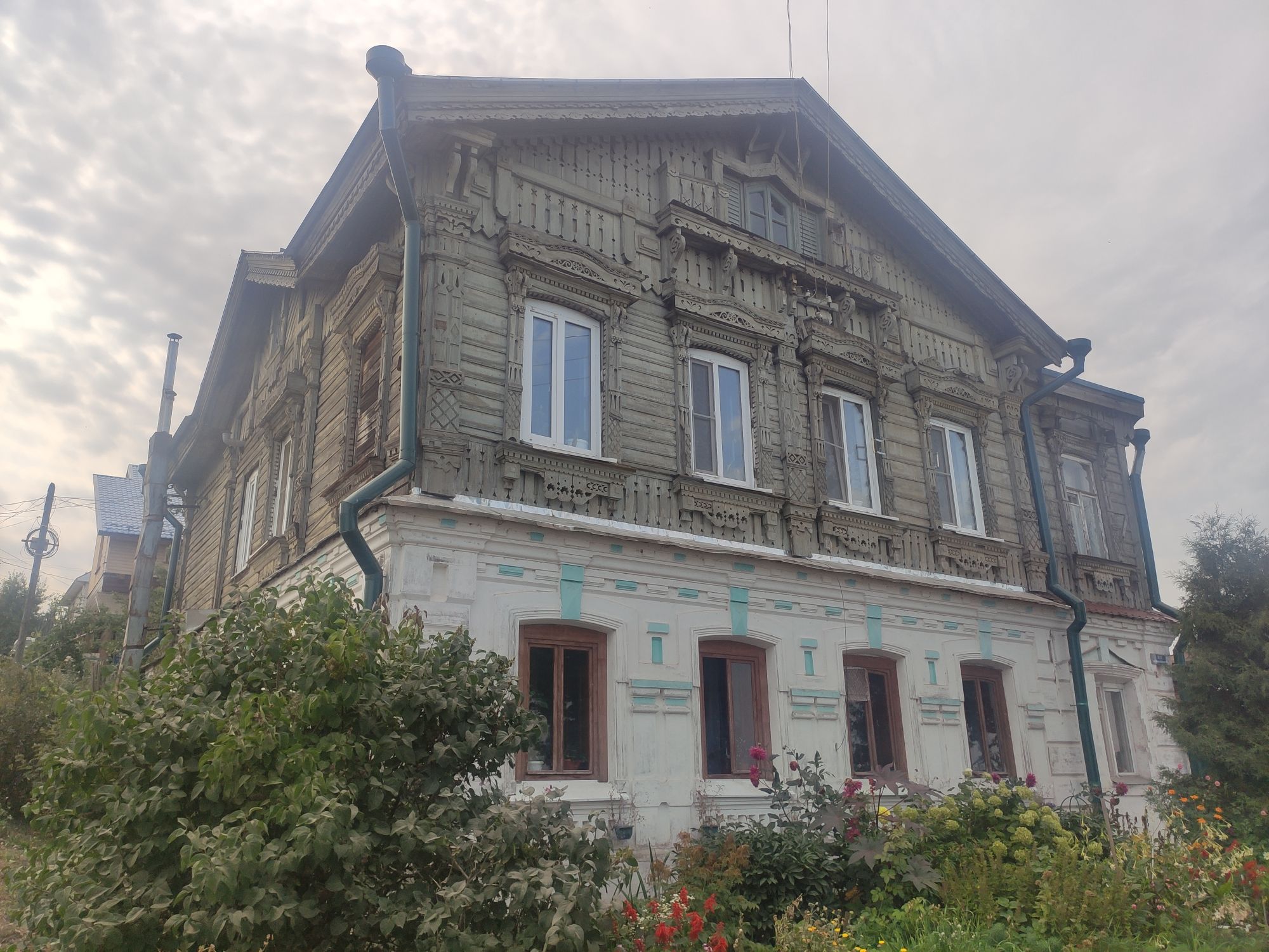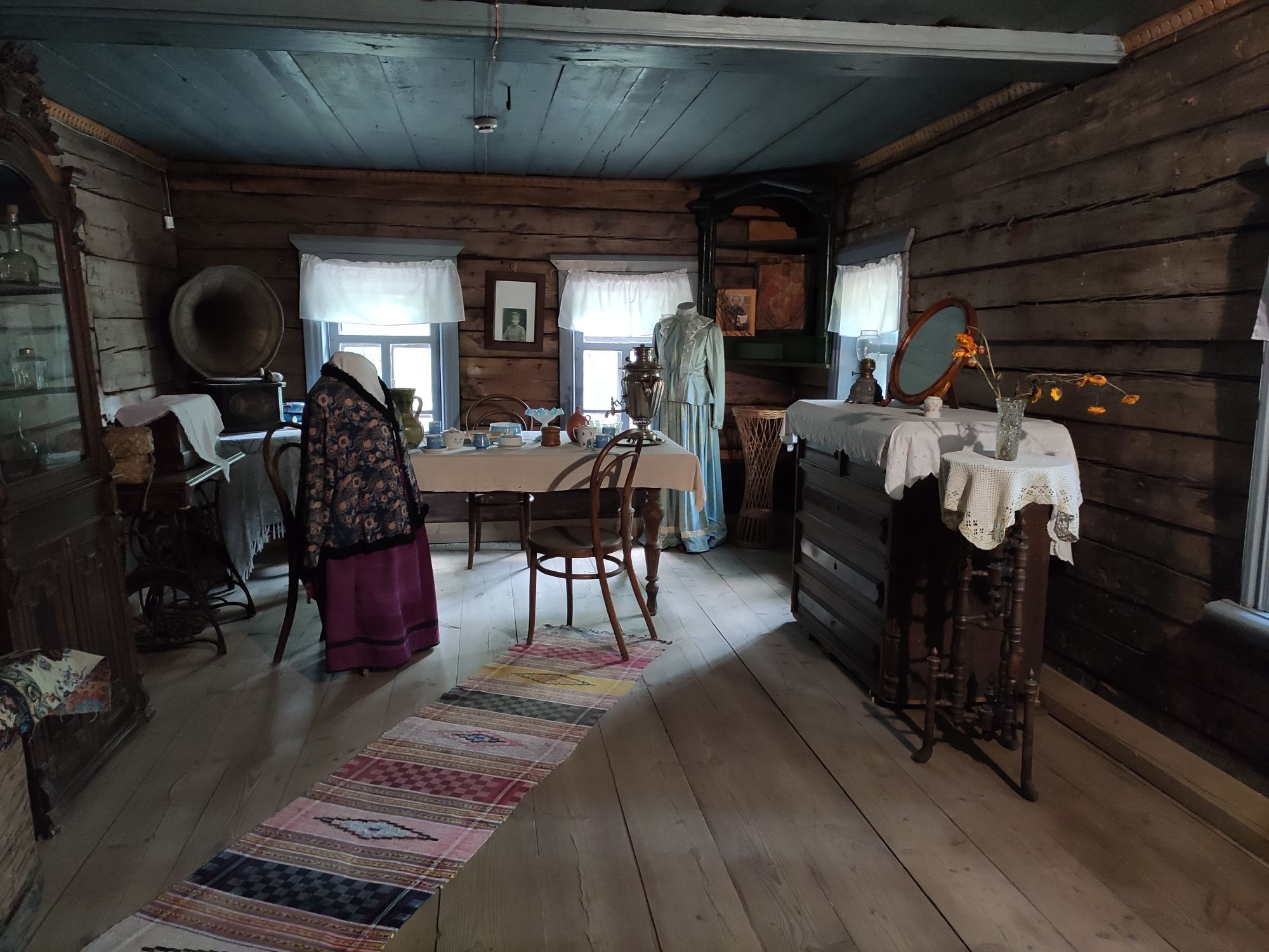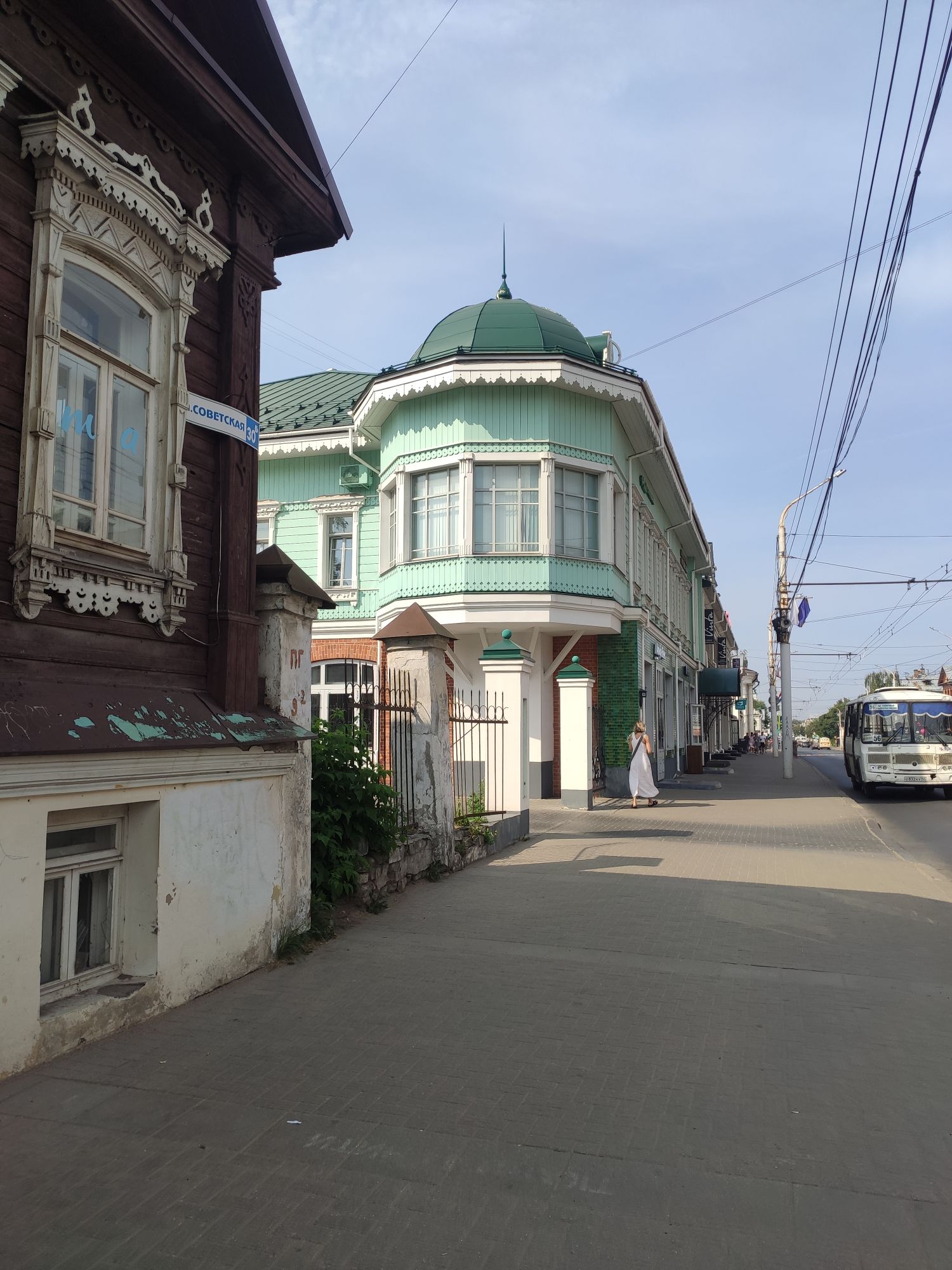 5 сентября 2022 День второй. Прогноз ваще не радовал... Опять 32... Но утро мы начали с чашечки чудесного кофе в полюбившейся с первого раза кофейне. Заодно полюбовались ещё раз на церковь в торговых рядах. Почему-то она мне очень полюбилась, хотя внутрь мы даже не подумали зайти. Она такая не... очевидная и при этом её видно издалека. Пока пили кофе, решали куда сходить. Музеев очень хотелось (все же помнят, что я их люблю?))) И вот выбор пал на Дом городского головы. В основном, конечно, по причине близости к дому. Плюс - он находится в особнячке в стиле модерн. Ну и решающее - это то, что мы спросили у знакомого, который был в Костроме, но у нас разное отношение к музеям - куда сходить? А он много чего перечислил, а вот про этот музей написал - не тратьте время.))) Вот это окошко на чердаке моё внимание привлекло ещё вчера. Музей частный, поэтому перед посещением, конечно, лучше позвонить. Но нам было не принципиально попасть, поэтому позвонили "на удачу". И... дверь - таки открылась)) Нас присоединили к экскурсии, которую проводили другой паре. Тут в каждой комнате свой рассказ, не особо связанный с предыдущим, поэтому мы послушали сначала вторую половину экскурсии, а потом первую. Ведёт дяденька немного своеобразно, но мы быстро под него подстроились. А после ухода той пары, он ещё немного поменял стиль изложения))) ЭТот музей - это не Дом-музей, а скорее как склад кучи интереснейших вещей, разобранных по темам. Я такое до этого видела в шикарном техническом музее в Нижнем. Хозяйка музея - истовый коллекционер. Добывает разные интересные предметы того времени - мебель, посуду, картины, бытовые вещи, столовые приборы. Всё это поселяется в музее. Но не на витринах, а как бы в быту. И почти всё можно потрогать, а ещё тебе про всё расскажут. И это невероятно круто!) Вот, например, тарелка с двойным дном и носиком - вниз наливался кипяток, чтобы мясо сверху не остывало. Чашечки, тарелочки с клеймами и надписями. Очень интересно сделаны потолки. Люстры, естественно, старинные. Очень красивые шкафы. По всему музею висят картины в технике "пуантилизм" местного художника. Убей - не помню фамилию. У него был дефект зрения, поэтому картины писал вот так. Экскурсовод посмеялся, что, когда с усталости развесили всю коллекцию, а потом с утра на неё посмотрели, оказалось, что часть вверх ногами висит))) В столовой нам очень много всяких интересных предметов показали. Например, пельменница. Мы вот супницу знали, но, оказывается, пельменница должна быть с дырками на крышке, чтоб пельмени не слиплись. Икорница - тут вверх клали икру, а вниз - лёд. Вилка для колбасы, у которой есть механизм, чтобы наколотую колбасу "уронить" себе в тарелку одним нажатием кнопочки. Соль - предмет дорогой. Поэтому, для гостей ее не ставили. Солоночка была малюсенькая с малюсенькой ложечкой для хозяина, а для гостей был набор специй с ручкой и назывался он "прибор". Прказывали очень много всего, но я самое интересное и необычное сфоткала. На стене висят три совсем маленькие картины с милыми девушками. Но только приблизившись, видишь, что на картину наклеен локон волос. Говорят, что одно время было модно написать портрет и приклеить туда локон этой девушки. Картина, на которой изображён дом, в котором находится музей. Сейчас перед музеем липы, поэтому дом и не видно, по сути. А стоит этот дом на фундаменте, оставшемся от 