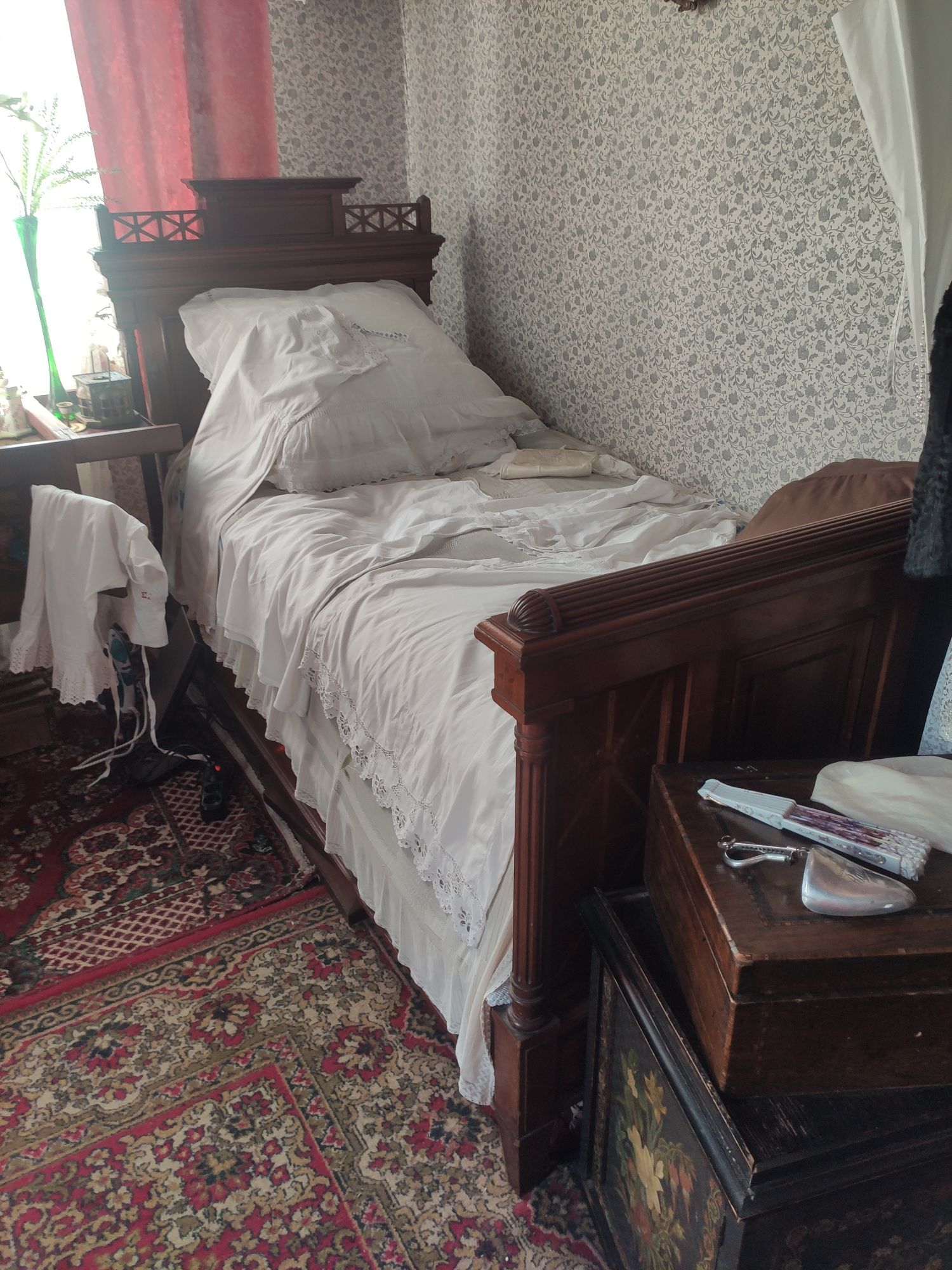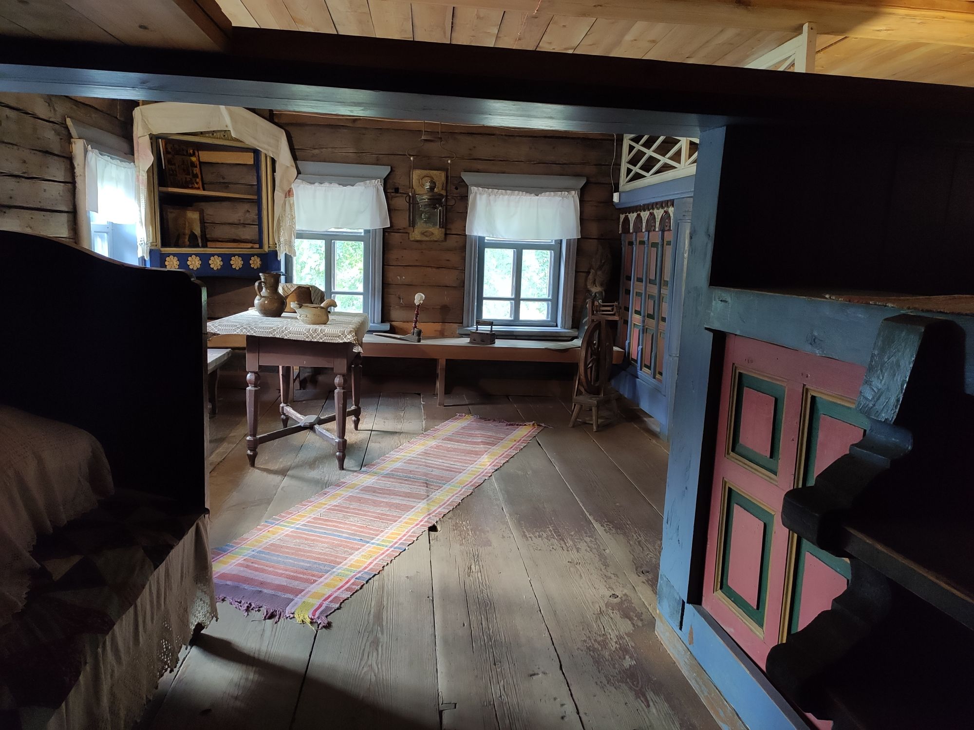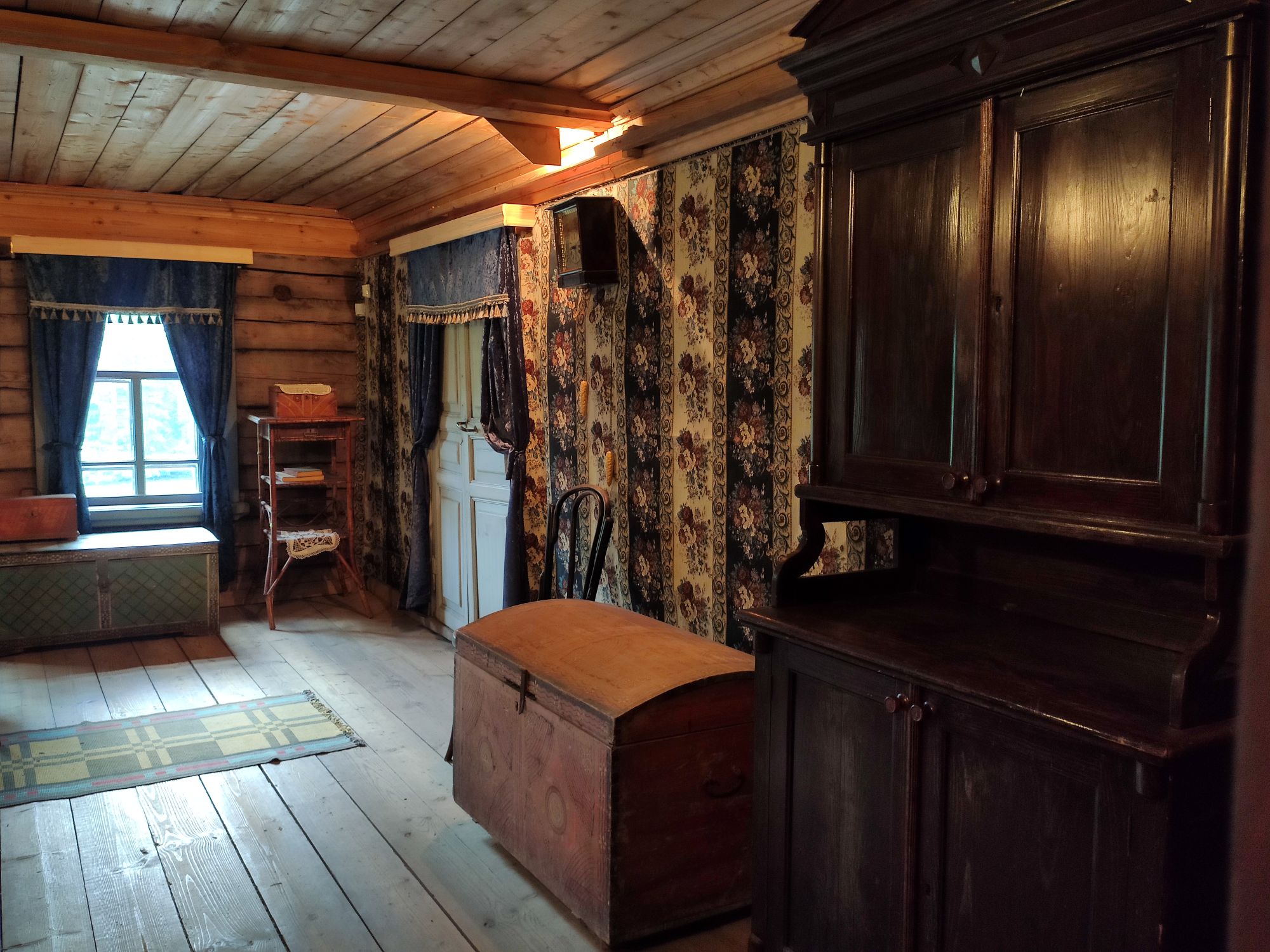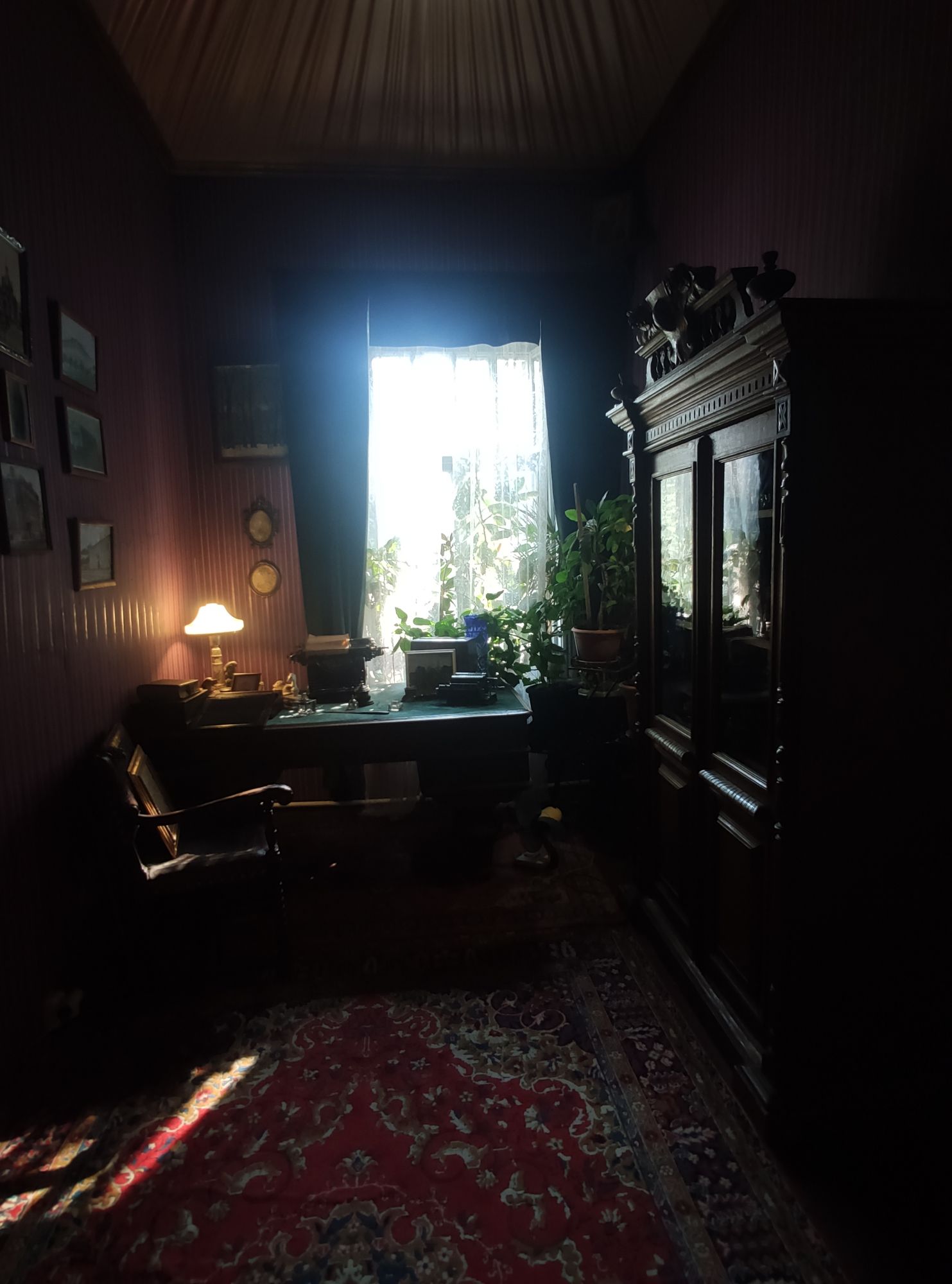 5 сентября 2022 День второй. Прогноз ваще не радовал... Опять 32... Но утро мы начали с чашечки чудесного кофе в полюбившейся с первого раза кофейне. Заодно полюбовались ещё раз на церковь в торговых рядах. Почему-то она мне очень полюбилась, хотя внутрь мы даже не подумали зайти. Она такая не... очевидная и при этом её видно издалека. Пока пили кофе, решали куда сходить. Музеев очень хотелось (все же помнят, что я их люблю?))) И вот выбор пал на Дом городского головы. В основном, конечно, по причине близости к дому. Плюс - он находится в особнячке в стиле модерн. Ну и решающее - это то, что мы спросили у знакомого, который был в Костроме, но у нас разное отношение к музеям - куда сходить? А он много чего перечислил, а вот про этот музей написал - не тратьте время.))) Вот это окошко на чердаке моё внимание привлекло ещё вчера. Музей частный, поэтому перед посещением, конечно, лучше позвонить. Но нам было не принципиально попасть, поэтому позвонили "на удачу". И... дверь - таки открылась)) Нас присоединили к экскурсии, которую проводили другой паре. Тут в каждой комнате свой рассказ, не особо связанный с предыдущим, поэтому мы послушали сначала вторую половину экскурсии, а потом первую. Ведёт дяденька немного своеобразно, но мы быстро под него подстроились. А после ухода той пары, он ещё немного поменял стиль изложения))) ЭТот музей - это не Дом-музей, а скорее как склад кучи интереснейших вещей, разобранных по темам. Я такое до этого видела в шикарном техническом музее в Нижнем. Хозяйка музея - истовый коллекционер. Добывает разные интересные предметы того времени - мебель, посуду, картины, бытовые вещи, столовые приборы. Всё это поселяется в музее. Но не на витринах, а как бы в быту. И почти всё можно потрогать, а ещё тебе про всё расскажут. И это невероятно круто!) Вот, например, тарелка с двойным дном и носиком - вниз наливался кипяток, чтобы мясо сверху не остывало. Чашечки, тарелочки с клеймами и надписями. Очень интересно сделаны потолки. Люстры, естественно, старинные. Очень красивые шкафы. По всему музею висят картины в технике "пуантилизм" местного художника. Убей - не помню фамилию. У него был дефект зрения, поэтому картины писал вот так. Экскурсовод посмеялся, что, когда с усталости развесили всю коллекцию, а потом с утра на неё посмотрели, оказалось, что часть вверх ногами висит))) В столовой нам очень много всяких интересных предметов показали. Например, пельменница. Мы вот супницу знали, но, оказывается, пельменница должна быть с дырками на крышке, чтоб пельмени не слиплись. Икорница - тут вверх клали икру, а вниз - лёд. Вилка для колбасы, у которой есть механизм, чтобы наколотую колбасу "уронить" себе в тарелку одним нажатием кнопочки. Соль - предмет дорогой. Поэтому, для гостей ее не ставили. Солоночка была малюсенькая с малюсенькой ложечкой для хозяина, а для гостей был набор специй с ручкой и назывался он "прибор". Прказывали очень много всего, но я самое интересное и необычное сфоткала. На стене висят три совсем маленькие картины с милыми девушками. Но только приблизившись, видишь, что на картину наклеен локон волос. Говорят, что одно время было модно написать портрет и приклеить туда локон этой девушки. Картина, на которой изображён дом, в котором находится музей. Сейчас перед музеем липы, поэтому дом и не видно, по сути. А стоит этот дом на фундаменте, оставшемся от 