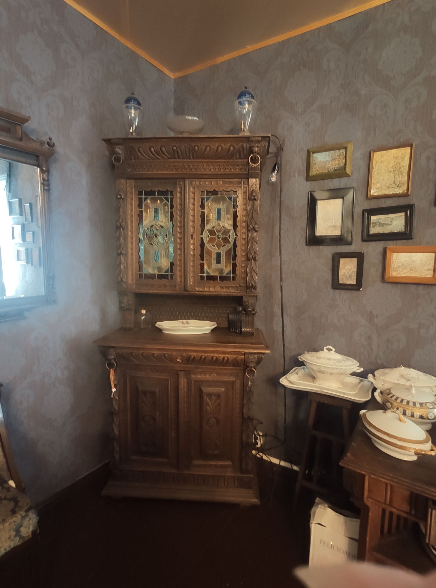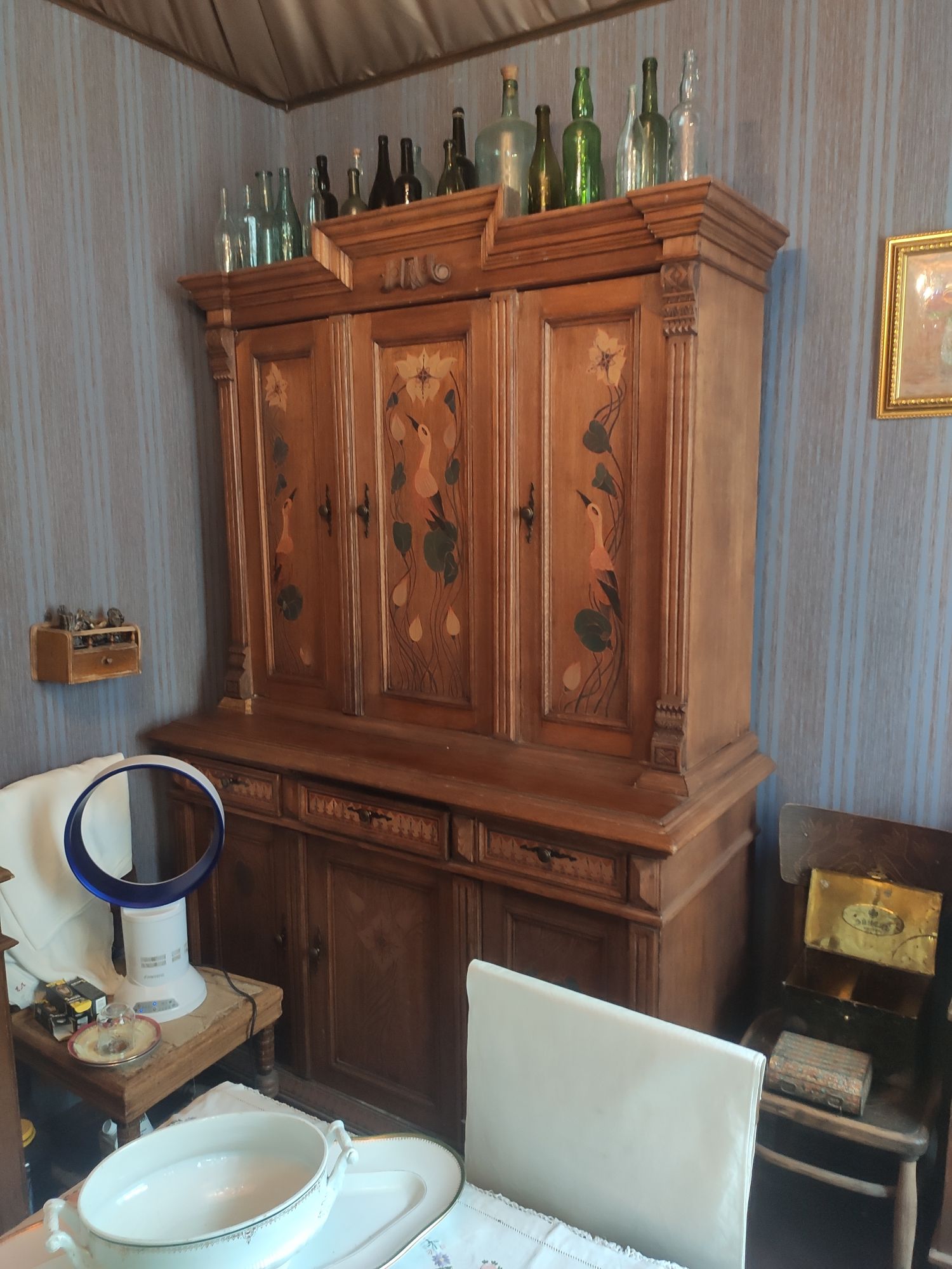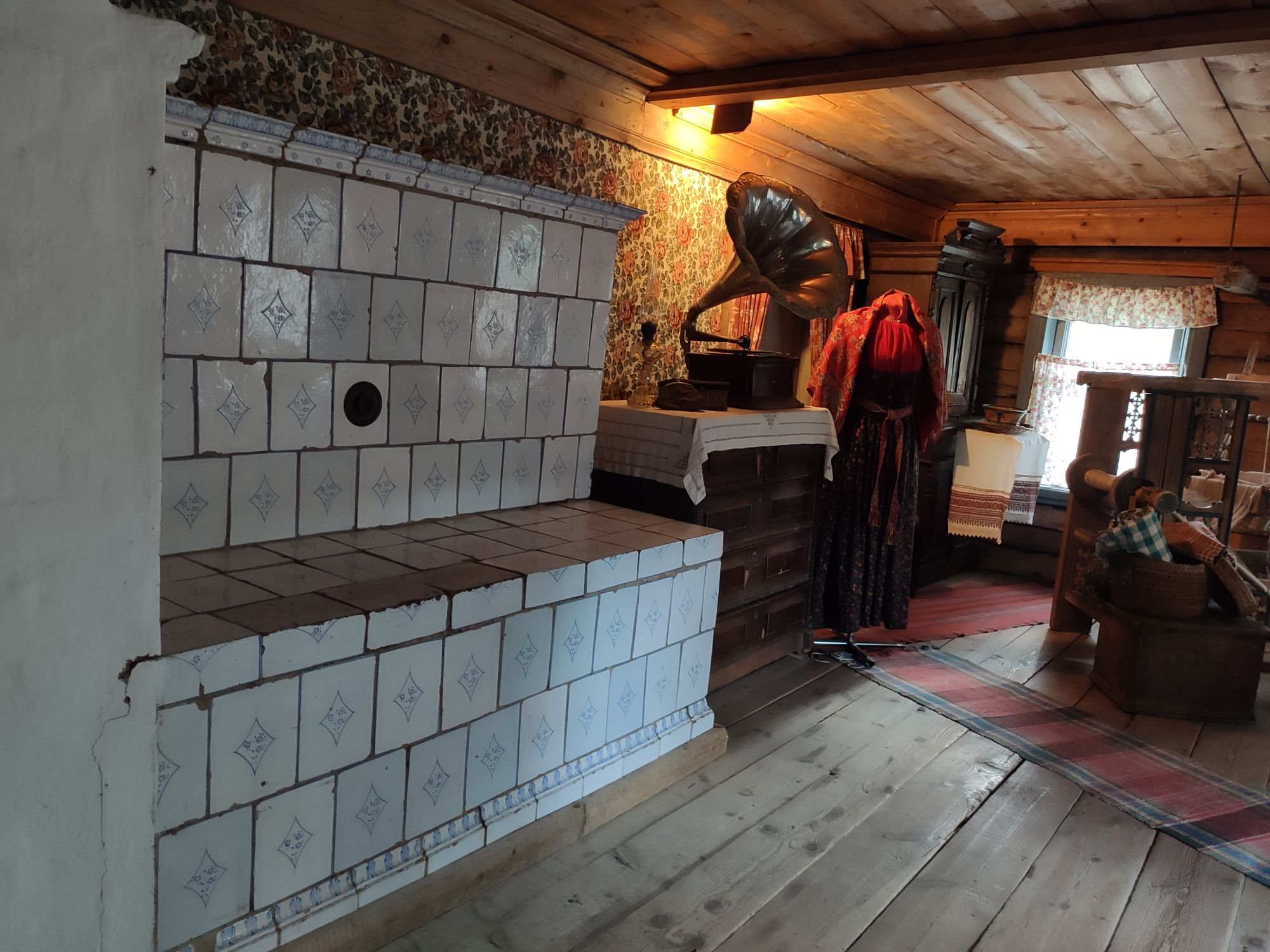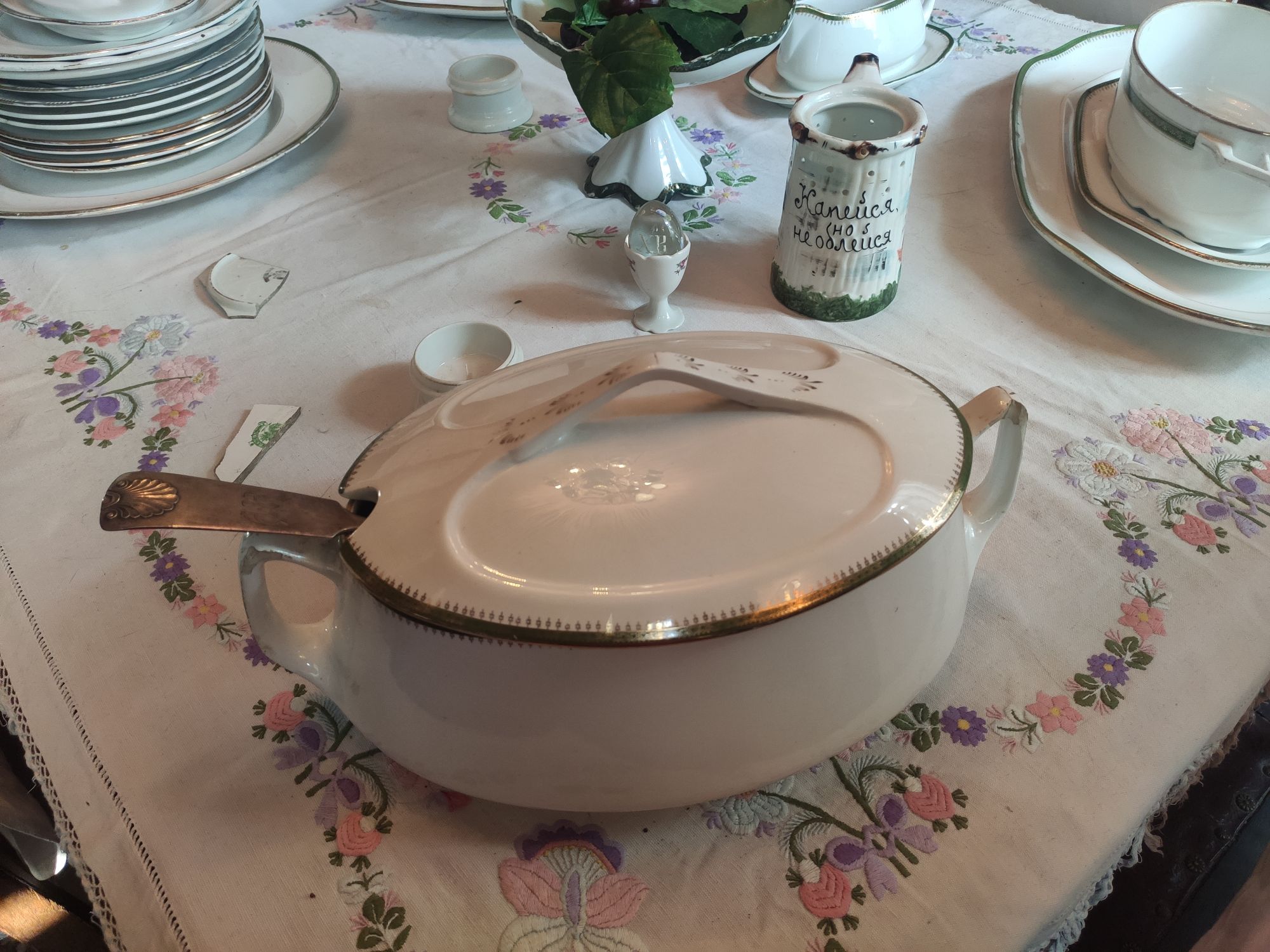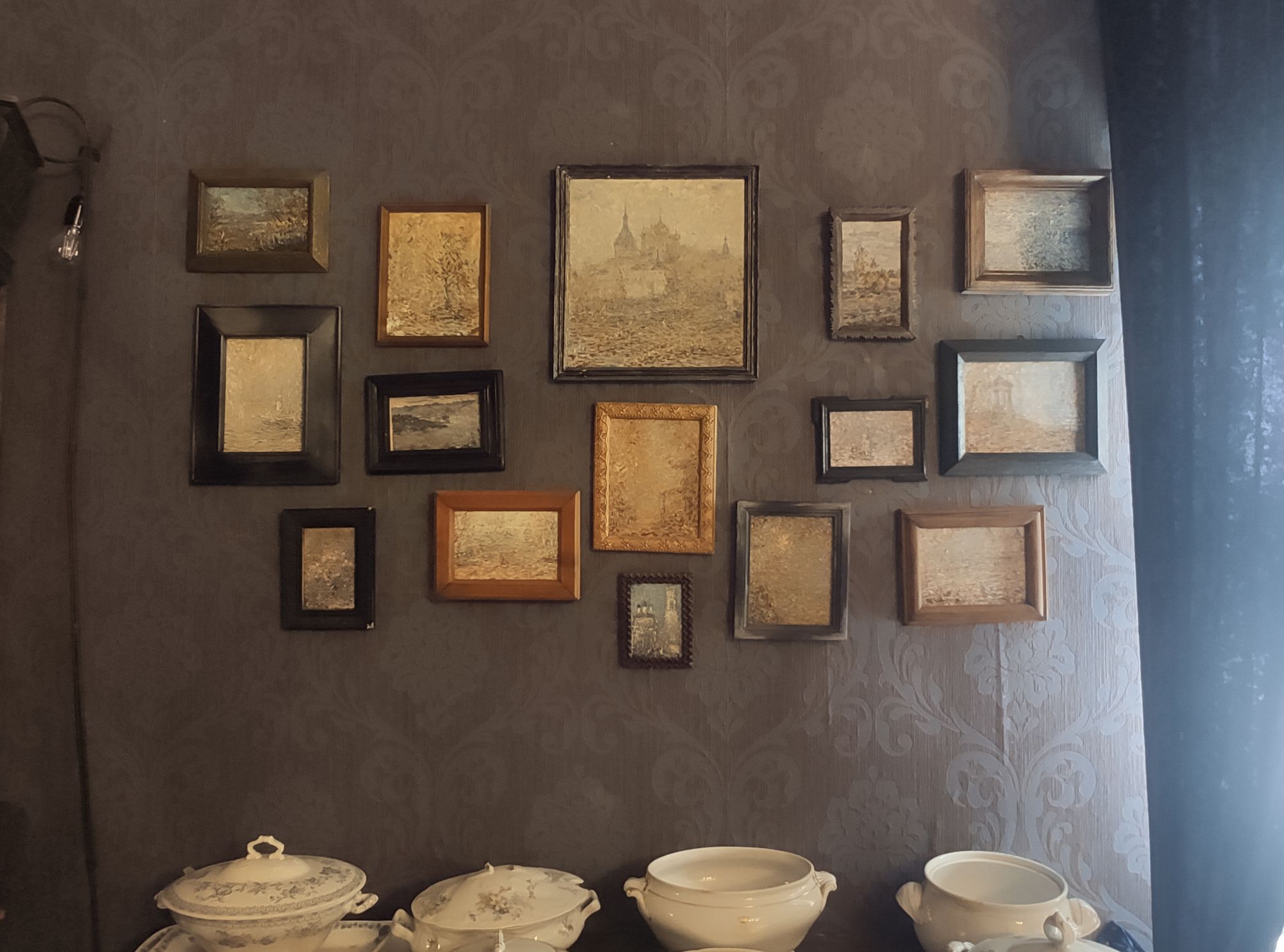 5 сентября 2022 День второй. Прогноз ваще не радовал... Опять 32... Но утро мы начали с чашечки чудесного кофе в полюбившейся с первого раза кофейне. Заодно полюбовались ещё раз на церковь в торговых рядах. Почему-то она мне очень полюбилась, хотя внутрь мы даже не подумали зайти. Она такая не... очевидная и при этом её видно издалека. Пока пили кофе, решали куда сходить. Музеев очень хотелось (все же помнят, что я их люблю?))) И вот выбор пал на Дом городского головы. В основном, конечно, по причине близости к дому. Плюс - он находится в особнячке в стиле модерн. Ну и решающее - это то, что мы спросили у знакомого, который был в Костроме, но у нас разное отношение к музеям - куда сходить? А он много чего перечислил, а вот про этот музей написал - не тратьте время.))) Вот это окошко на чердаке моё внимание привлекло ещё вчера. Музей частный, поэтому перед посещением, конечно, лучше позвонить. Но нам было не принципиально попасть, поэтому позвонили "на удачу". И... дверь - таки открылась)) Нас присоединили к экскурсии, которую проводили другой паре. Тут в каждой комнате свой рассказ, не особо связанный с предыдущим, поэтому мы послушали сначала вторую половину экскурсии, а потом первую. Ведёт дяденька немного своеобразно, но мы быстро под него подстроились. А после ухода той пары, он ещё немного поменял стиль изложения))) ЭТот музей - это не Дом-музей, а скорее как склад кучи интереснейших вещей, разобранных по темам. Я такое до этого видела в шикарном техническом музее в Нижнем. Хозяйка музея - истовый коллекционер. Добывает разные интересные предметы того времени - мебель, посуду, картины, бытовые вещи, столовые приборы. Всё это поселяется в музее. Но не на витринах, а как бы в быту. И почти всё можно потрогать, а ещё тебе про всё расскажут. И это невероятно круто!) Вот, например, тарелка с двойным дном и носиком - вниз наливался кипяток, чтобы мясо сверху не остывало. Чашечки, тарелочки с клеймами и надписями. Очень интересно сделаны потолки. Люстры, естественно, старинные. Очень красивые шкафы. По всему музею висят картины в технике "пуантилизм" местного художника. Убей - не помню фамилию. У него был дефект зрения, поэтому картины писал вот так. Экскурсовод посмеялся, что, когда с усталости развесили всю коллекцию, а потом с утра на неё посмотрели, оказалось, что часть вверх ногами висит))) В столовой нам очень много всяких интересных предметов показали. Например, пельменница. Мы вот супницу знали, но, оказывается, пельменница должна быть с дырками на крышке, чтоб пельмени не слиплись. Икорница - тут вверх клали икру, а вниз - лёд. Вилка для колбасы, у которой есть механизм, чтобы наколотую колбасу "уронить" себе в тарелку одним нажатием кнопочки. Соль - предмет дорогой. Поэтому, для гостей ее не ставили. Солоночка была малюсенькая с малюсенькой ложечкой для хозяина, а для гостей был набор специй с ручкой и назывался он "прибор". Прказывали очень много всего, но я самое интересное и необычное сфоткала. На стене висят три совсем маленькие картины с милыми девушками. Но только приблизившись, видишь, что на картину наклеен локон волос. Говорят, что одно время было модно написать портрет и приклеить туда локон этой девушки. Картина, на которой изображён дом, в котором находится музей. Сейчас перед музеем липы, поэтому дом и не видно, по сути. А стоит этот дом на фундаменте, оставшемся от 