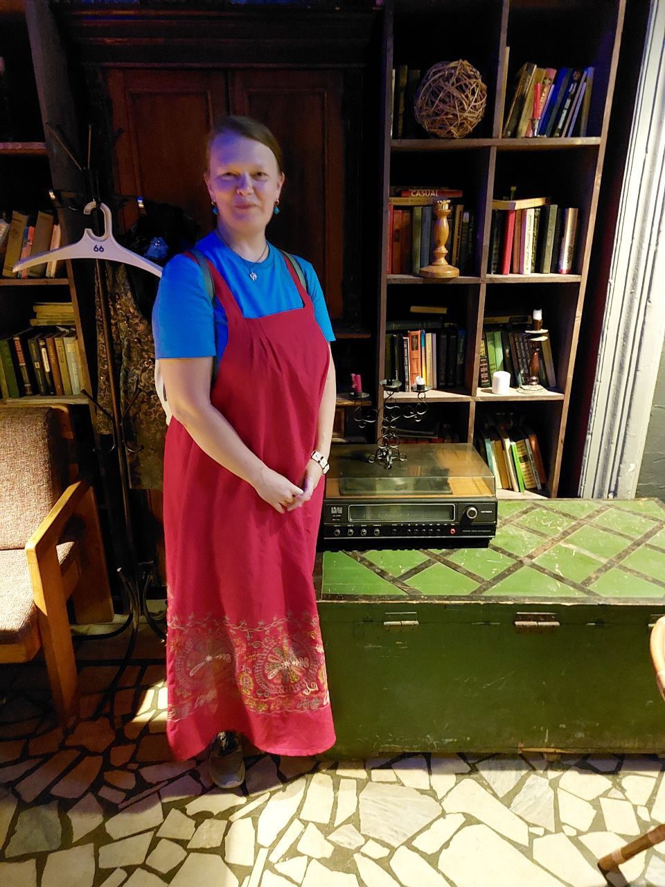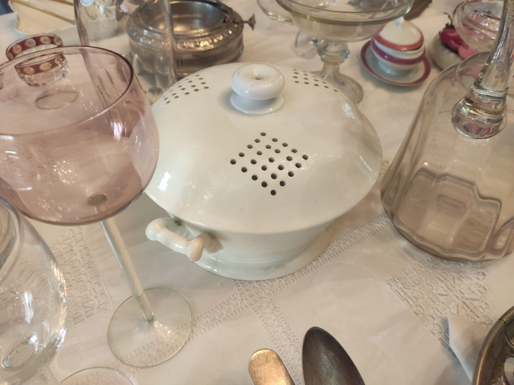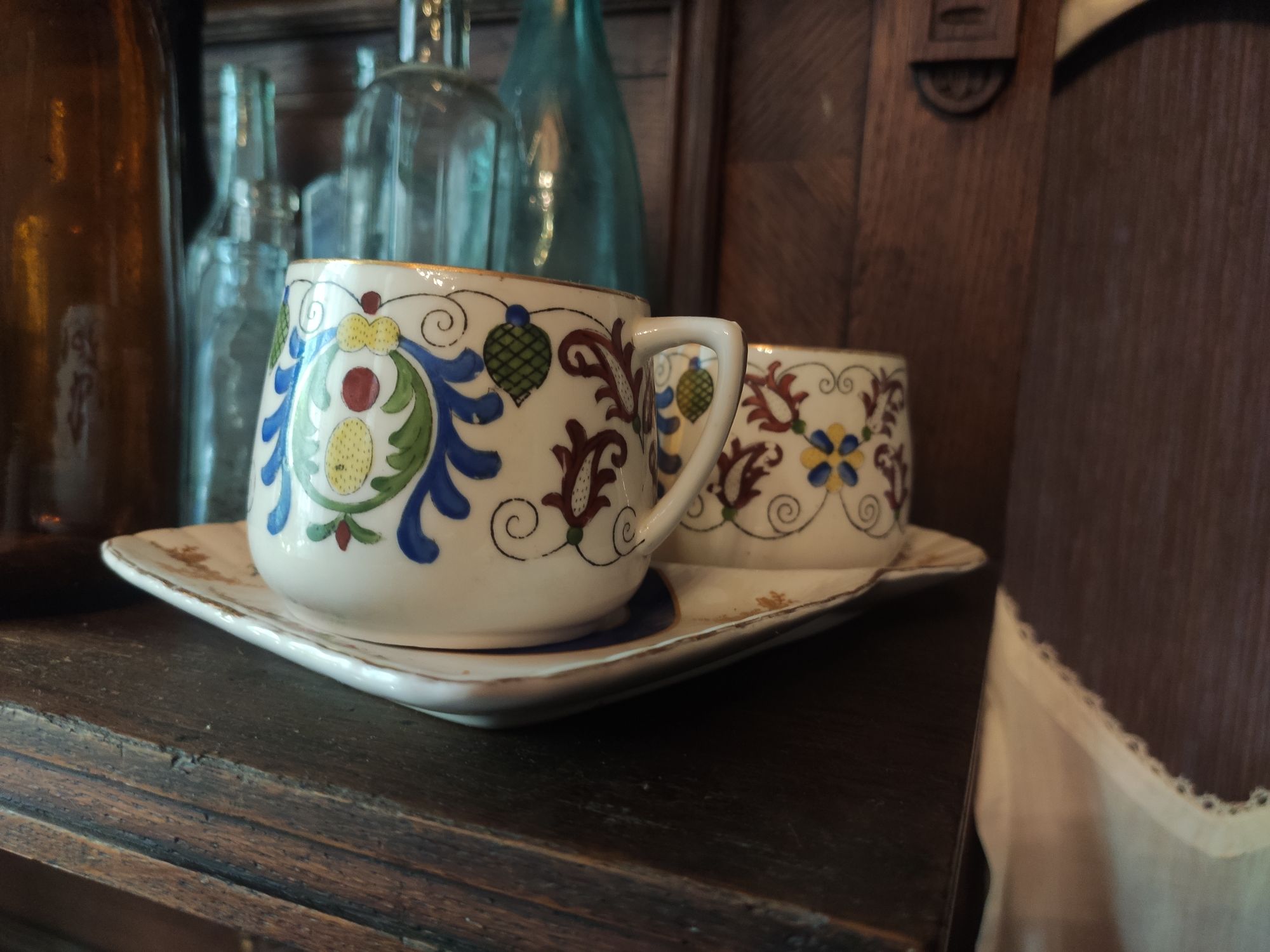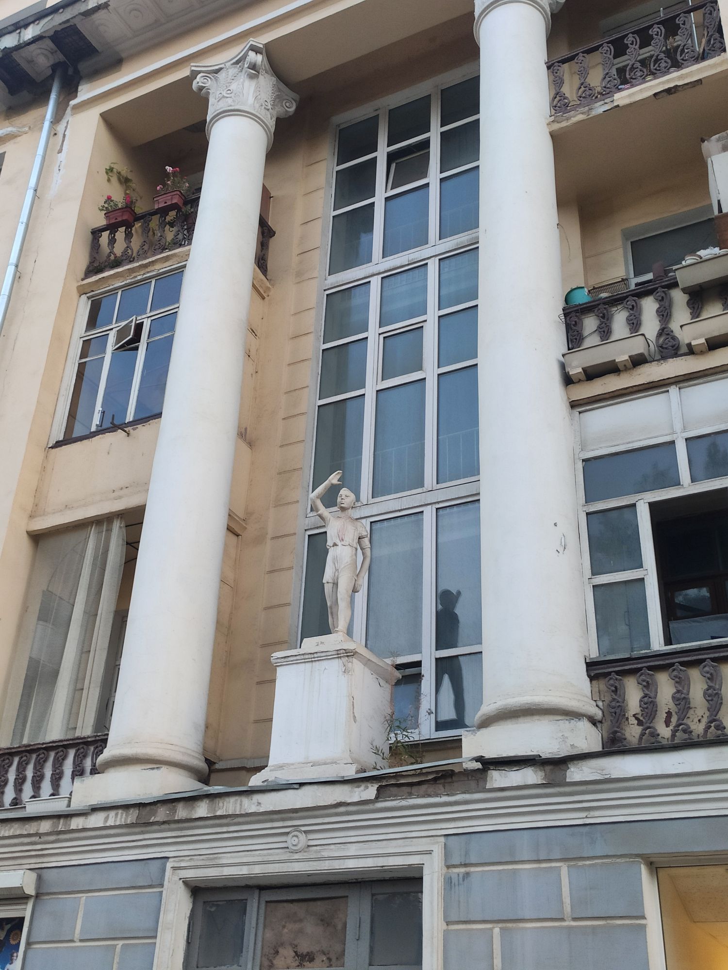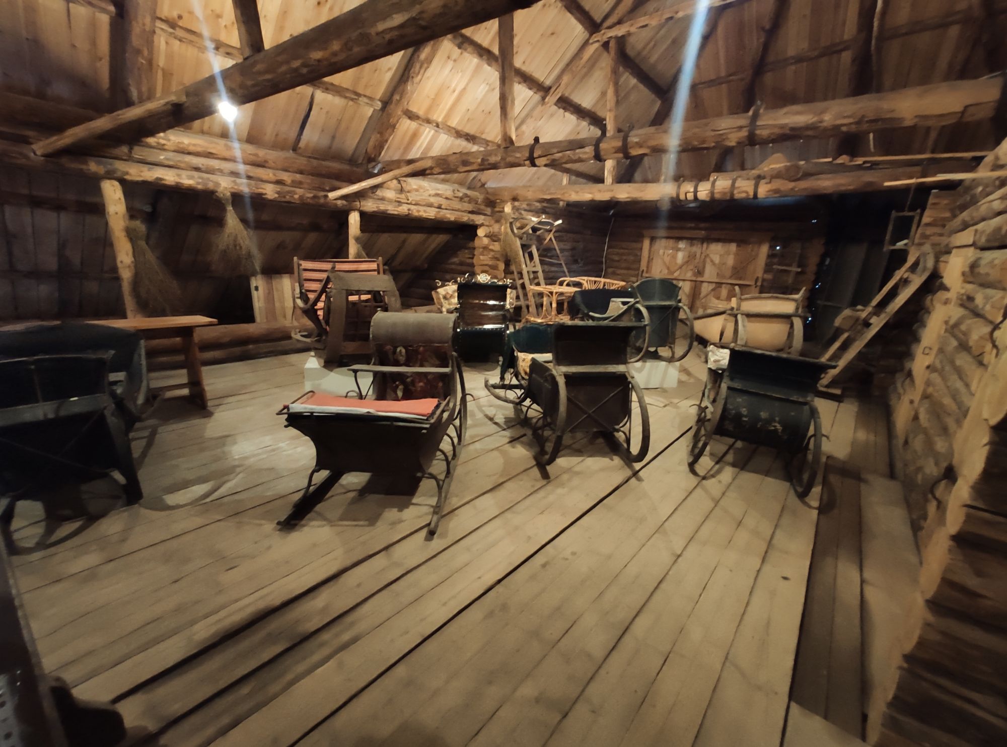 5 сентября 2022 День второй. Прогноз ваще не радовал... Опять 32... Но утро мы начали с чашечки чудесного кофе в полюбившейся с первого раза кофейне. Заодно полюбовались ещё раз на церковь в торговых рядах. Почему-то она мне очень полюбилась, хотя внутрь мы даже не подумали зайти. Она такая не... очевидная и при этом её видно издалека. Пока пили кофе, решали куда сходить. Музеев очень хотелось (все же помнят, что я их люблю?))) И вот выбор пал на Дом городского головы. В основном, конечно, по причине близости к дому. Плюс - он находится в особнячке в стиле модерн. Ну и решающее - это то, что мы спросили у знакомого, который был в Костроме, но у нас разное отношение к музеям - куда сходить? А он много чего перечислил, а вот про этот музей написал - не тратьте время.))) Вот это окошко на чердаке моё внимание привлекло ещё вчера. Музей частный, поэтому перед посещением, конечно, лучше позвонить. Но нам было не принципиально попасть, поэтому позвонили "на удачу". И... дверь - таки открылась)) Нас присоединили к экскурсии, которую проводили другой паре. Тут в каждой комнате свой рассказ, не особо связанный с предыдущим, поэтому мы послушали сначала вторую половину экскурсии, а потом первую. Ведёт дяденька немного своеобразно, но мы быстро под него подстроились. А после ухода той пары, он ещё немного поменял стиль изложения))) ЭТот музей - это не Дом-музей, а скорее как склад кучи интереснейших вещей, разобранных по темам. Я такое до этого видела в шикарном техническом музее в Нижнем. Хозяйка музея - истовый коллекционер. Добывает разные интересные предметы того времени - мебель, посуду, картины, бытовые вещи, столовые приборы. Всё это поселяется в музее. Но не на витринах, а как бы в быту. И почти всё можно потрогать, а ещё тебе про всё расскажут. И это невероятно круто!) Вот, например, тарелка с двойным дном и носиком - вниз наливался кипяток, чтобы мясо сверху не остывало. Чашечки, тарелочки с клеймами и надписями. Очень интересно сделаны потолки. Люстры, естественно, старинные. Очень красивые шкафы. По всему музею висят картины в технике "пуантилизм" местного художника. Убей - не помню фамилию. У него был дефект зрения, поэтому картины писал вот так. Экскурсовод посмеялся, что, когда с усталости развесили всю коллекцию, а потом с утра на неё посмотрели, оказалось, что часть вверх ногами висит))) В столовой нам очень много всяких интересных предметов показали. Например, пельменница. Мы вот супницу знали, но, оказывается, пельменница должна быть с дырками на крышке, чтоб пельмени не слиплись. Икорница - тут вверх клали икру, а вниз - лёд. Вилка для колбасы, у которой есть механизм, чтобы наколотую колбасу "уронить" себе в тарелку одним нажатием кнопочки. Соль - предмет дорогой. Поэтому, для гостей ее не ставили. Солоночка была малюсенькая с малюсенькой ложечкой для хозяина, а для гостей был набор специй с ручкой и назывался он "прибор". Прказывали очень много всего, но я самое интересное и необычное сфоткала. На стене висят три совсем маленькие картины с милыми девушками. Но только приблизившись, видишь, что на картину наклеен локон волос. Говорят, что одно время было модно написать портрет и приклеить туда локон этой девушки. Картина, на которой изображён дом, в котором находится музей. Сейчас перед музеем липы, поэтому дом и не видно, по сути. А стоит этот дом на фундаменте, оставшемся от 
