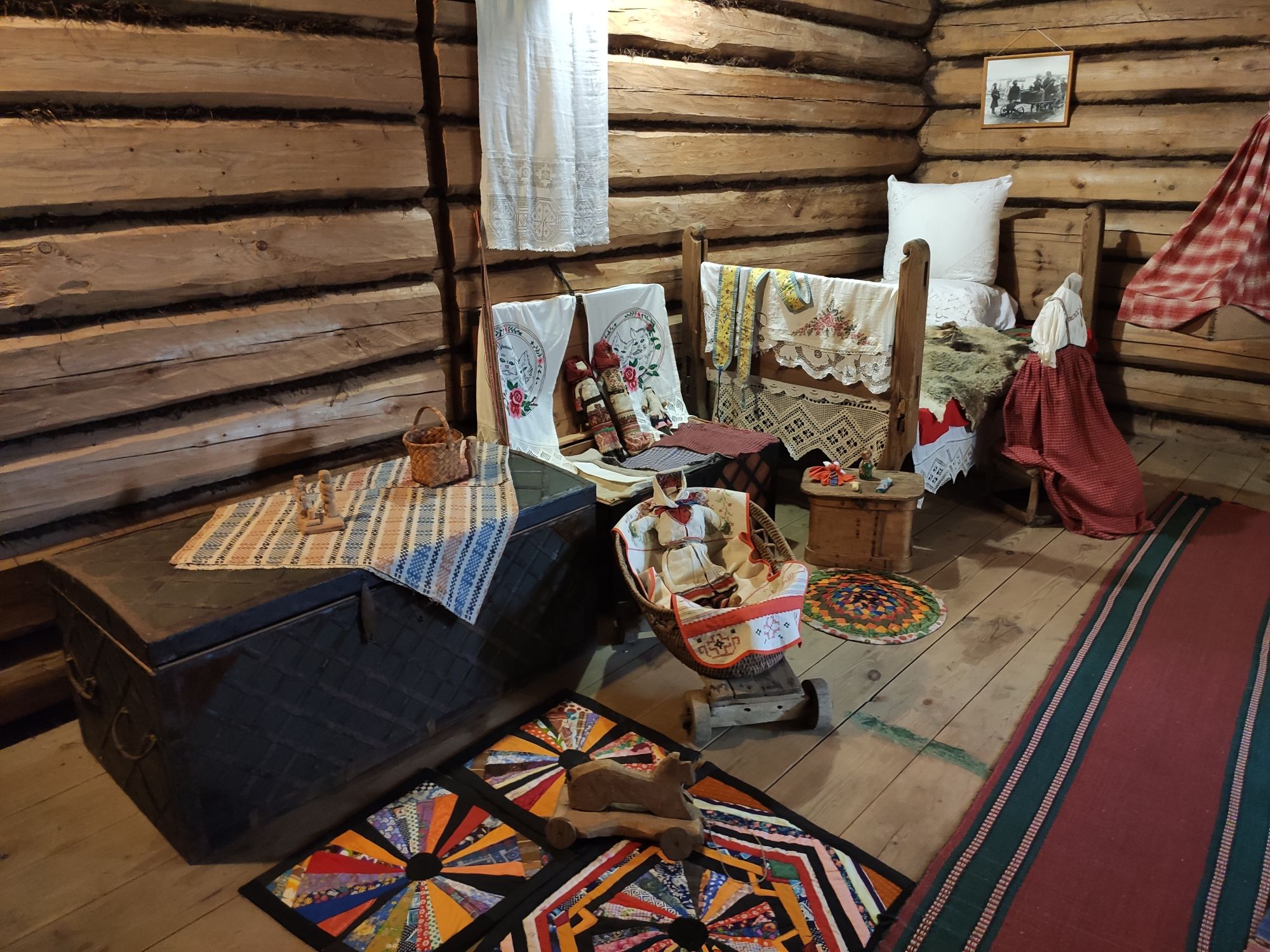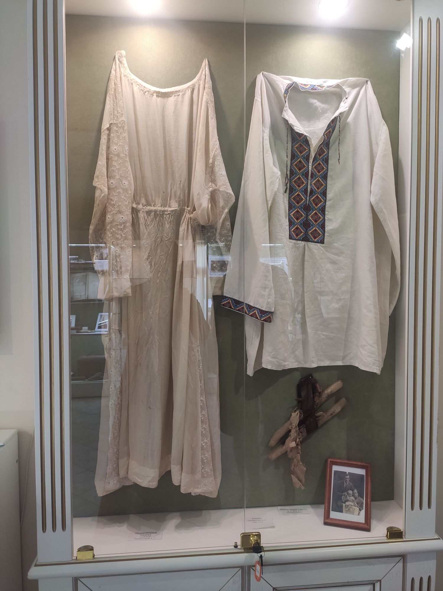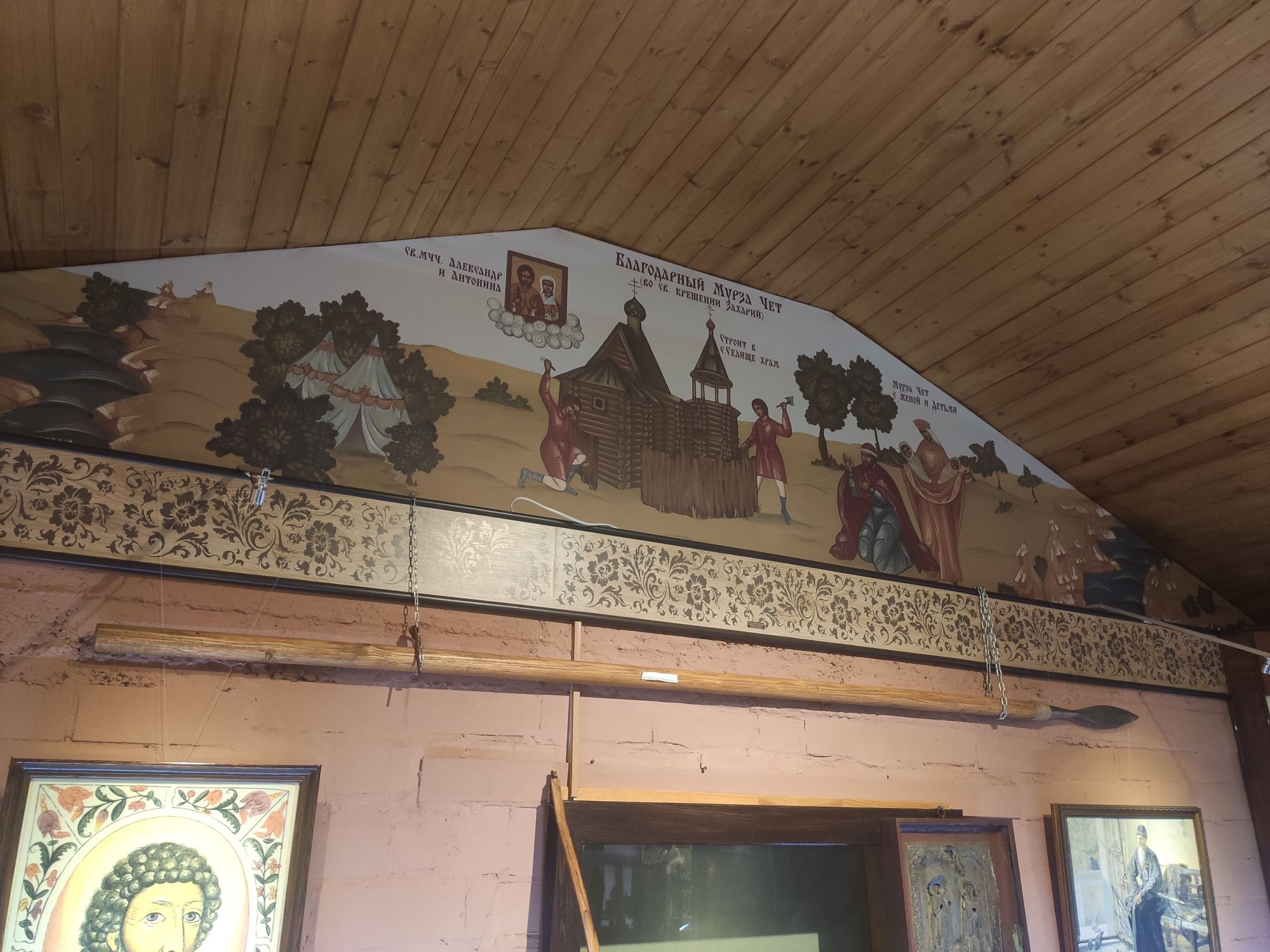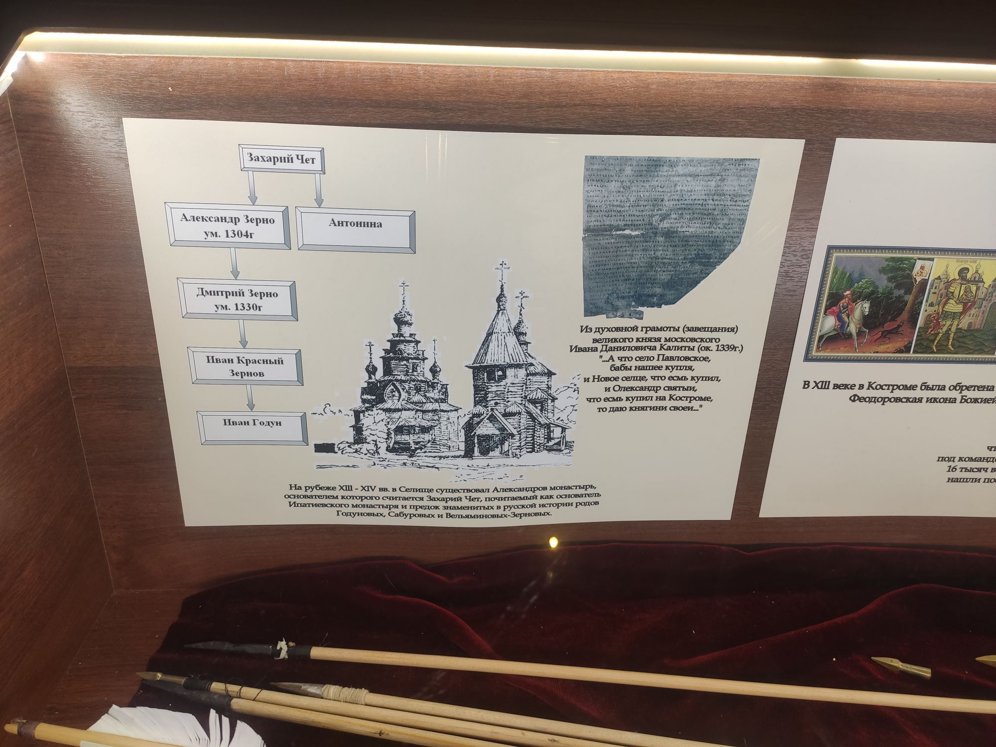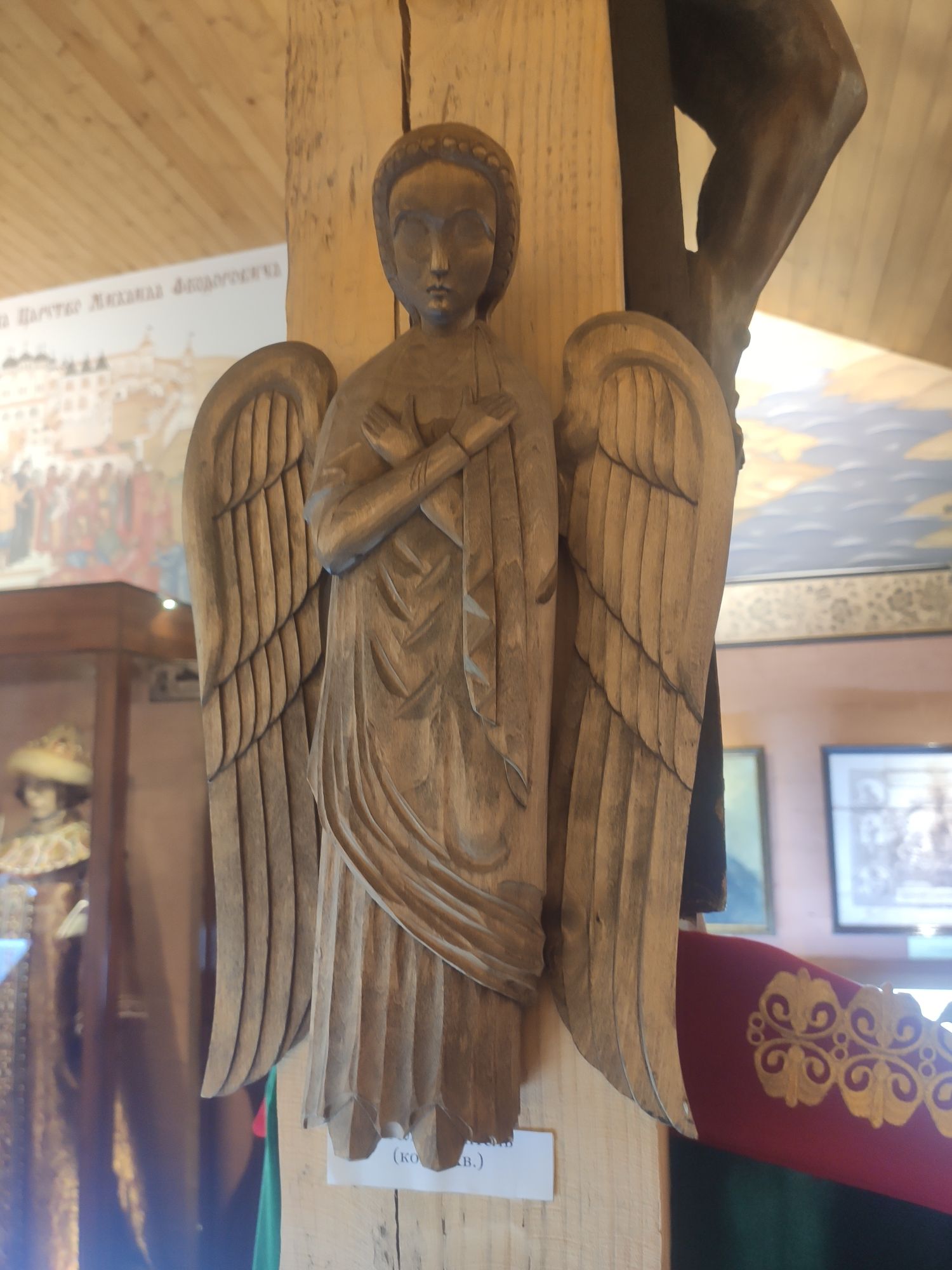 7 сентября 2022 Продолжу про Кострому. В общем, я, пока мы пережидали дома жару в предыдущий день, гуглила про достопримечательности Заволжья. А потом, когда Алиса написала, что экскурсию провести не сможет, сама звонила в музеи))) Изначально Заволжье привлекло зданием старого вокзала - я бы только ради него туда скаталась)))) Но! Там есть несколько церквей, одна из которых старообрядческая. И вот при двух церквях (РПЦ и старообрядческой) есть музеи. Они очень камерные и по записи. Мне повезло записаться в оба. Но обо всем по порядку. В музей при Александро-Антониновской церкви (РПЦ) Я дозвонилась и, получив утвердительный ответ, что приехать можно, спросила - можно ли прям с утра приехать, чтоб не по жаре? Посмеялись и договорились на 9 утра. Доехали туда на такси. Экскурсию проводил Михаил. Ему уже под 70, но очень шустрый и бодрый. Расположен музей прямо напротив церкви в очень красивом резном домике. В музее нам дали кучу исторических фактов, которые прям ну очень удачно легли в голову))) Вроде, часть этих фактов по истории проходят, но до этого они отказывались в голове помещаться))) ЦКровь посвящена святым Александру и Антонине. И единственная в мире, как я поняла, но в России точно, посвященная этим святым. Вот тут на картинке причина описана))) Ехал Мурза Чёт из Золотой Орды. Сам он был татаро-монгол, но крестился под именем Захарий и взял в жены православную жену (хотя есть другая версия - вот статья с сайта церкви https://pravoslavie-ru.turbopages.org/turbo/pravoslavie.ru/s/57723.html) Роды начались внезапно, родилась двойня - мальчик и девочка. По святцам в этот день были именины у Александра и Антонины. Так и назвали. А ещё - Захарий - основатель Ипатьевского монастыря, который находится на другом берегу то ли Волги, то ли Костромы))) Там слияние и сложно оценить как считать. Александр и Антонина (святые) родом из Рима. Антонина была православной, но правитель принуждал ее отказаться от Бога и начать верить "в идолов". Она, как водится, отказалась. Ее истязали, а потом повелели воинам над ней надругаться. И вот один из воинов ее пожалел. Зашёл к ней в темницу и отдал свой плащ, велев бежать. Причем, воин был не православный. Она бежала, но потом пожалела воина и вернулась. Их обоих сожгли. А потом они были причислены к лику святых, не смотря даже на не православность Александра. Михаил, который вел нам экскурсию, ловко переодел нас в Антонину и Александра и сфоткал))) А потом я была царицей Марфой, у которой просили отдать на царство малолетнего сына Михаила. Тут мужа в охрану поставили))) Рассказали нам и про Екатерину, которая, когда план города придумывала, уронила веер, поэтому так город веером и построили. Это легенда, если что) Вообще, у Михаила все предки жили в этих местах, поэтому в музее много вещей и фотографий его семьи. Ну и воспоминаний у него много своих)) На этом фото один из предков Михаила и "девица", хотя в это сложно поверить))) Та, что справа А это ангел из одной из церквей, которые были разрушены и разорены. Александро-Антониновский храм не закрывали, поэтому сюда приносили всё, что могли спасти. Венчальные платье и свечи бабушки или прабабушки Михаила. Платье как на девочку - очень маленького размера. Вещи, принадлежавшие пожарной дружине, в которую входили почти все мужчины села, т.к. это очень почётно было. И много предметов, связанных с церковью и ее служителями. Показав на че