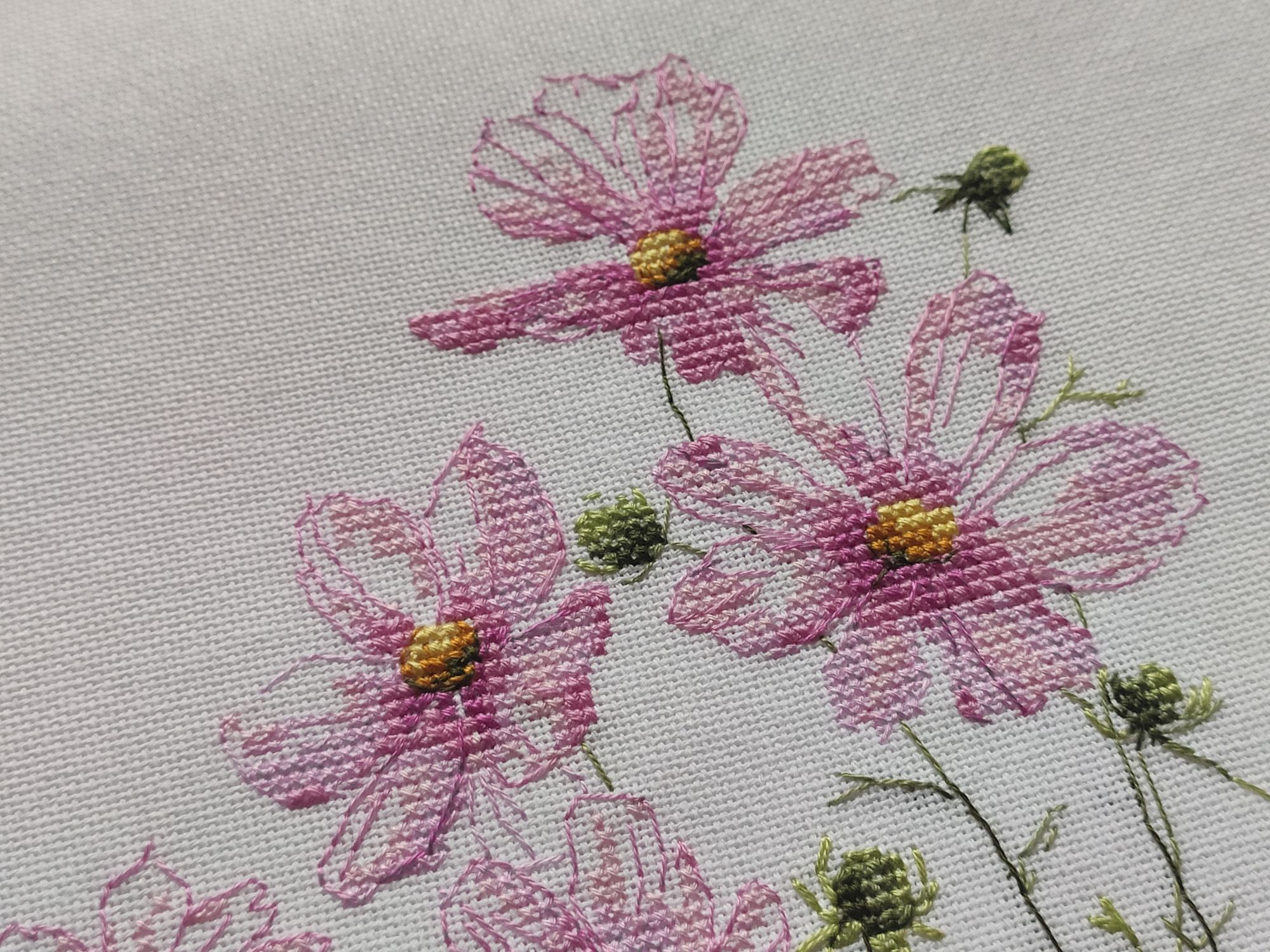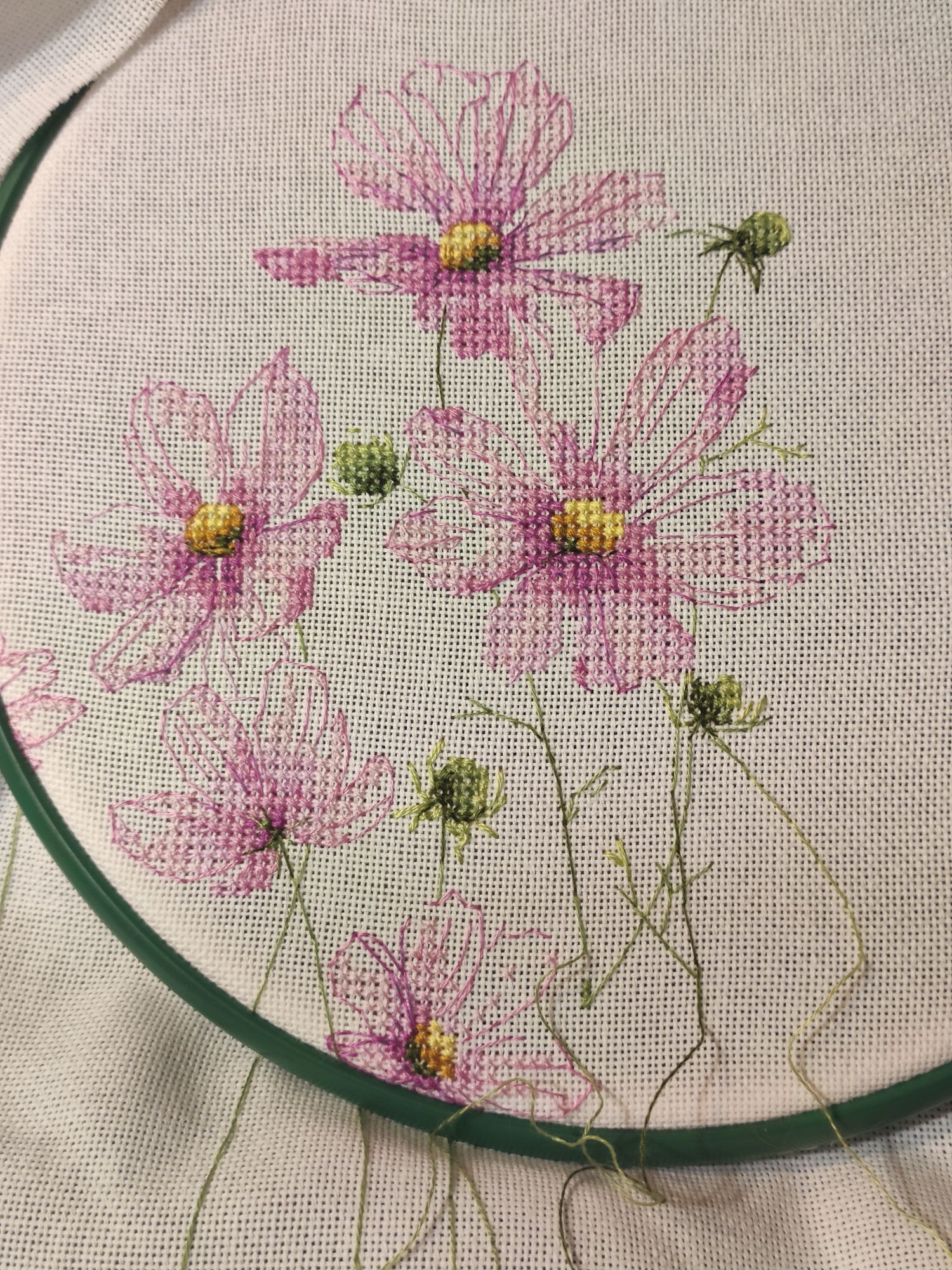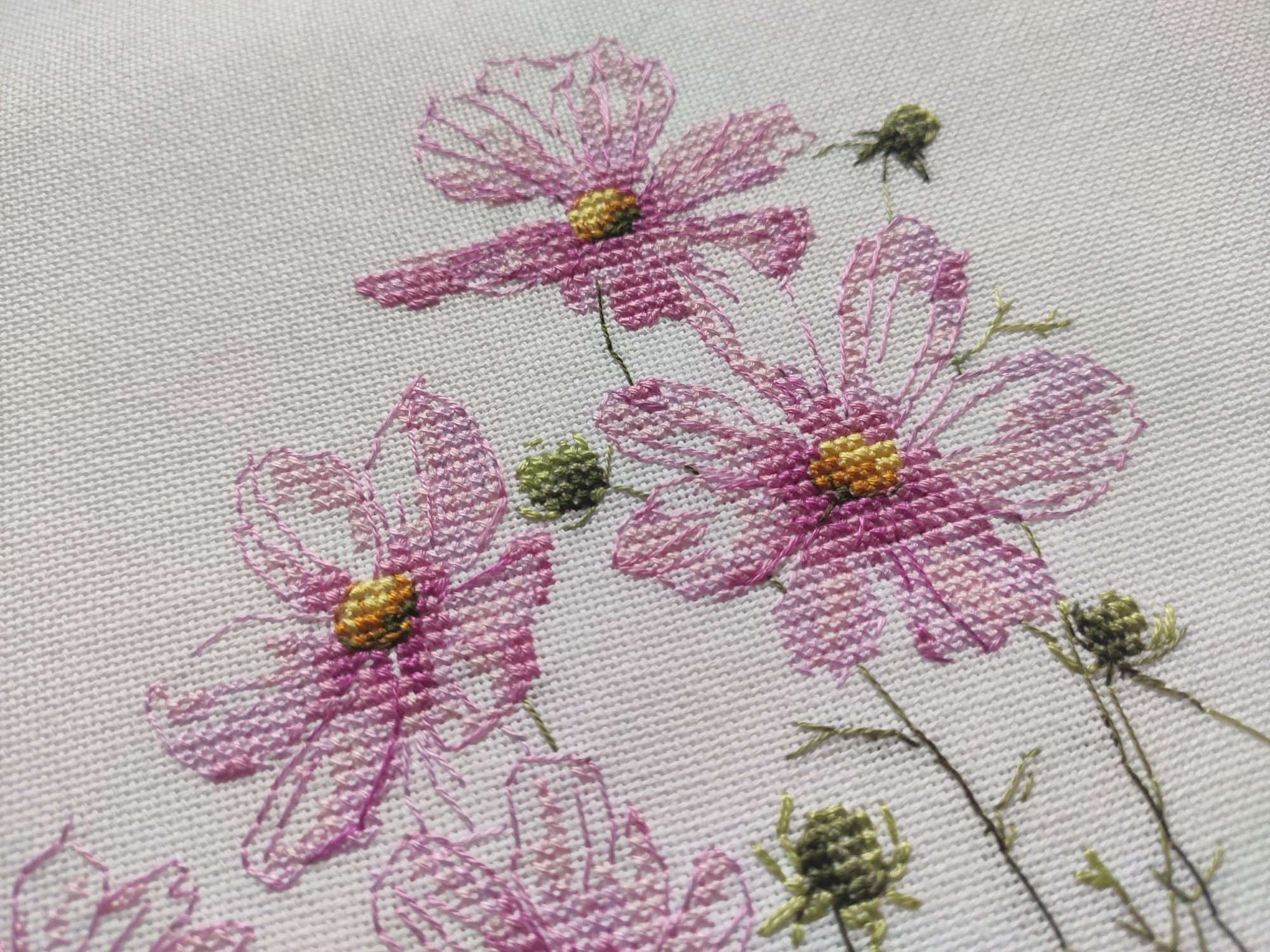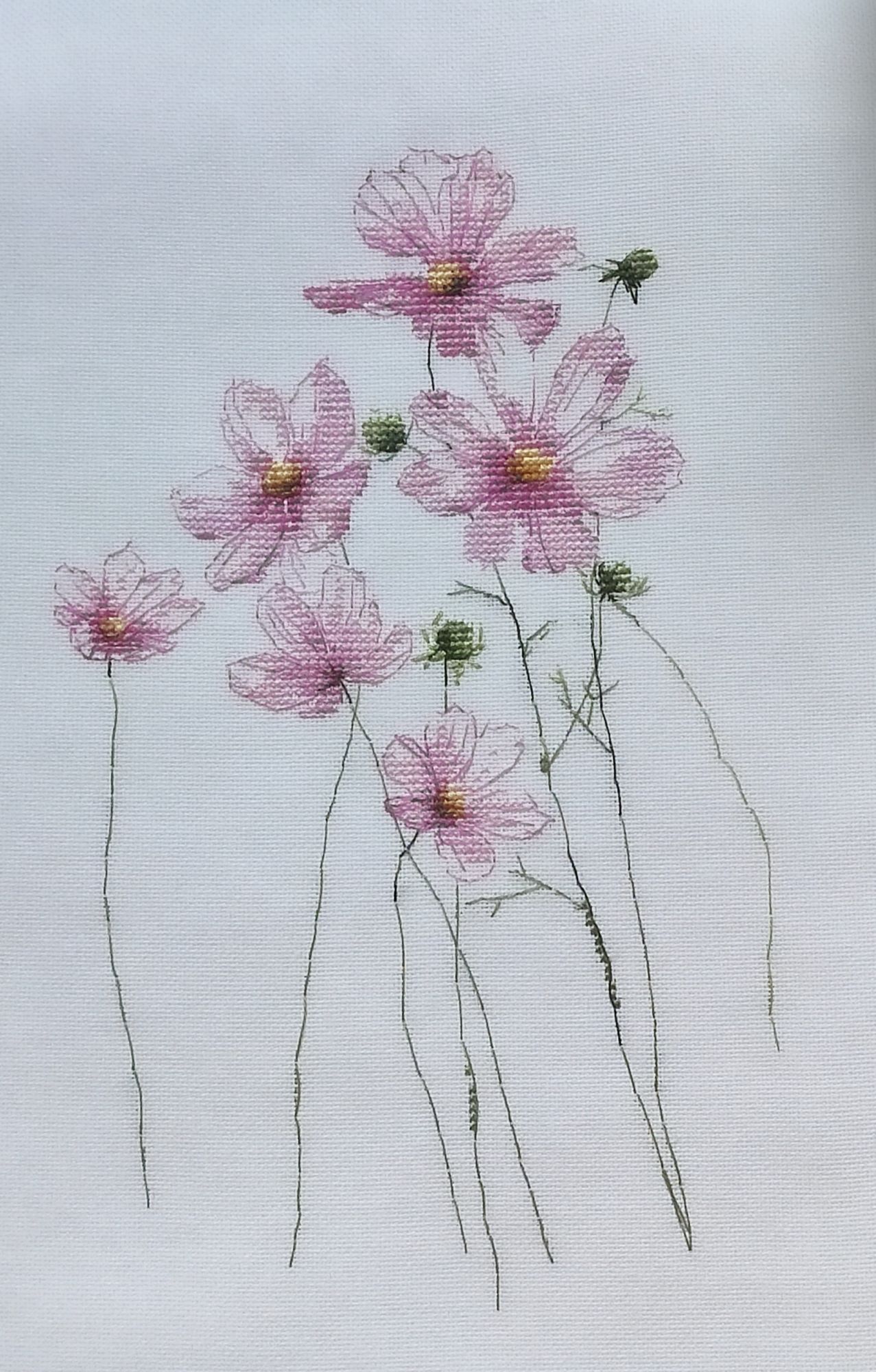 13 сентября 2022 Вышивальный отчёт! Космеи от vetlanka закончены! Тут сплошной кайф! Крестики, узкокрестики, 3/4 крестики и бэк, сплетаясь в паутину, превращаются в абсолютно реальные цветы. Чистый кайф от и до! (По секрету скажу, что купила схему Монстеры. И, возможно, начну её в ближайшее время). Процесс (ночной, но вышивка двигалась очень быстро))). И итог: Ну и покажу отбэканные хвосты, чтобы уже пяльца переставить)) Всем мира и добра! Из невышивального - красивое небо. mamatata, Каори, vasilisa-1977 и 24 других сказали спасибо Поделиться сообщением Ссылка на сообщение