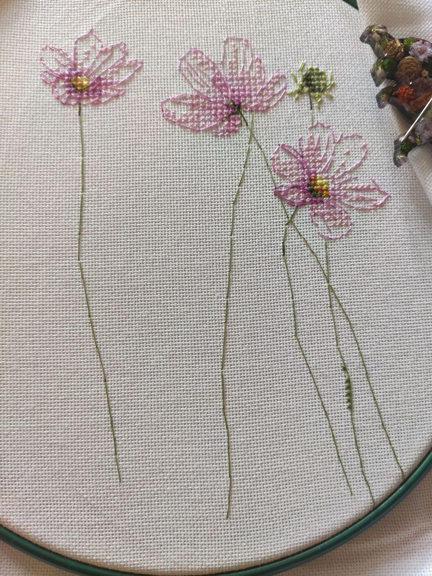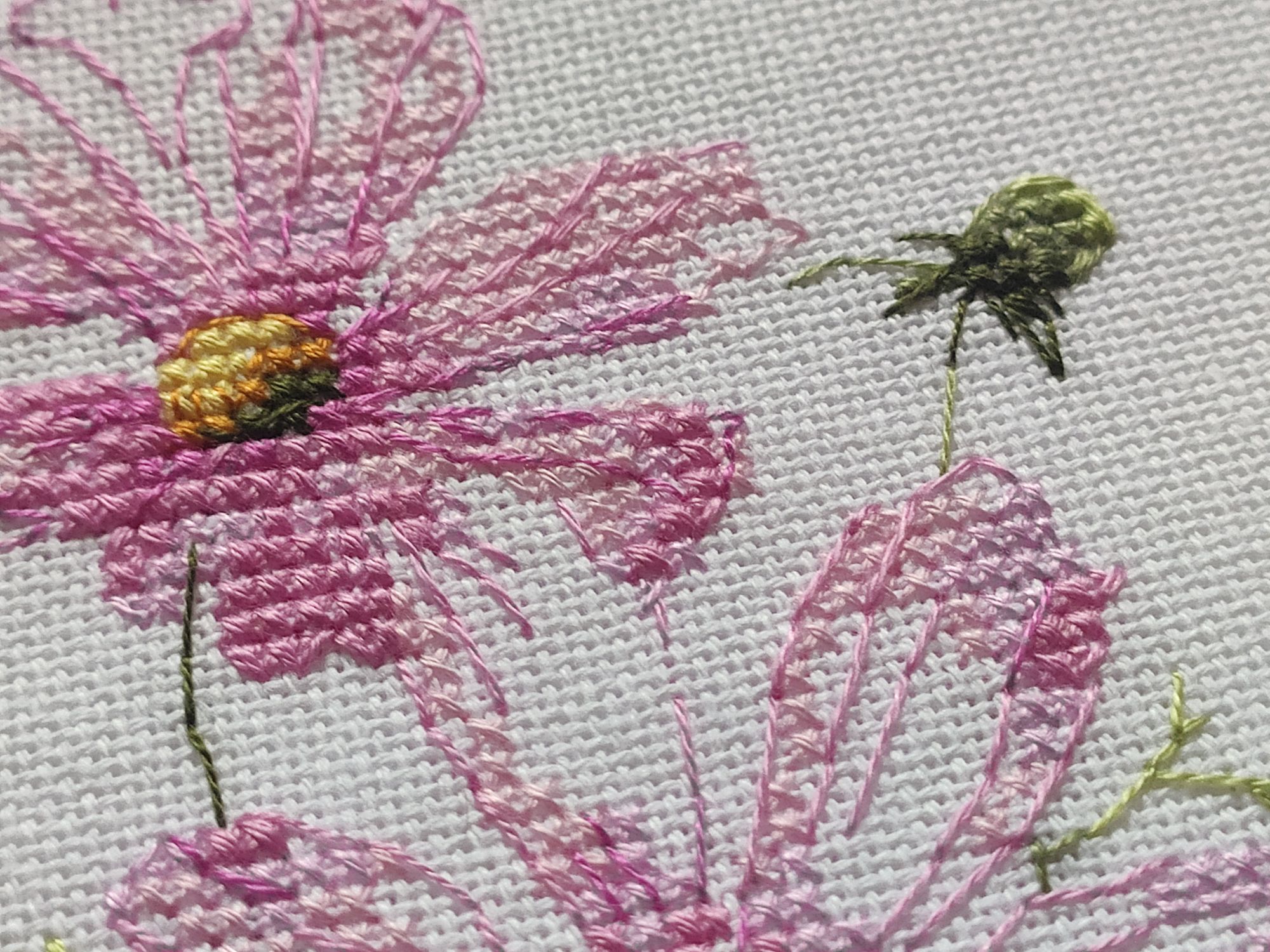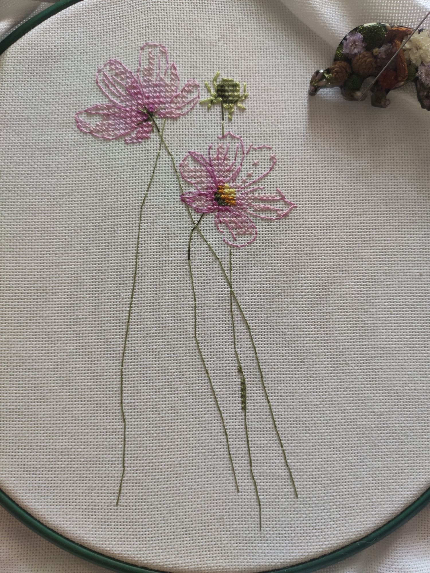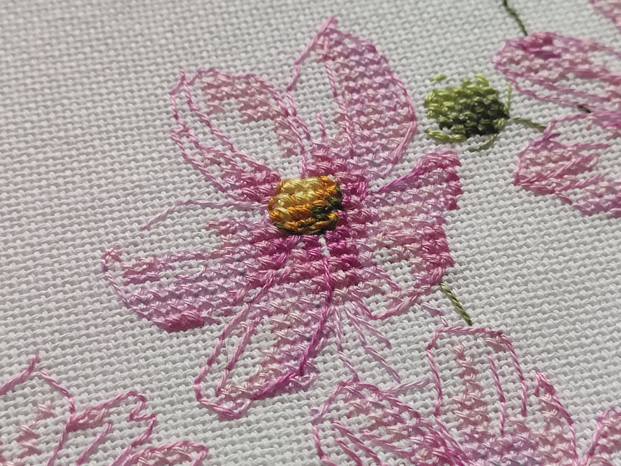 13 сентября 2022 Вышивальный отчёт! Космеи от vetlanka закончены! Тут сплошной кайф! Крестики, узкокрестики, 3/4 крестики и бэк, сплетаясь в паутину, превращаются в абсолютно реальные цветы. Чистый кайф от и до! (По секрету скажу, что купила схему Монстеры. И, возможно, начну её в ближайшее время). Процесс (ночной, но вышивка двигалась очень быстро))). И итог: Ну и покажу отбэканные хвосты, чтобы уже пяльца переставить)) Всем мира и добра! Из невышивального - красивое небо. mamatata, Каори, vasilisa-1977 и 24 других сказали спасибо Поделиться сообщением Ссылка на сообщение
