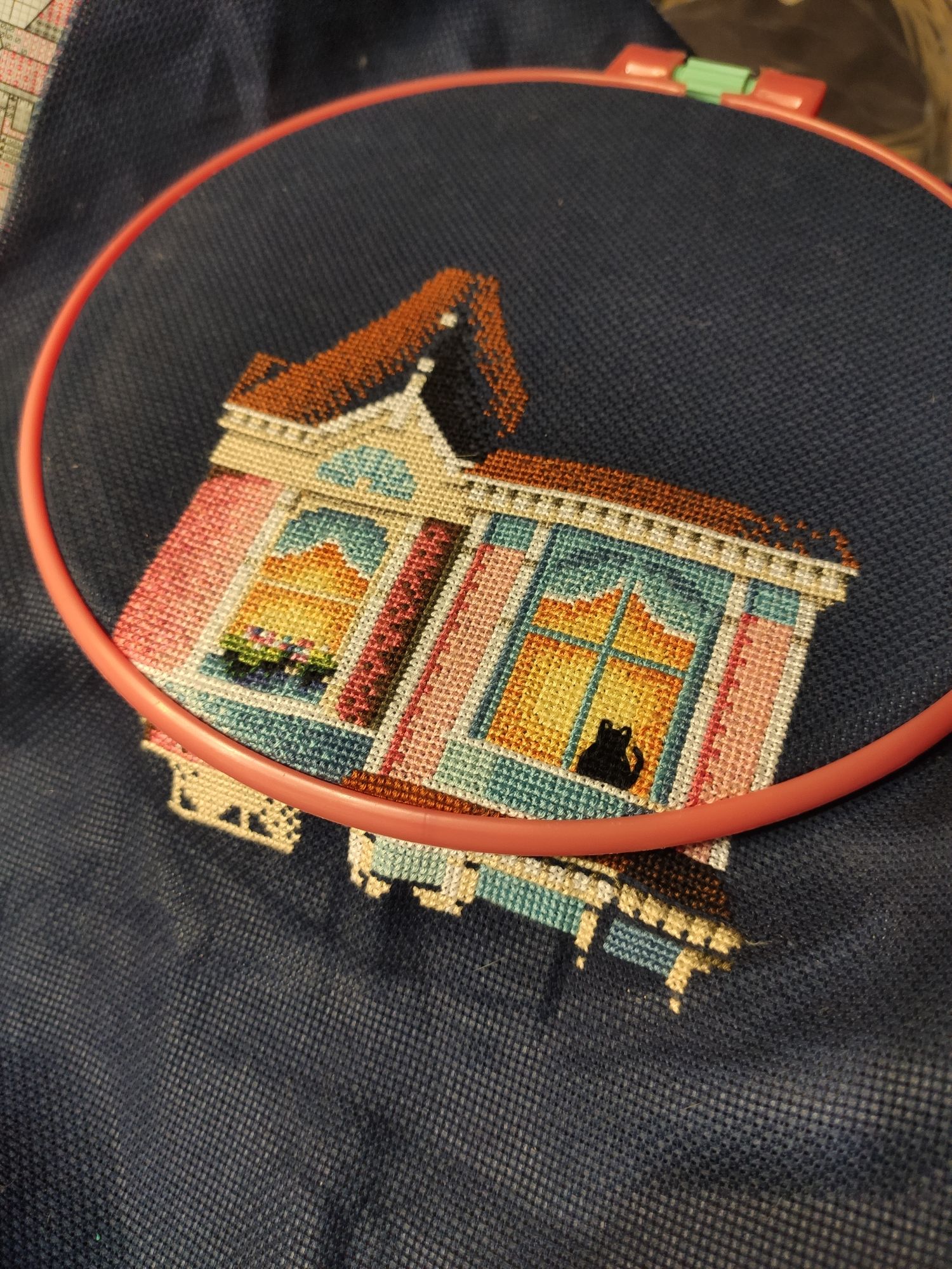 17 сентября 2022 И снова вышивальный отчёт! И снова схема полюбившейся мне vetlanka. Монстера. (заглавная картинка автора из ВК) 8 цветов DMC Размер - 121 x 117 стежков, 22 ct - 14 x 13 см 16 ct - 19 x 19 см Используемые стежки: крест/полукрест, бэкстич Шьется как песня! Большие куски одного цвета и всё очень логично. Шью на Линде (27 каунт), так же, как и Космеи. Процесс. Вышито уже 37% Дальше всё не в гайку. Достала свой самый долгостройный долгострой благодаря Наташе @Дикая белочка и Лене @igolkinitki. Они поддержали авантюру на дошив Викторианского шарма от Дименшнс. В неделю вышиваем не меньше 200 крестиков. Ну вот достала я его, посмотрела... И вышила длинную блендовую нитку. А к самому концу нитки поняла, что шью крестик не в том направлении. Есть у меня несколько незавершённых работ, где в крестиках верхний стежок я шила ещё так /, а сейчас шью так \. В общем, решила я не перешивать. В крыше не заметно, а, если распорю, то опять заброшу)))) Начинаю с этого места))) Ещё из вышивального - увидела и просто утонула глазами в новинке РТО "Звонница". Купила сразу. Сегодня забрала из пункта выдачи. Из невышивального. Знакомые зазвали на квиз по теме "Снова в школу". Заняли 7 место из 13. Срубились в первом туре на детских фото звёзд)))) После первого тура были на последнем месте, потом отыгрались. И сегодняшней осени вам! Вечером показали красивое небо и радугу (на паре фото самые внимательные могут ее найти))) Всем мира и добра! И красивой осени! Ну и почему-то забыла показать Космеи, которые сегодня сфоткала с настоящими цветами - погода, наконец, позволила. ОлюшКа, Аринесса , IrnKA и 34 других сказали спасибо Поделиться сообщением Ссылка на сообщение
